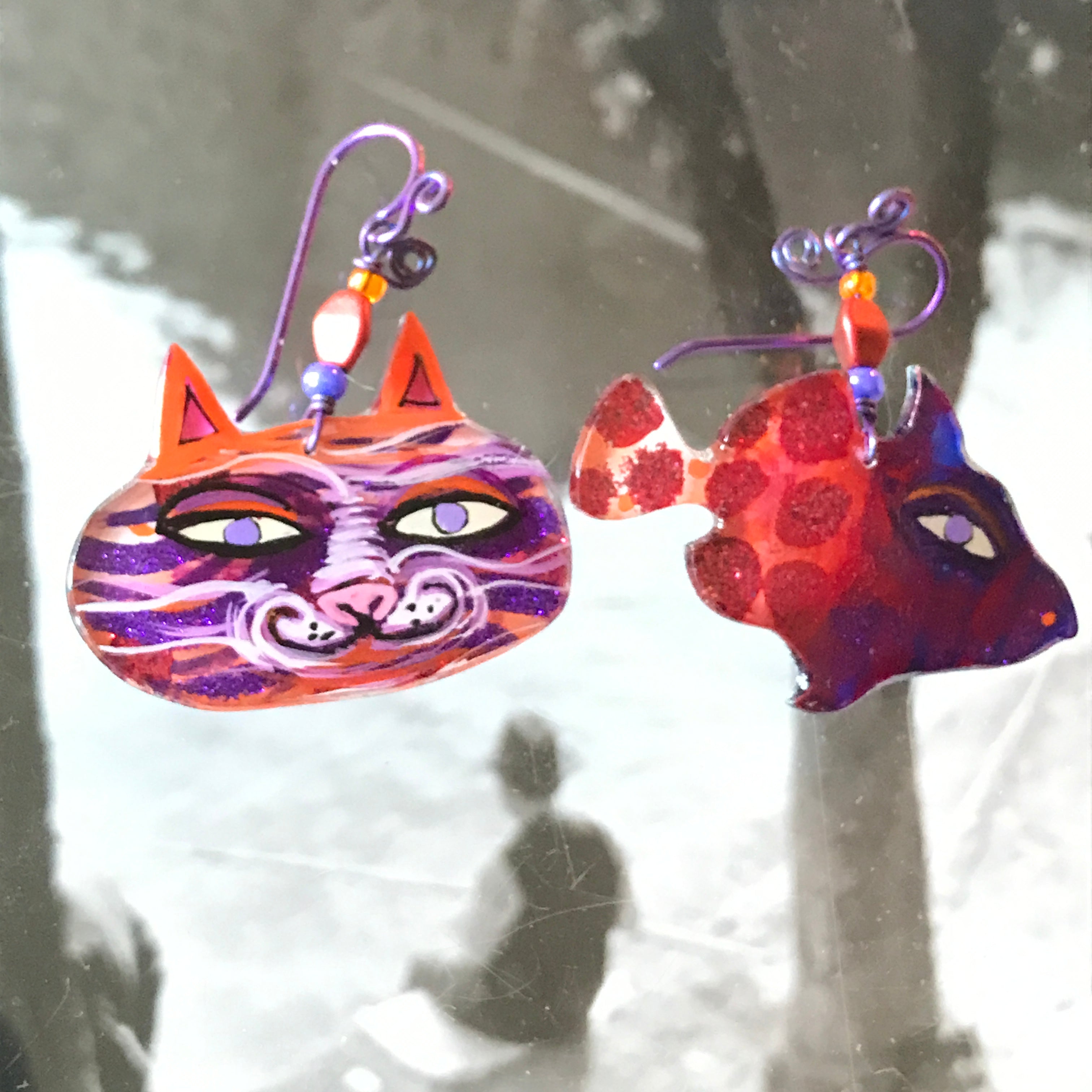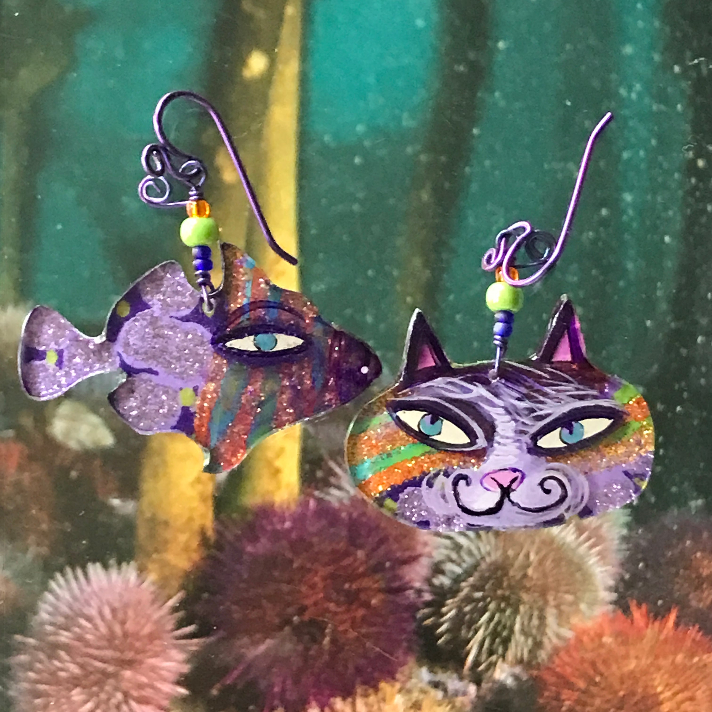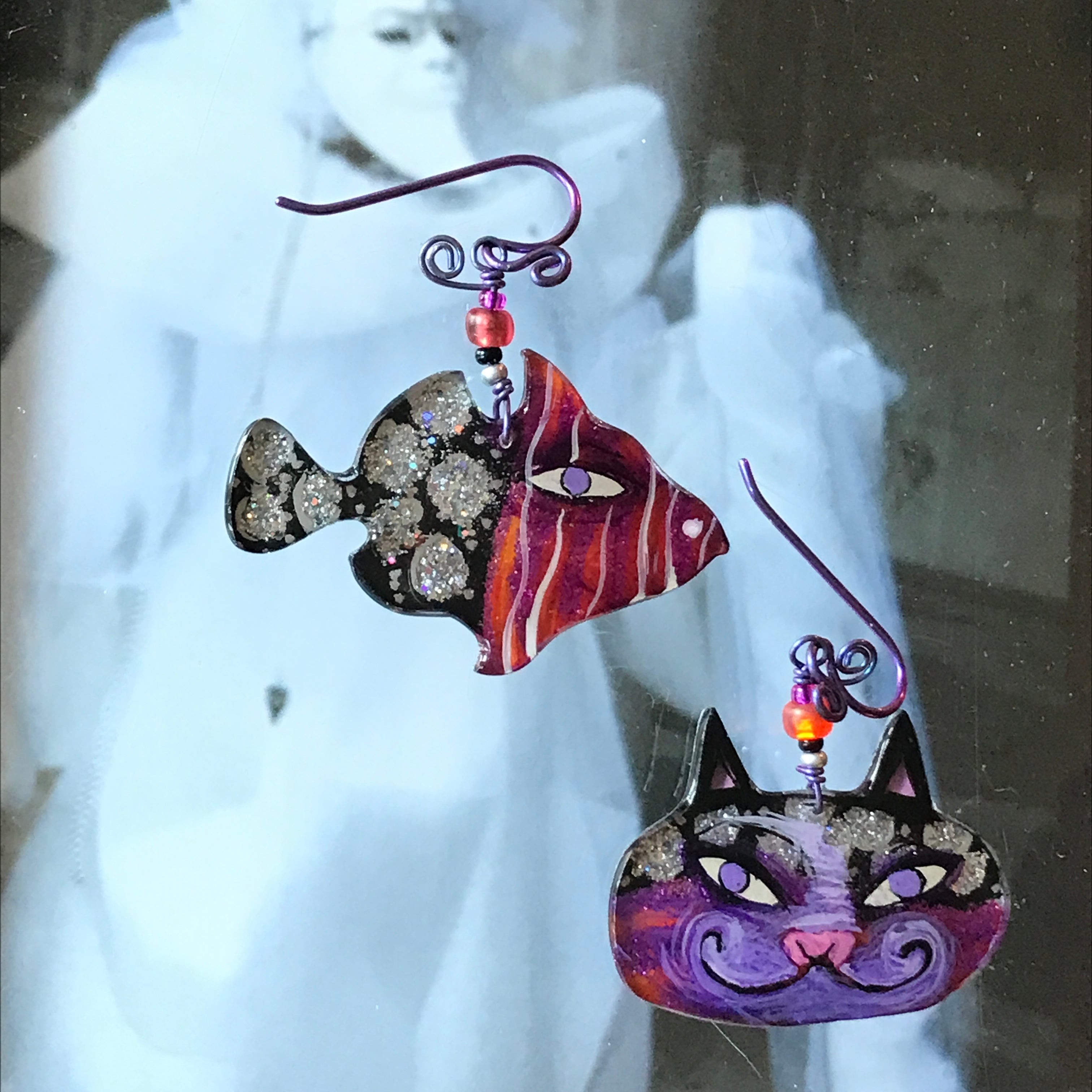 Each one of these whimsical pins and earrings are hand-painted by me, Robin Senour, so there are no two alike.