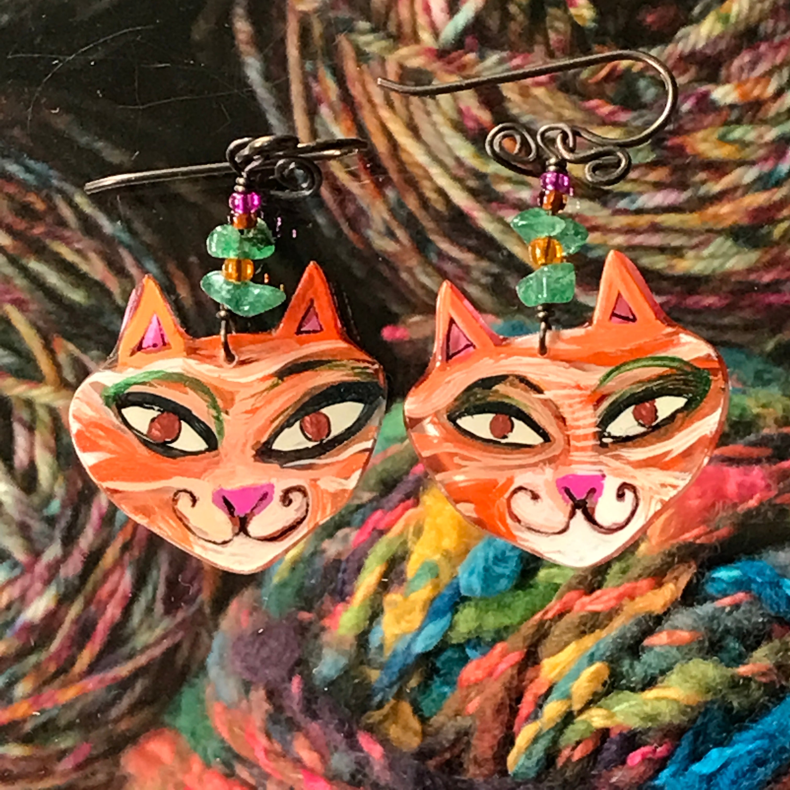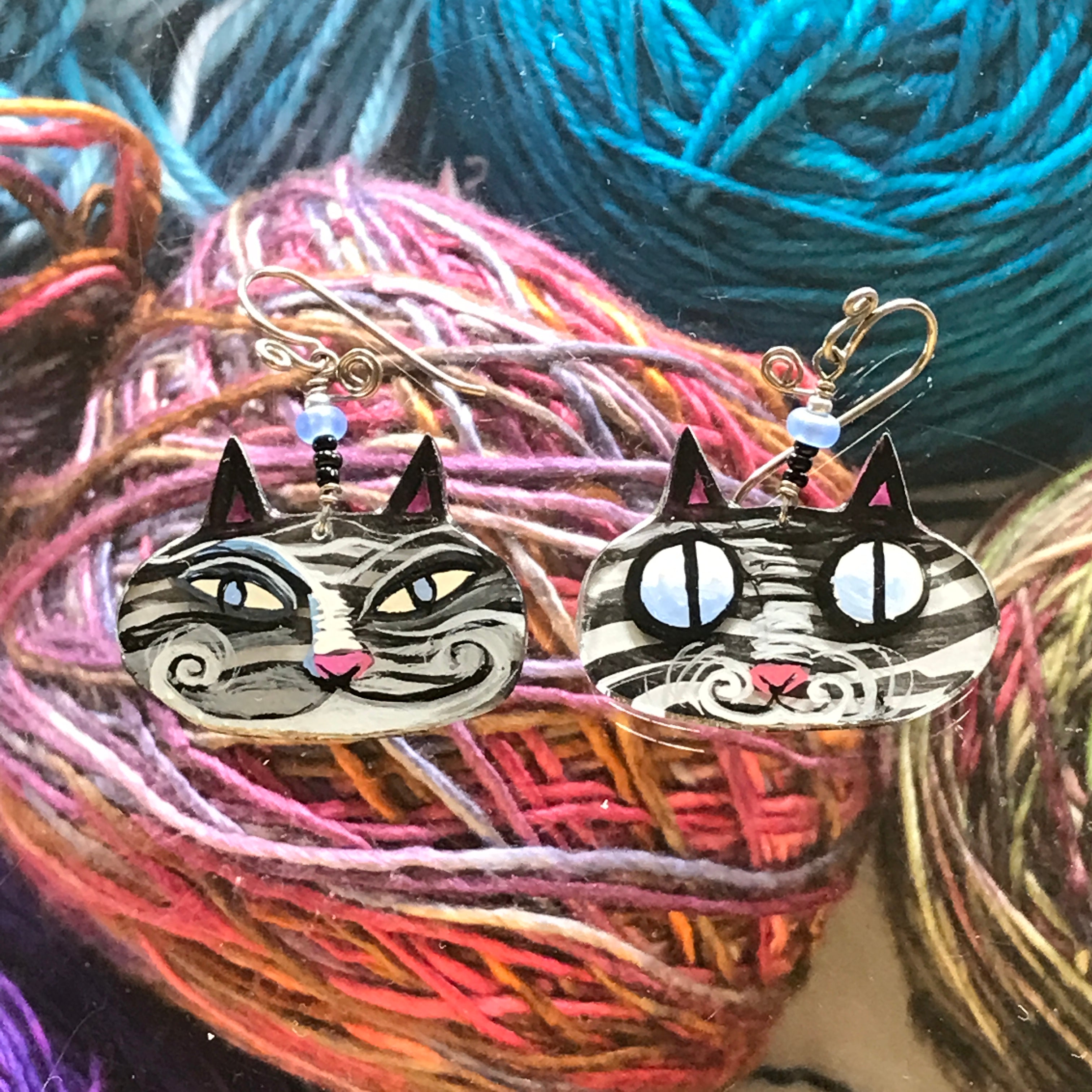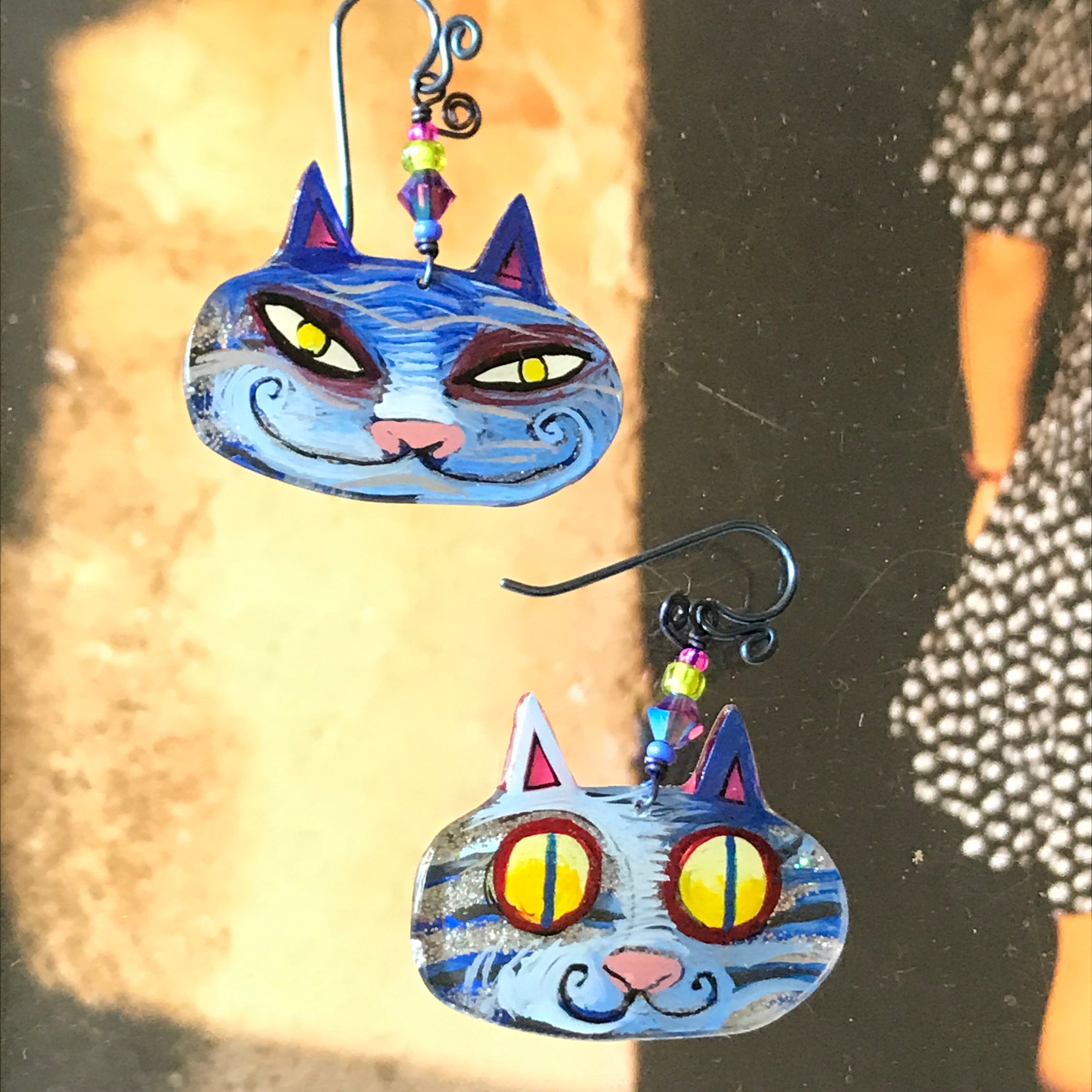 Each one of these whimsical pins and earrings are hand-painted by me, Robin Senour, so there are no two alike.