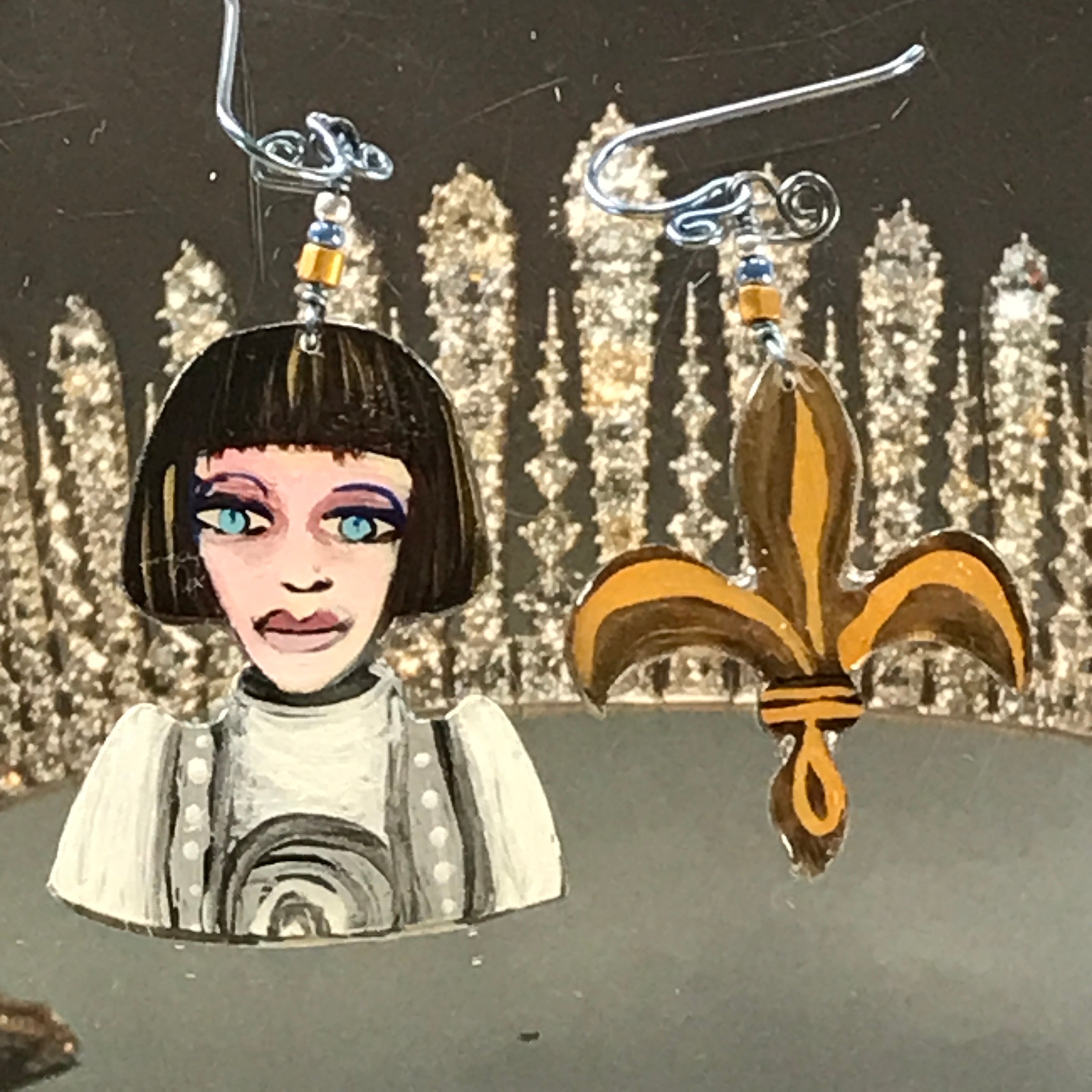 Each one of these whimsical pins and earrings are hand-painted by me, Robin Senour, so there are no two alike.