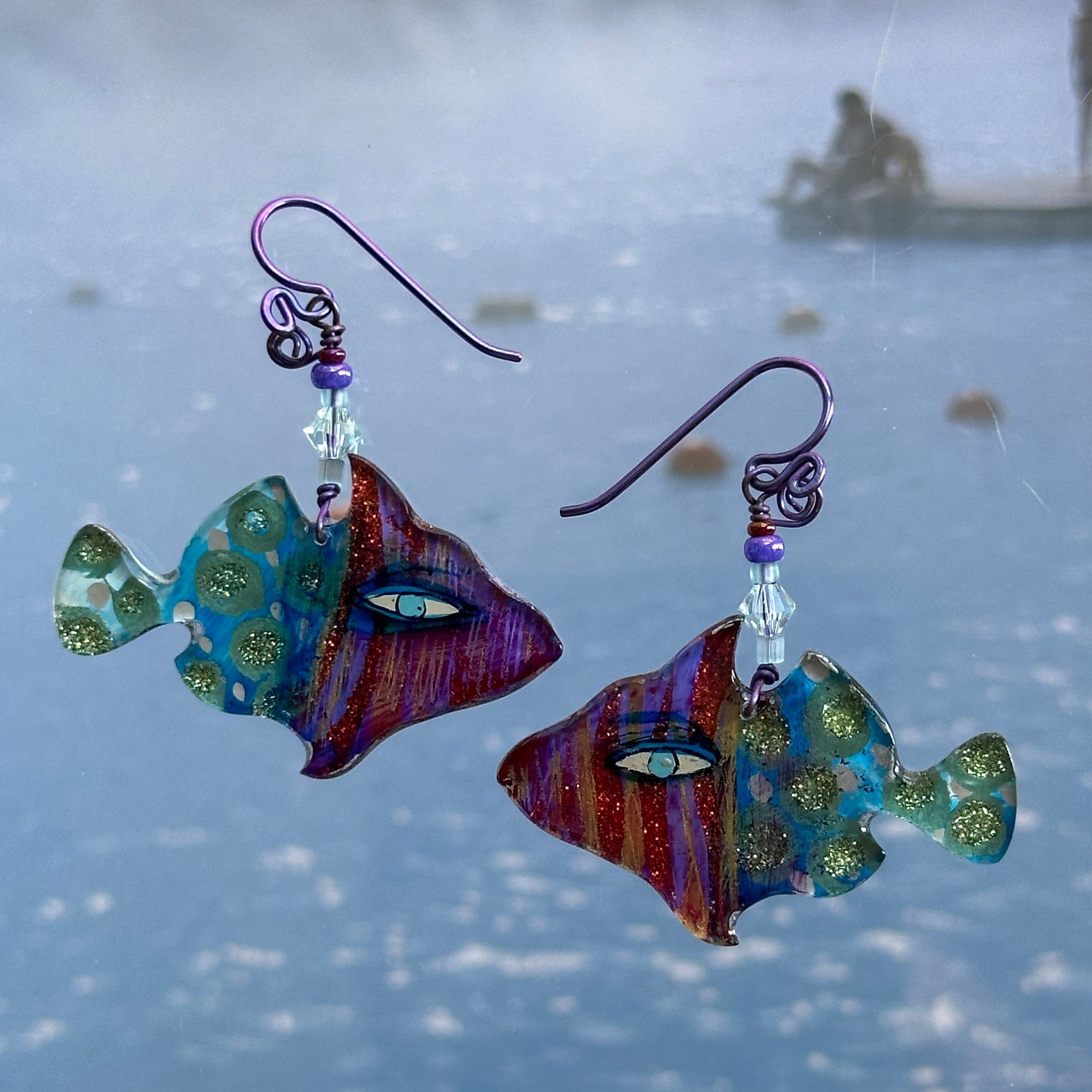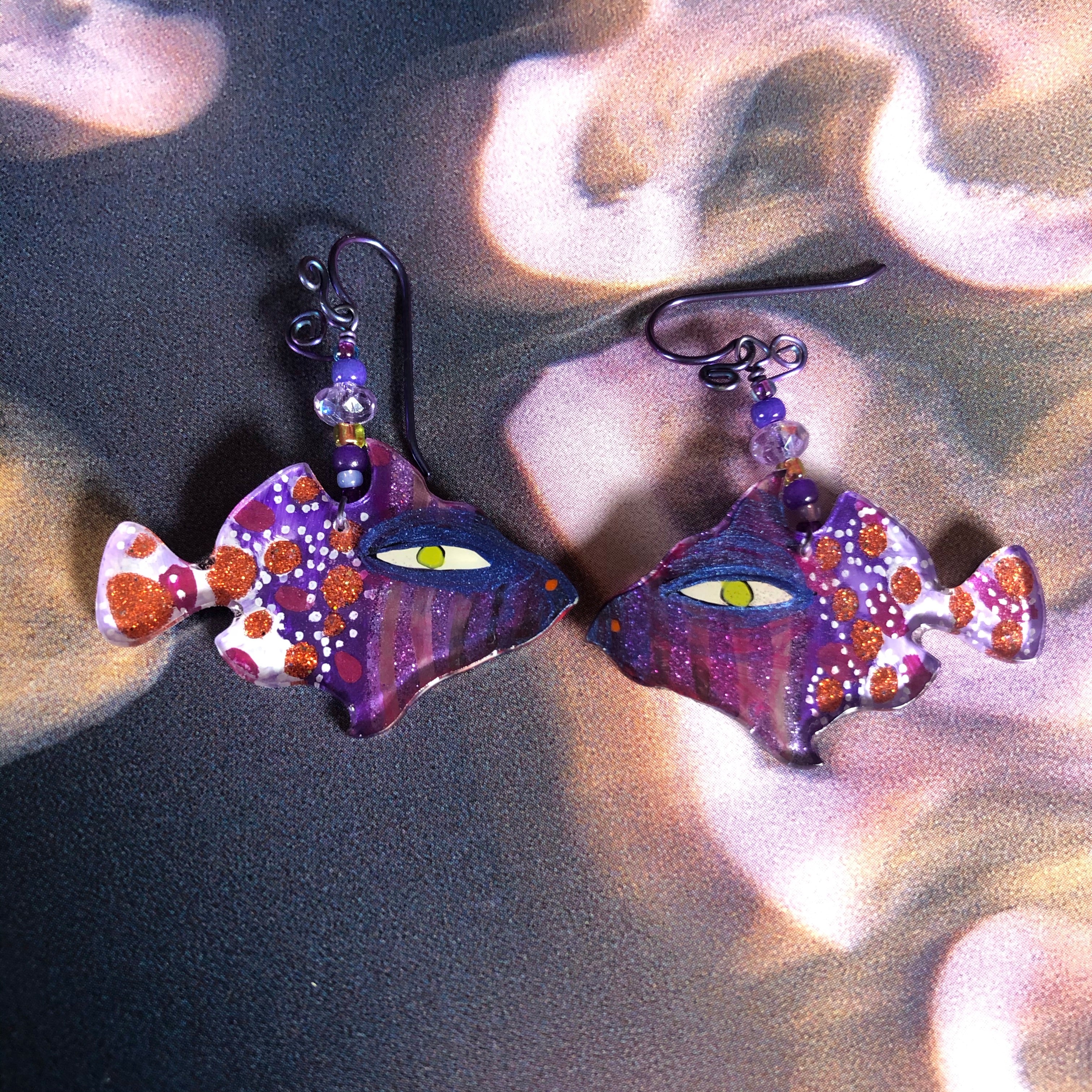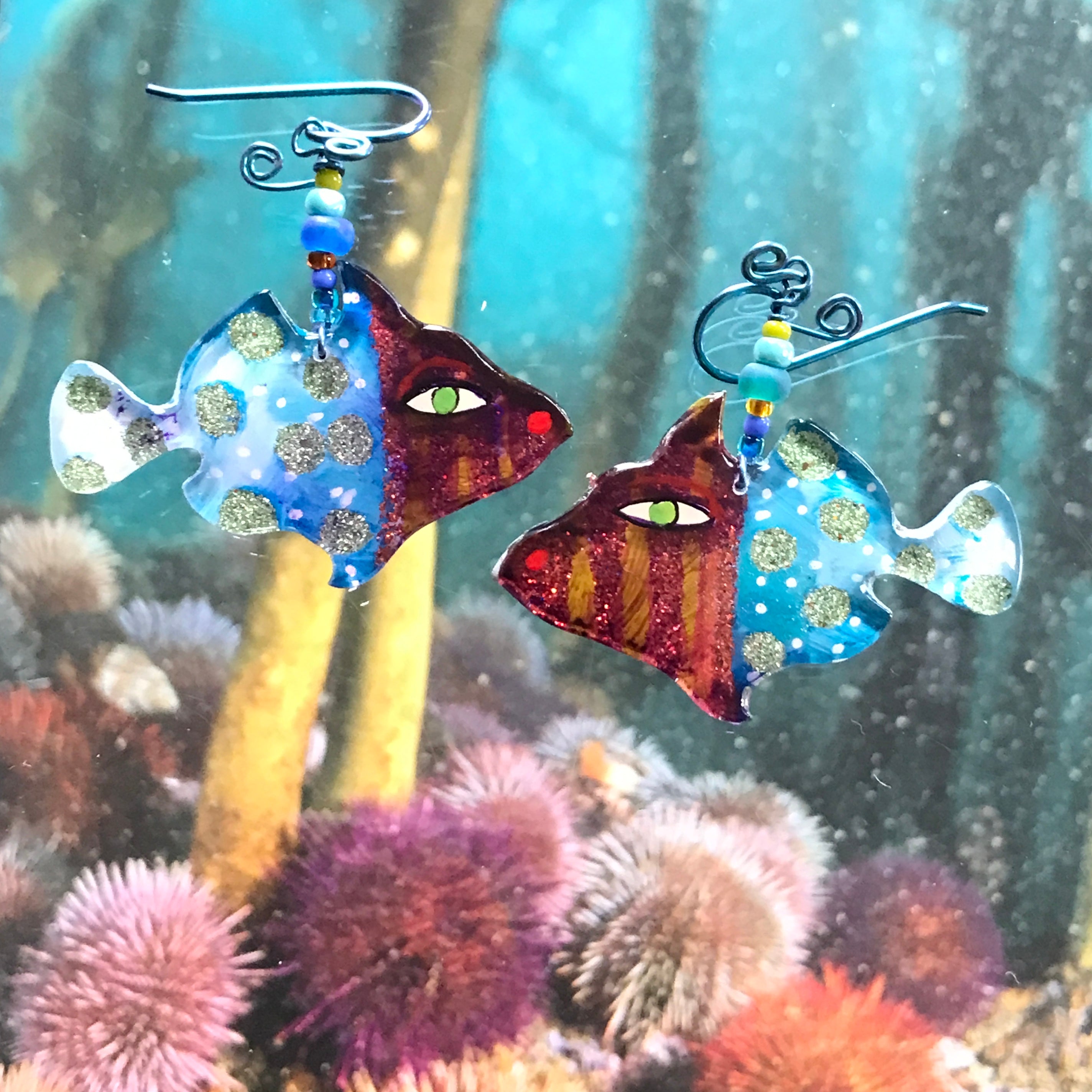 Each one of these whimsical pins and earrings are hand-painted by me, Robin Senour, so there are no two alike.