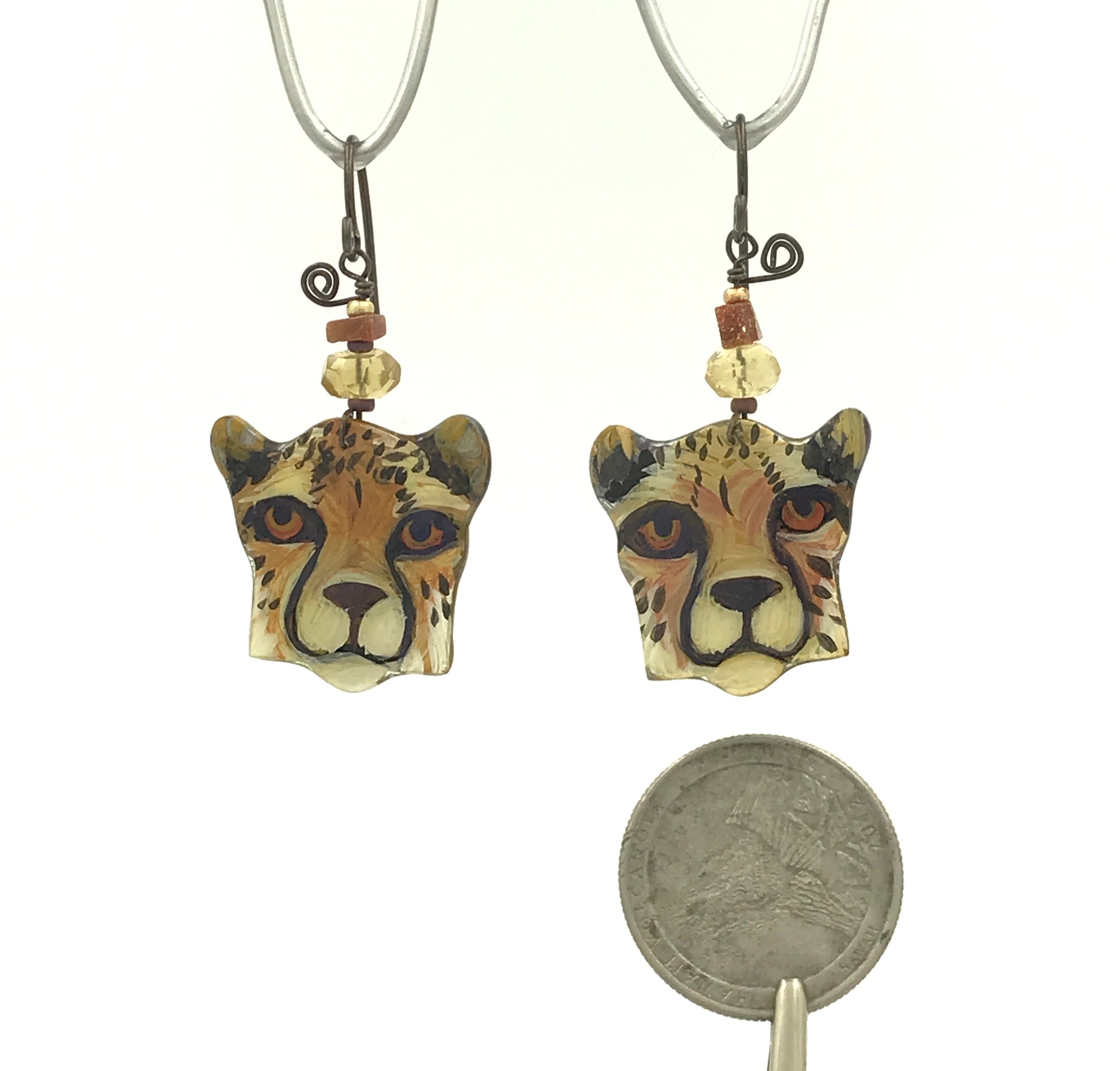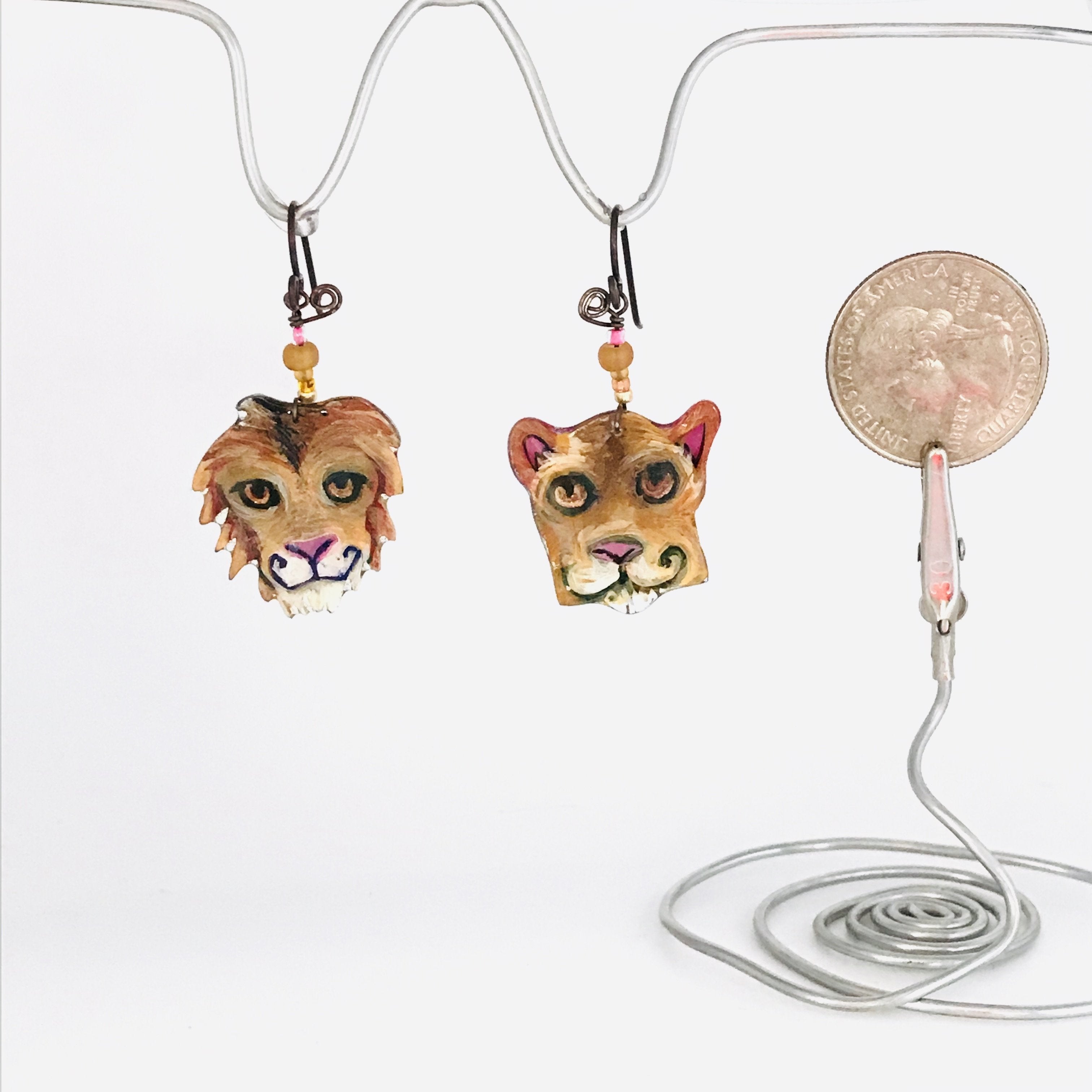 The lucite I paint on is super lightweight and will not pull on the ear, so be sure to wear the rubber wire keepers that come with each pair.