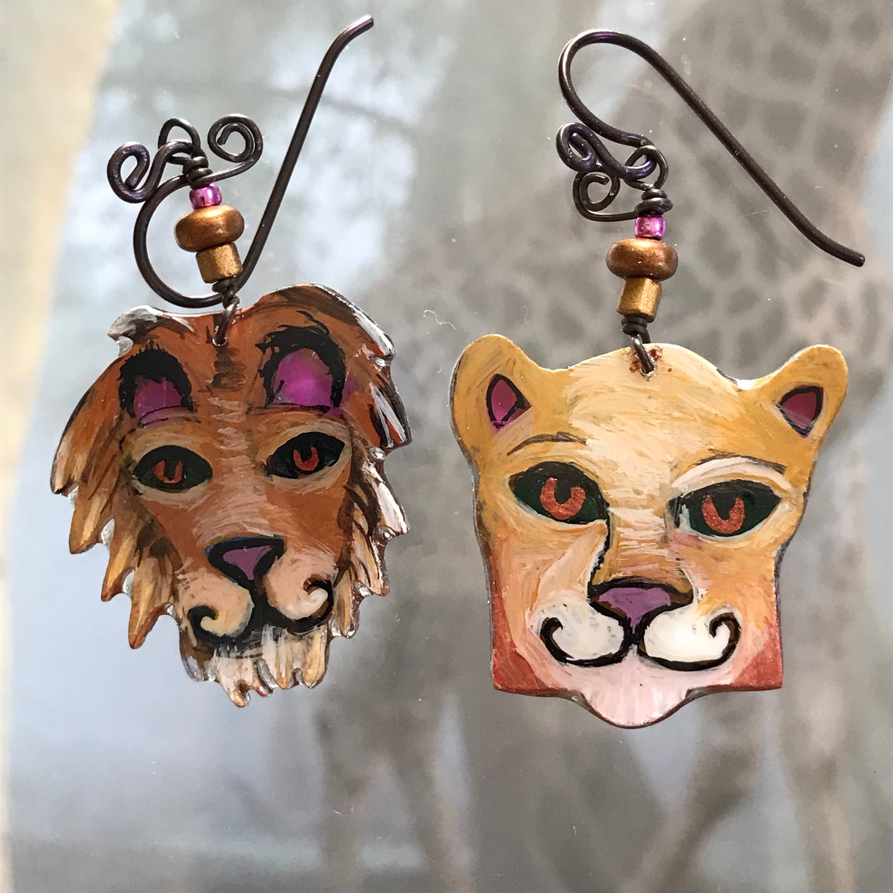 Each one of these whimsical pins and earrings are hand-painted by me, Robin Senour, so there are no two alike.
