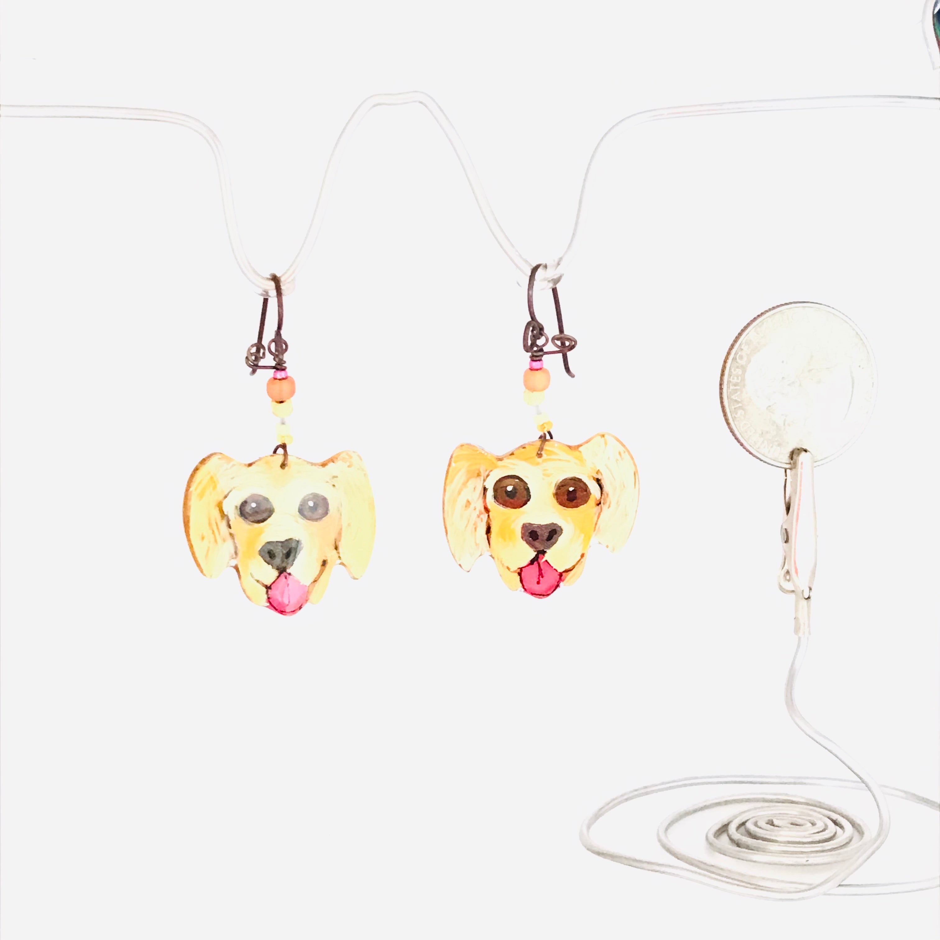 The lucite I paint on is super lightweight and will not pull on the ear, so be sure to wear the rubber wire keepers that come with each pair. The earwires are Niobium, which is safer for your ears than gold or silver.  I can also replace them with a clip sort, just let me know.