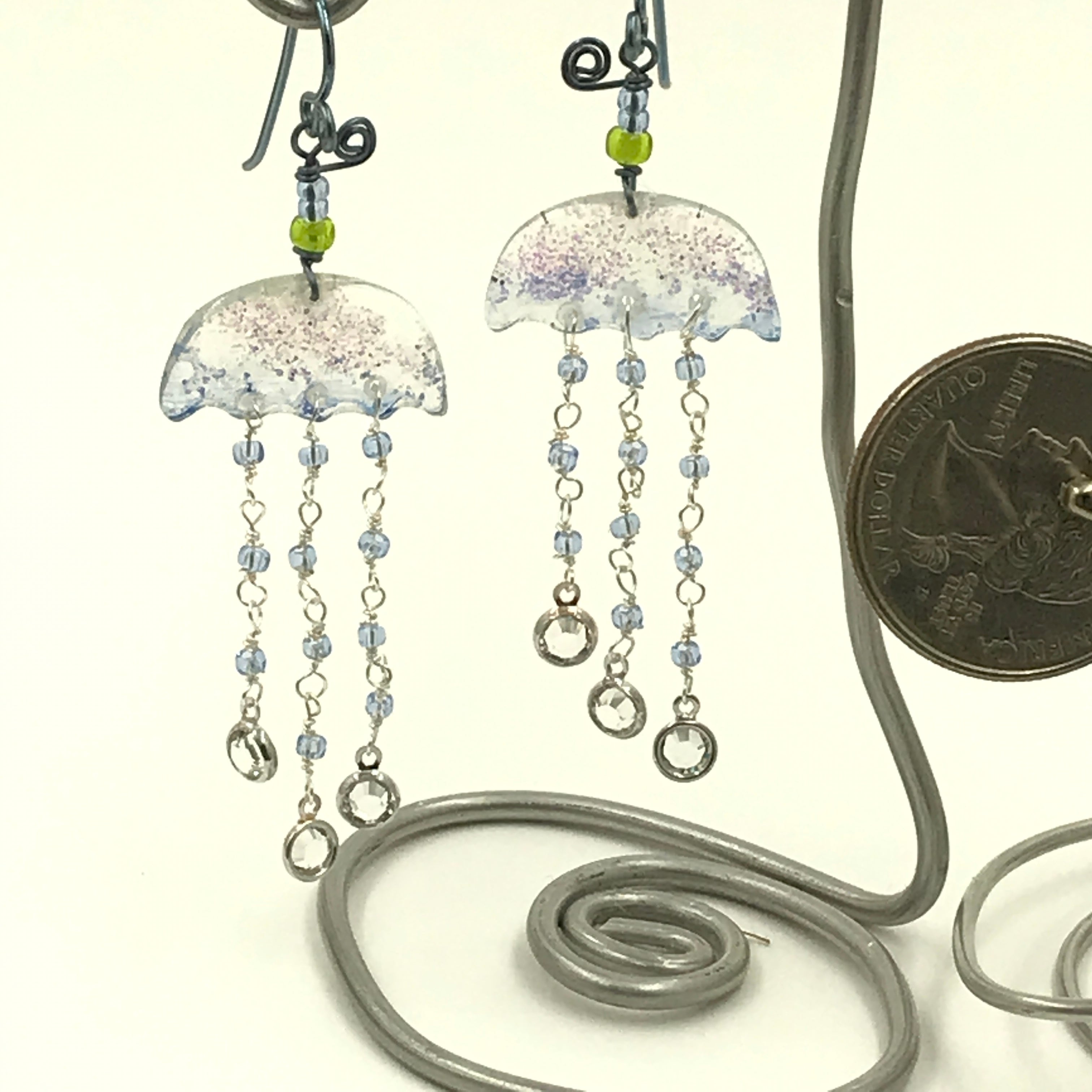The lucite I paint on is super lightweight and will not pull on the ear, so be sure to wear the rubber wire keepers that come with each pair. The earwires are Niobium, which is safer for your ears than gold or silver. I can also replace them with a clip sort, just let me know.