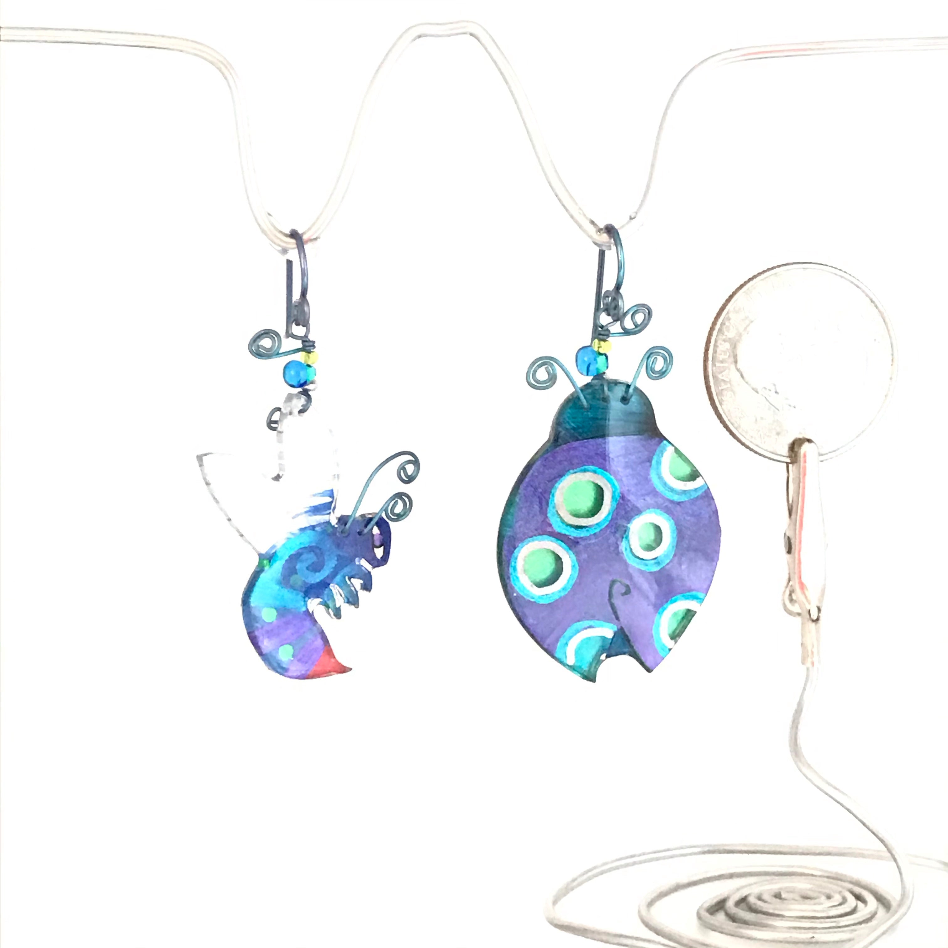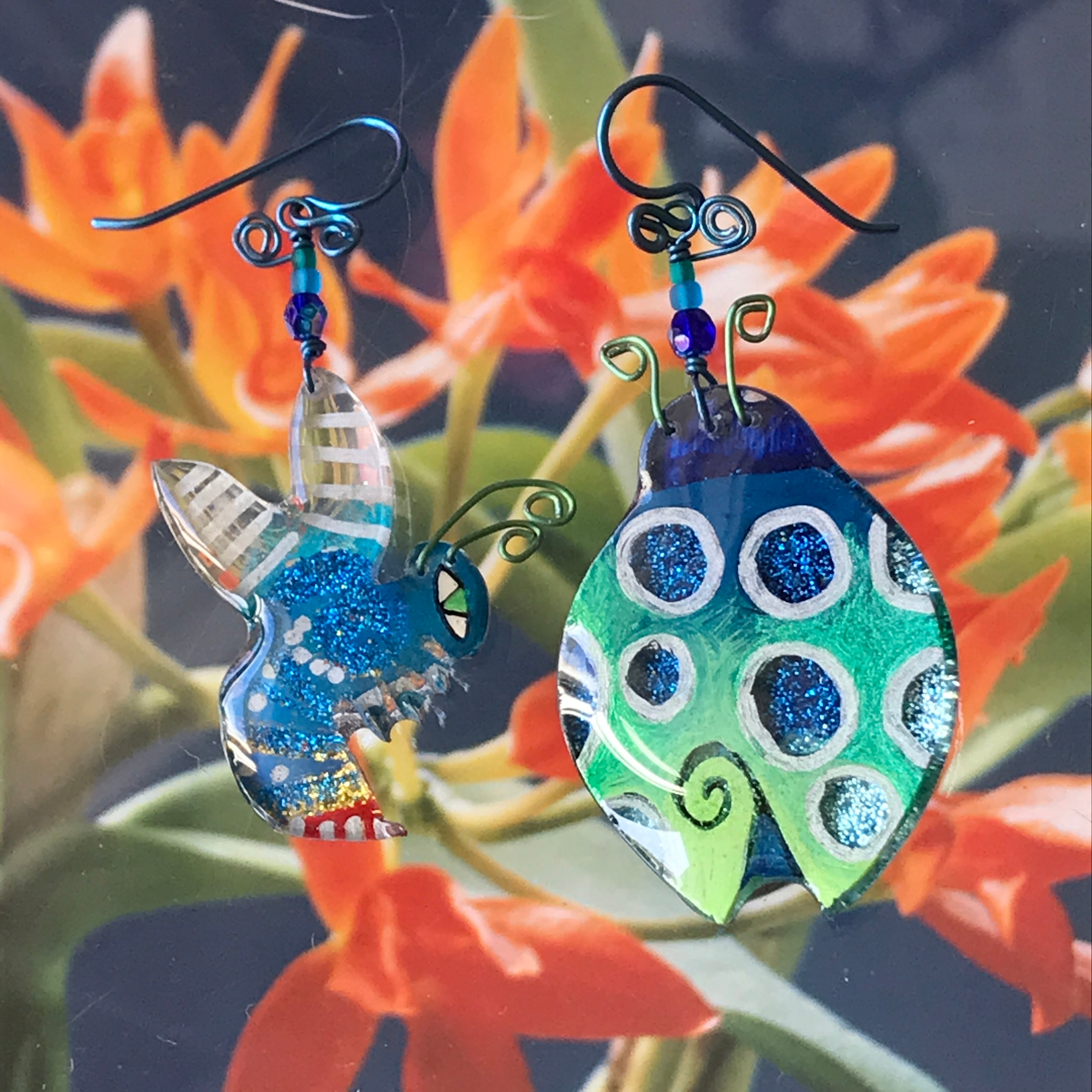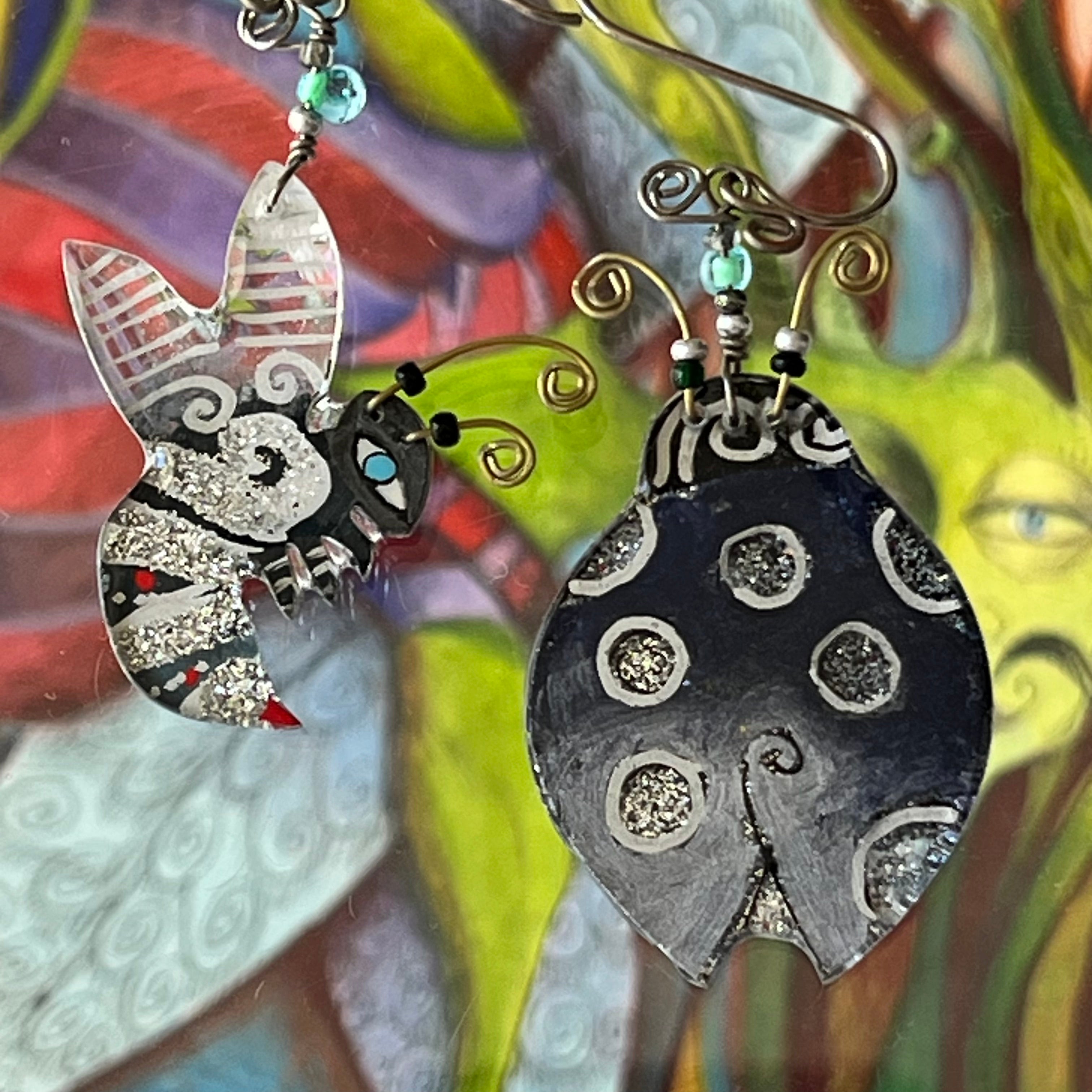 Each one of these whimsical pins and earrings are hand-painted by me, Robin Senour, so there are no two alike.