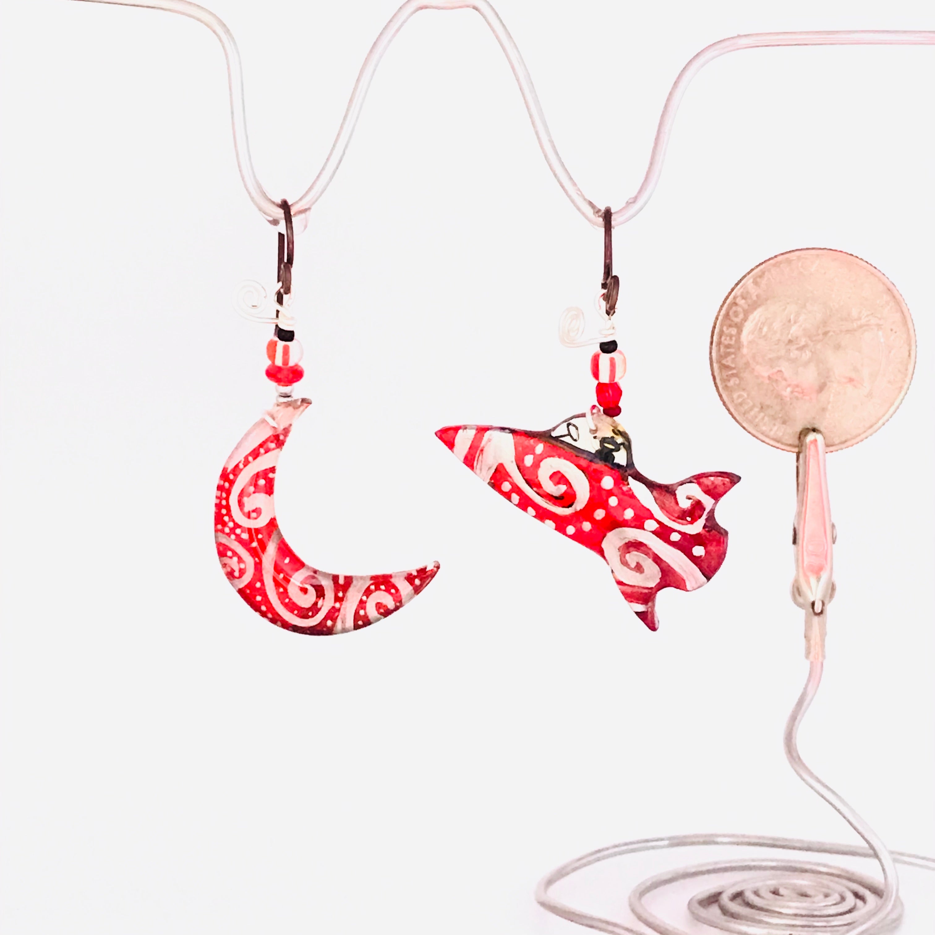 Each one of these whimsical pins and earrings are hand-painted by me, Robin Senour, so there are no two alike.