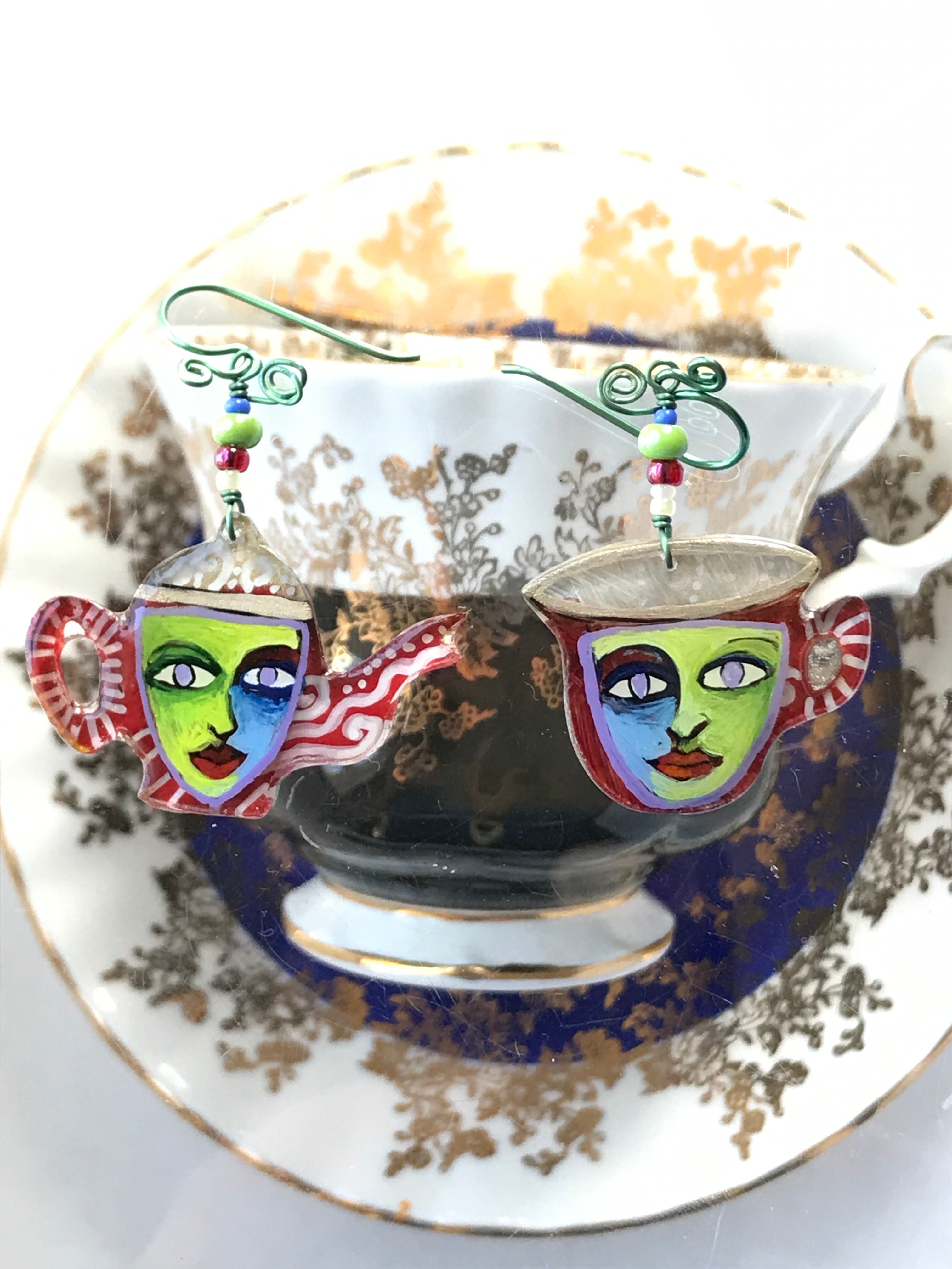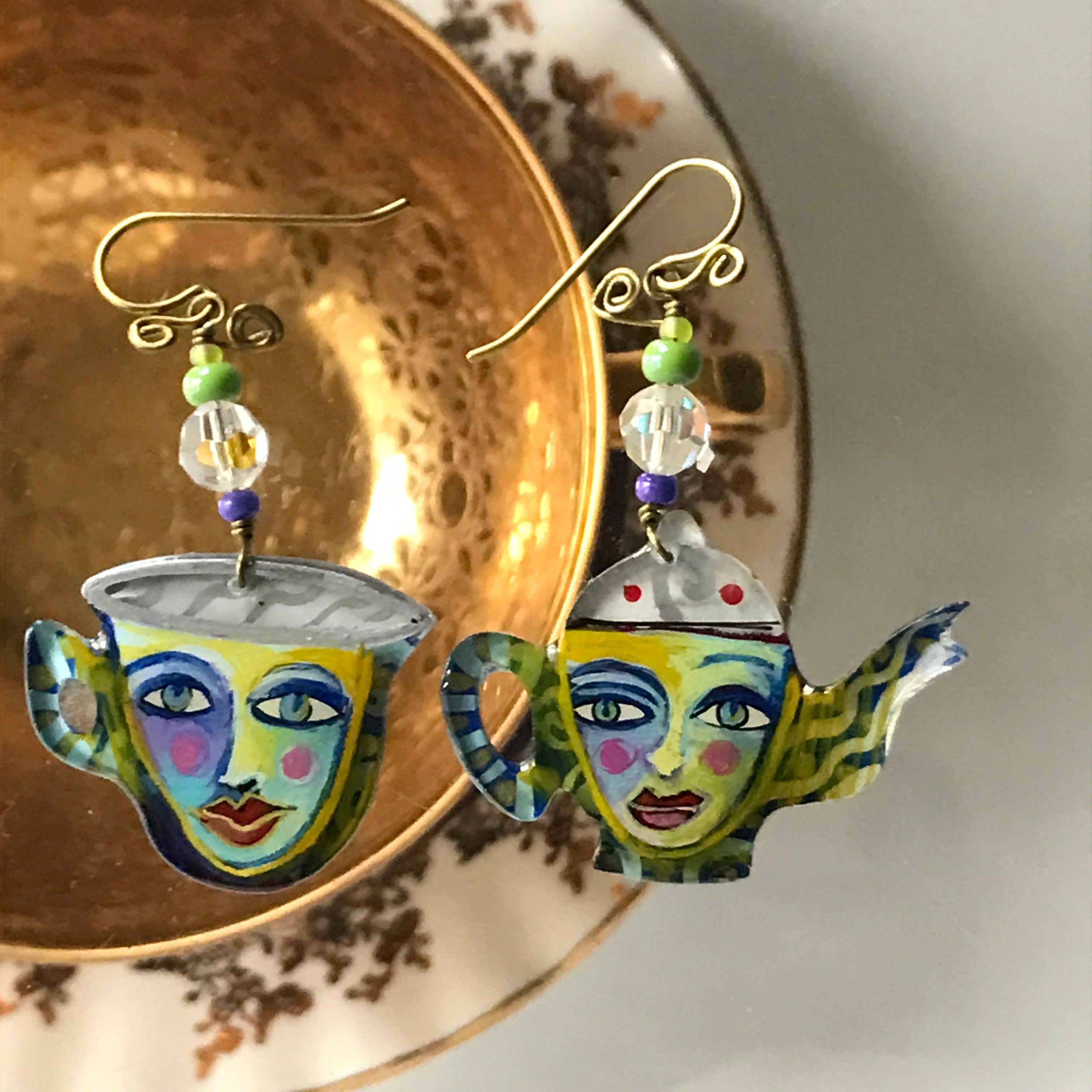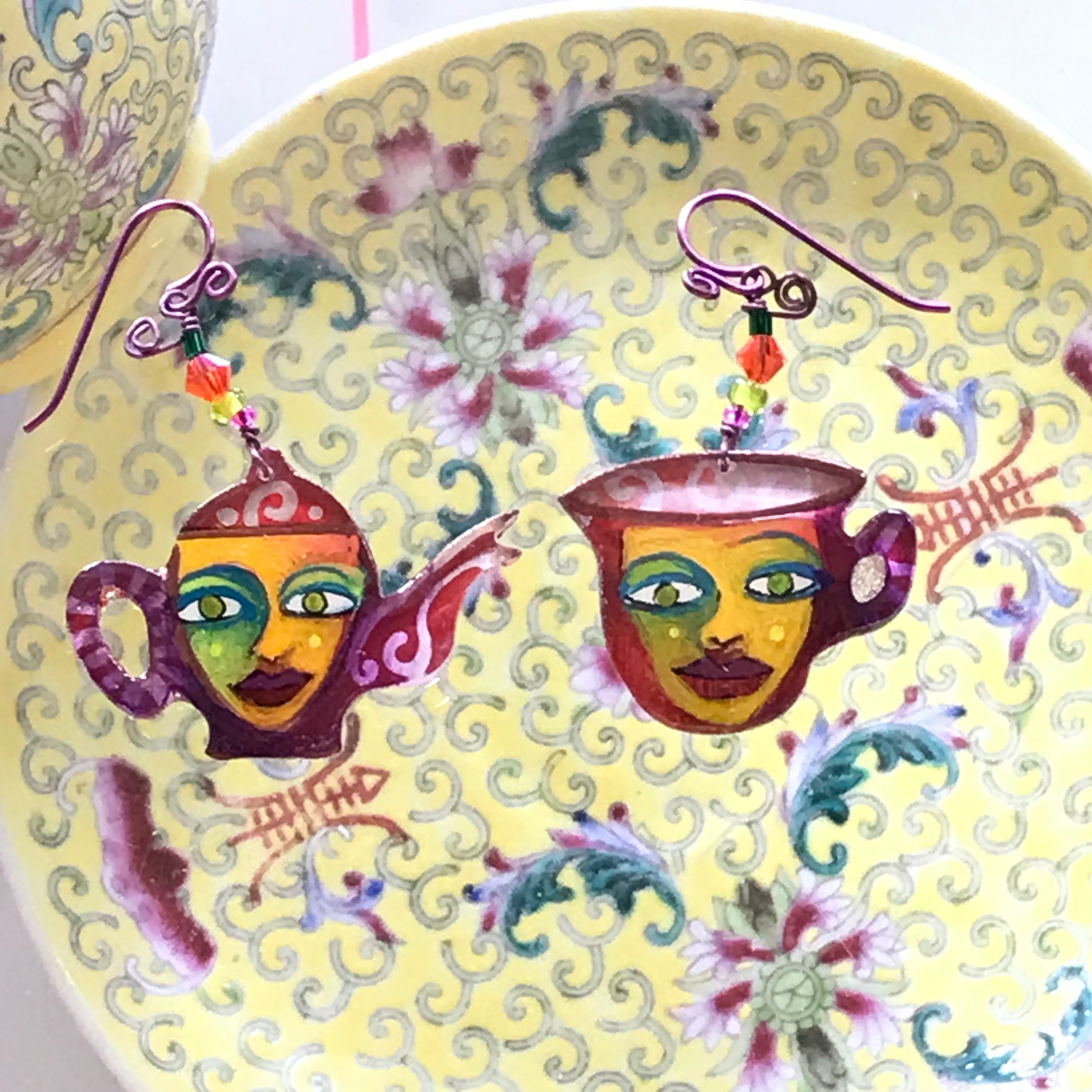 Each one of these whimsical pins and earrings are hand-painted by me, Robin Senour, so there are no two alike.