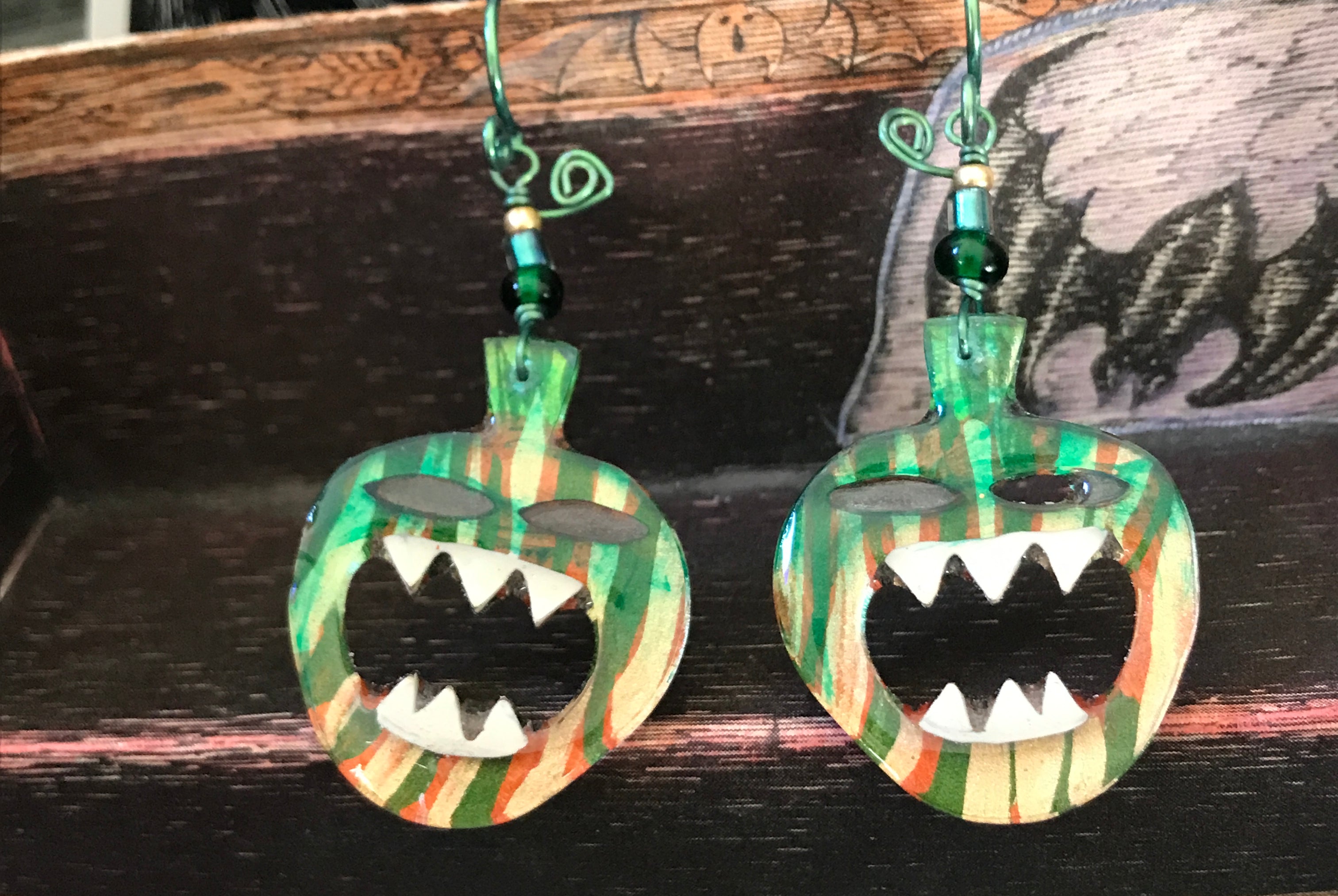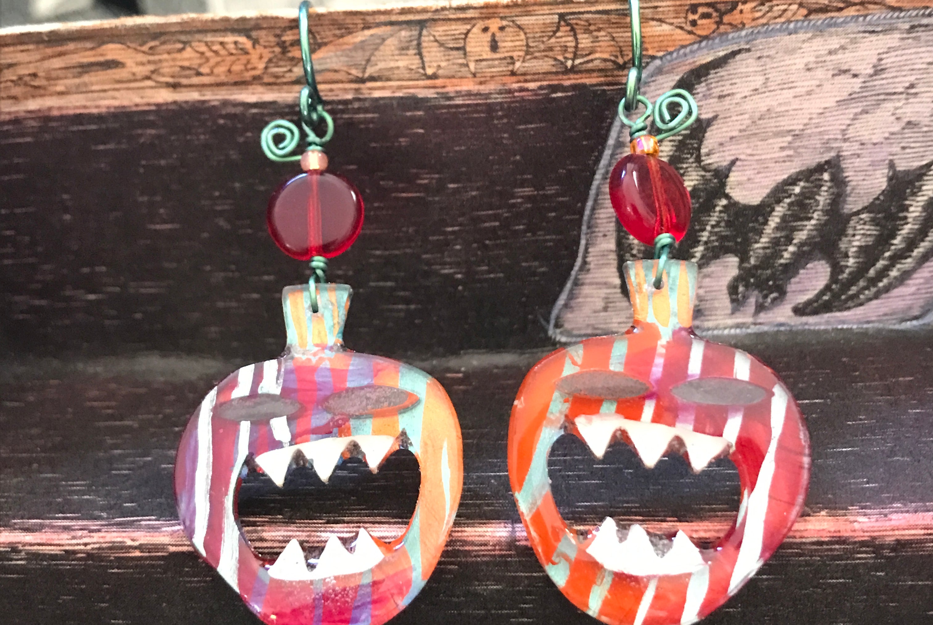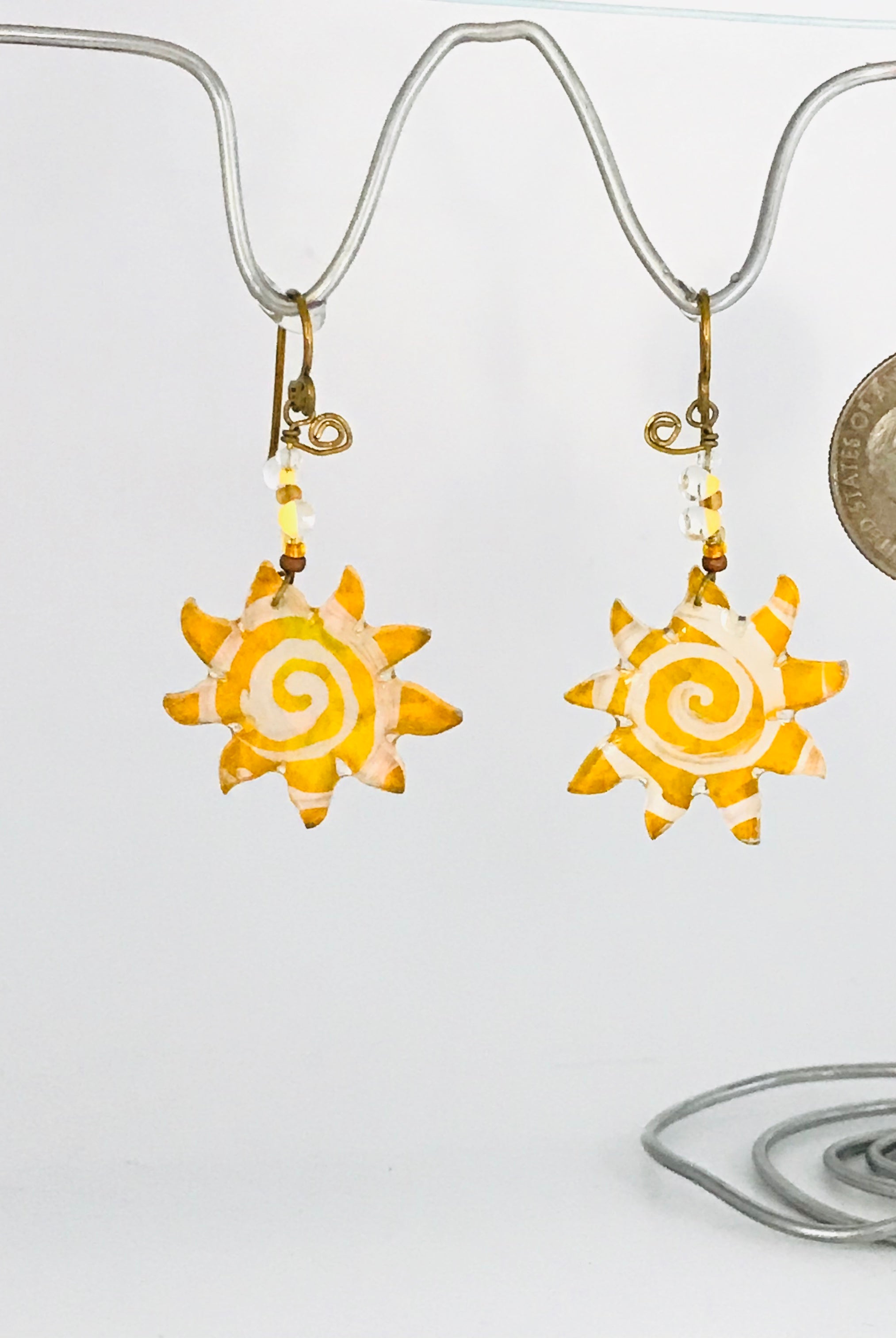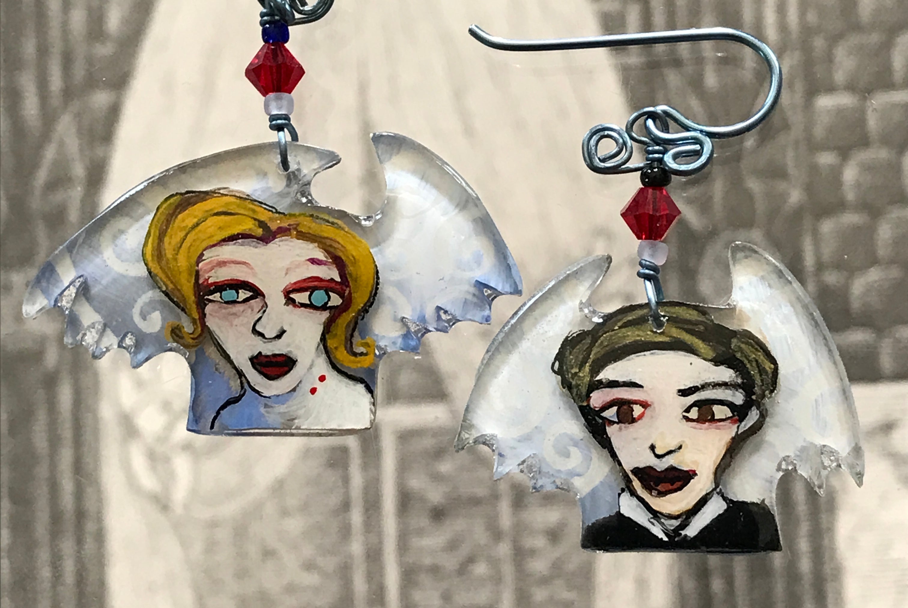 The handpainted earrings are the most challenging. Making a little painting in such a tiny place! But the results are so satisfying. Most all of the ear wires are made of Niobium, a metal all on its own on the Periodic Scale. They are safer for sensitive ears, than gold or silver. A few are sterling silver, noted in the descriptions.