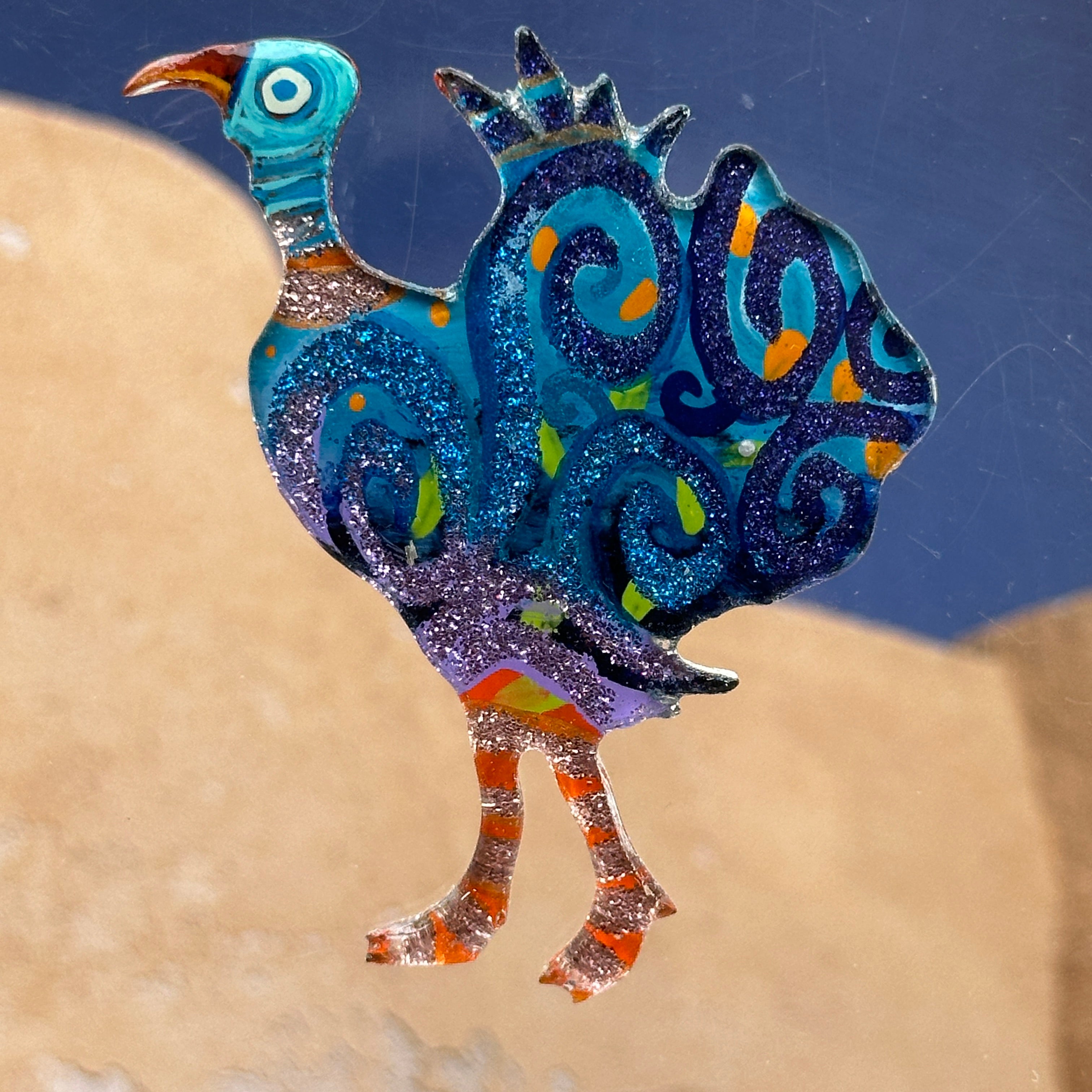 One day on my way to the pool to swim I was confronted by 5 enormous turkeys, The kind of with iridescent black feathers.  I made this pin in honor of them, I sometimes call it the hippie turkey due to the rainbow effect the iridescence produces.