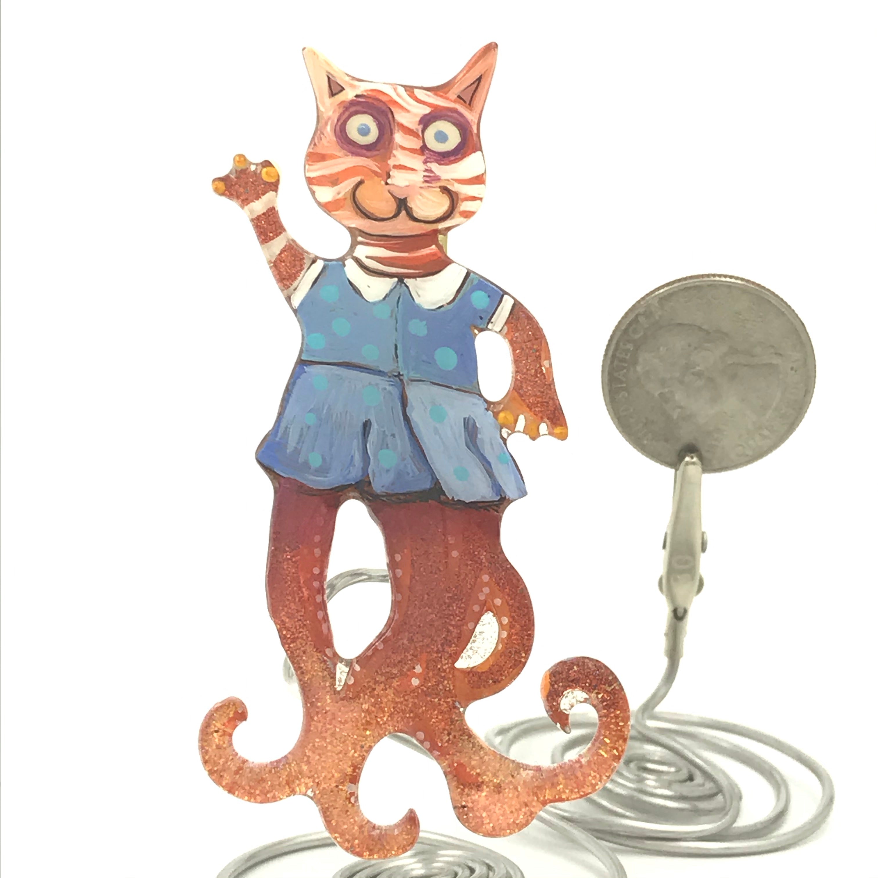 If you are pin challenged, you can have a complimentary stand that will clip on the pinback, just indicate in your special instructions. It’s a little work of art, there are lots of ways to display it.