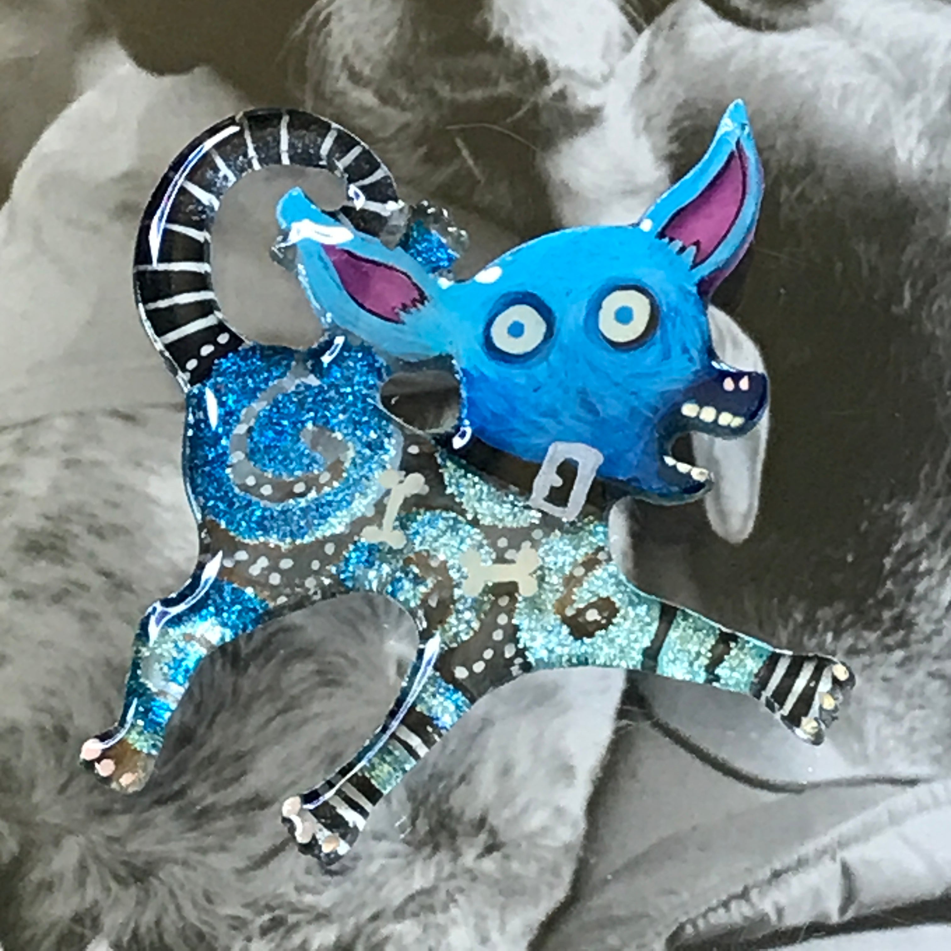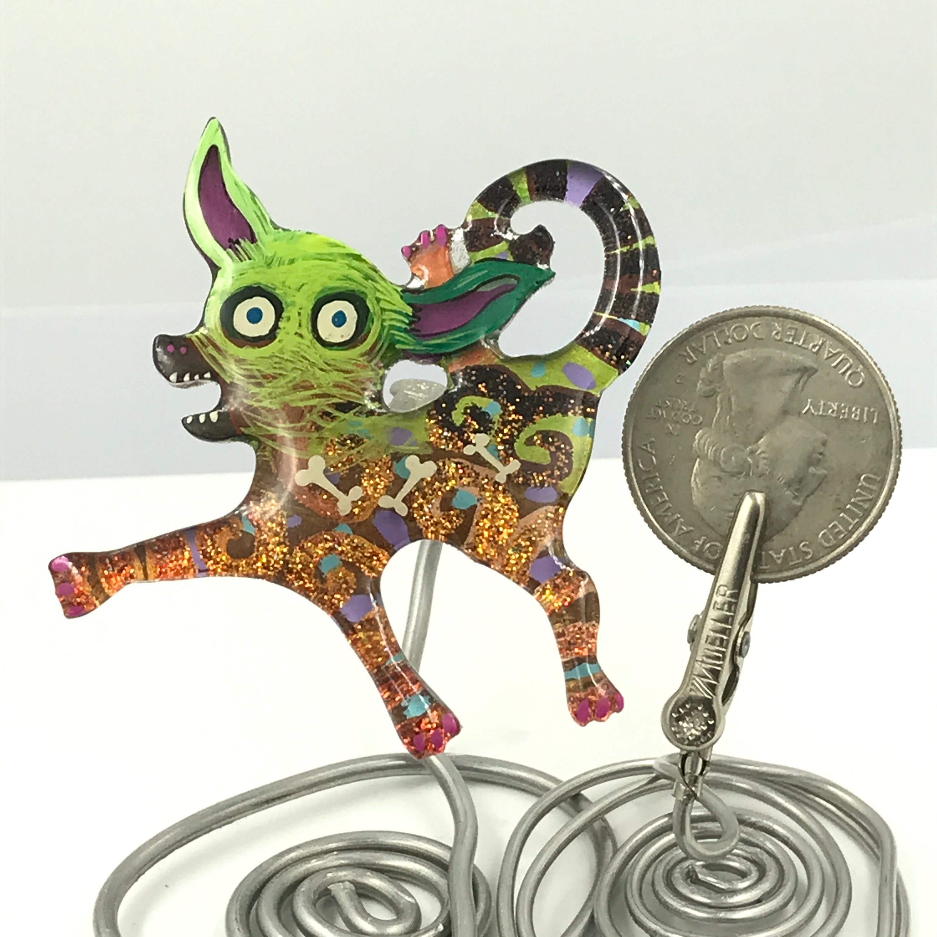If you are pin challenged, you can have a complimentary stand that will clip on the pinback, just indicate in your special instructions. It’s a little work of art, there are lots of ways to display it.