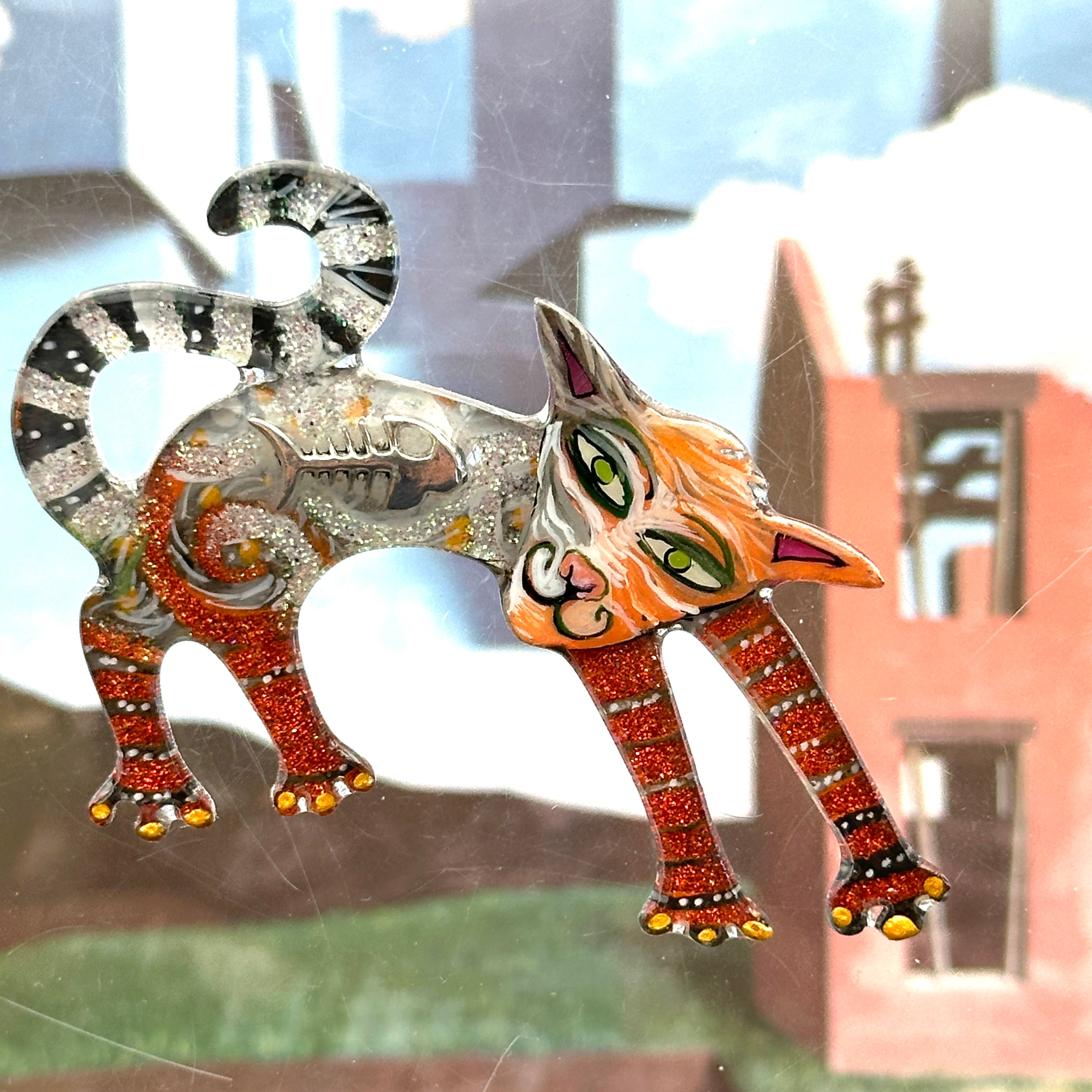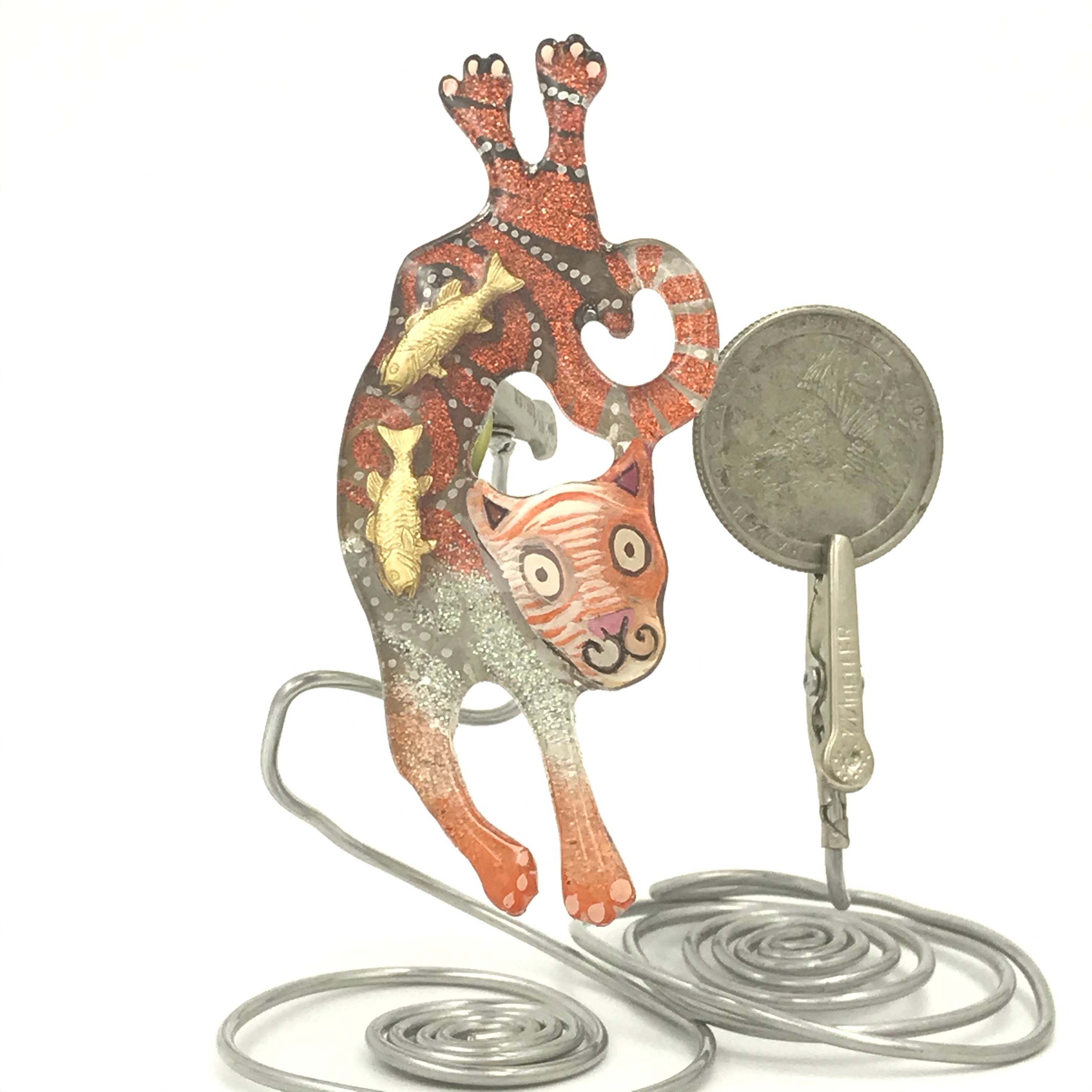 If you are pin challenged, you can have a complimentary stand that will clip on the pinback, just indicate in your special instructions. It’s a little work of art, there are lots of ways to display it.