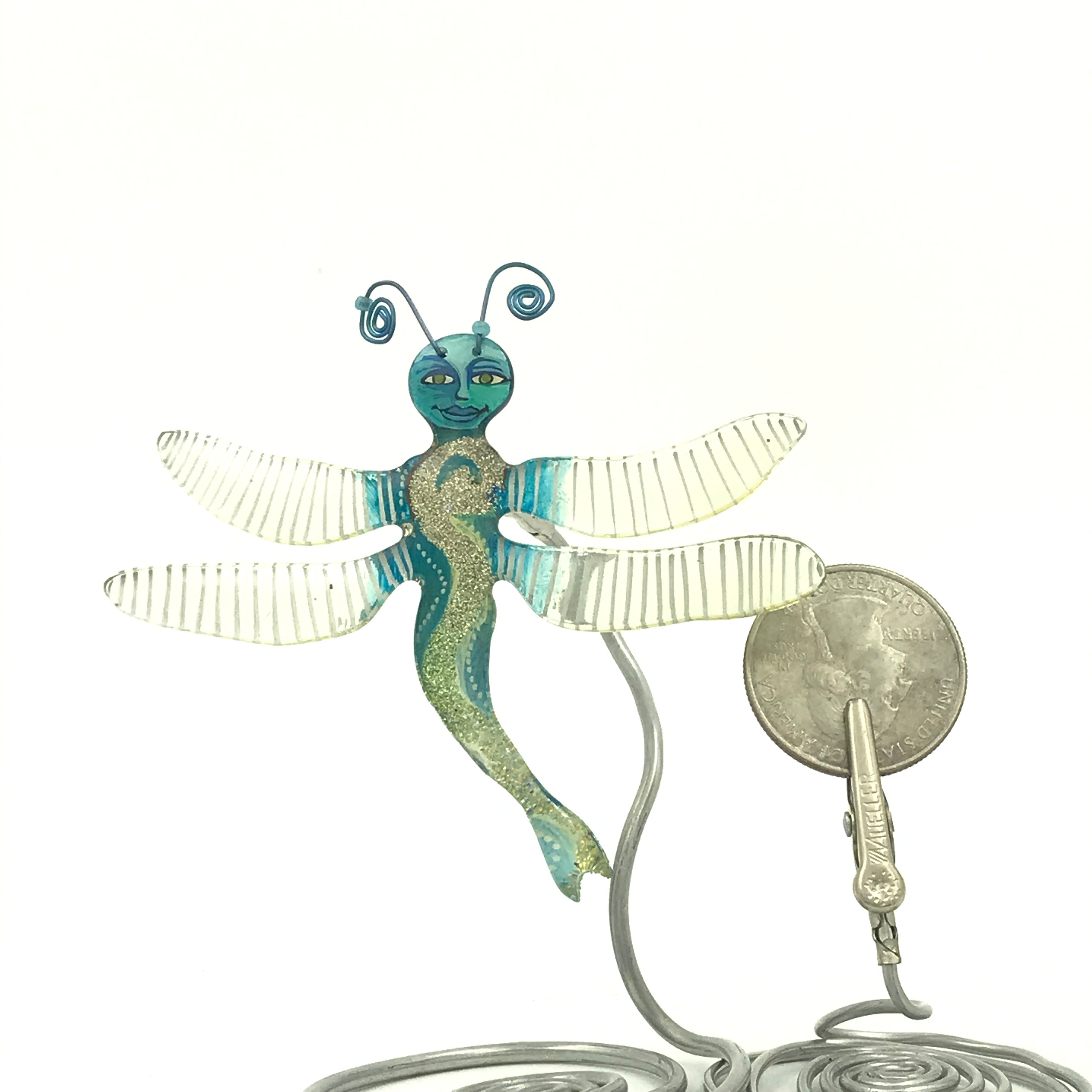 I make two kinds of dragonfly, the one with a face I think of as a damselfly. The smaller one is more traditional. I love them both