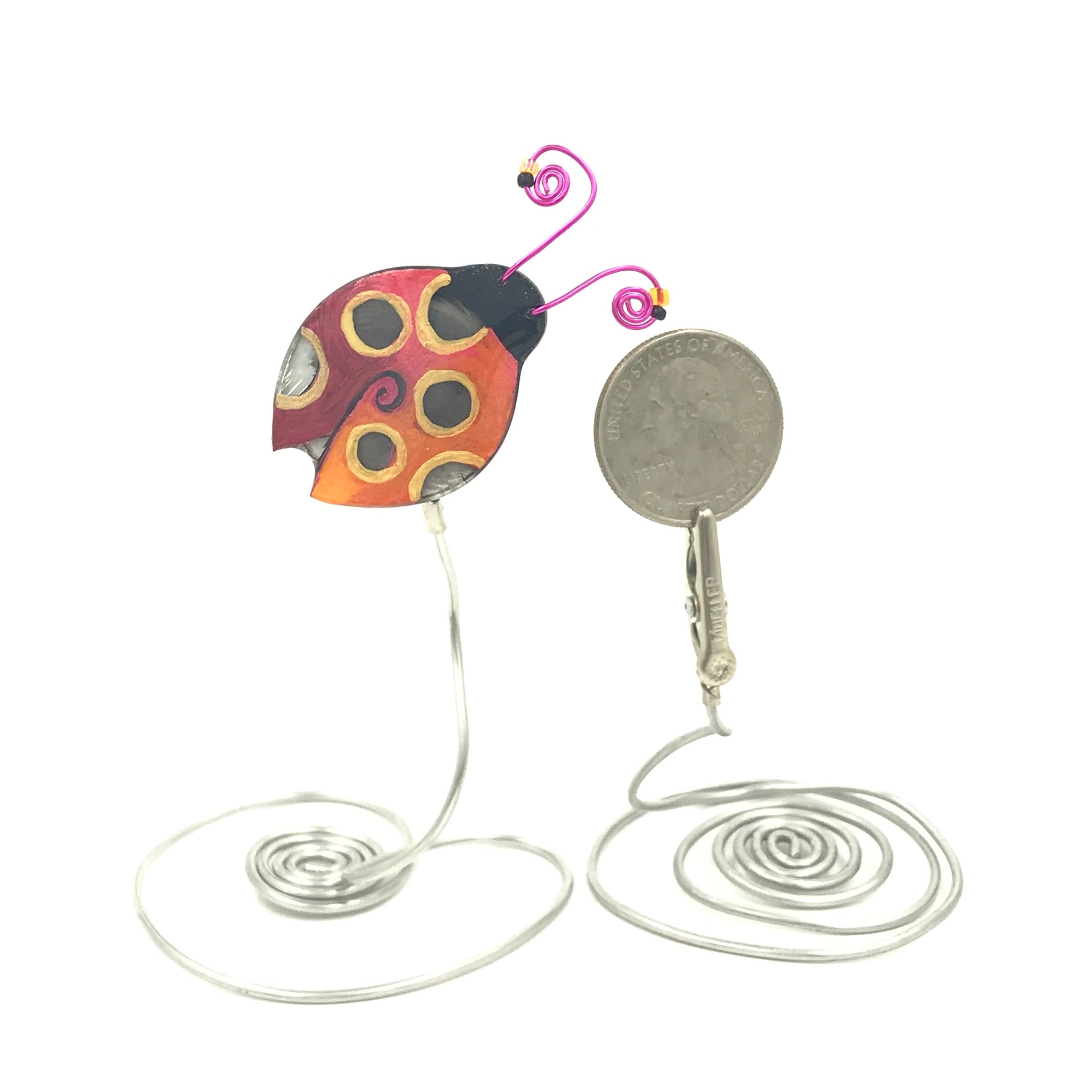 If you are pin challenged, you can have a complimentary stand that will clip on the pinback, just indicate in your special instructions. It’s a little work of art, there are lots of ways to display it.