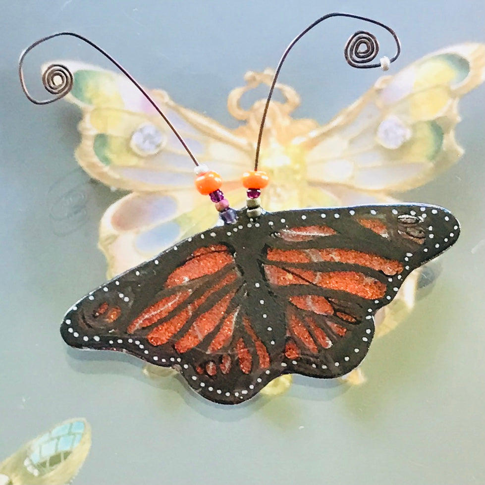 The beautiful monarch butterfly. The complexities of the butterfly are displayed in true splendor with this gorgeous piece. Whether you ordain yourself with this piece to blend into spring; or decide to put a spring in your step in the dead of winter with this little beauty: she's always here for you.