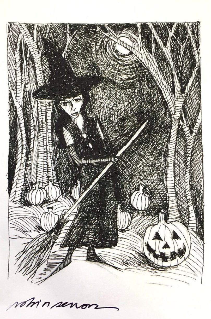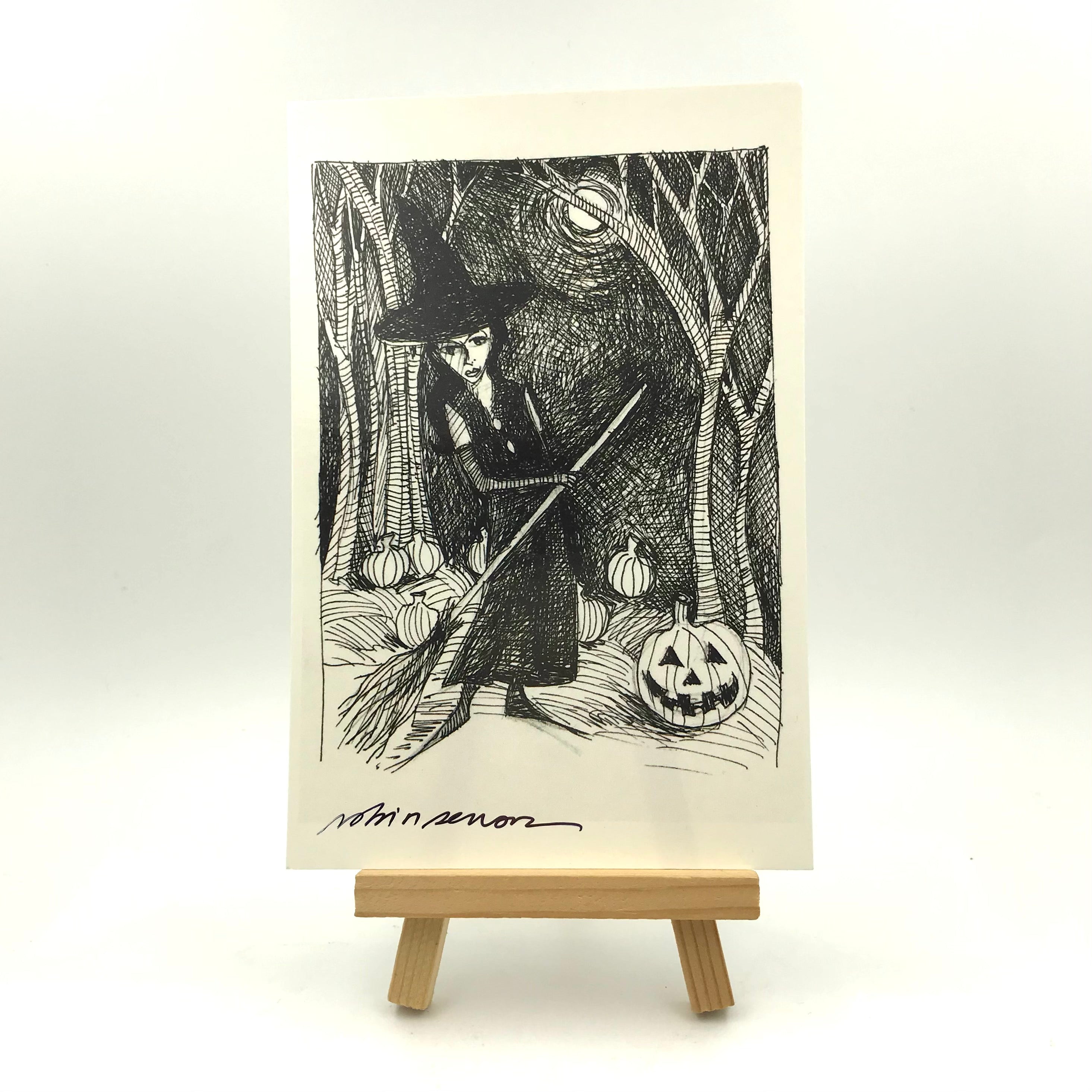 There is seemingly no end to the number of witches I can draw or paint.  Looking at this one now as I write this, it looks like she is sweeping the forest floor:). When a woman creates a piece of artwork, things like that have connotations we didn't intend.