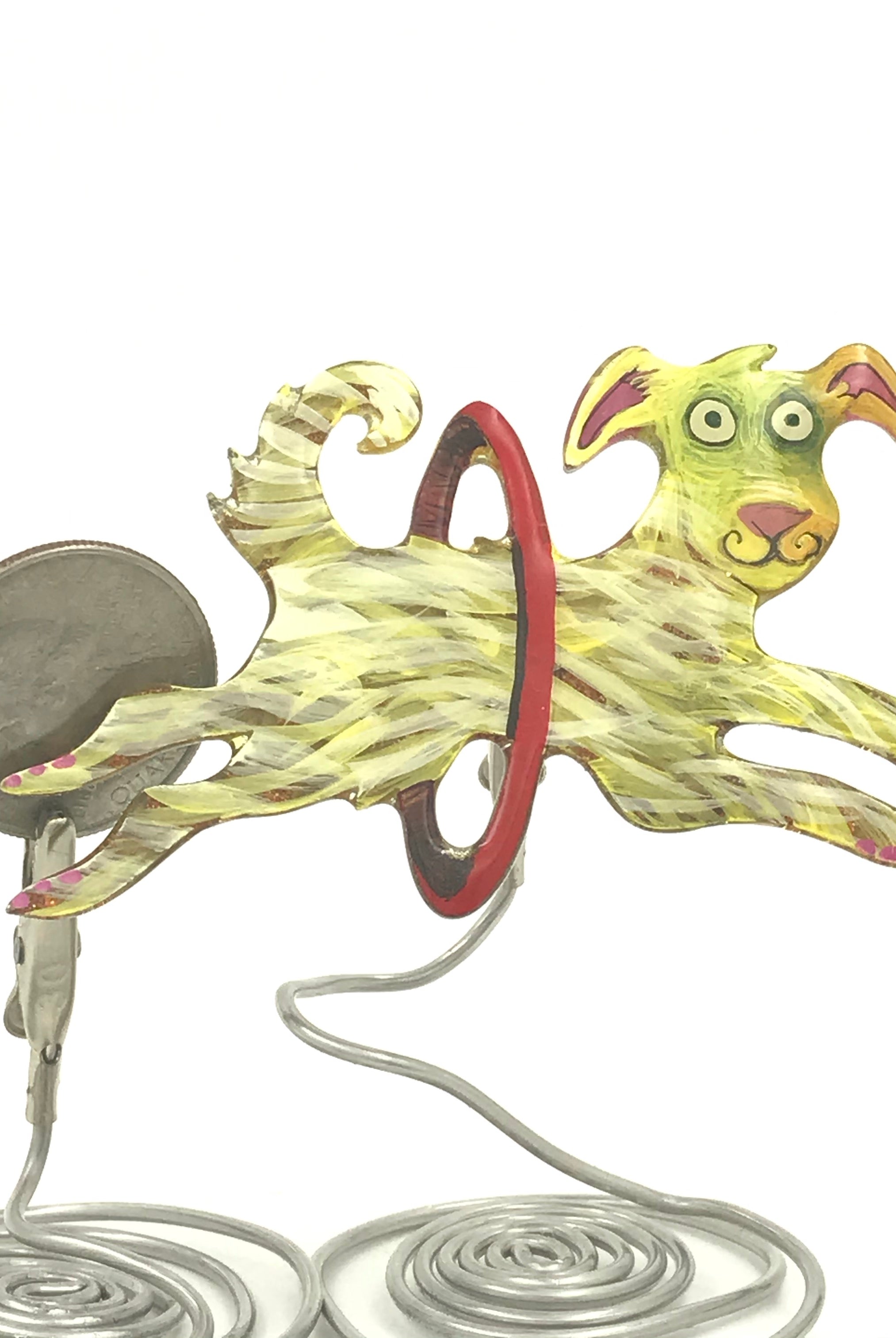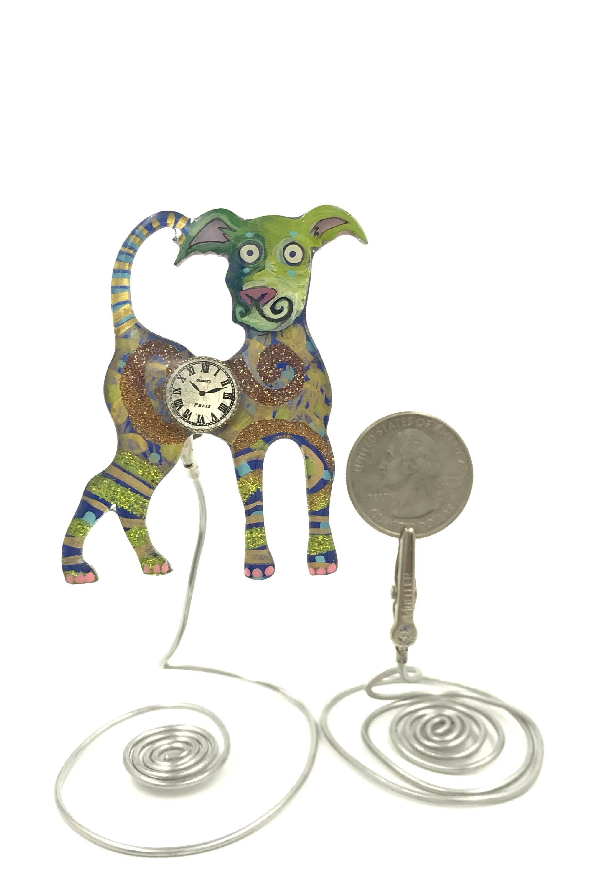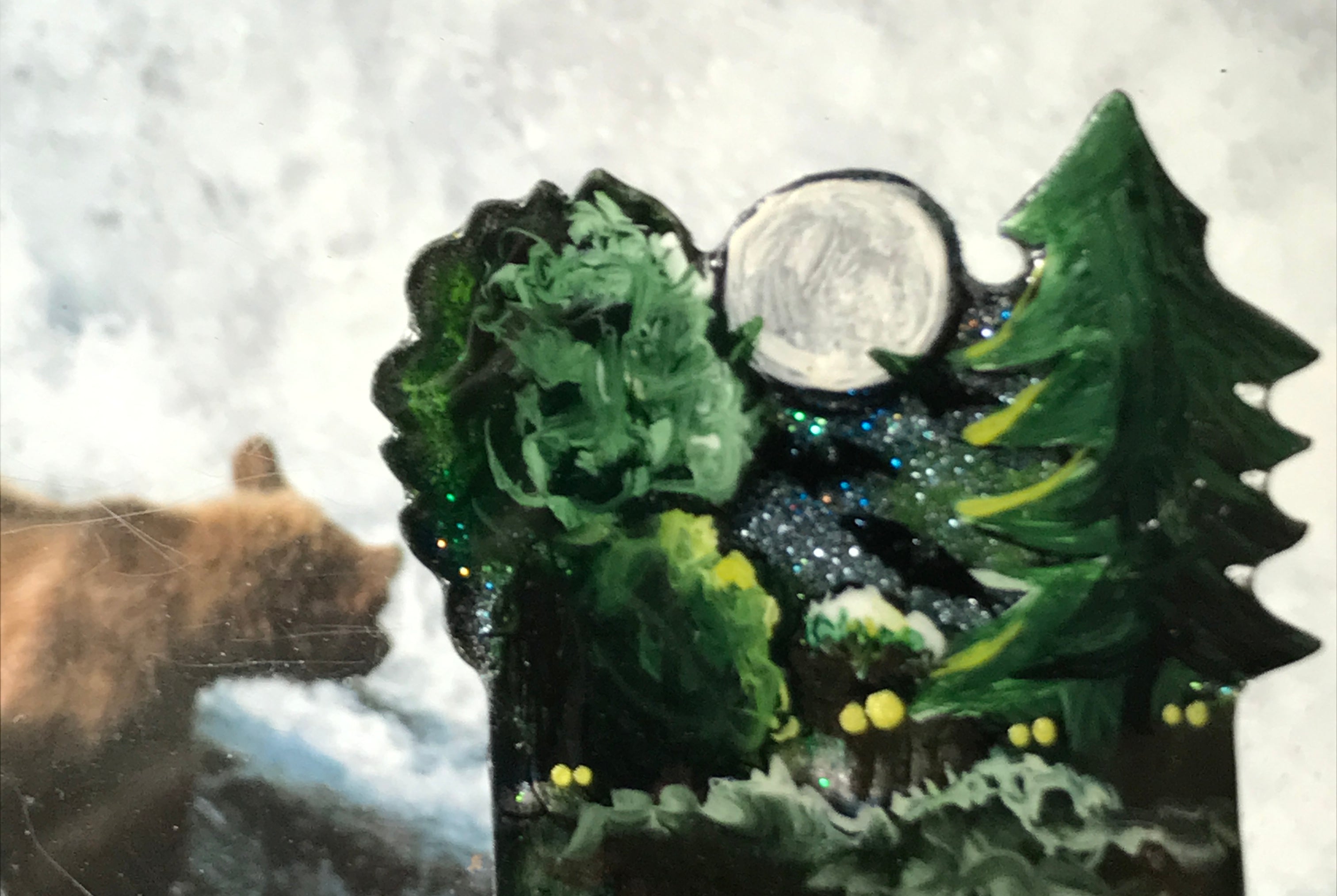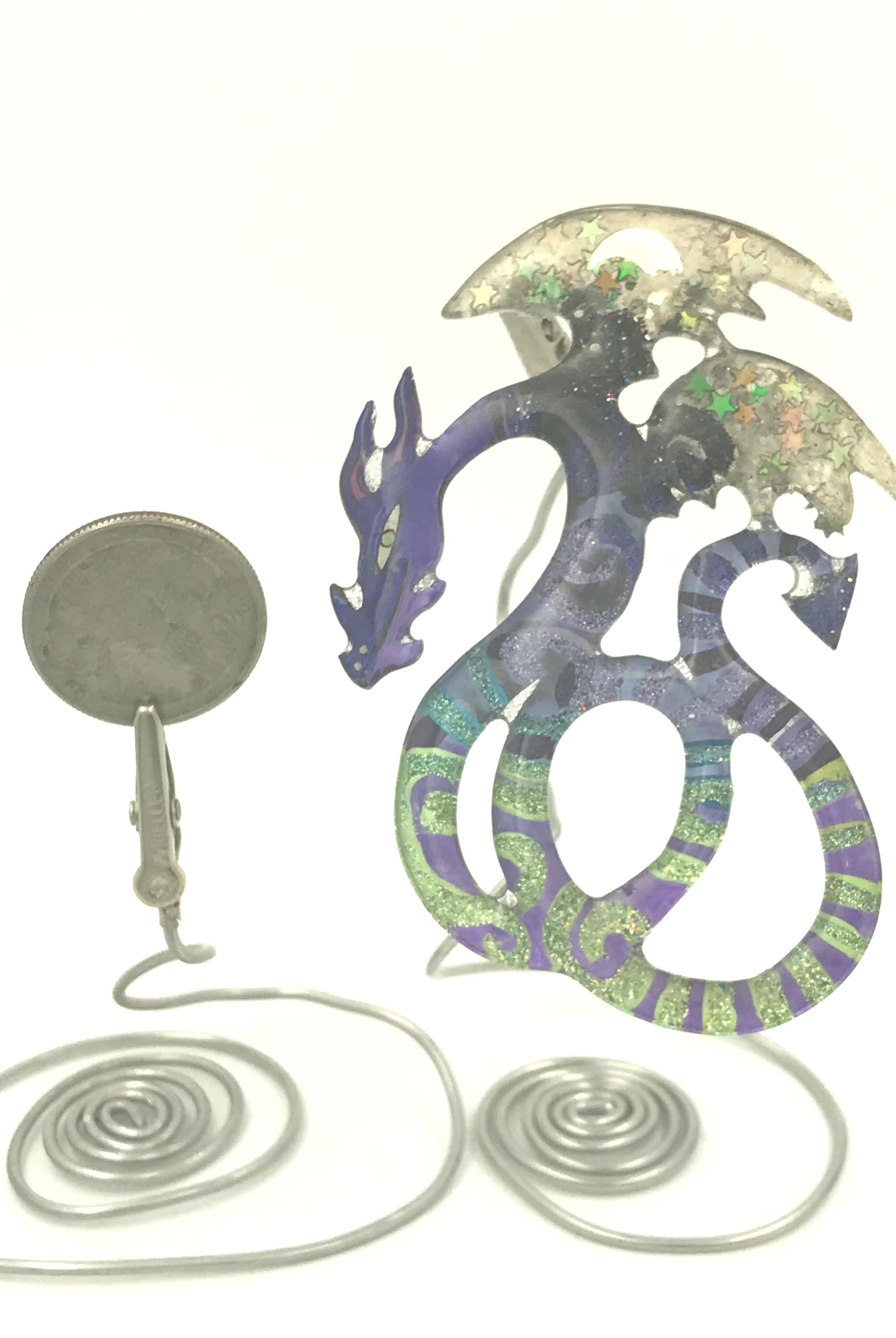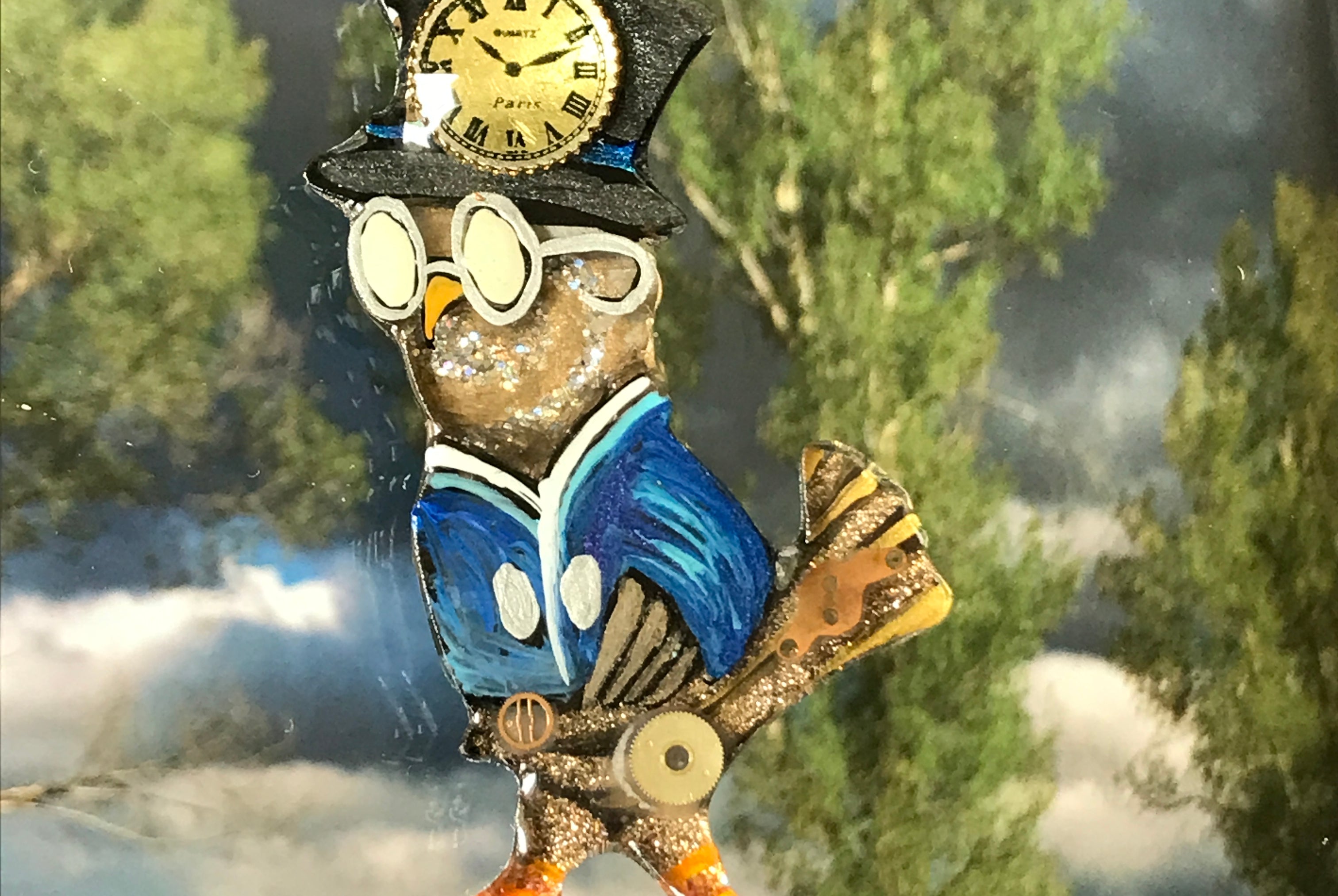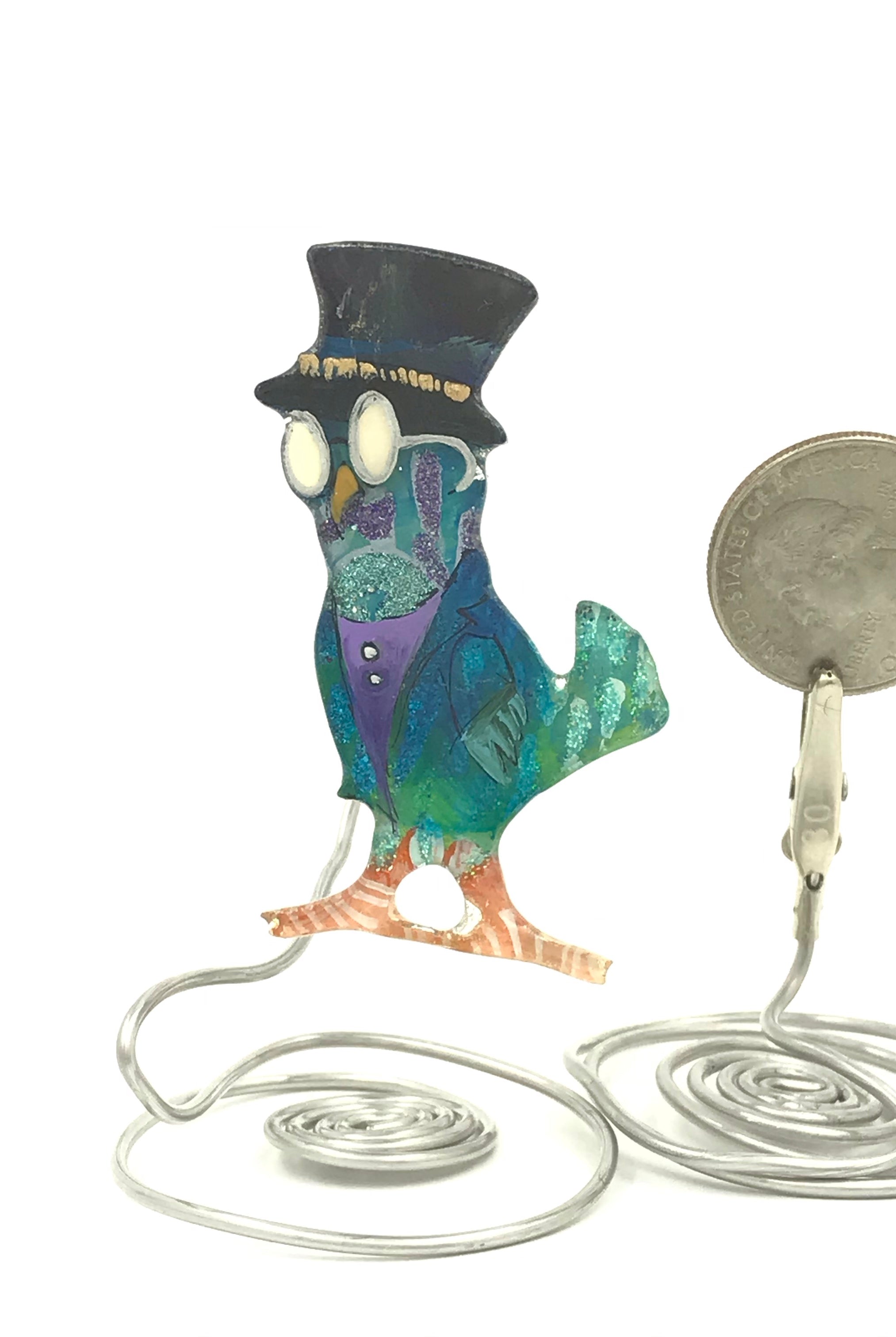 For me, these are little paintings that you can wear. If you are thinking of shrinky-dinks, I'm sure that was in my mind when I came up with lasercutting the shapes and then painting with the same paints I use on canvas. It's a multi layered process that takes a long time. The painting takes the longest, but it is the most rewarding. They are coated with a thick and sturdy glaze that brings out the depth and color.