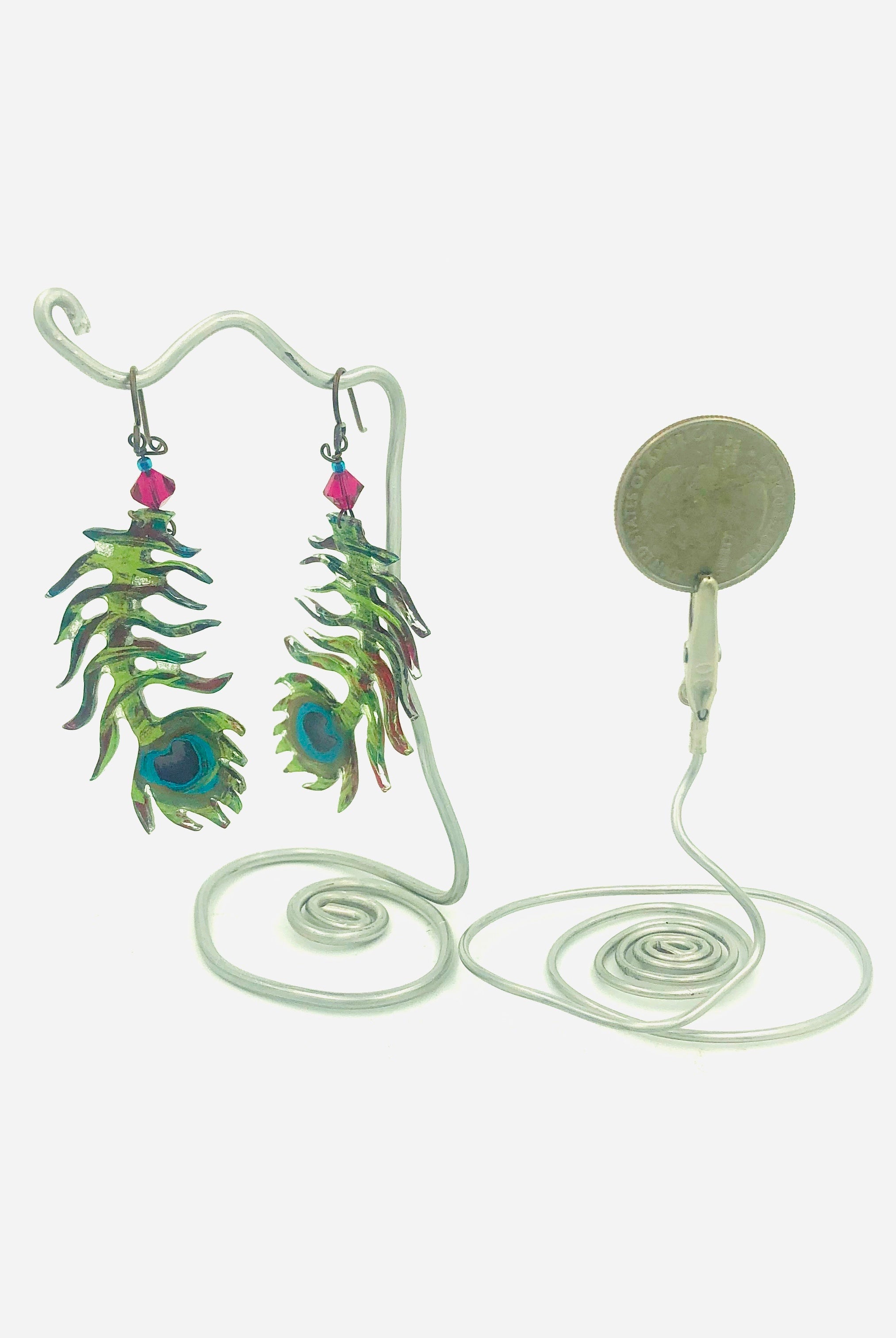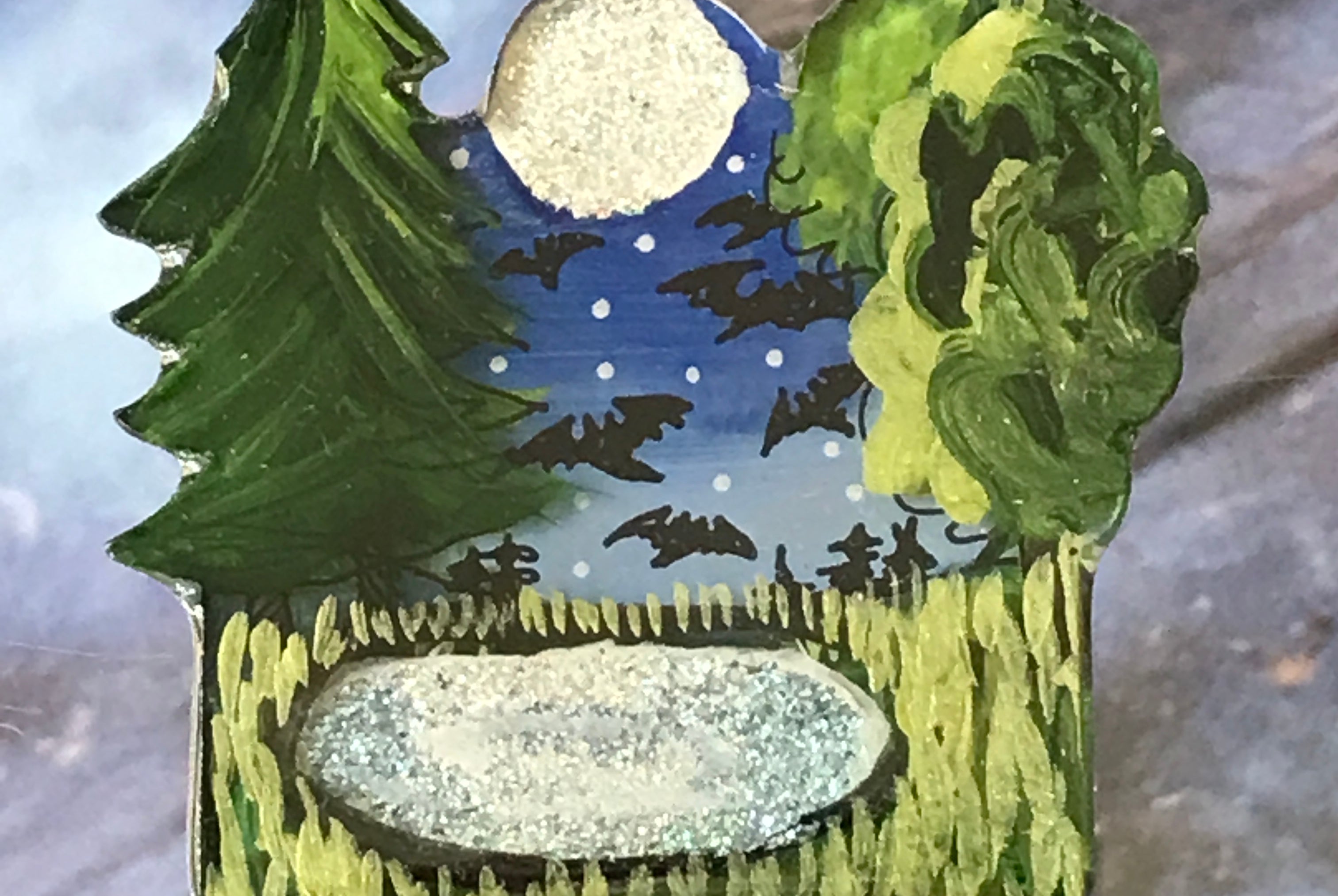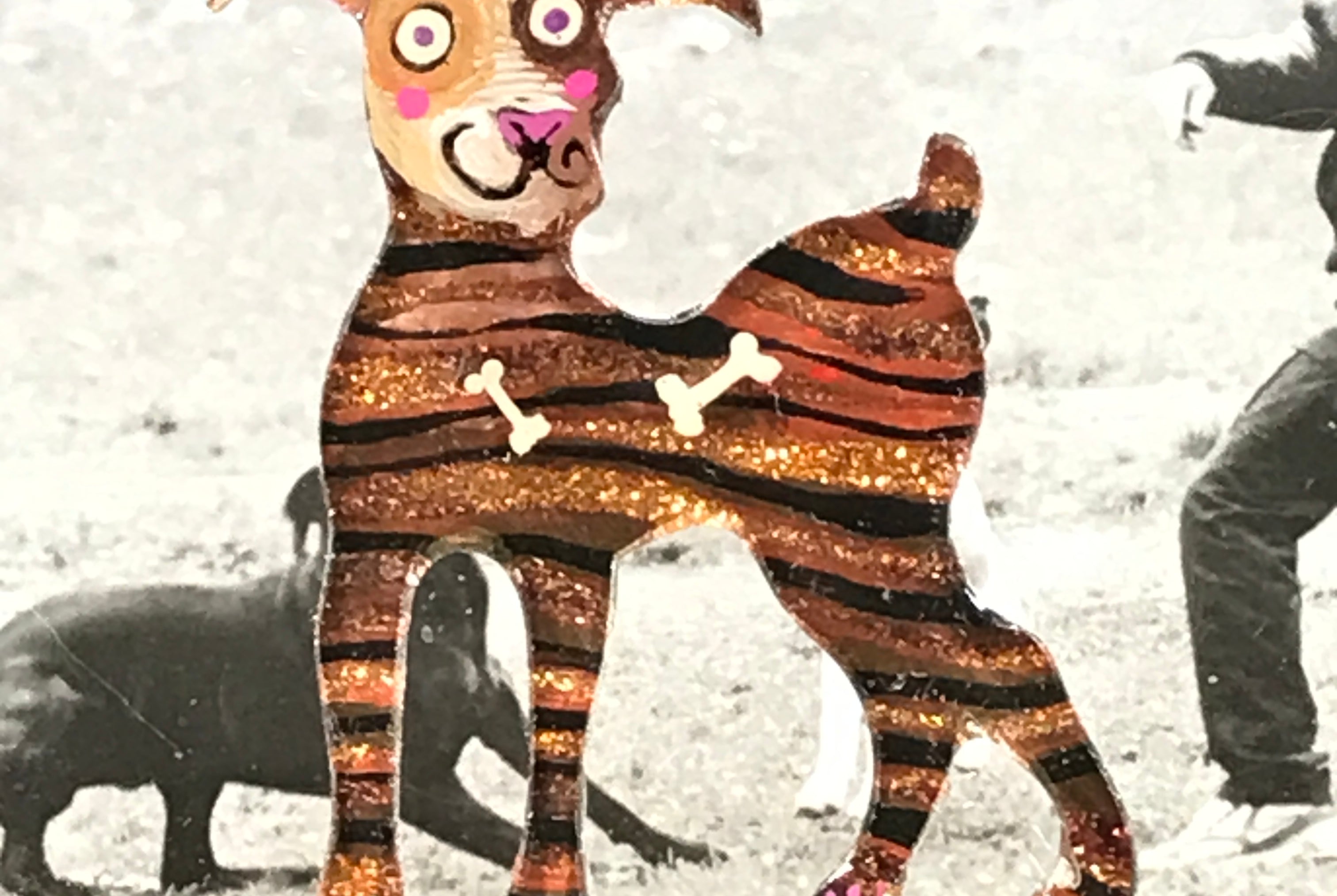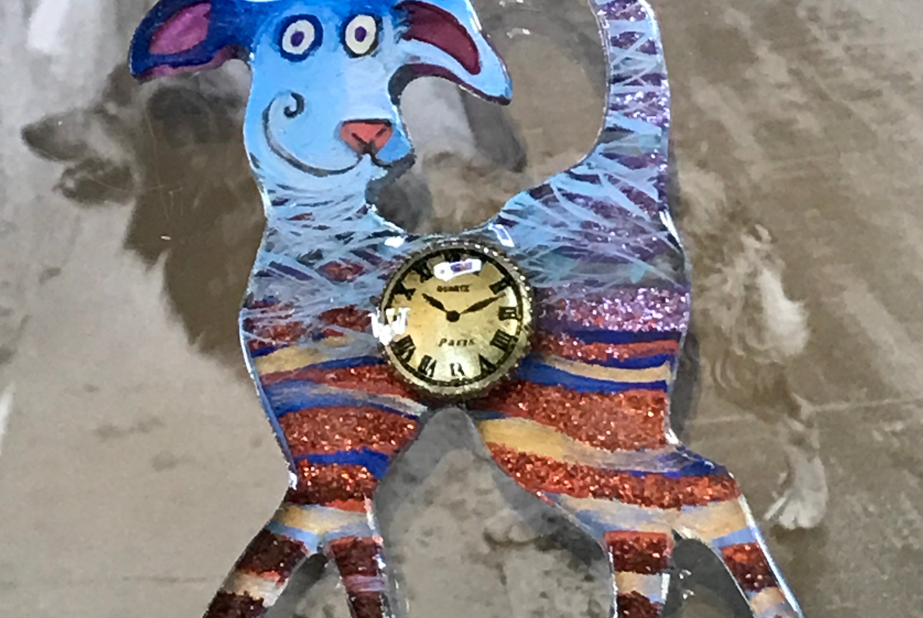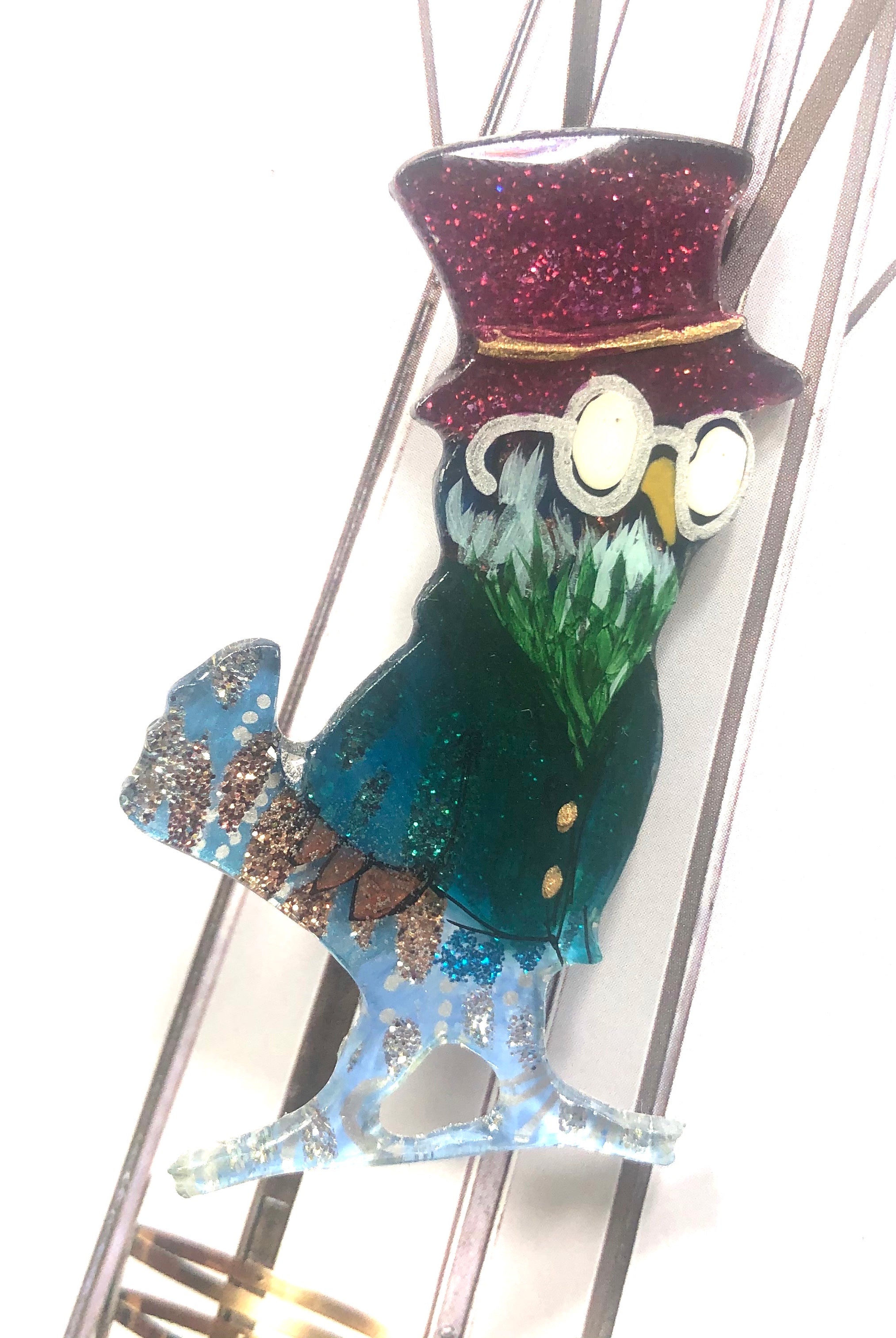 For me, these are little paintings that you can wear. If you are thinking of shrinky-dinks, I'm sure that was in my mind when I came up with lasercutting the shapes and then painting with the same paints I use on canvas. It's a multi layered process that takes a long time. The painting takes the longest, but it is the most rewarding. They are coated with a thick and sturdy glaze that brings out the depth and color.