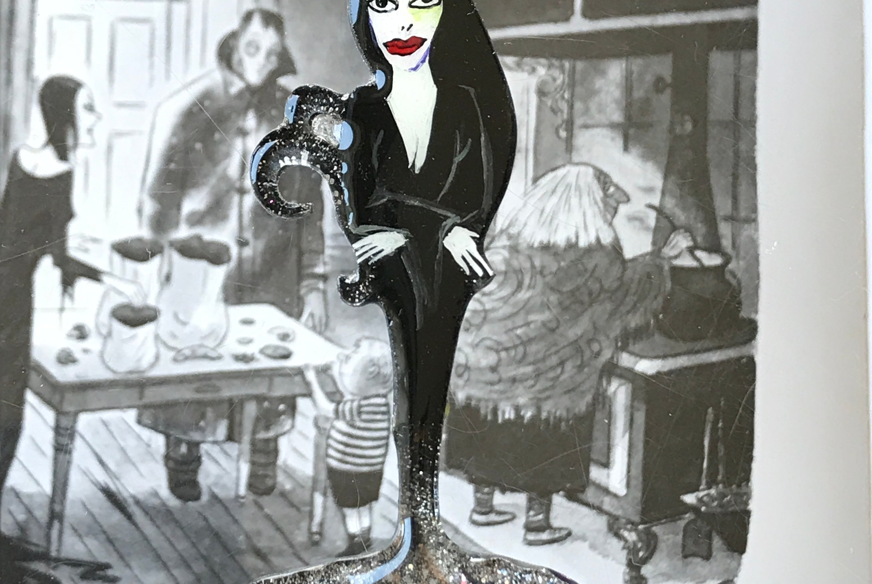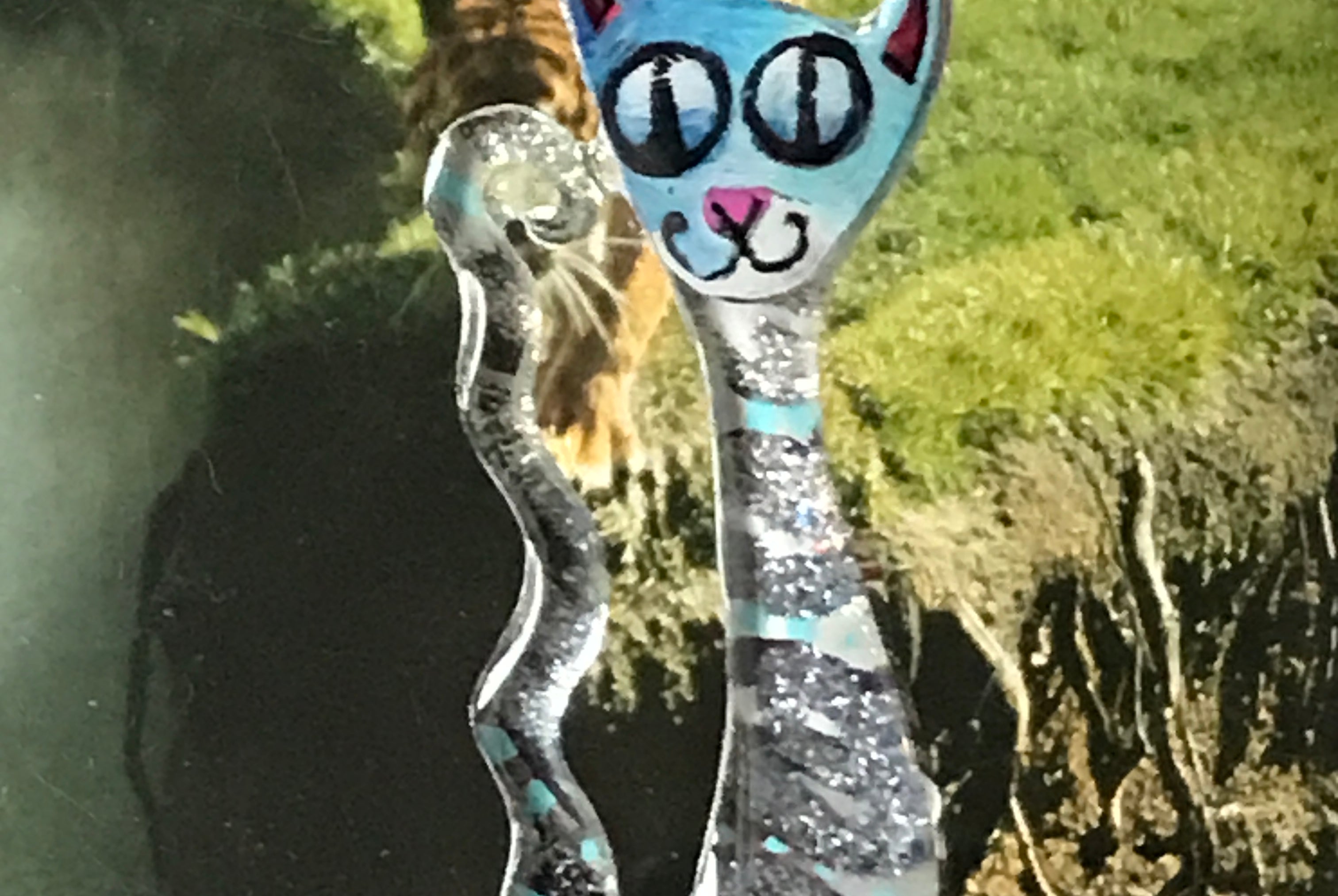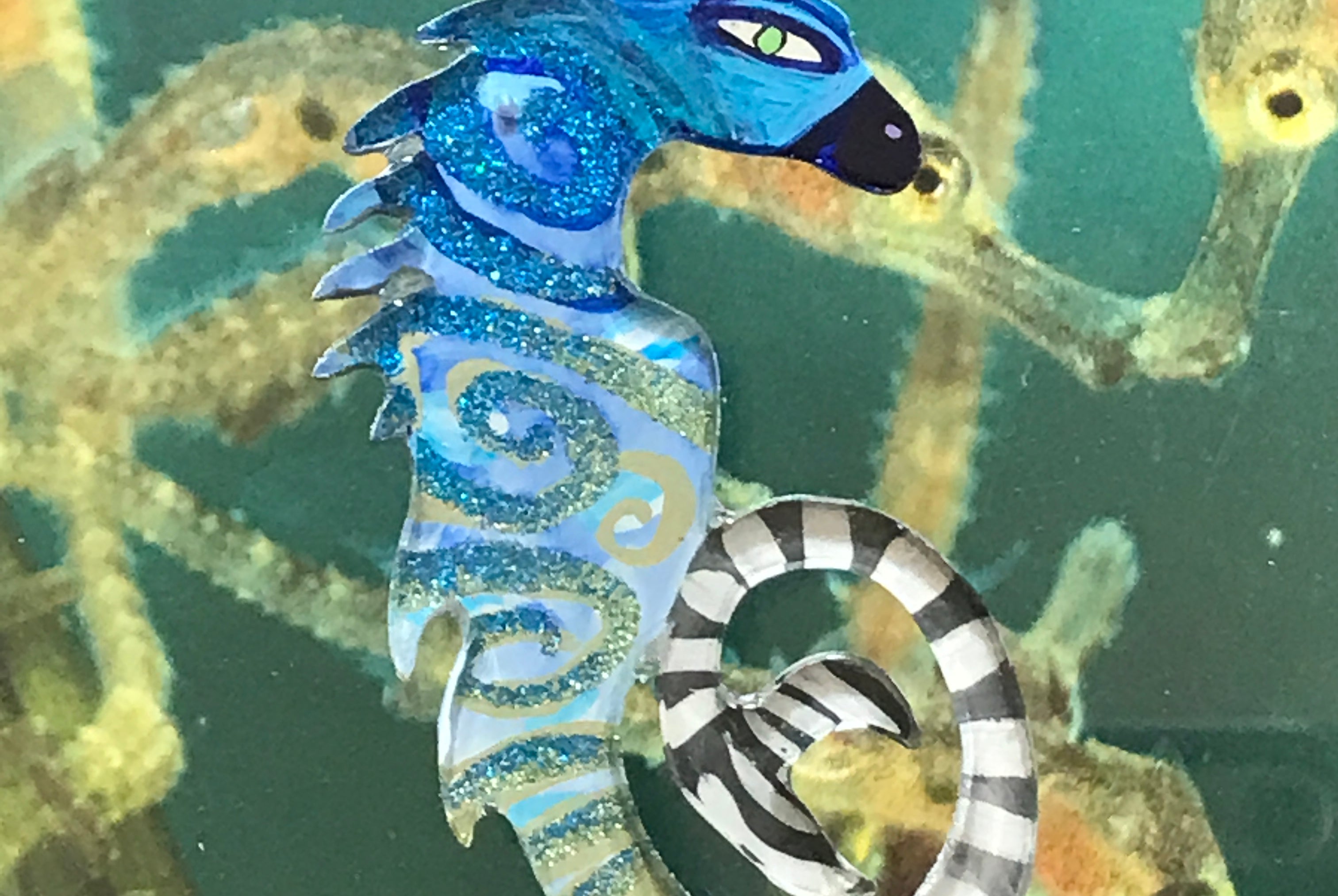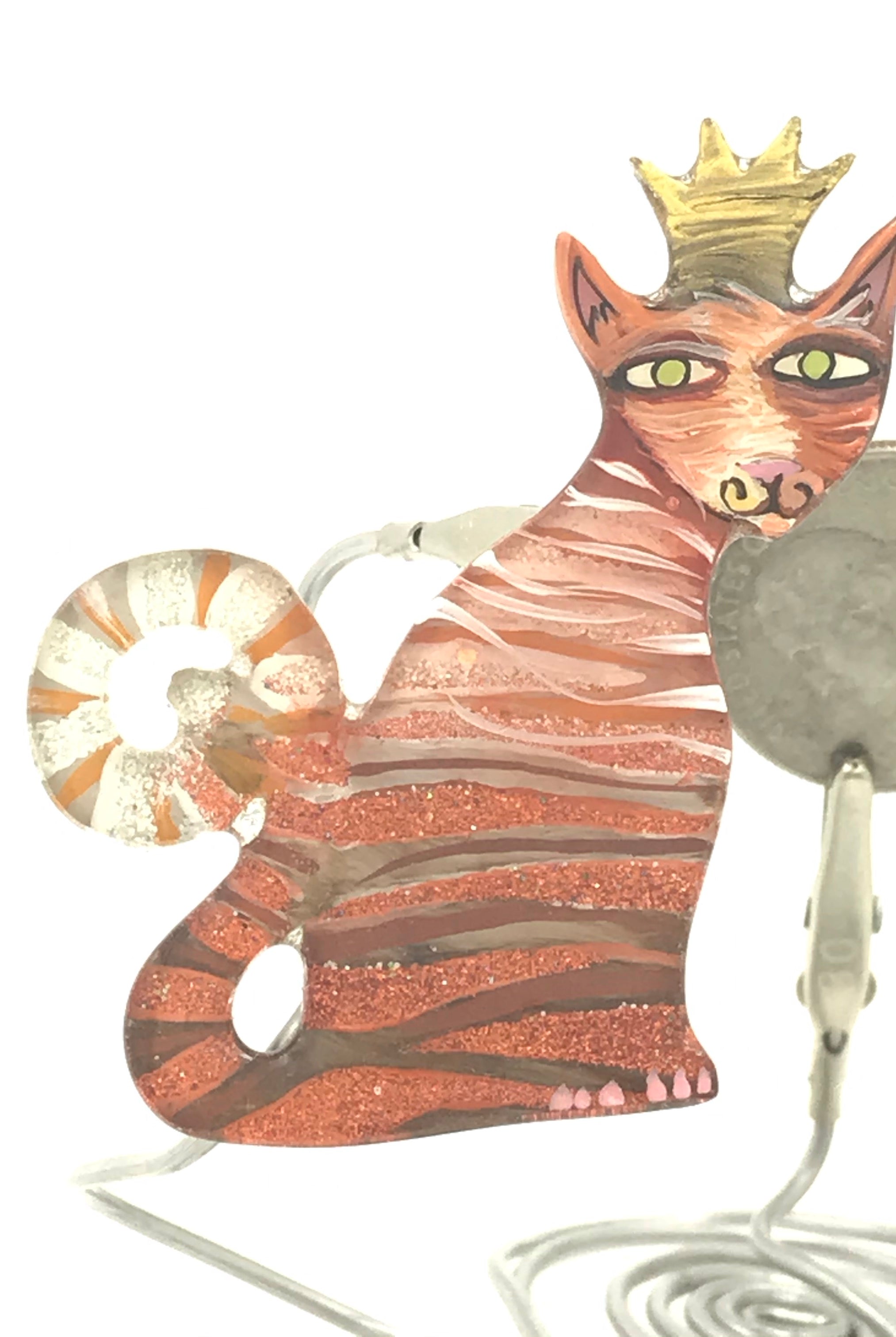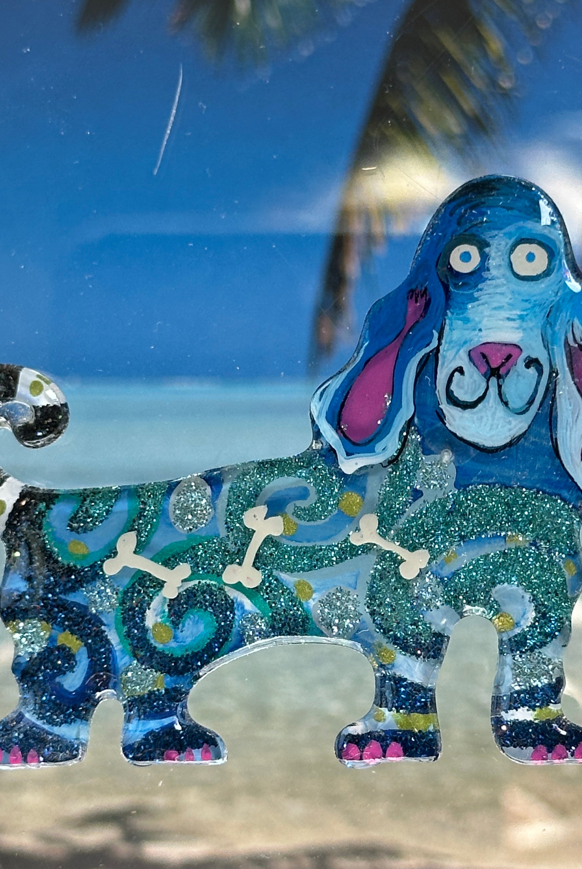 For me, these are little paintings that you can wear. If you are thinking of shrinky-dinks, I'm sure that was in my mind when I came up with lasercutting the shapes and then painting with the same paints I use on canvas. It's a multi layered process that takes a long time. The painting takes the longest, but it is the most rewarding. They are coated with a thick and sturdy glaze that brings out the depth and color.