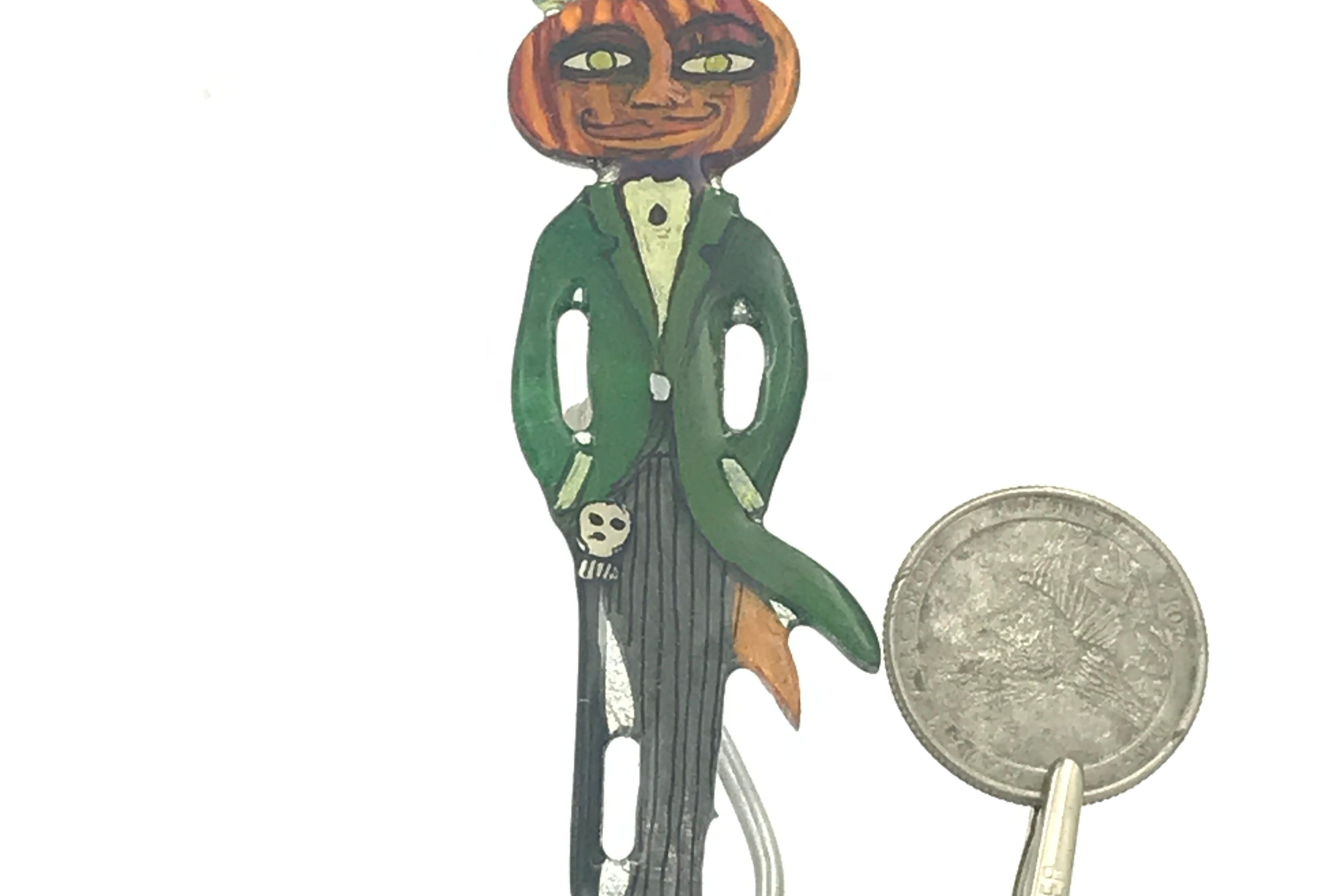 For me, these are little paintings that you can wear. If you are thinking of shrinky-dinks, I'm sure that was in my mind when I came up with lasercutting the shapes and then painting with the same paints I use on canvas. It's a multi layered process that takes a long time. The painting takes the longest, but it is the most rewarding. They are coated with a thick and sturdy glaze that brings out the depth and color.