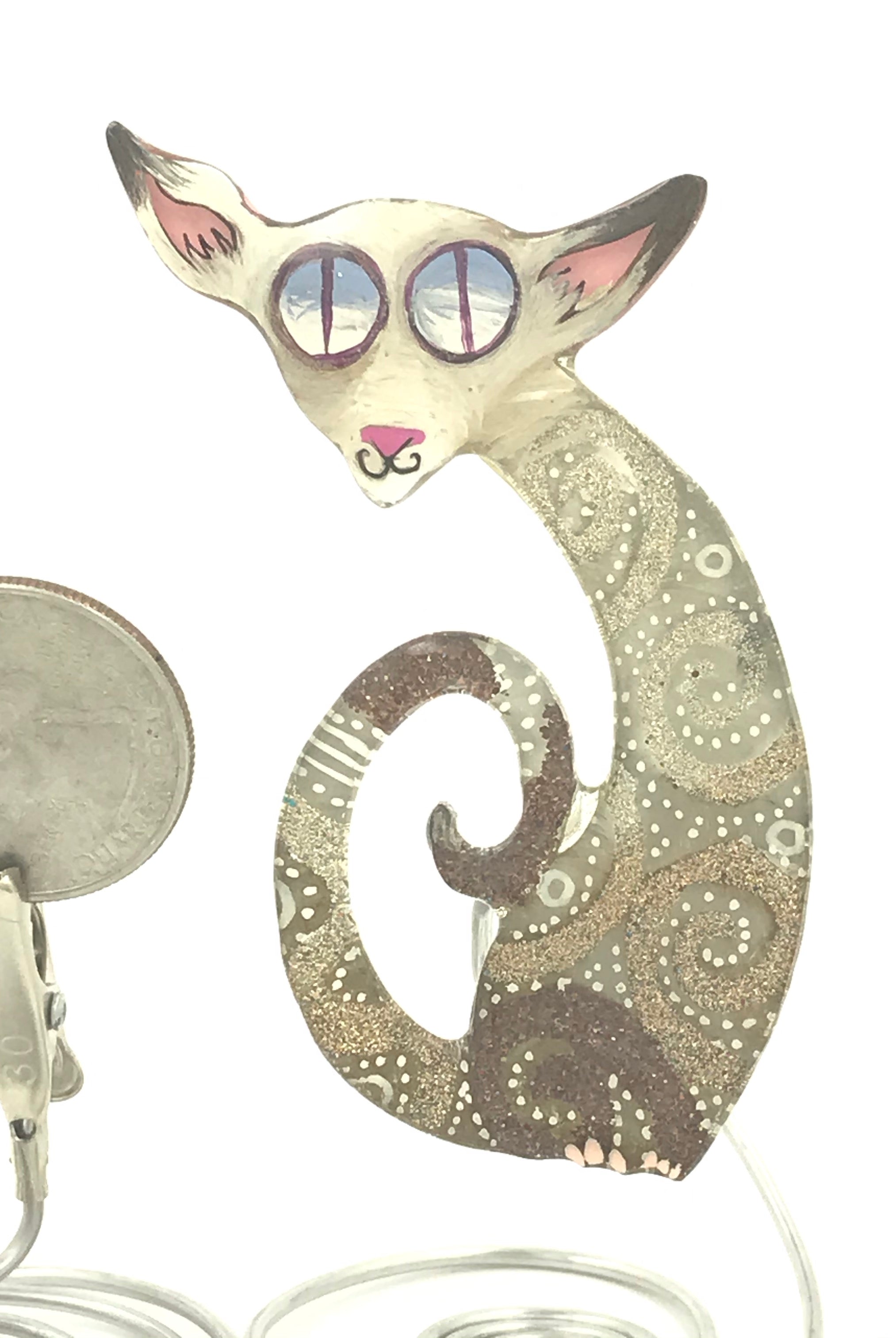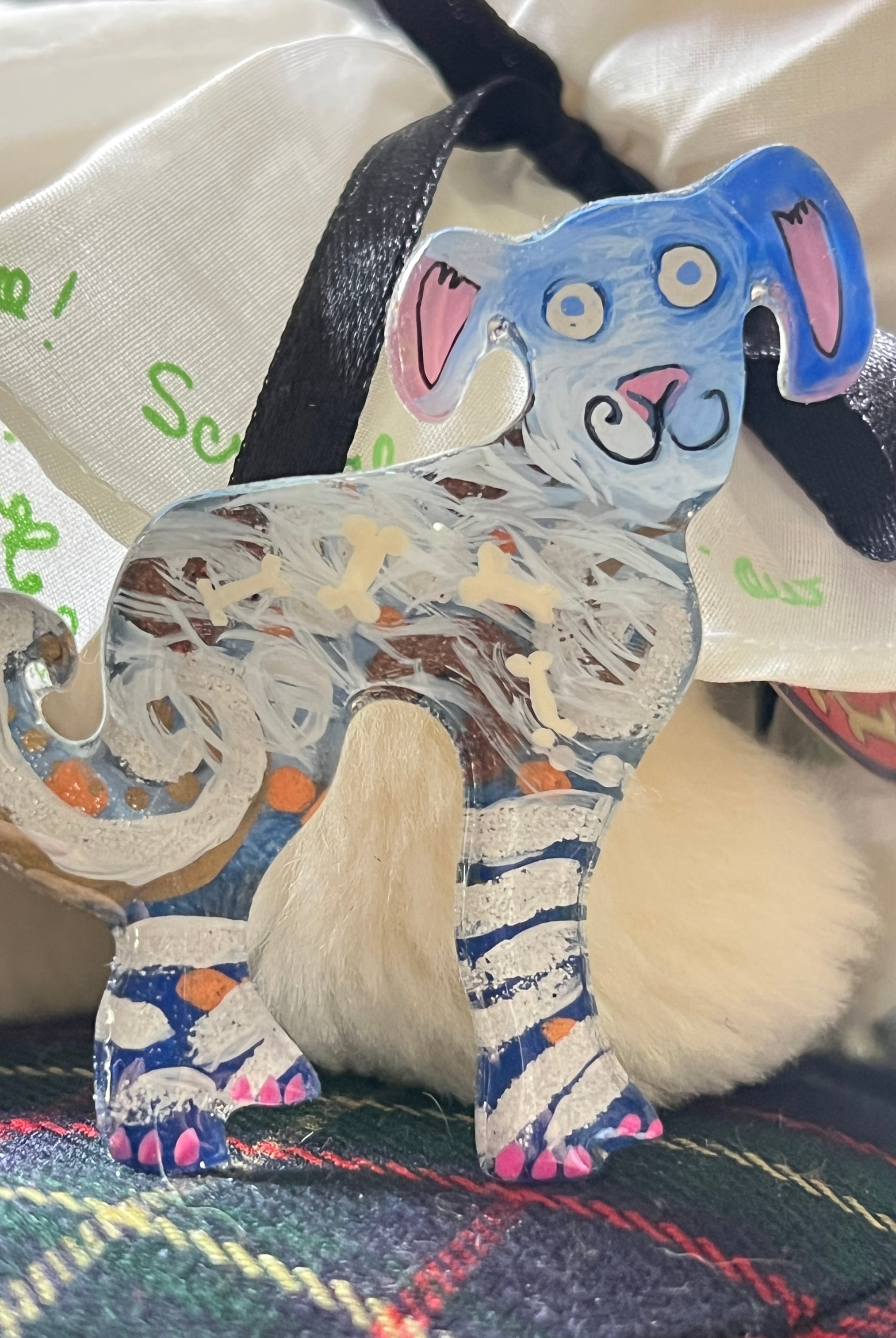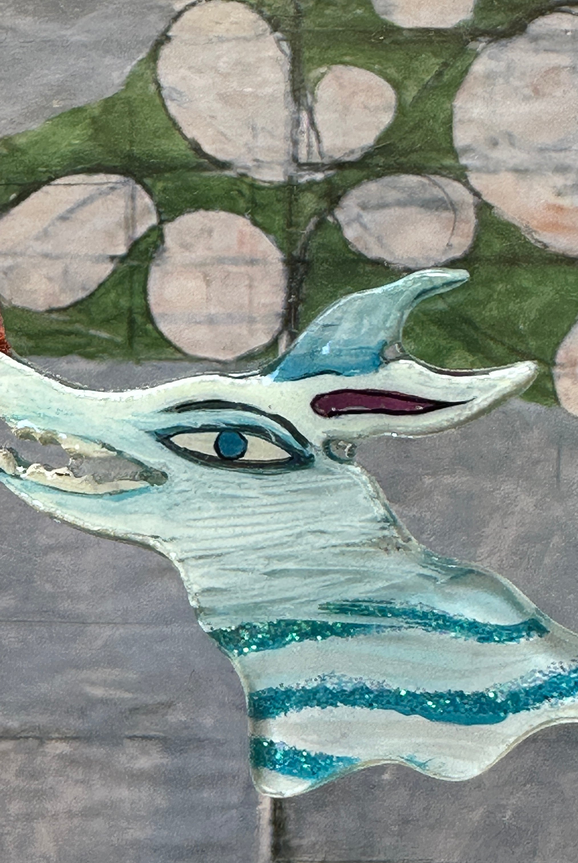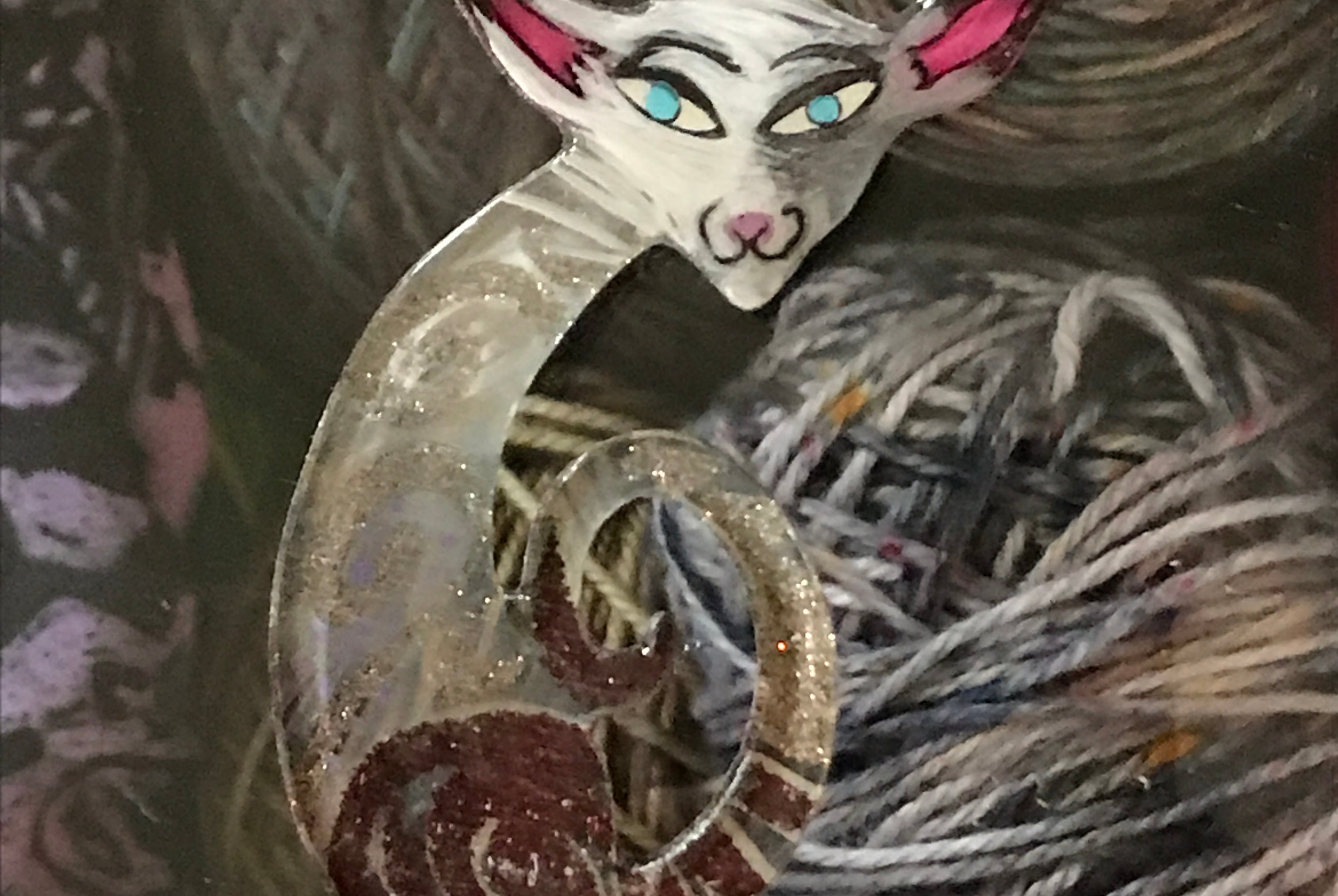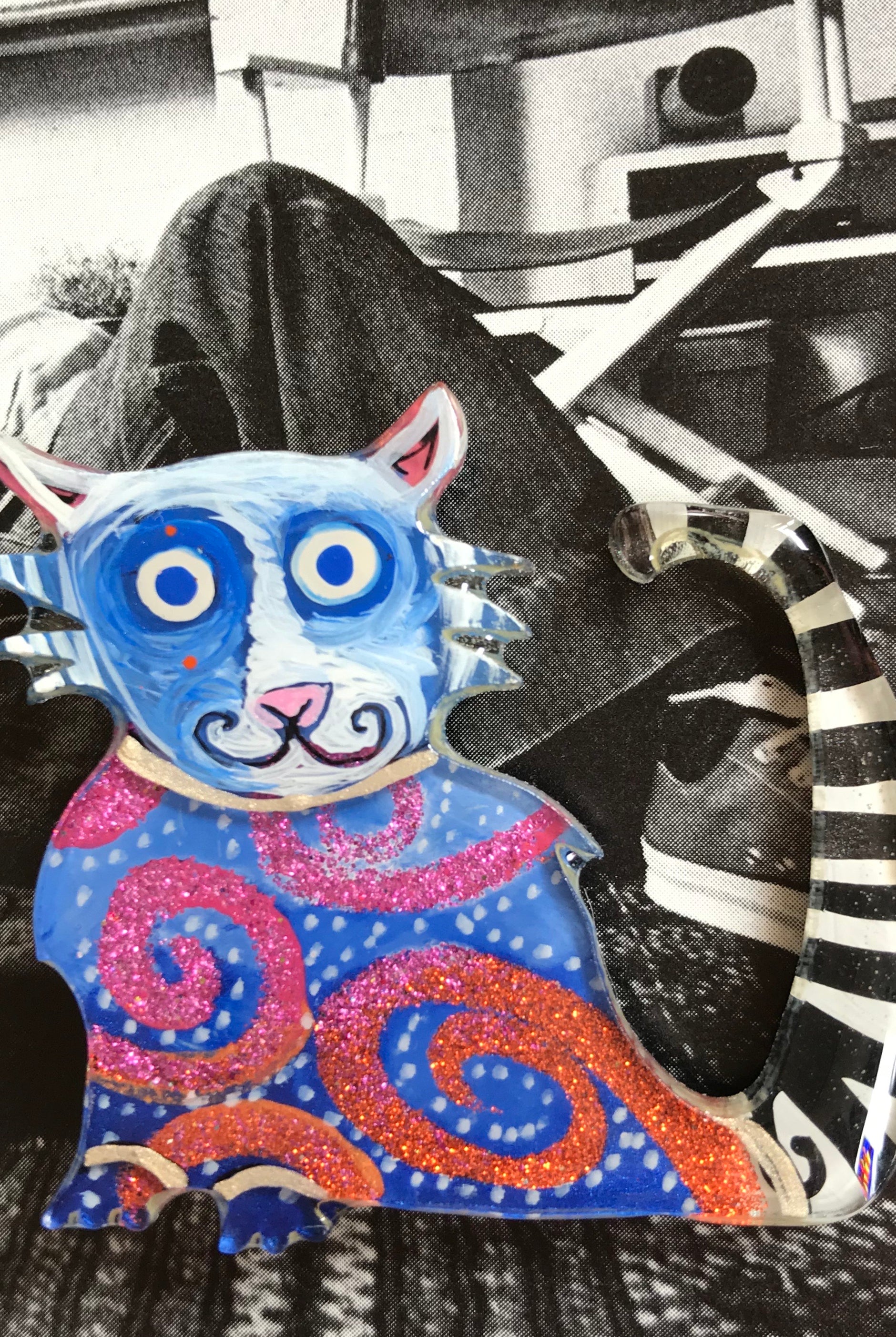 For me, these are little paintings that you can wear. If you are thinking of shrinky-dinks, I'm sure that was in my mind when I came up with lasercutting the shapes and then painting with the same paints I use on canvas. It's a multi layered process that takes a long time. The painting takes the longest, but it is the most rewarding. They are coated with a thick and sturdy glaze that brings out the depth and color.