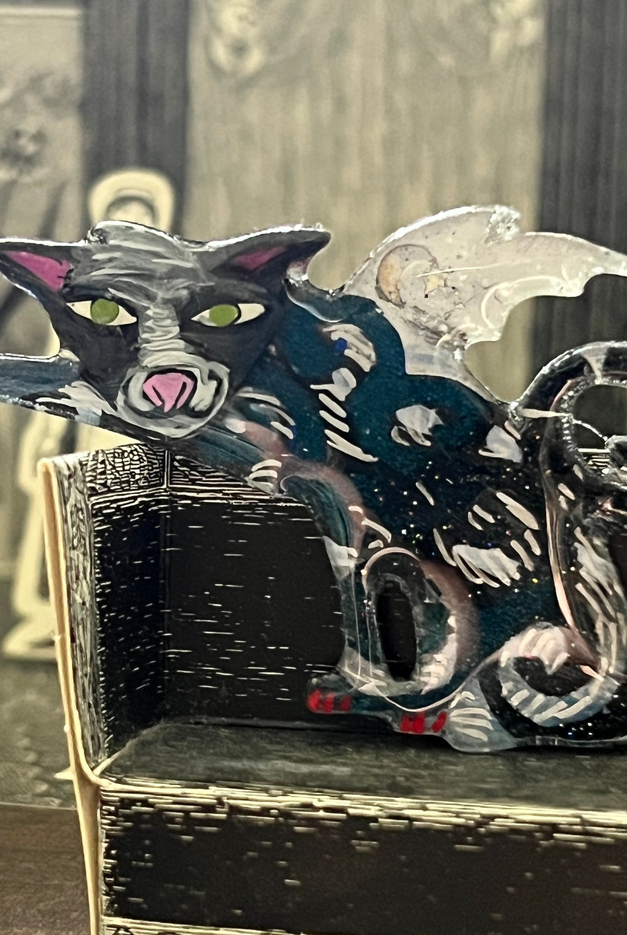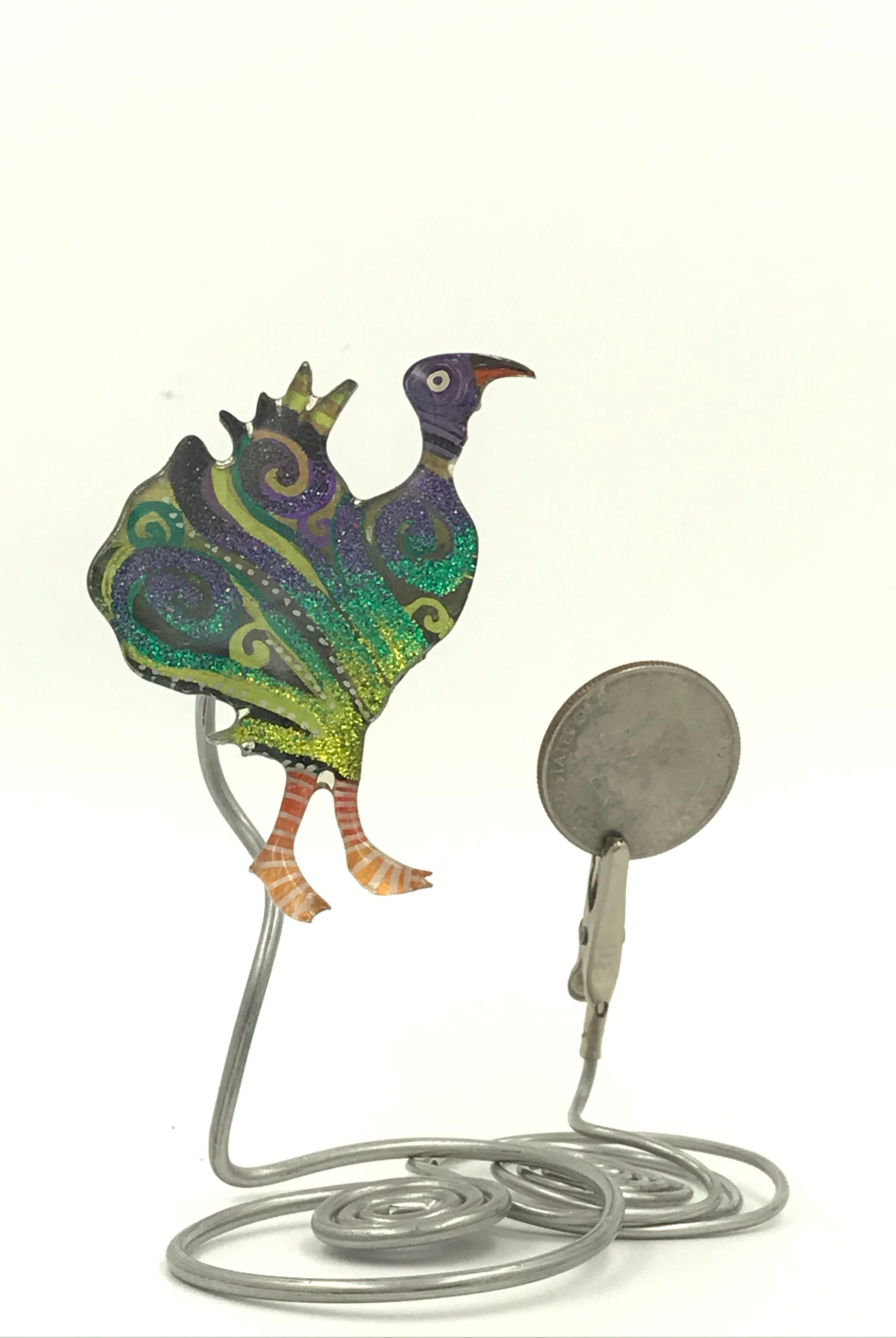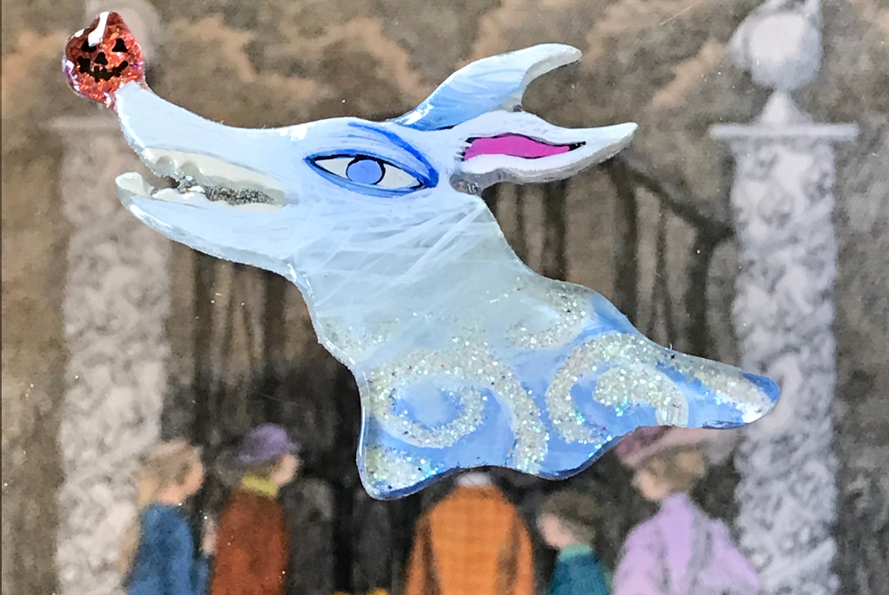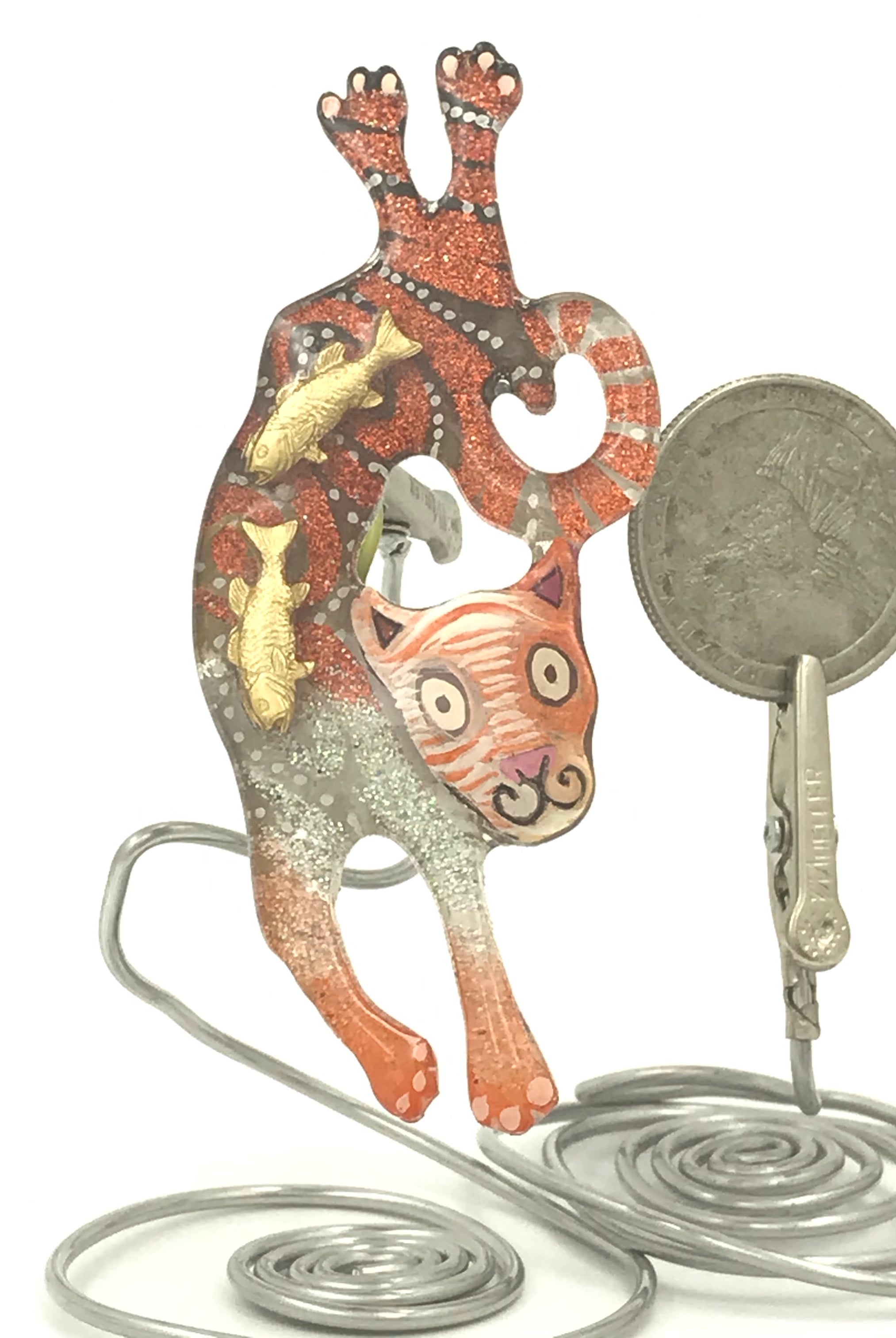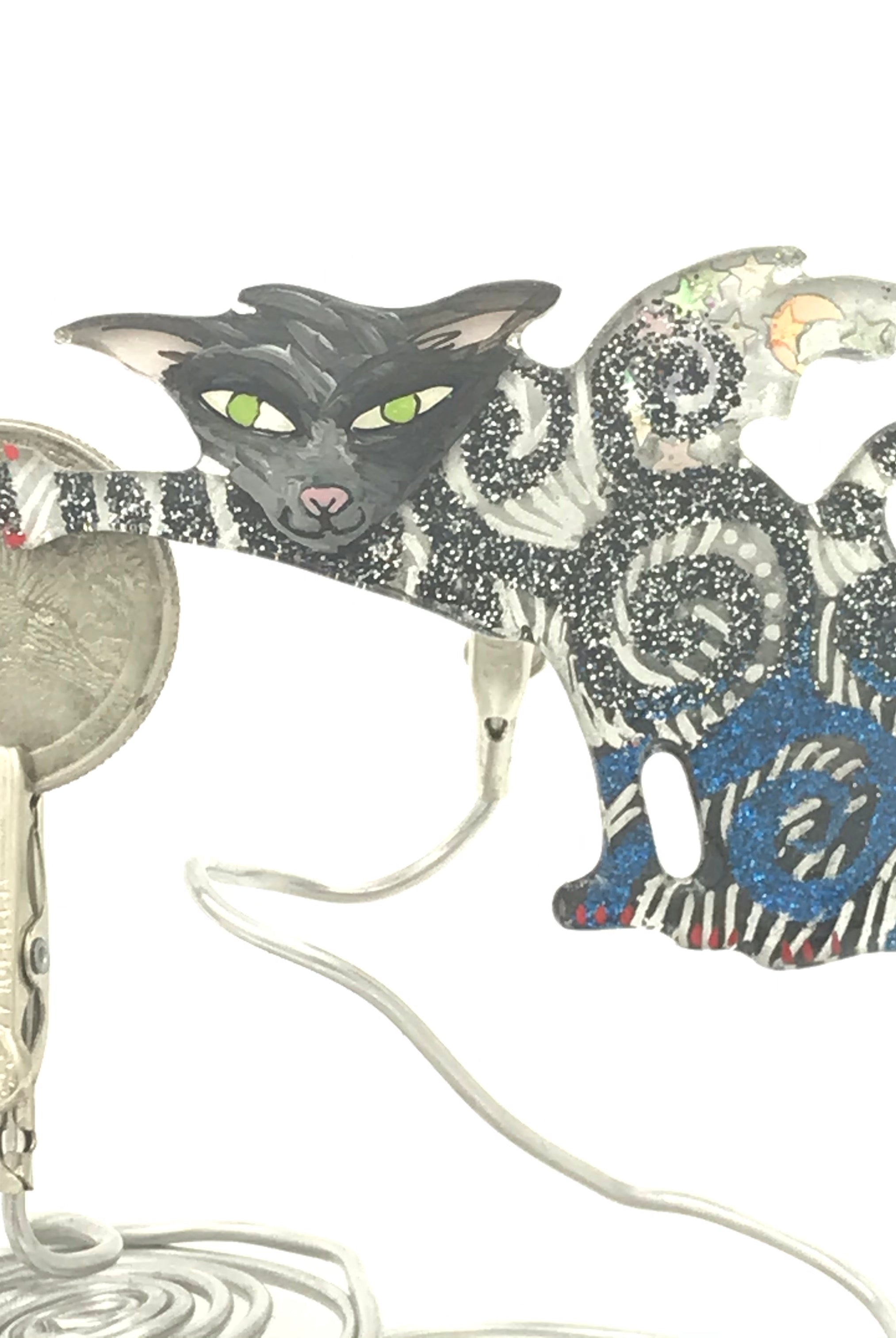 For me, these are little paintings that you can wear. If you are thinking of shrinky-dinks, I'm sure that was in my mind when I came up with lasercutting the shapes and then painting with the same paints I use on canvas. It's a multi layered process that takes a long time. The painting takes the longest, but it is the most rewarding. They are coated with a thick and sturdy glaze that brings out the depth and color.