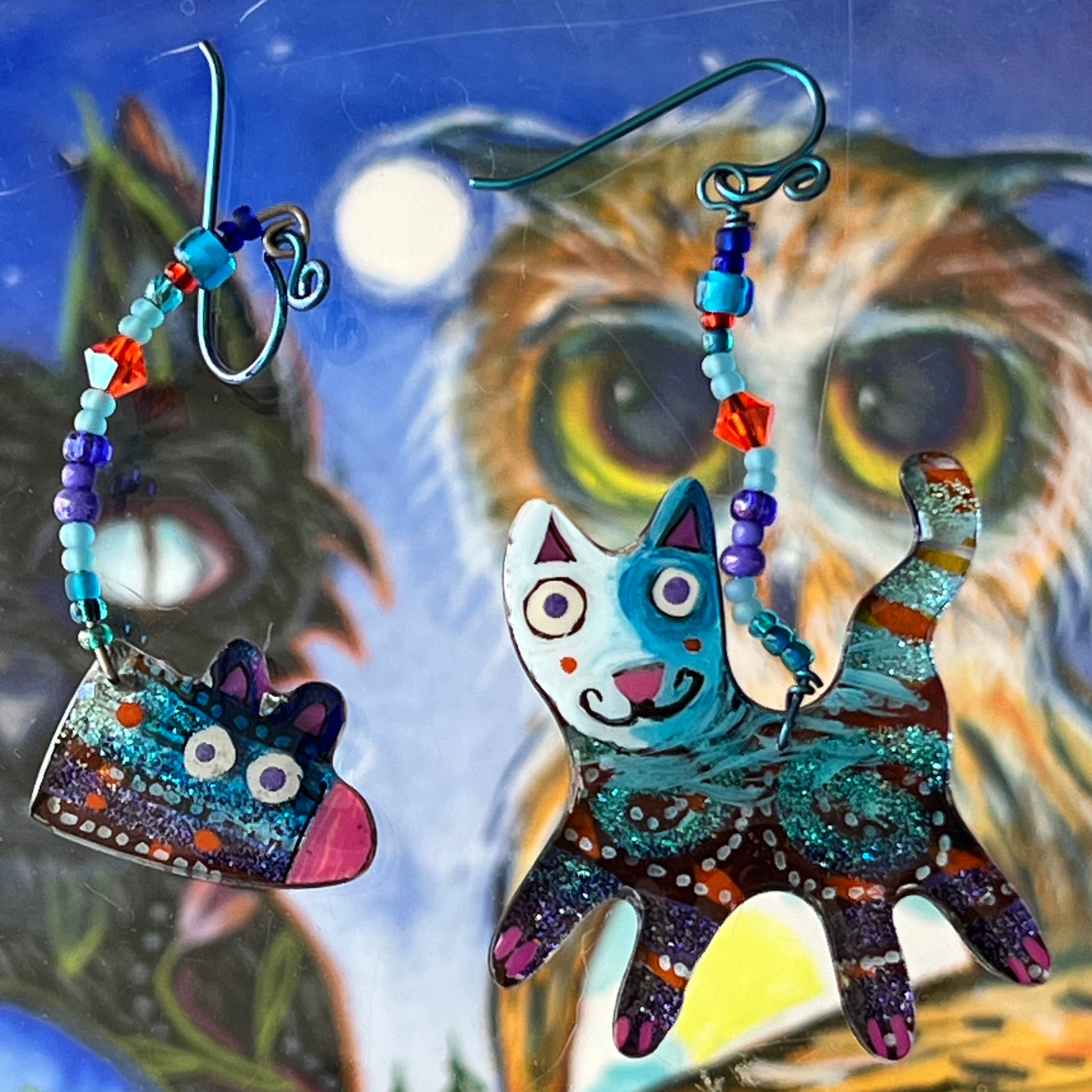 Each one of these whimsical pins and earrings are hand-painted by me, Robin Senour, so there are no two alike.