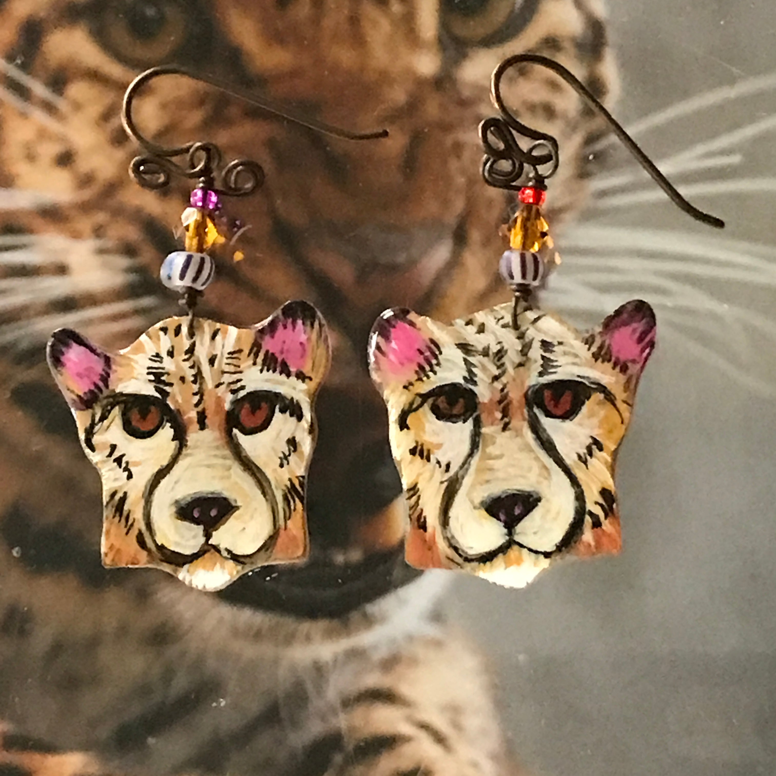 Each one of these whimsical pins and earrings are hand-painted by me, Robin Senour, so there are no two alike.