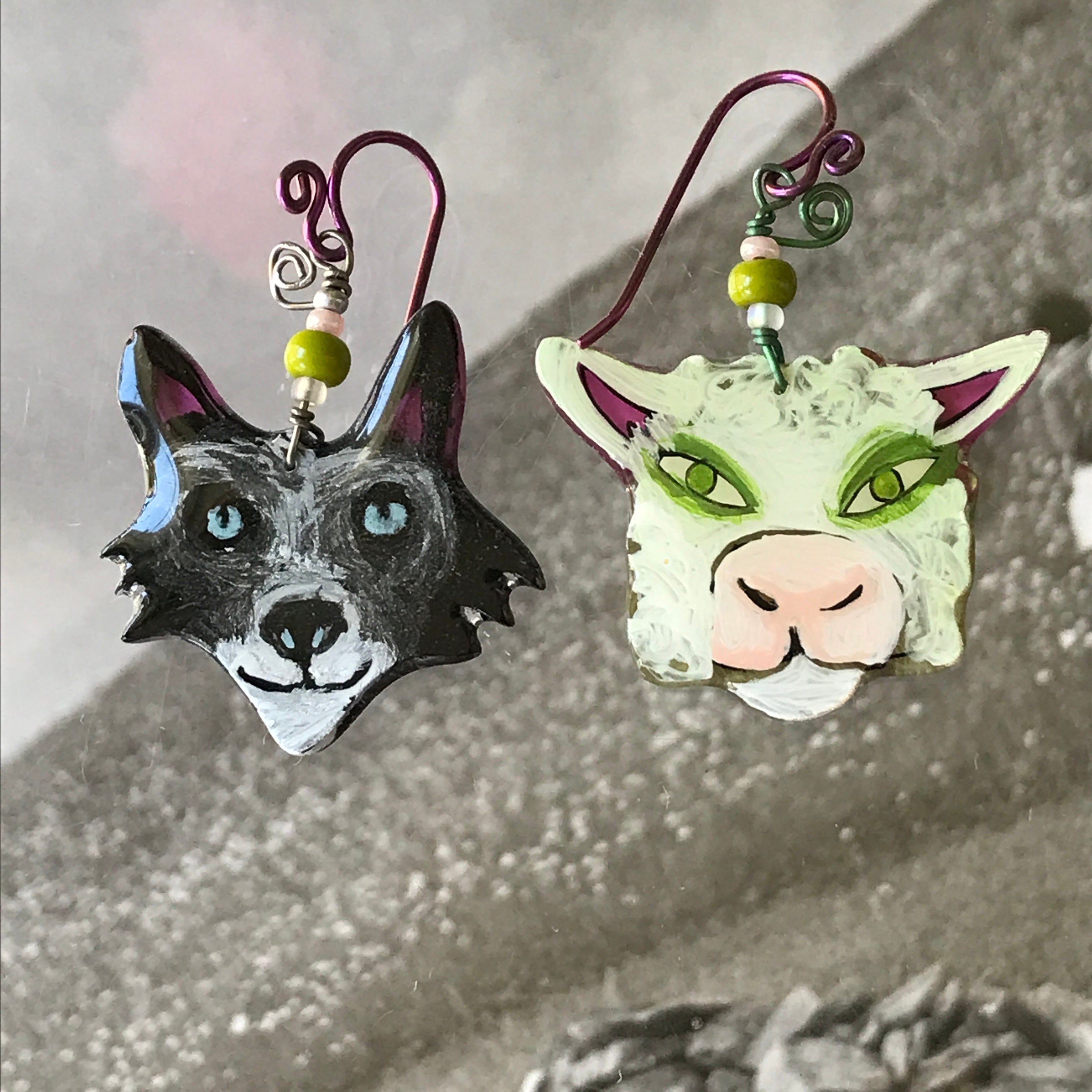 Each one of these whimsical pins and earrings are hand-painted by me, Robin Senour, so there are no two alike.