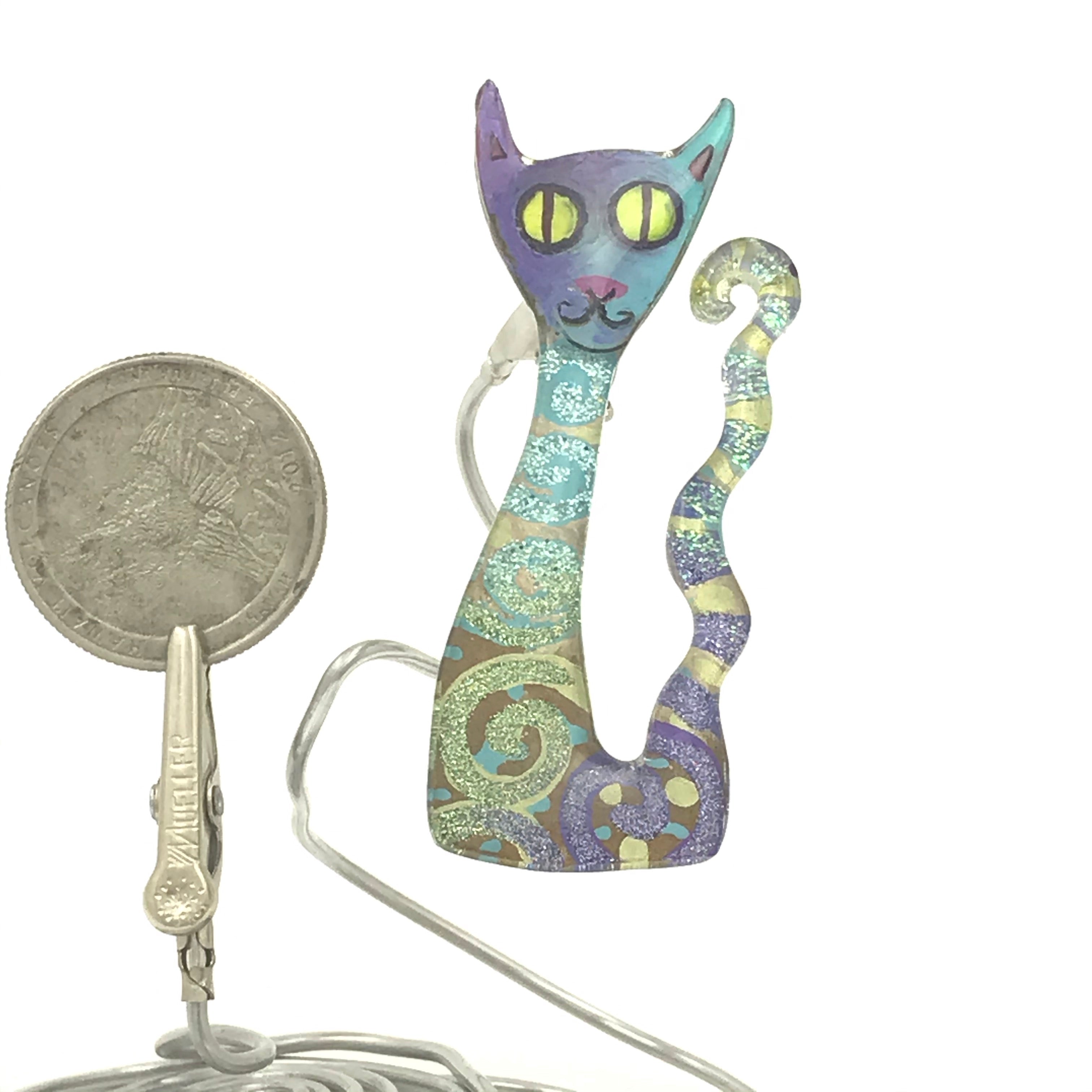 If you are pin challenged, you can have a complimentary stand that will clip on the pinback, just indicate in your special instructions. It’s a little work of art, there are lots of ways to display it.
