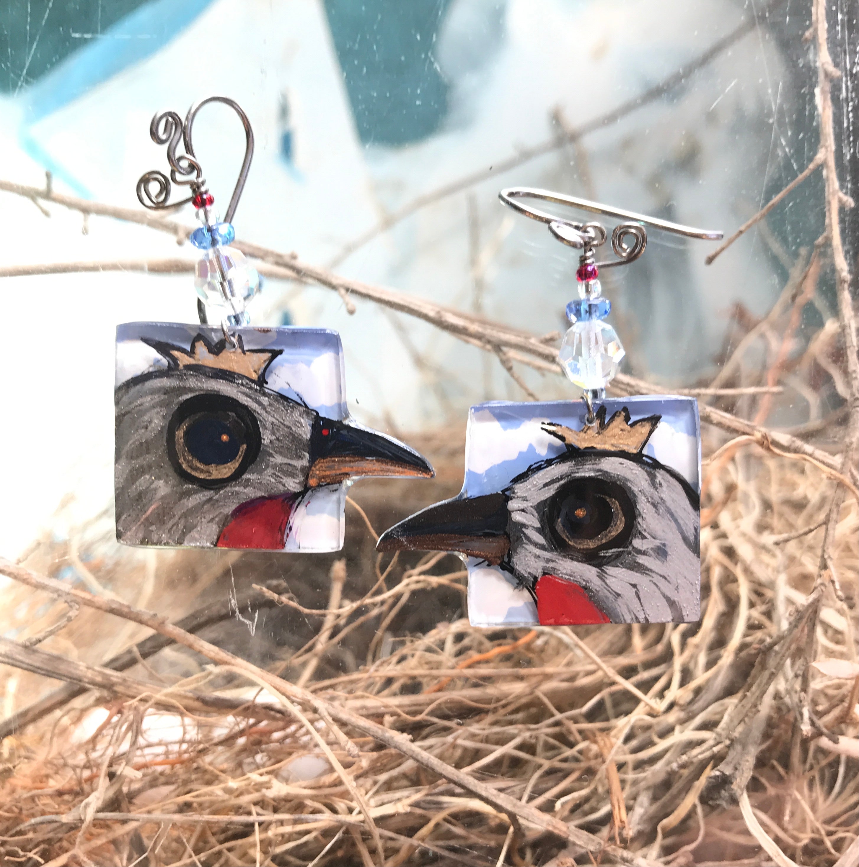 Each one of these whimsical pins and earrings are hand-painted by me, Robin Senour, so there are no two alike.