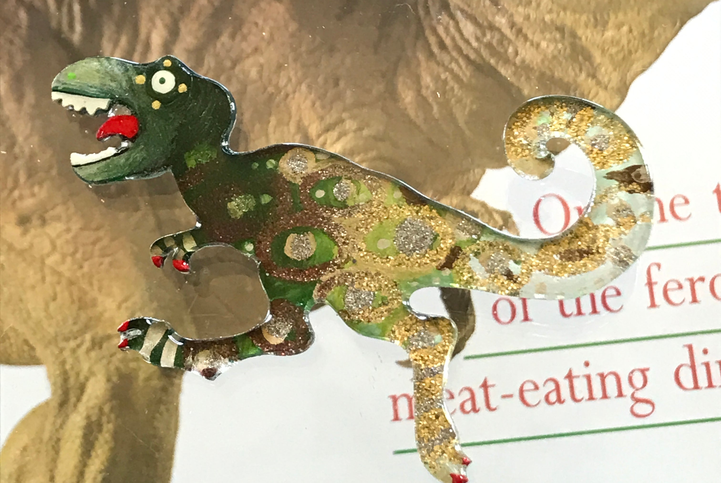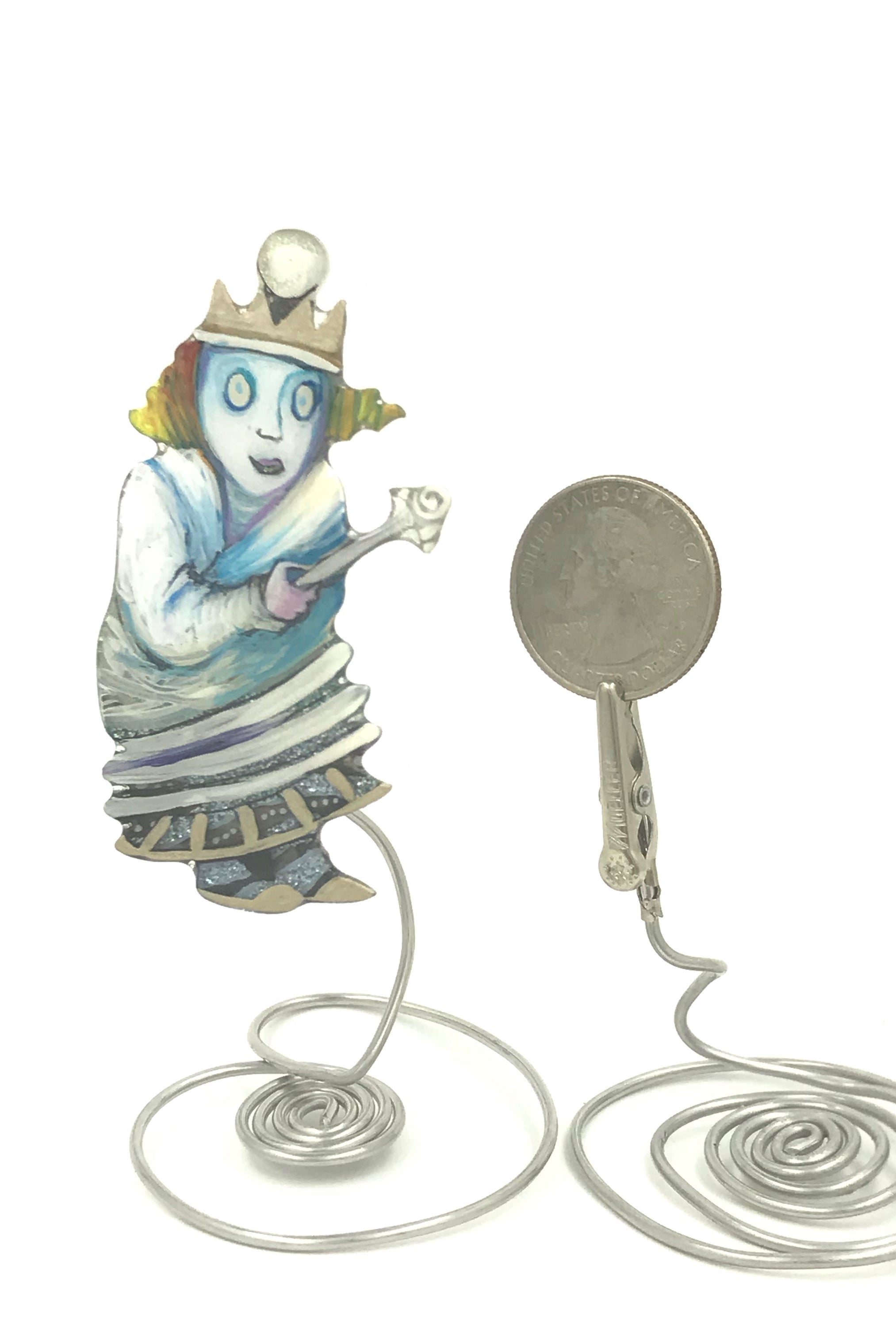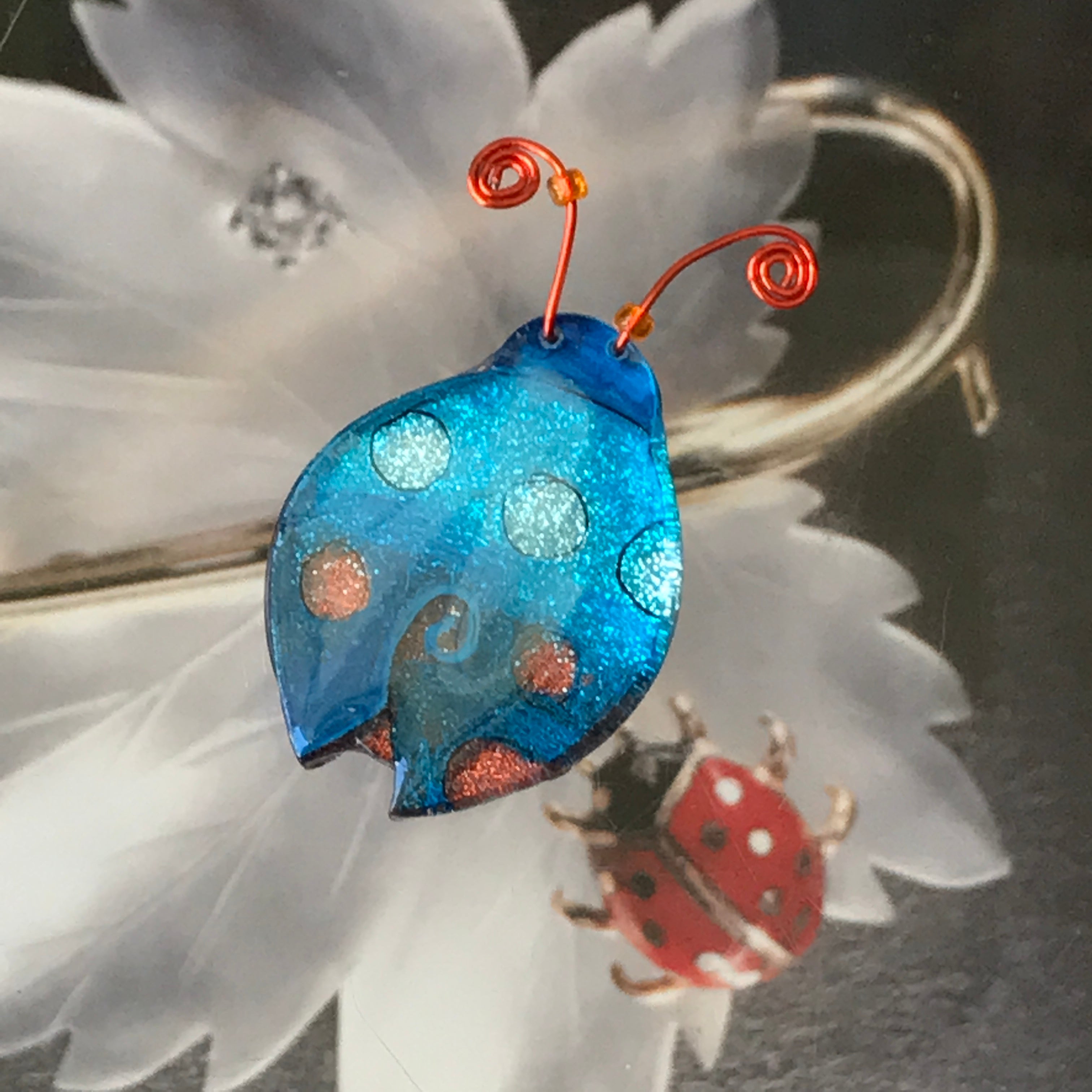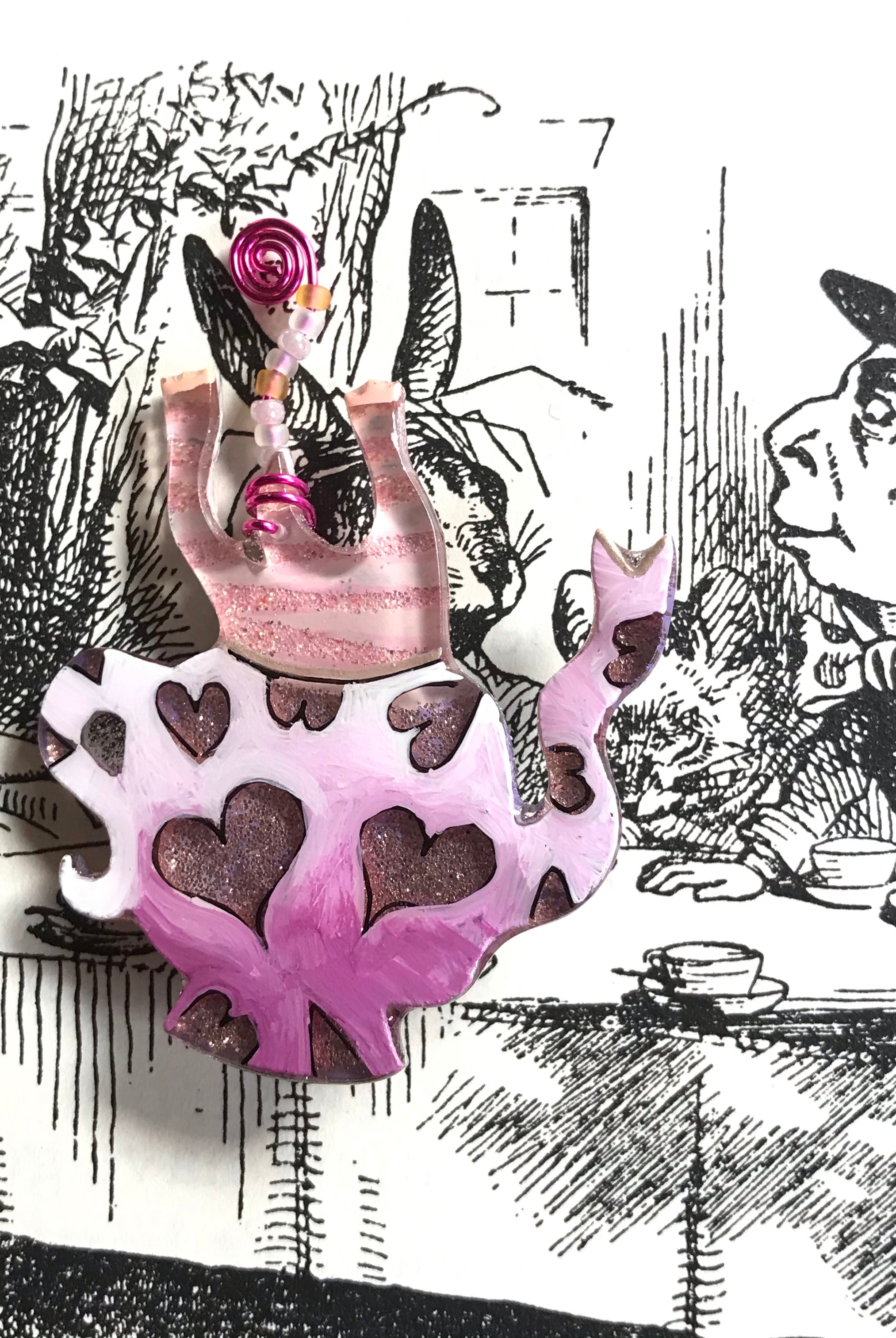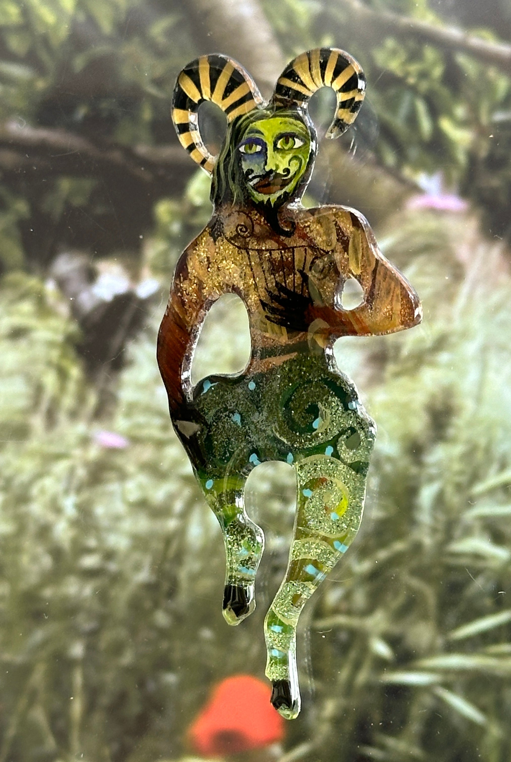 For me, these are little paintings that you can wear. If you are thinking of shrinky-dinks, I'm sure that was in my mind when I came up with lasercutting the shapes and then painting with the same paints I use on canvas. It's a multi layered process that takes a long time. The painting takes the longest, but it is the most rewarding. They are coated with a thick and sturdy glaze that brings out the depth and color.