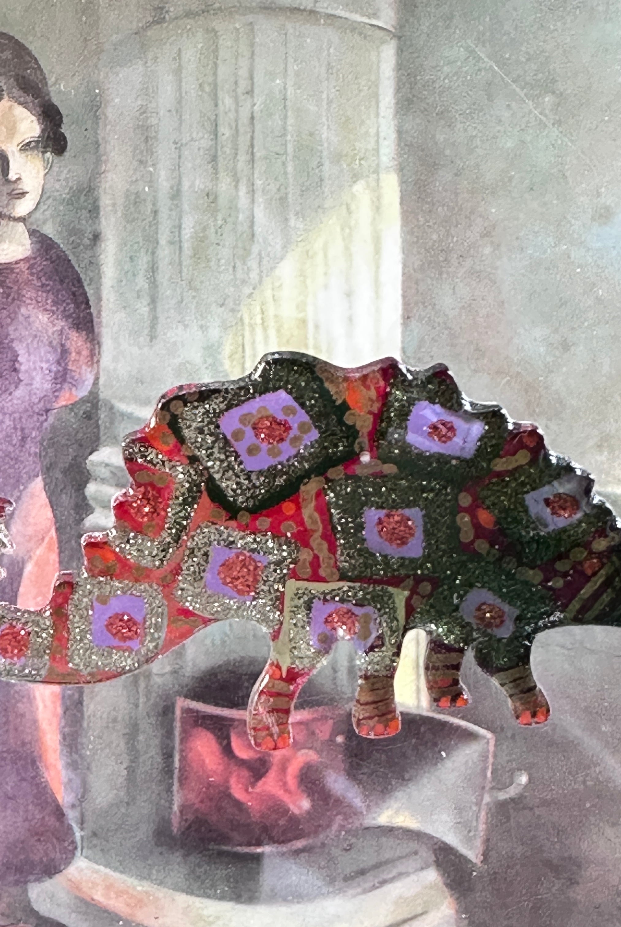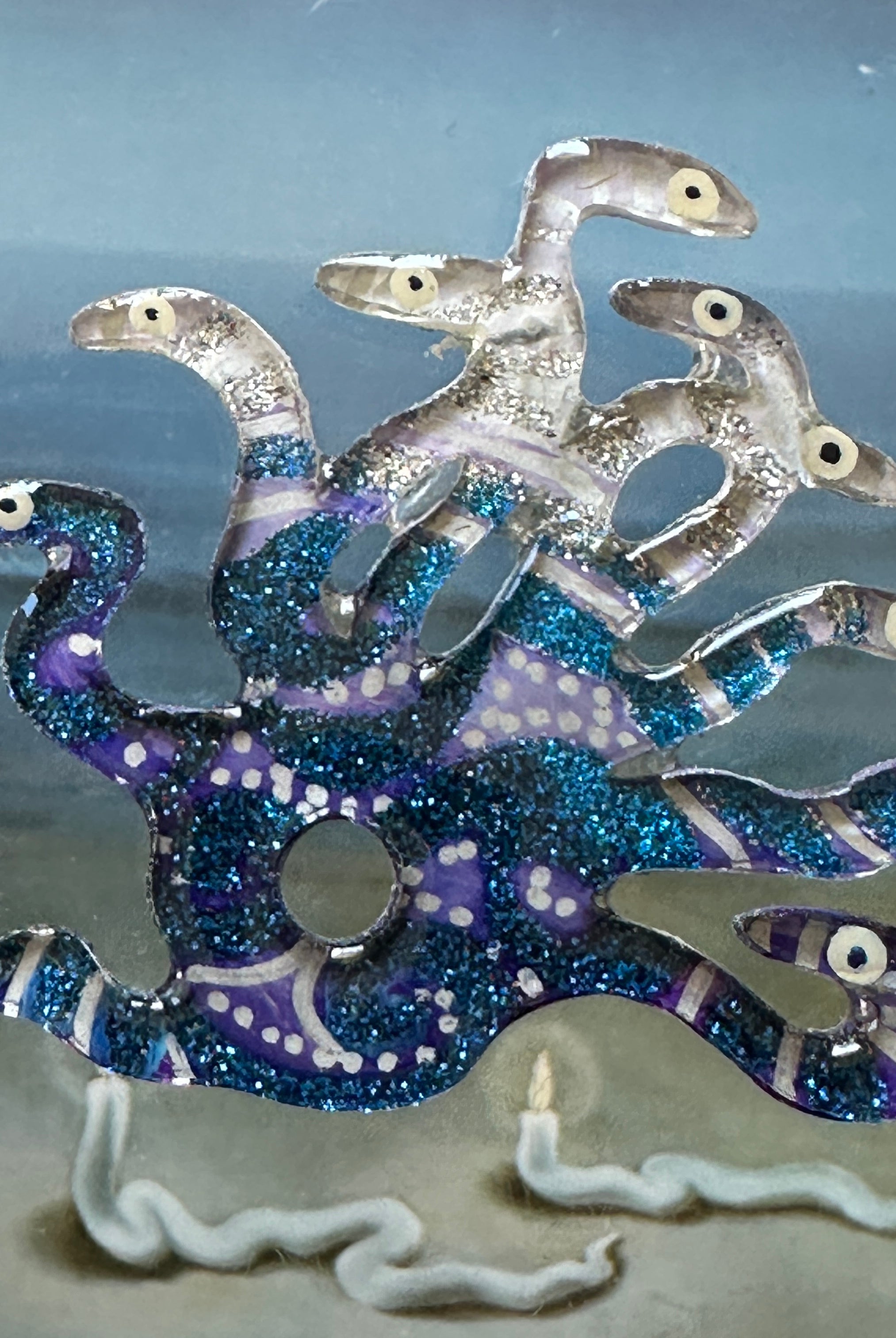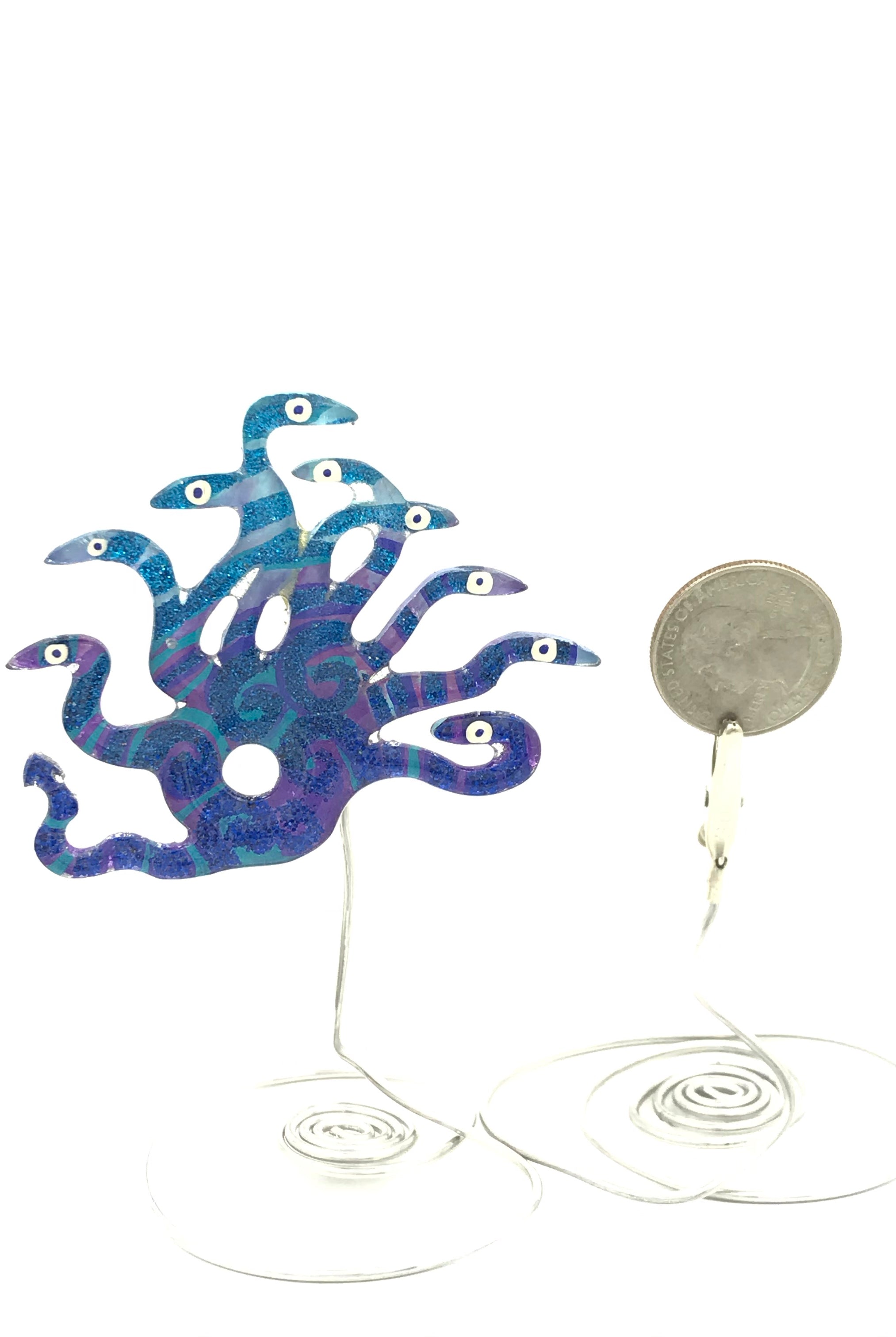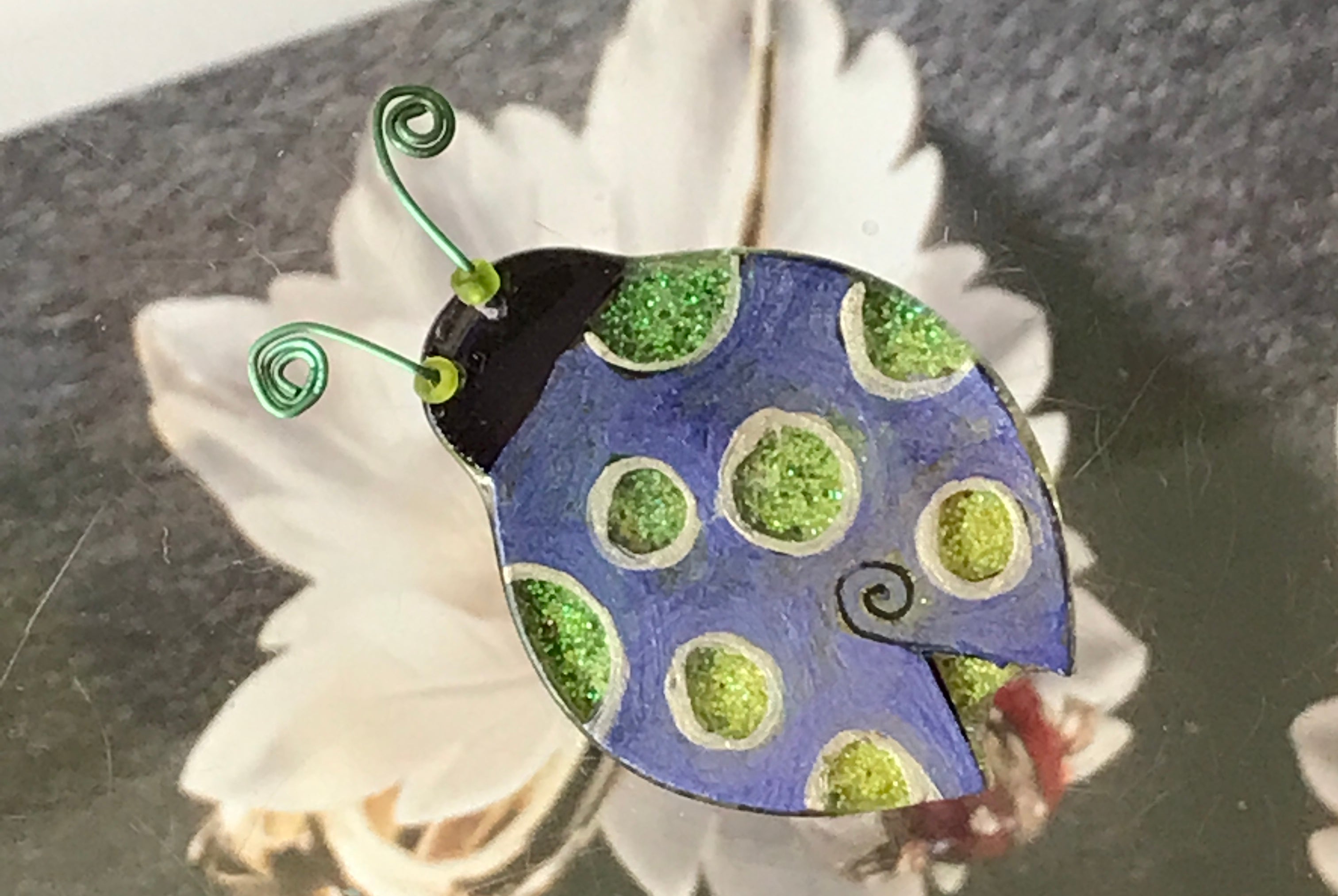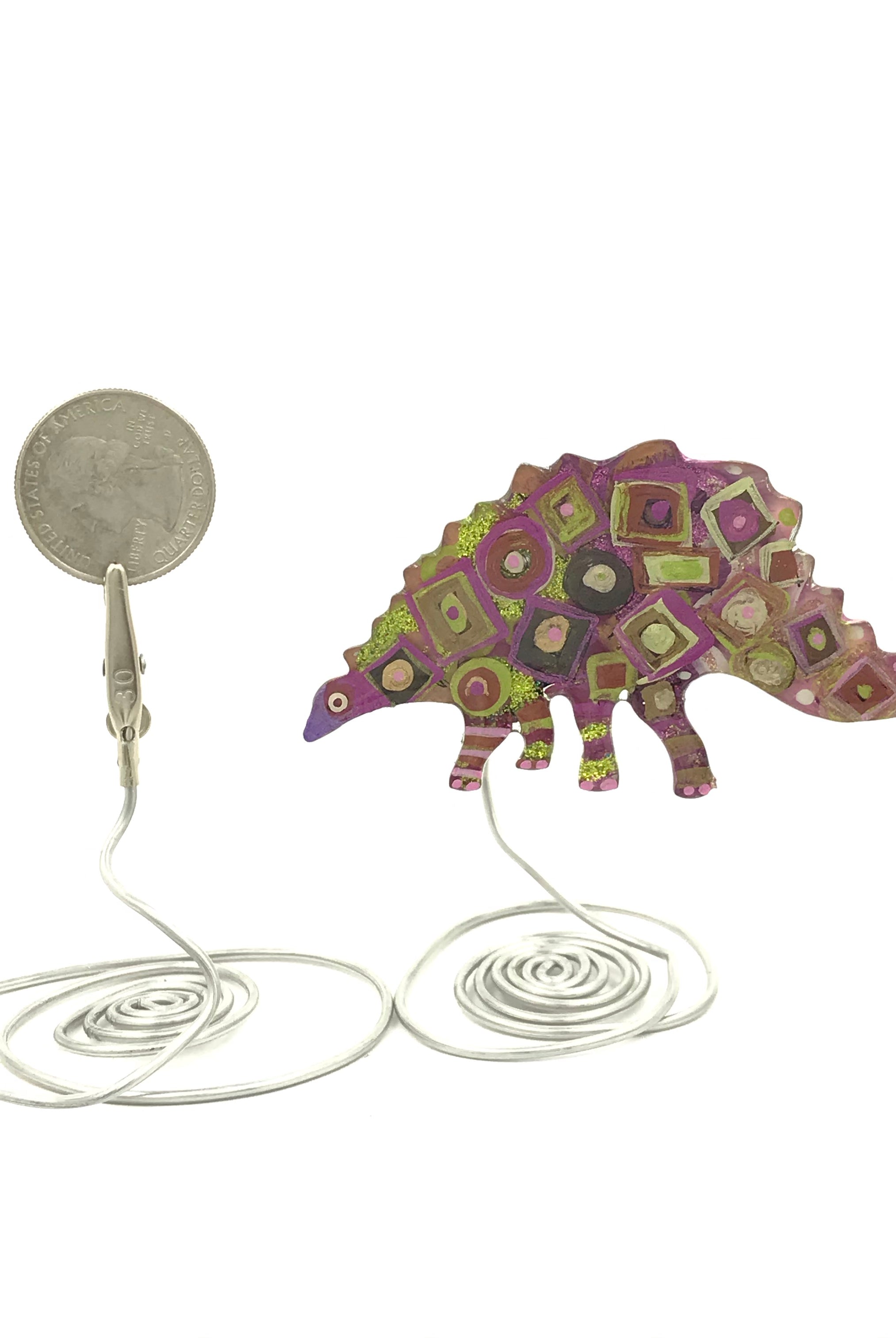 For me, these are little paintings that you can wear. If you are thinking of shrinky-dinks, I'm sure that was in my mind when I came up with lasercutting the shapes and then painting with the same paints I use on canvas. It's a multi layered process that takes a long time. The painting takes the longest, but it is the most rewarding. They are coated with a thick and sturdy glaze that brings out the depth and color.