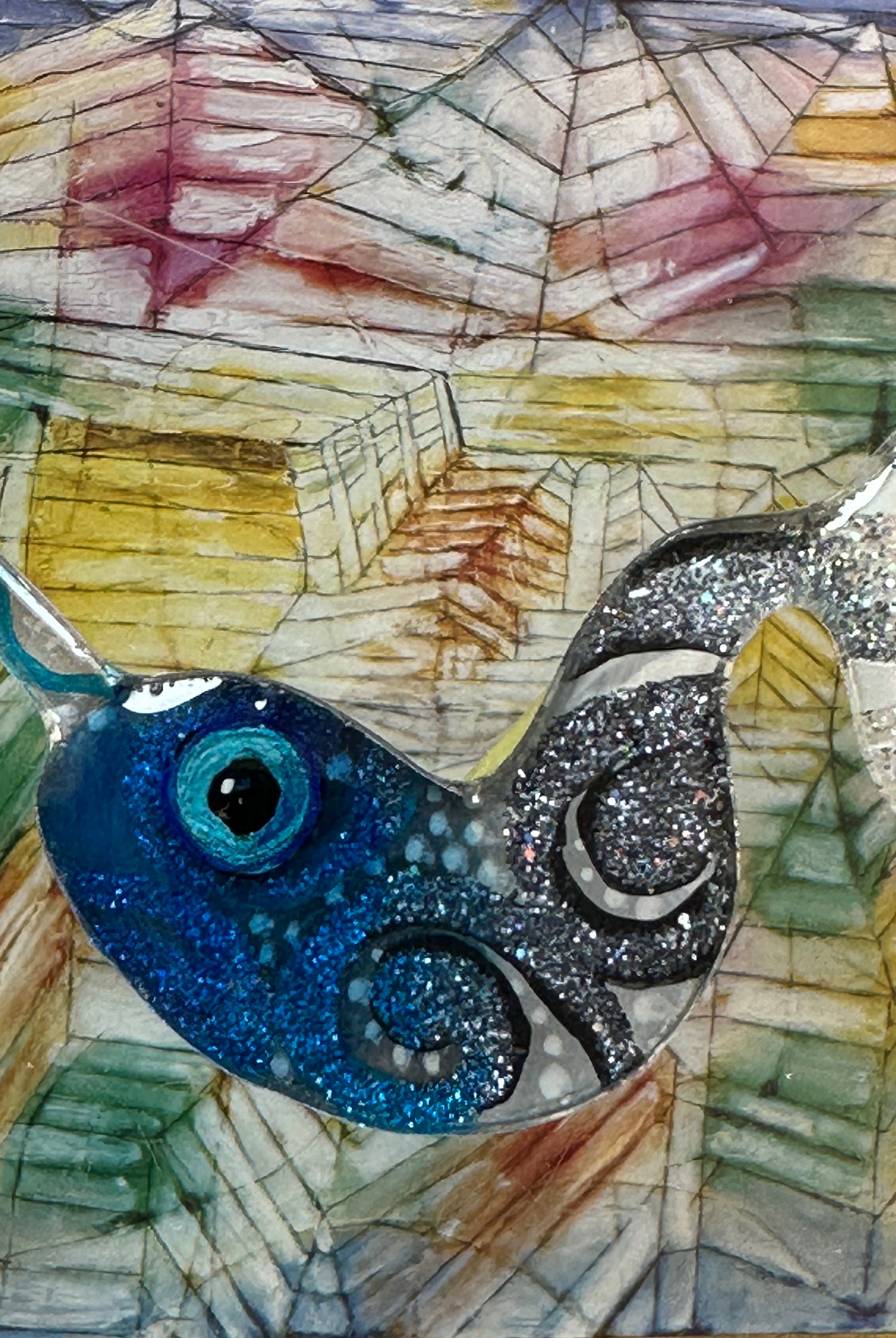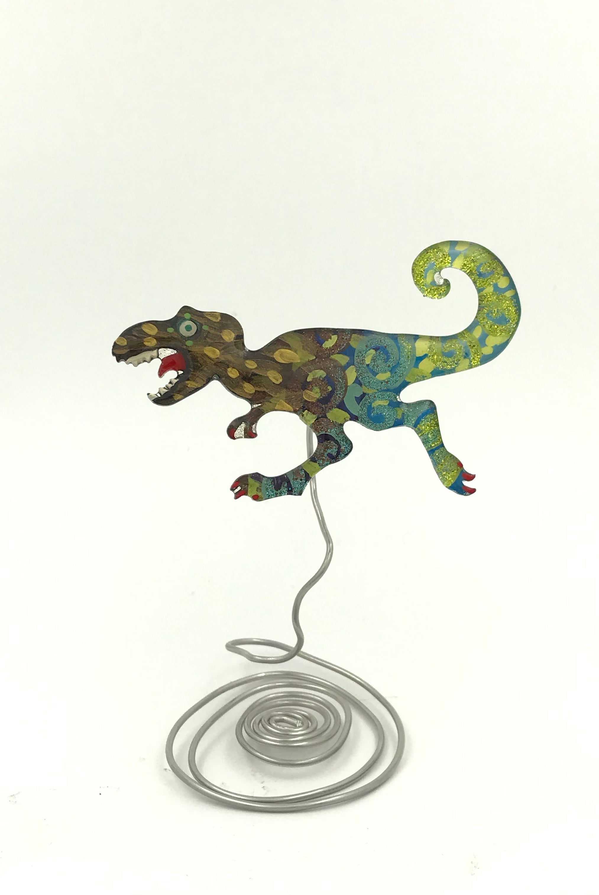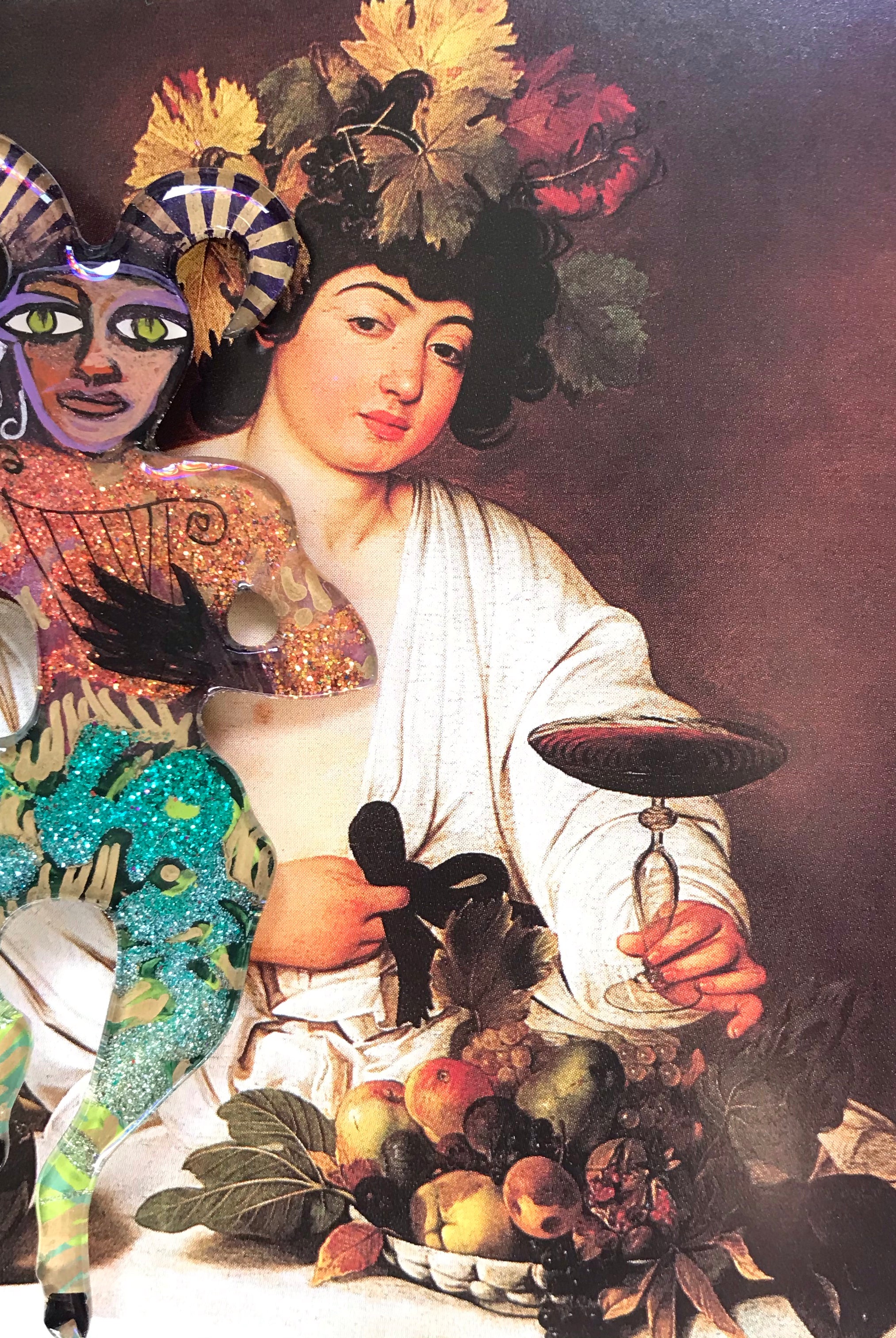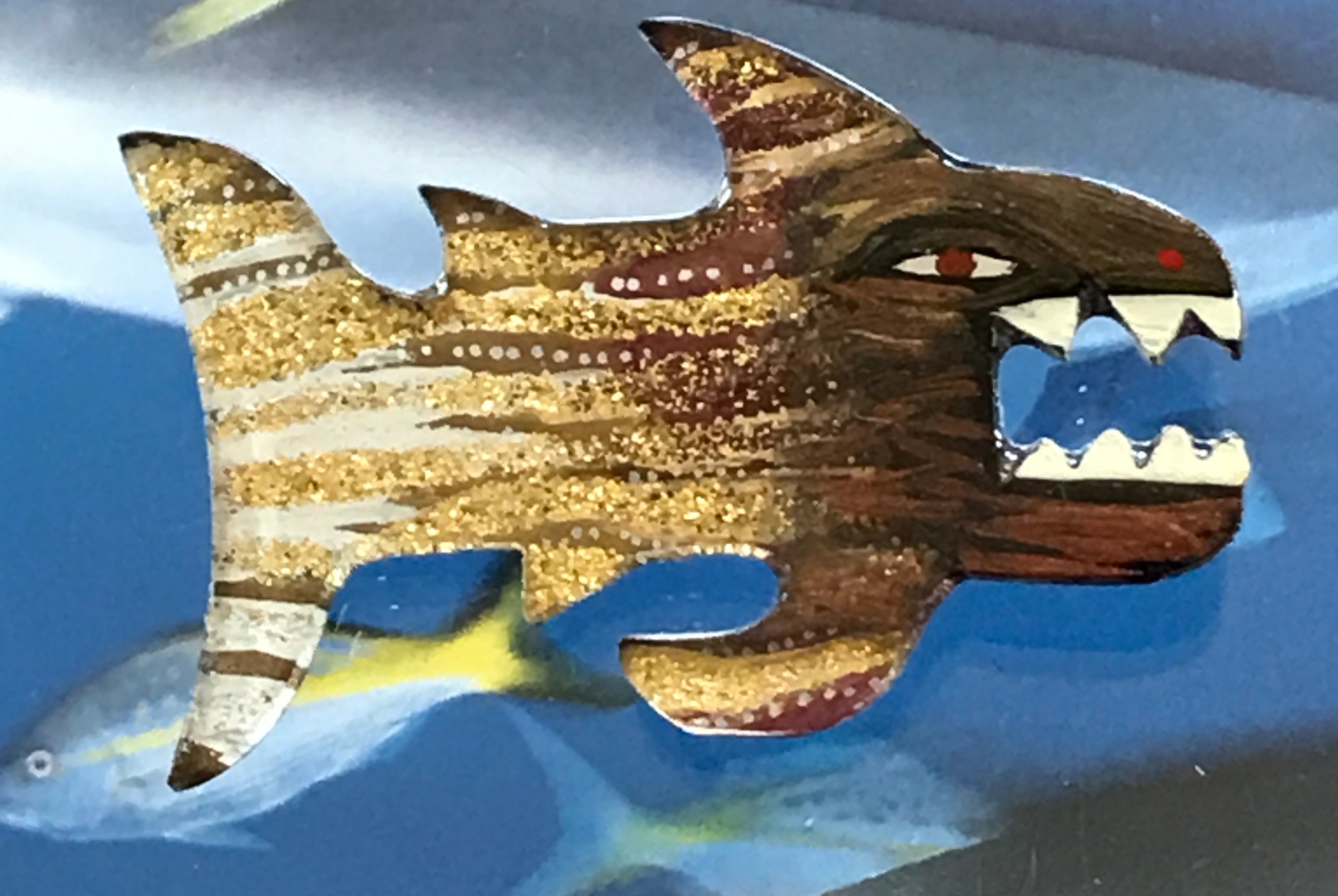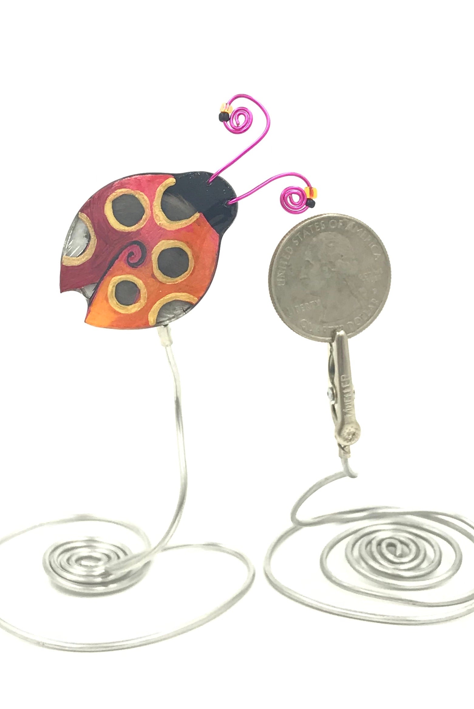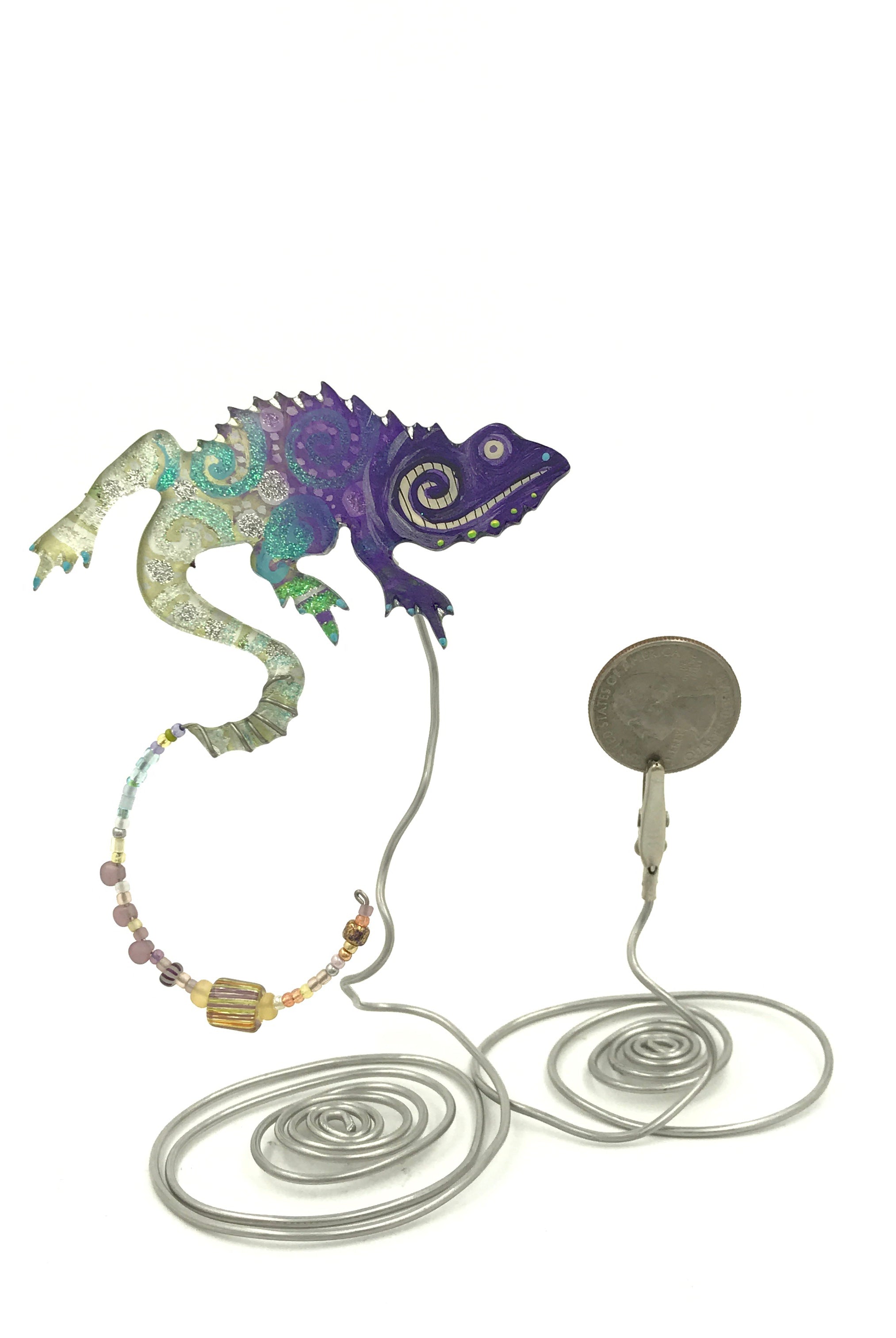 For me, these are little paintings that you can wear. If you are thinking of shrinky-dinks, I'm sure that was in my mind when I came up with lasercutting the shapes and then painting with the same paints I use on canvas. It's a multi layered process that takes a long time. The painting takes the longest, but it is the most rewarding. They are coated with a thick and sturdy glaze that brings out the depth and color.