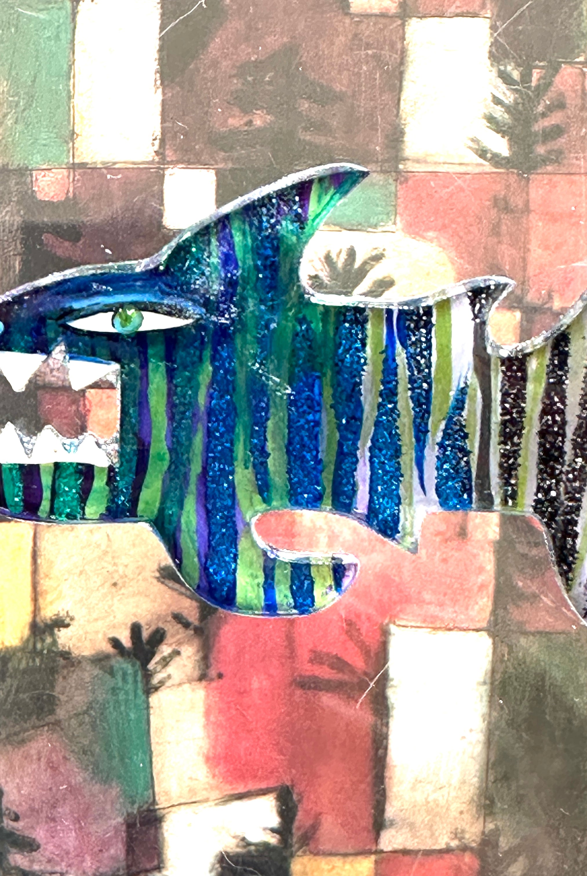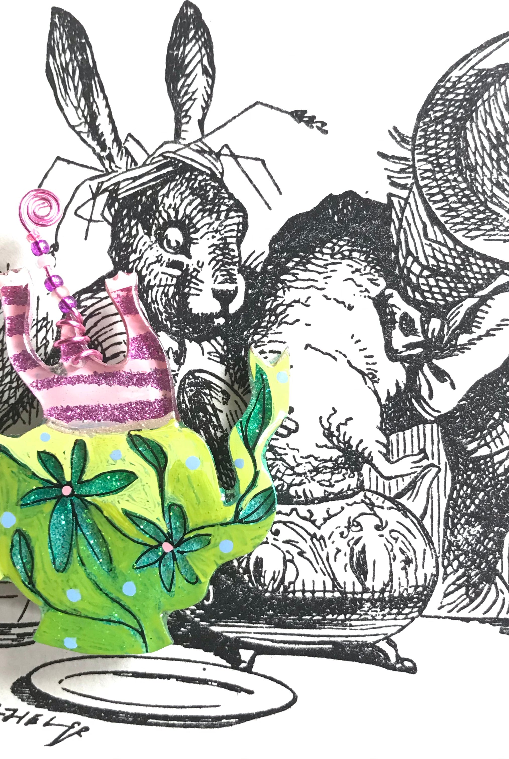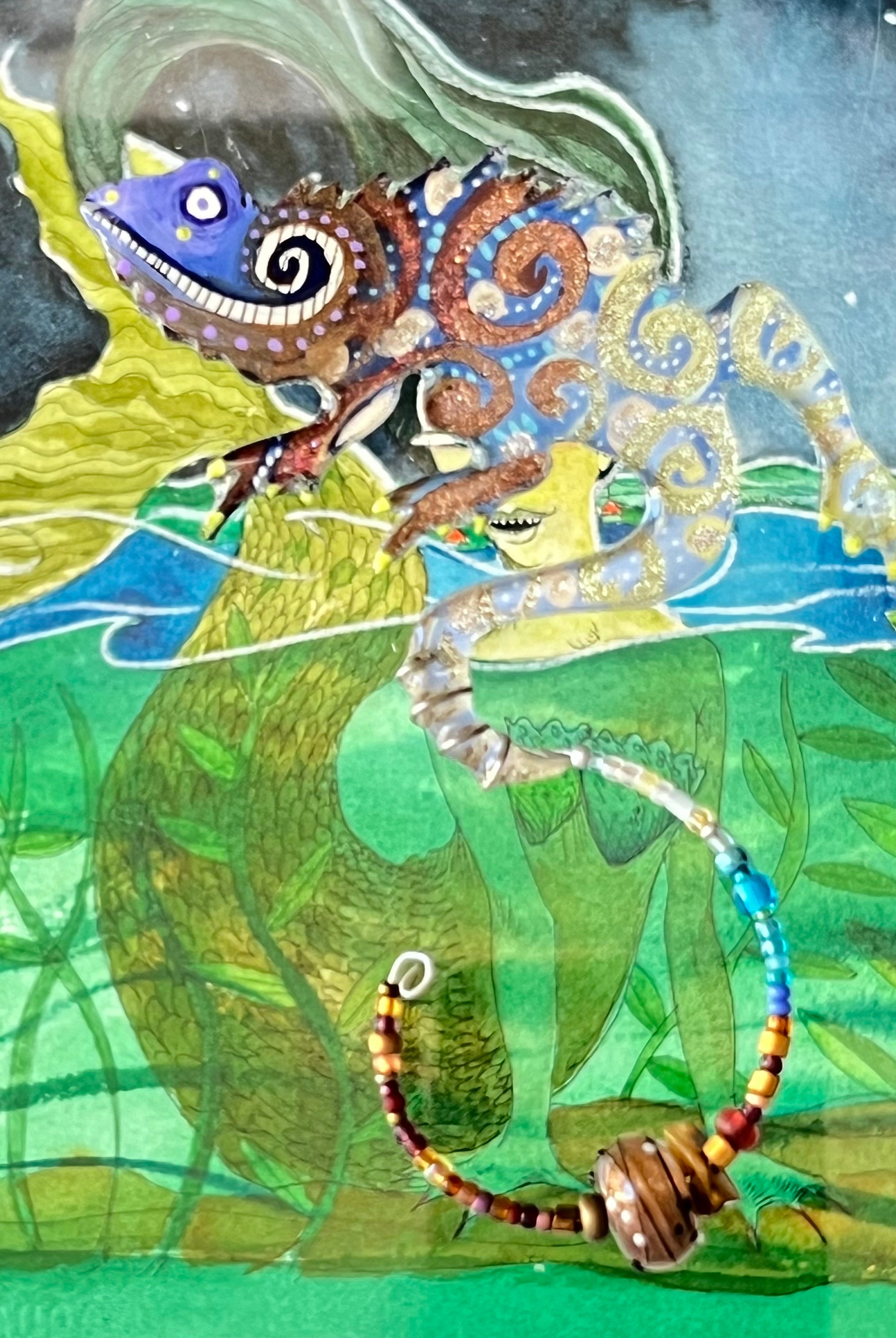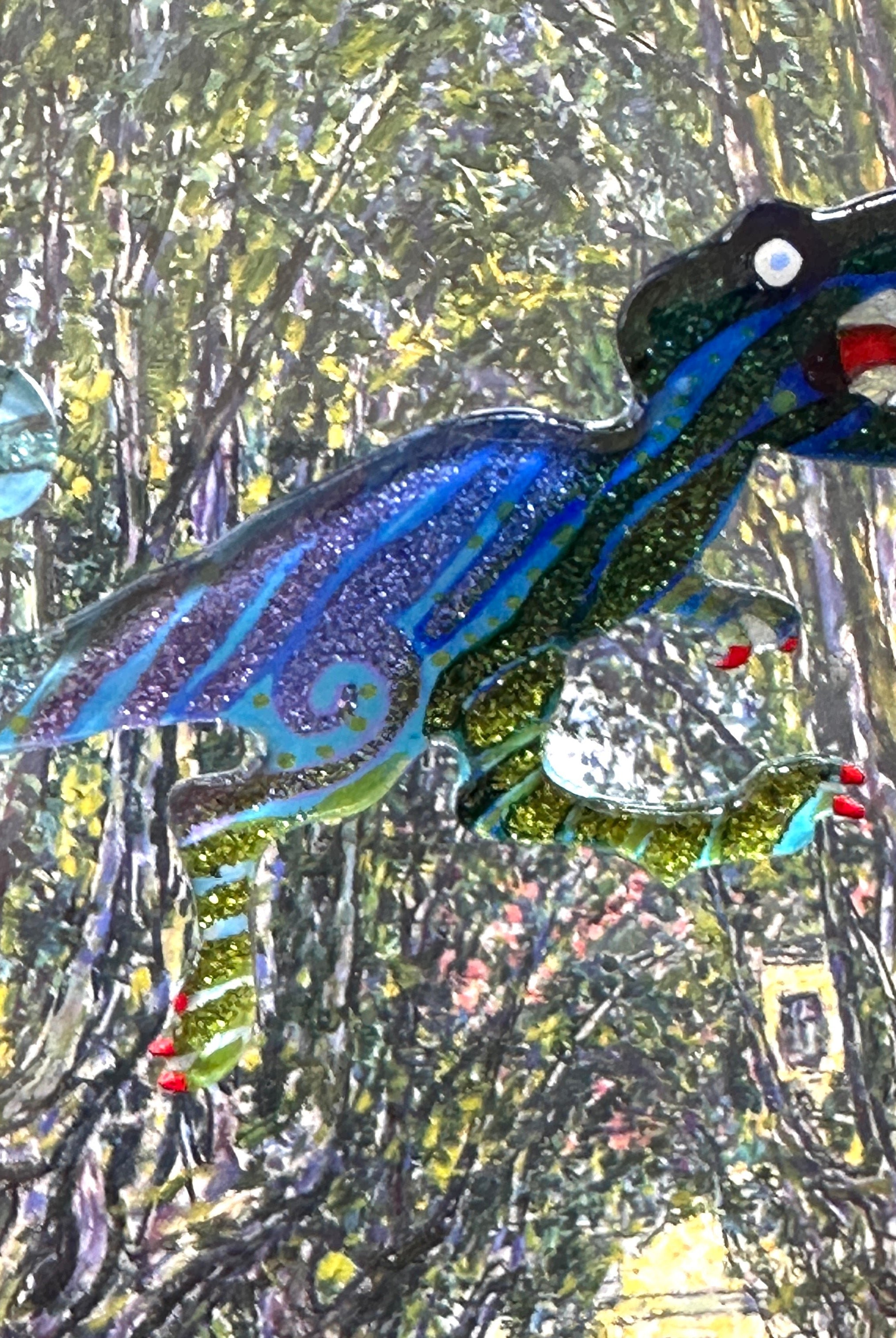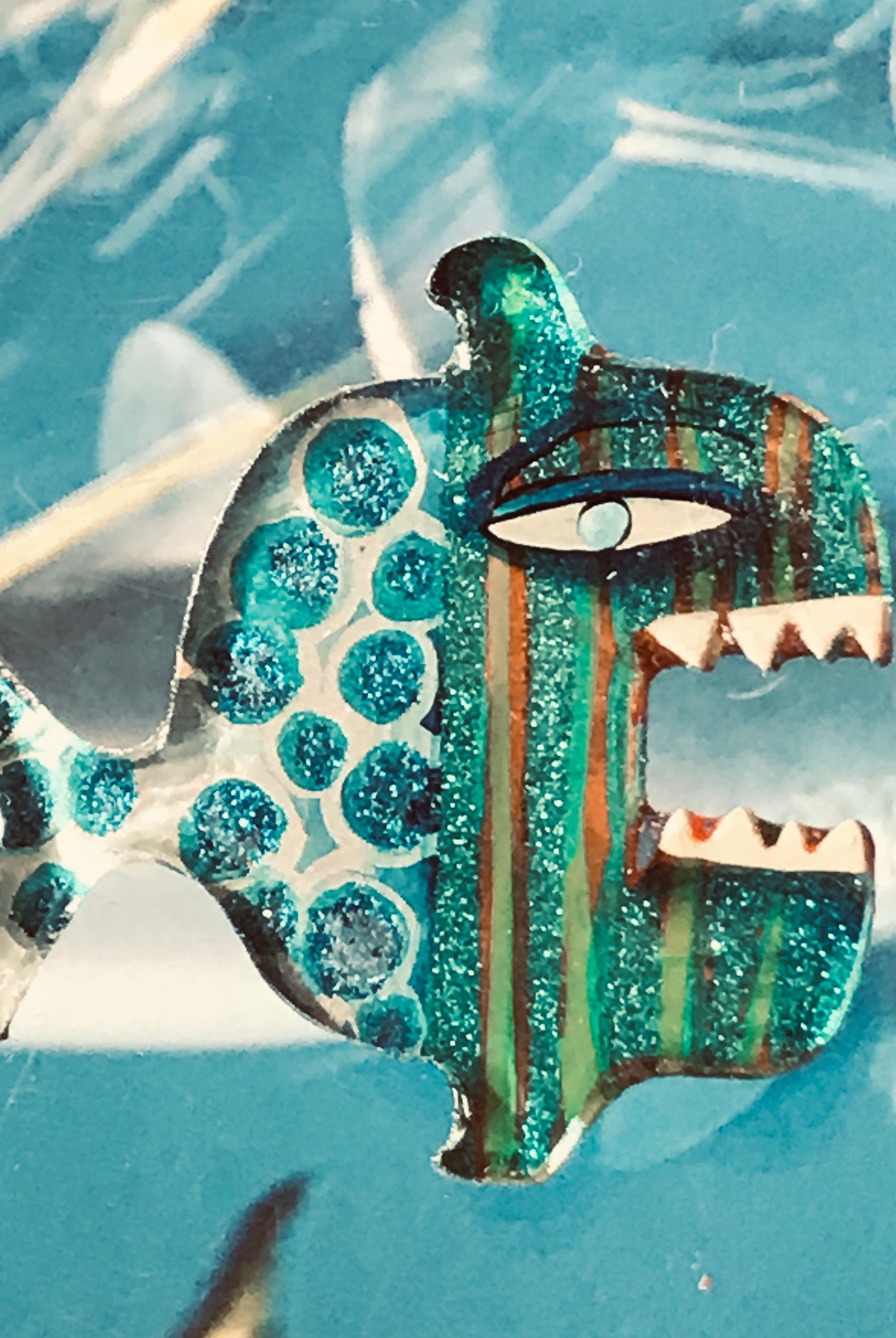 For me, these are little paintings that you can wear. If you are thinking of shrinky-dinks, I'm sure that was in my mind when I came up with lasercutting the shapes and then painting with the same paints I use on canvas. It's a multi layered process that takes a long time. The painting takes the longest, but it is the most rewarding. They are coated with a thick and sturdy glaze that brings out the depth and color.