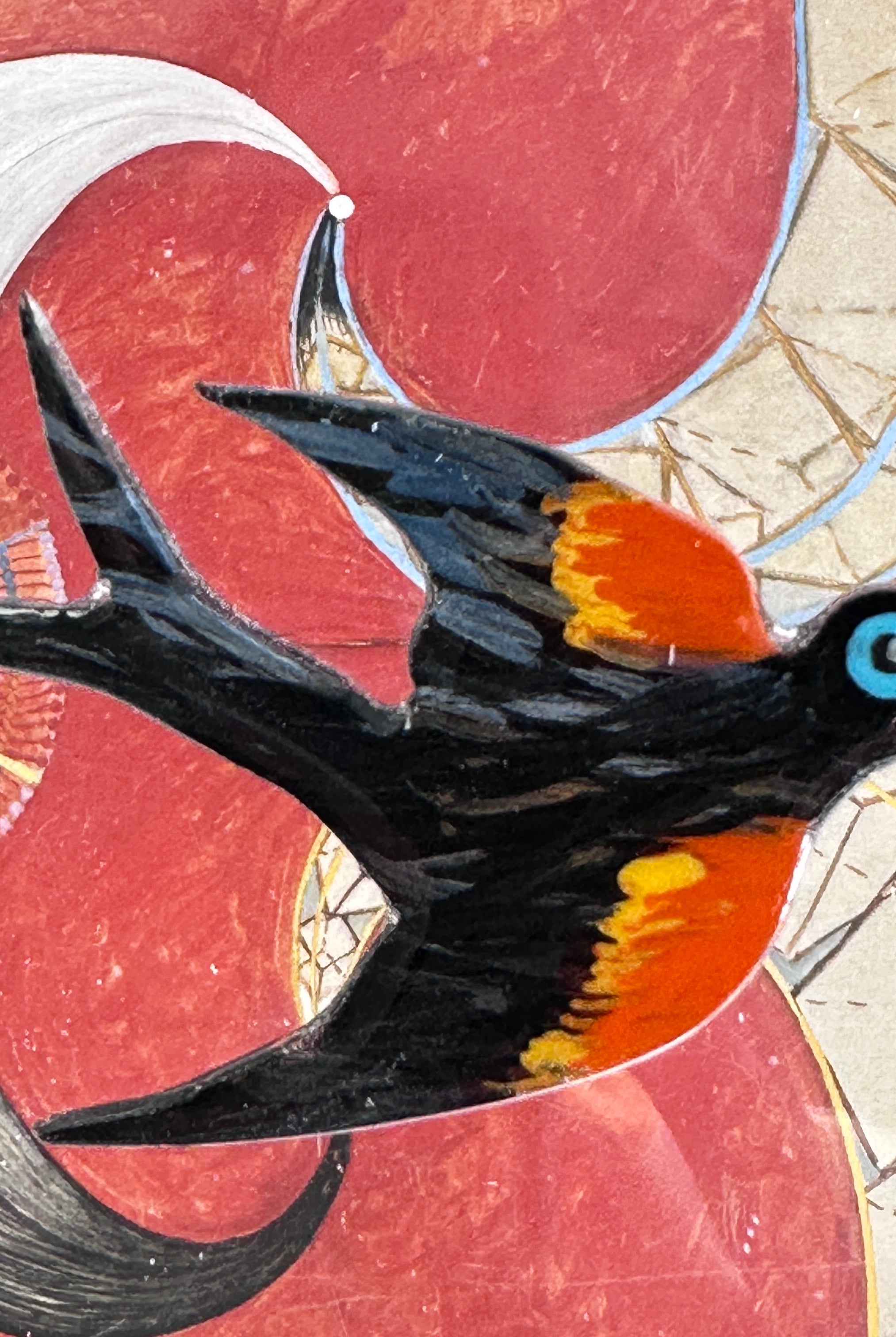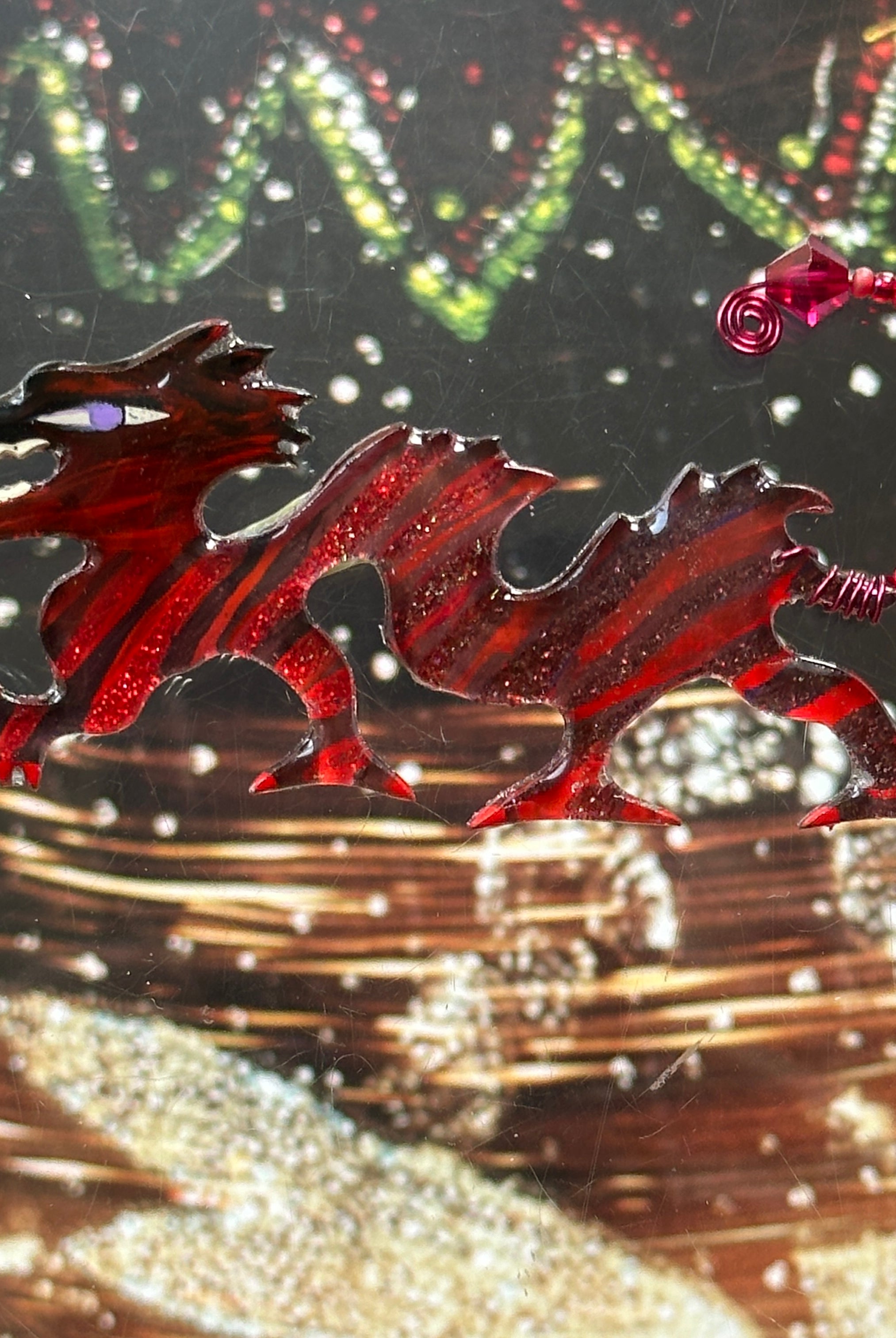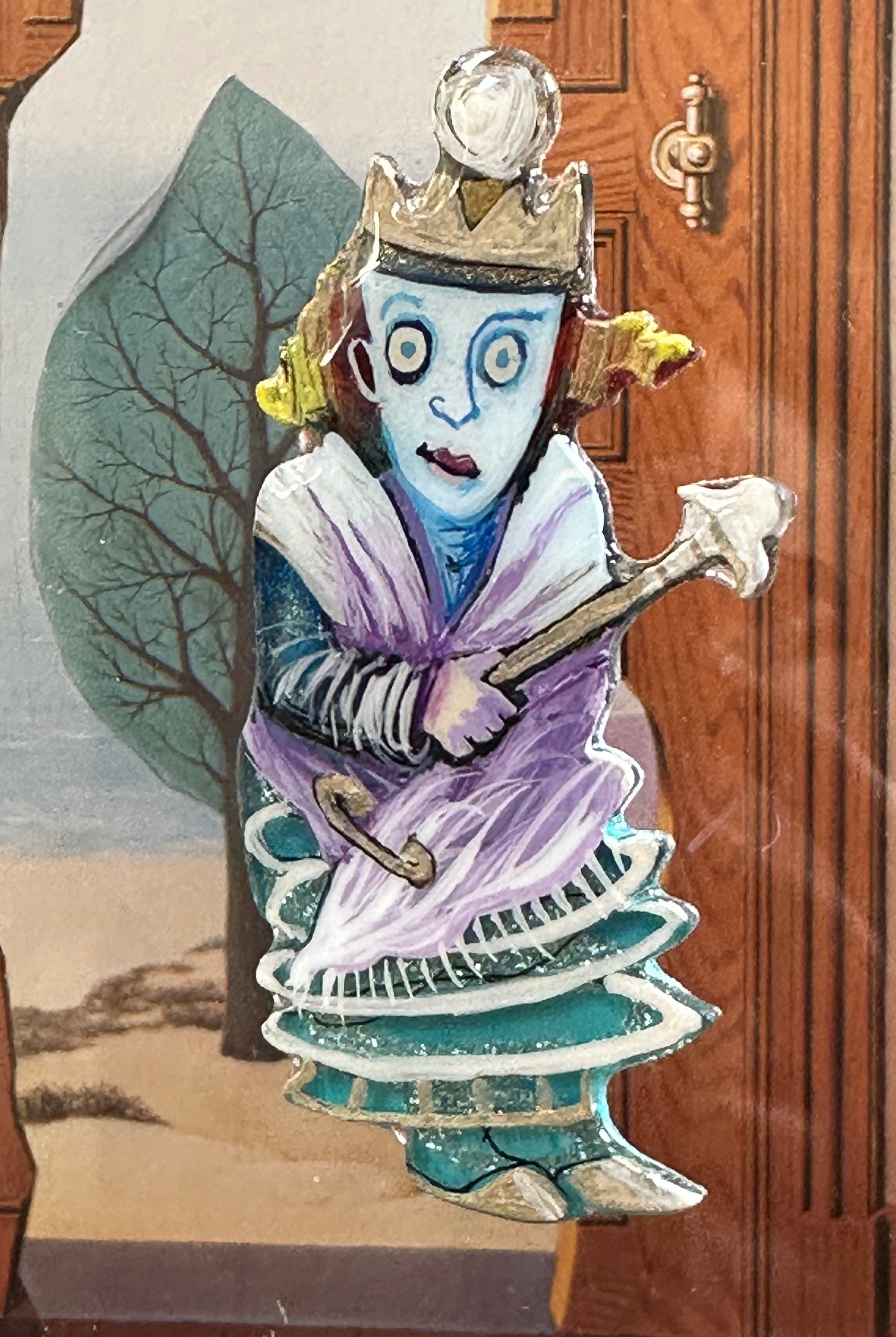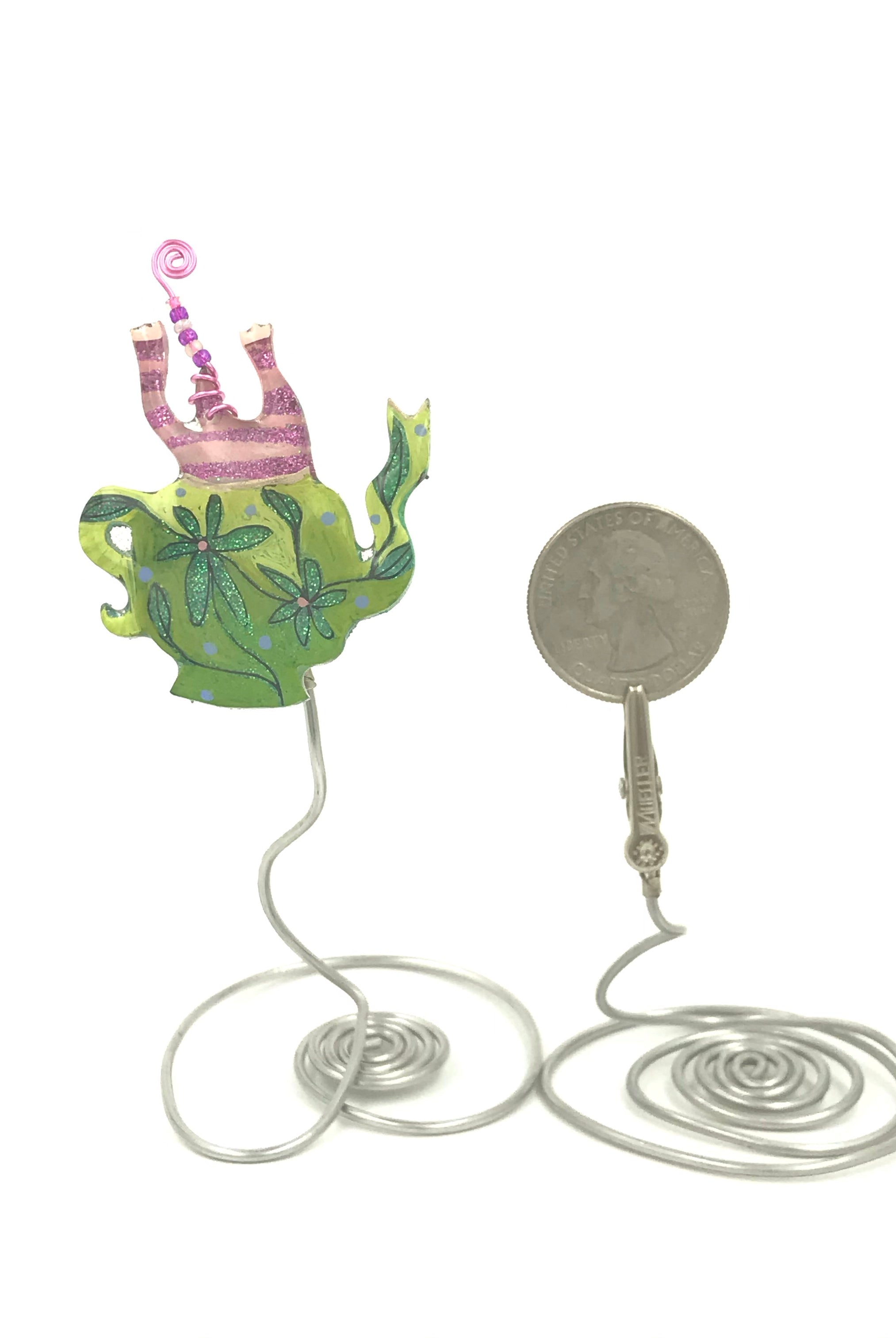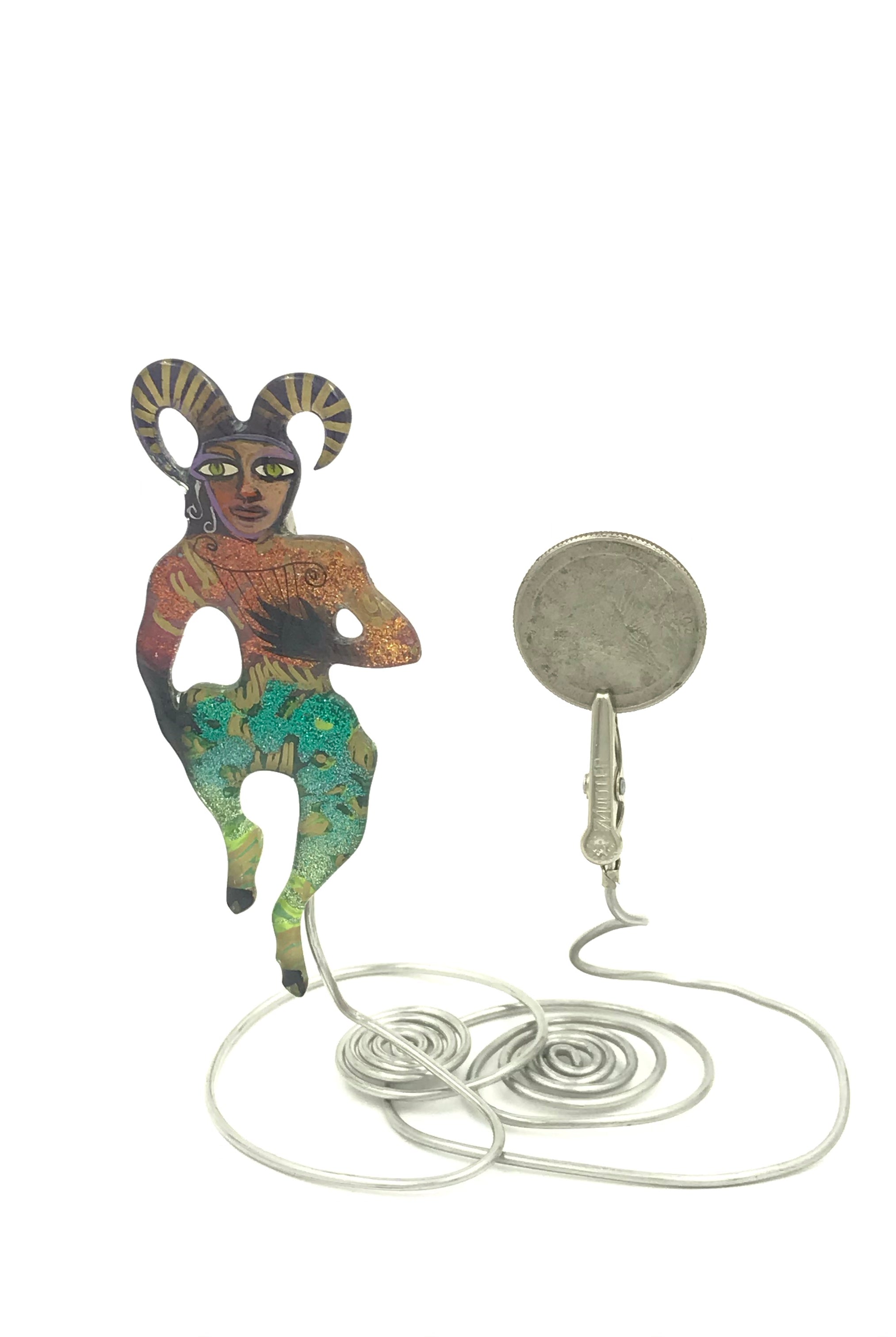 For me, these are little paintings that you can wear. If you are thinking of shrinky-dinks, I'm sure that was in my mind when I came up with lasercutting the shapes and then painting with the same paints I use on canvas. It's a multi layered process that takes a long time. The painting takes the longest, but it is the most rewarding. They are coated with a thick and sturdy glaze that brings out the depth and color.