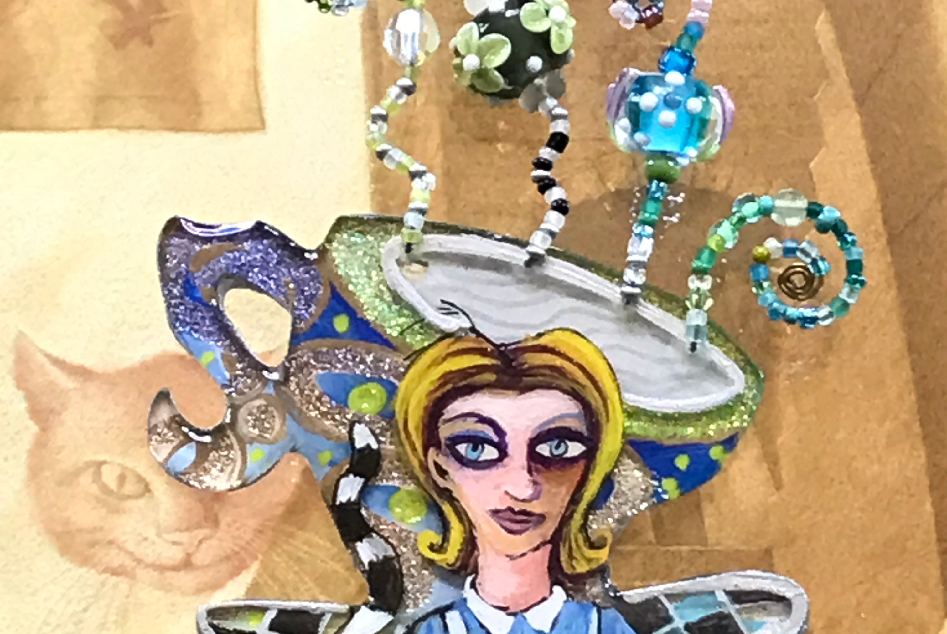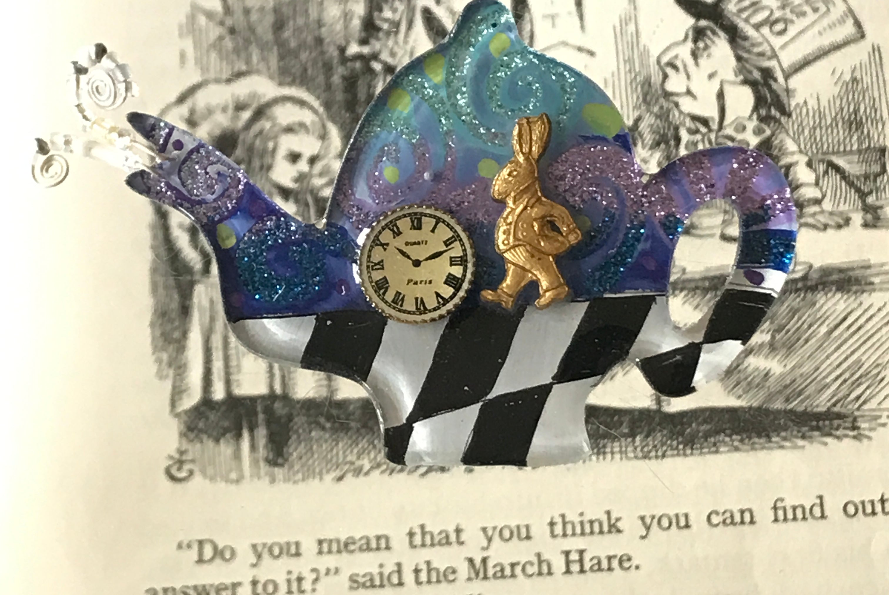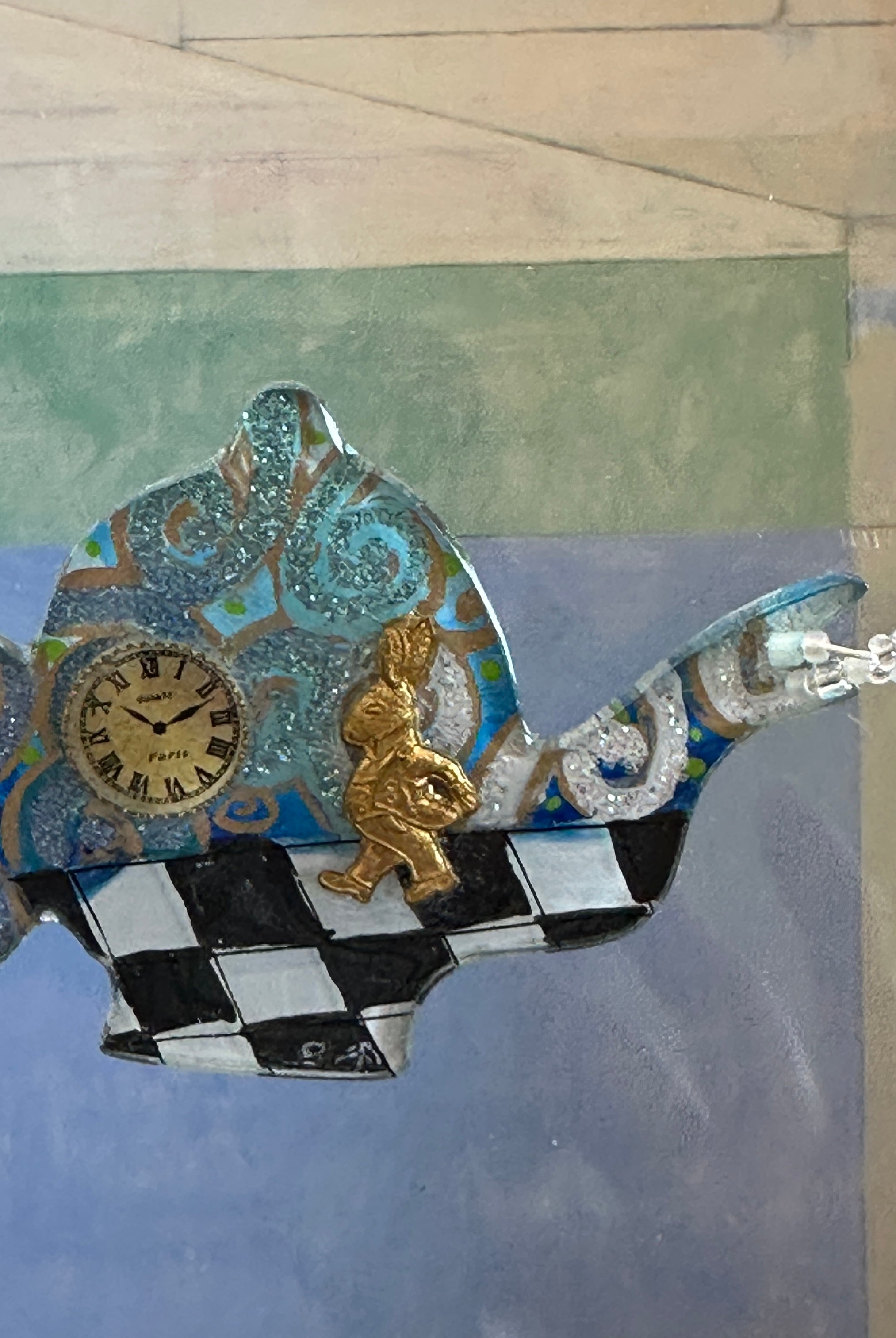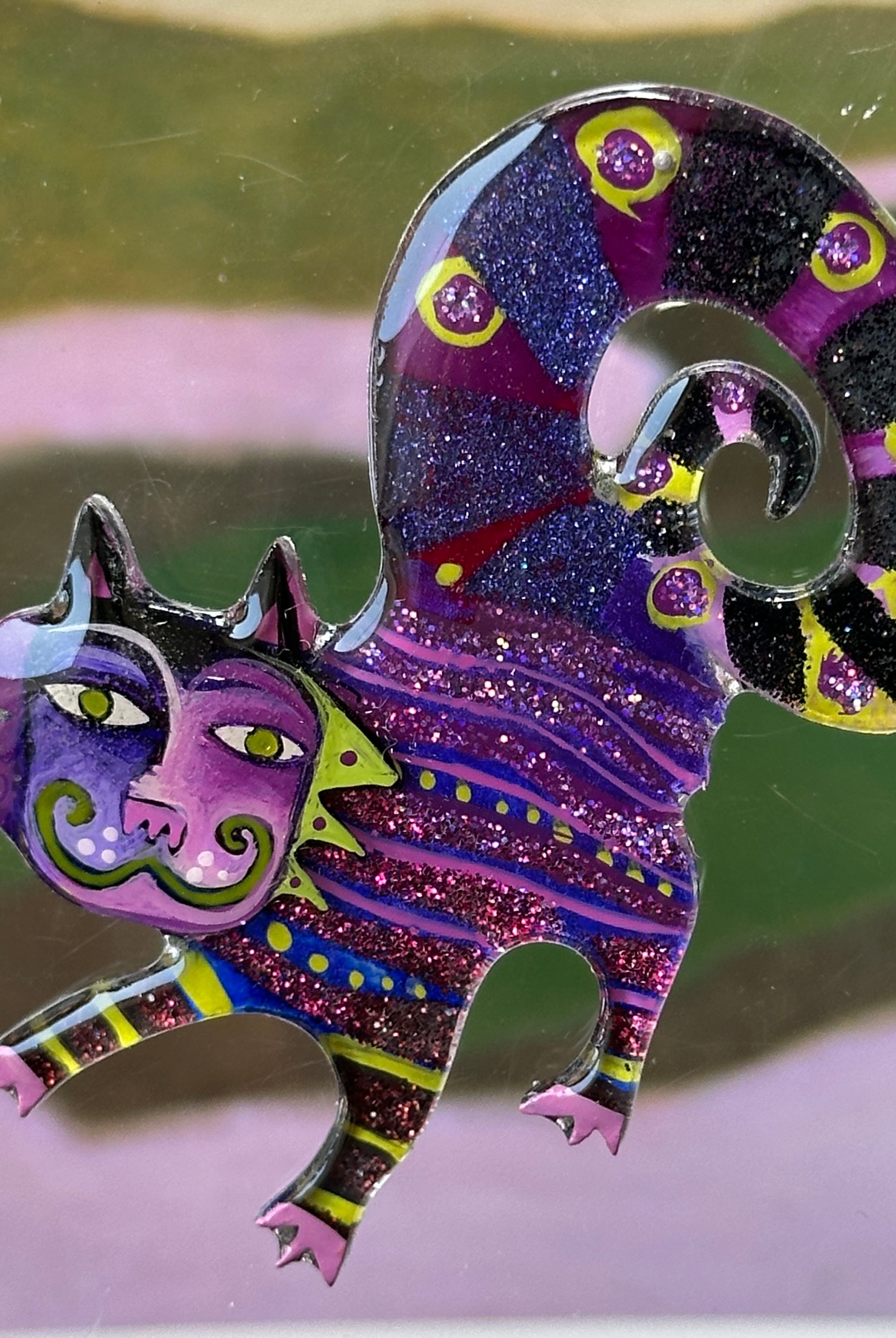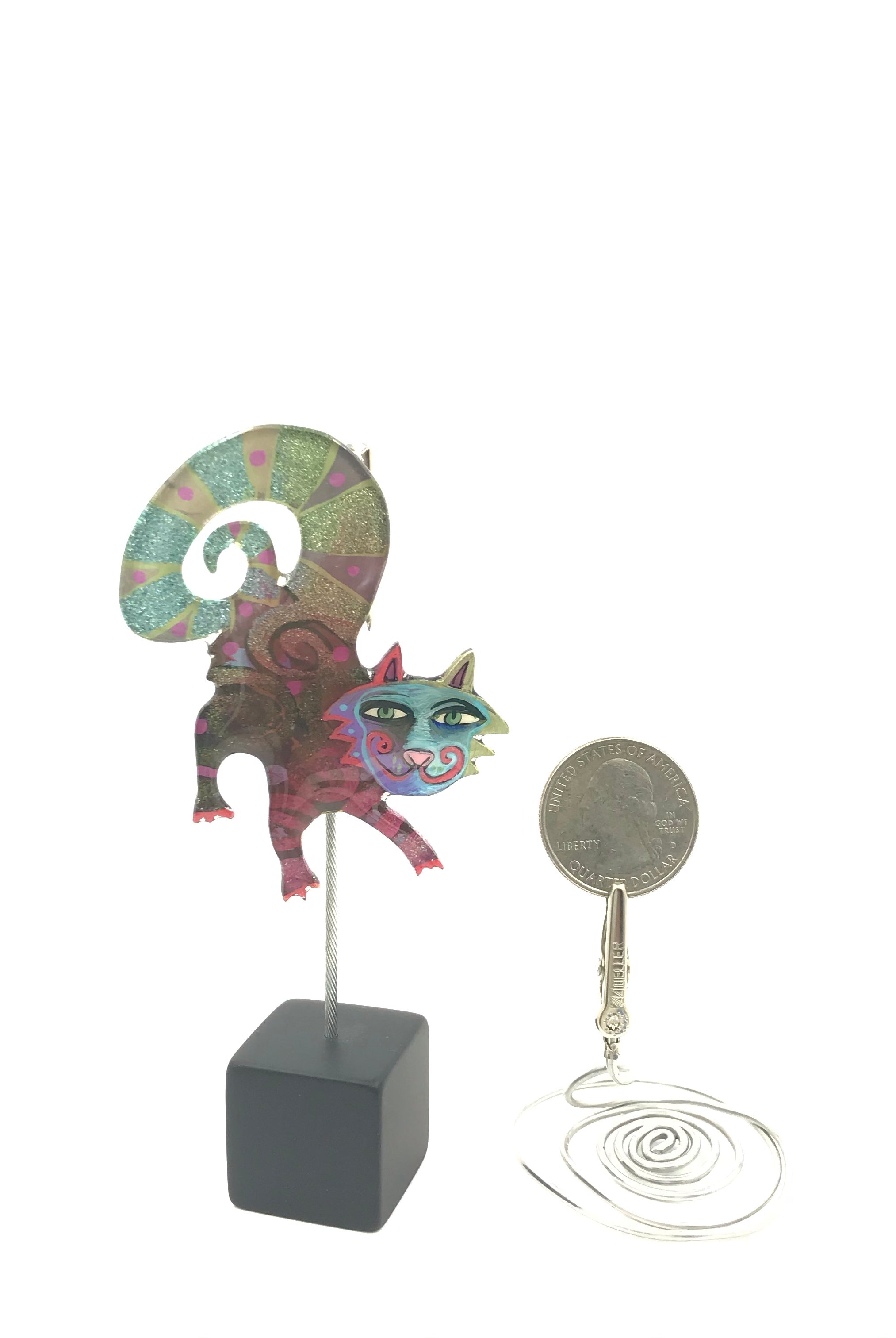 For me, these are little paintings that you can wear. If you are thinking of shrinky-dinks, I'm sure that was in my mind when I came up with lasercutting the shapes and then painting with the same paints I use on canvas. It's a multi layered process that takes a long time. The painting takes the longest, but it is the most rewarding. They are coated with a thick and sturdy glaze that brings out the depth and color.