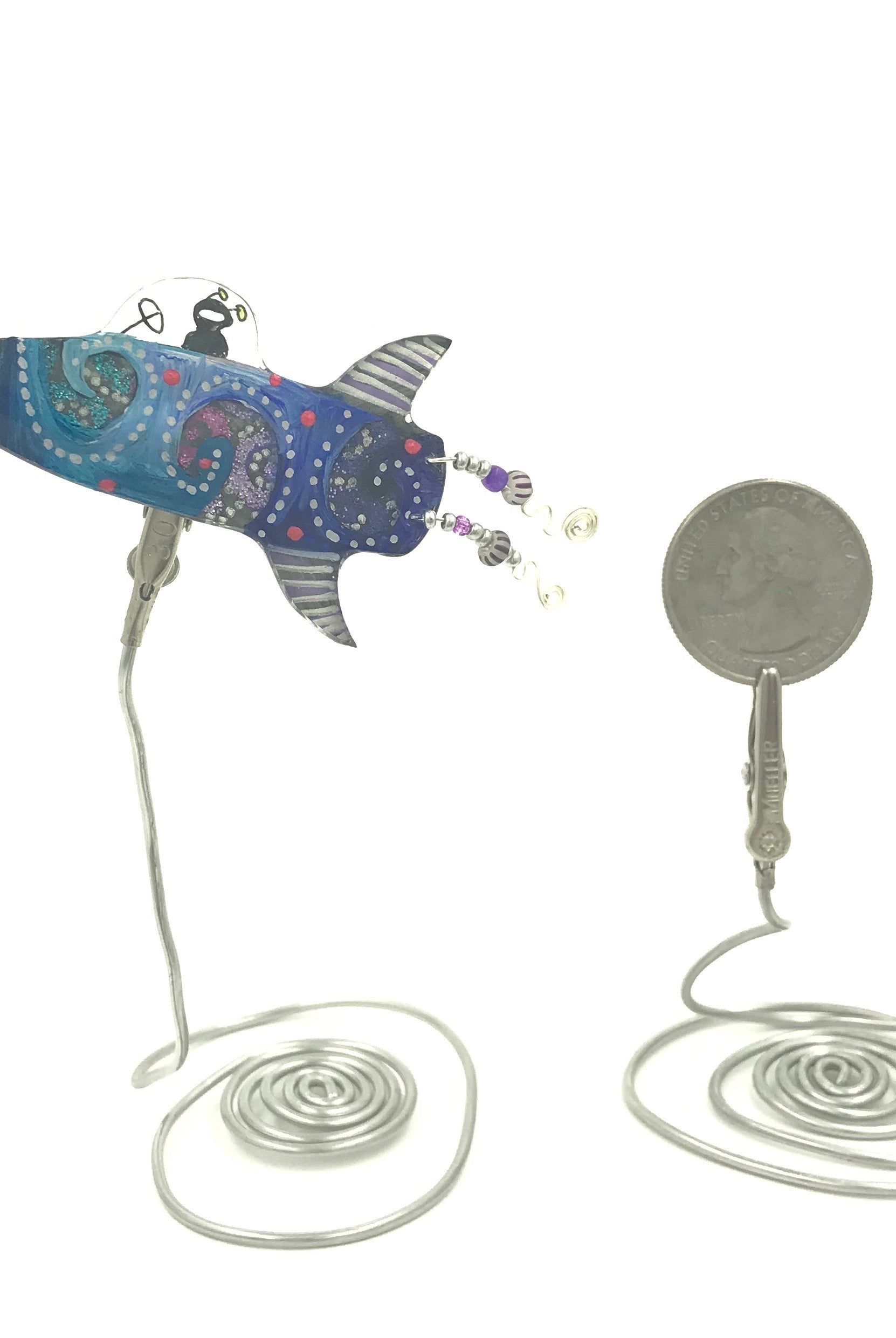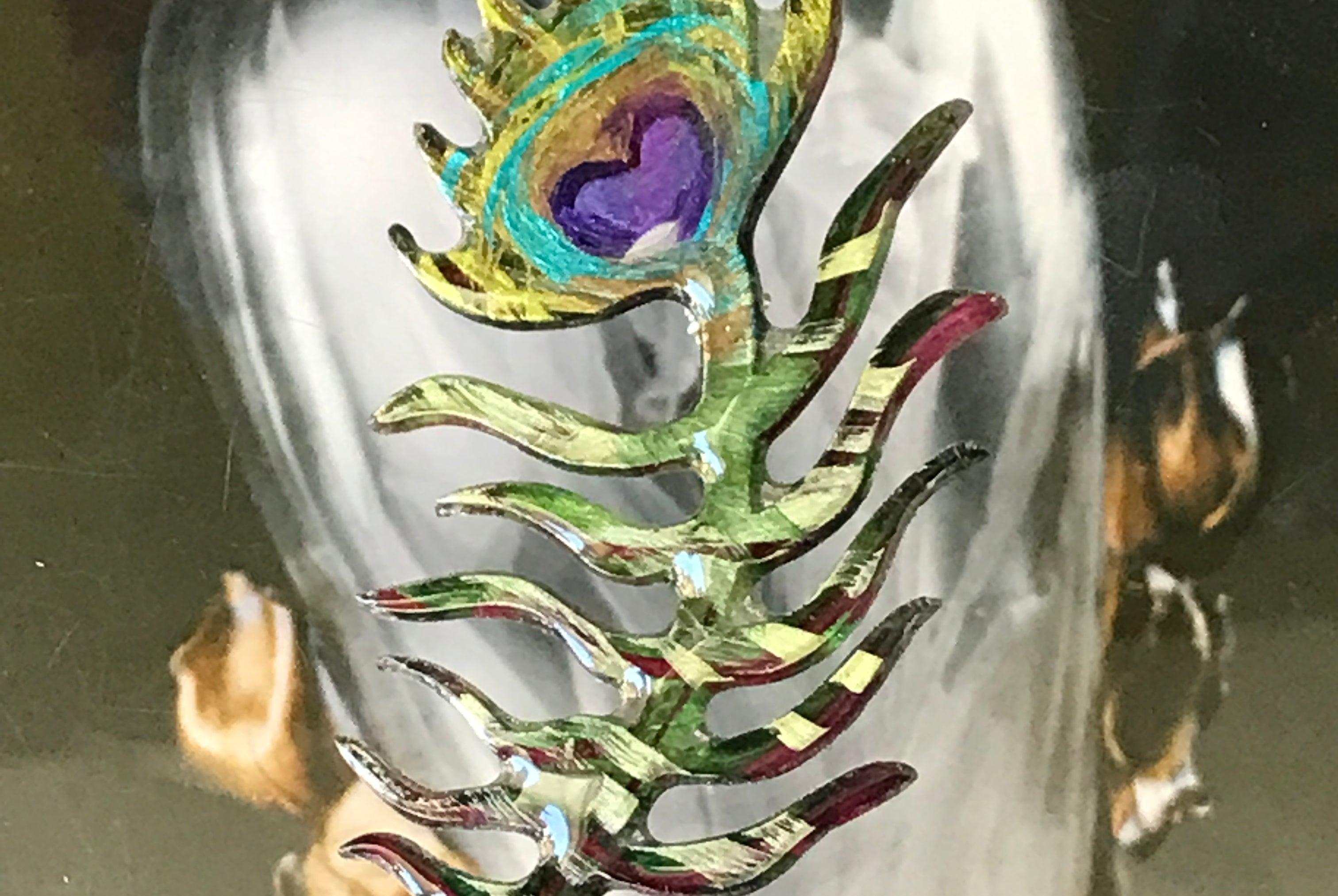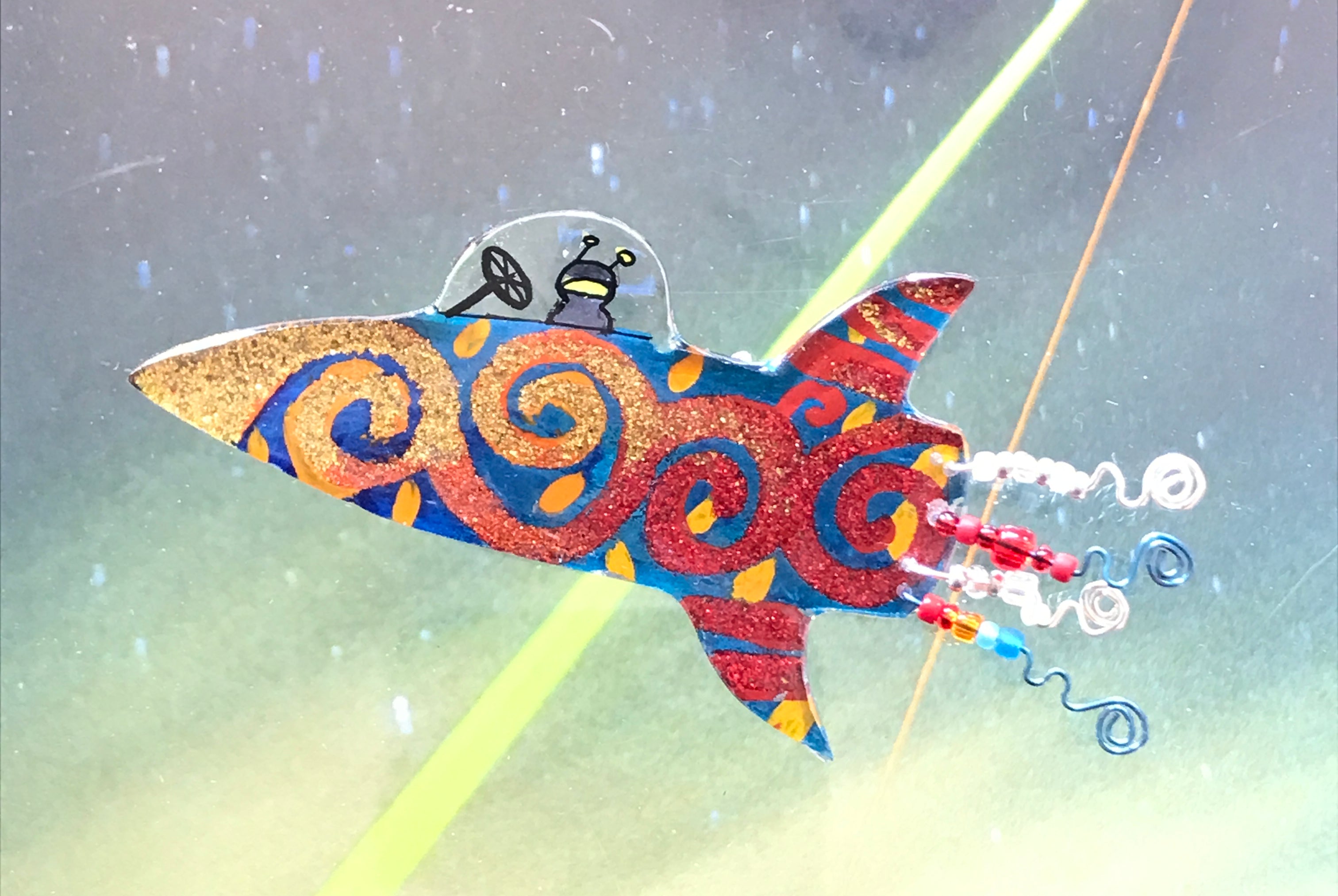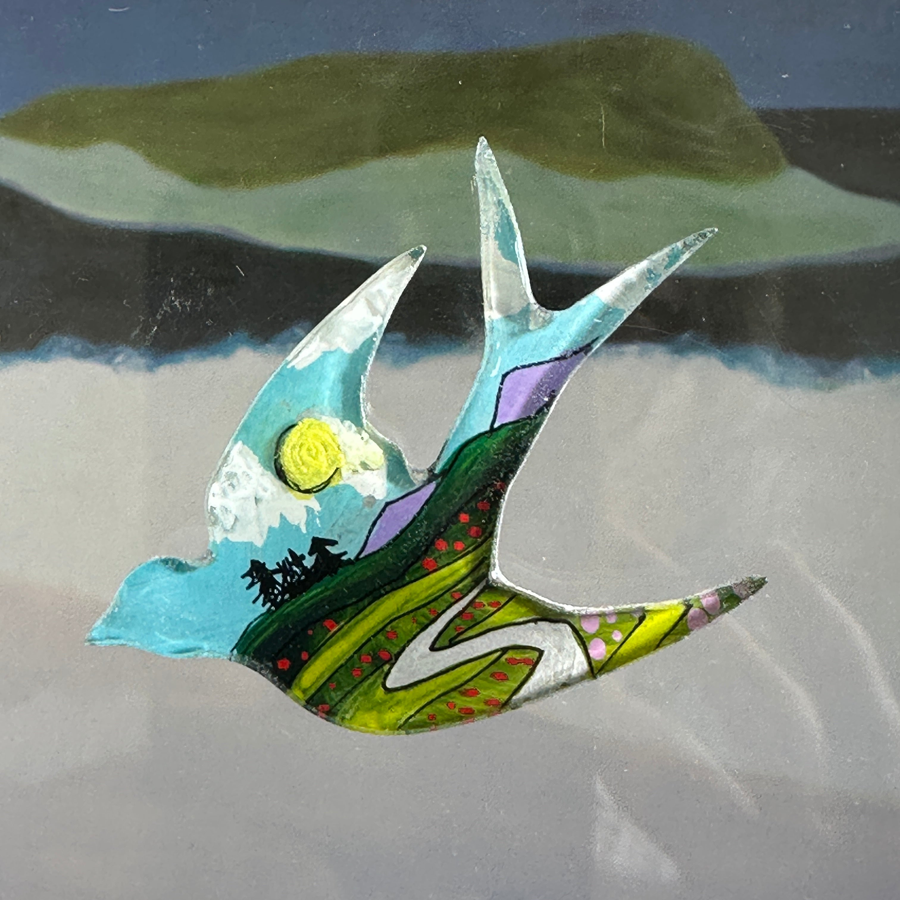 For me, these are little paintings that you can wear. If you are thinking of shrinky-dinks, I'm sure that was in my mind when I came up with lasercutting the shapes and then painting with the same paints I use on canvas. It's a multi layered process that takes a long time. The painting takes the longest, but it is the most rewarding. They are coated with a thick and sturdy glaze that brings out the depth and color.