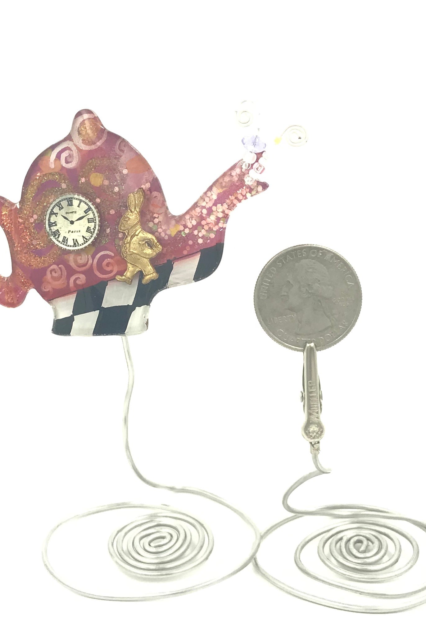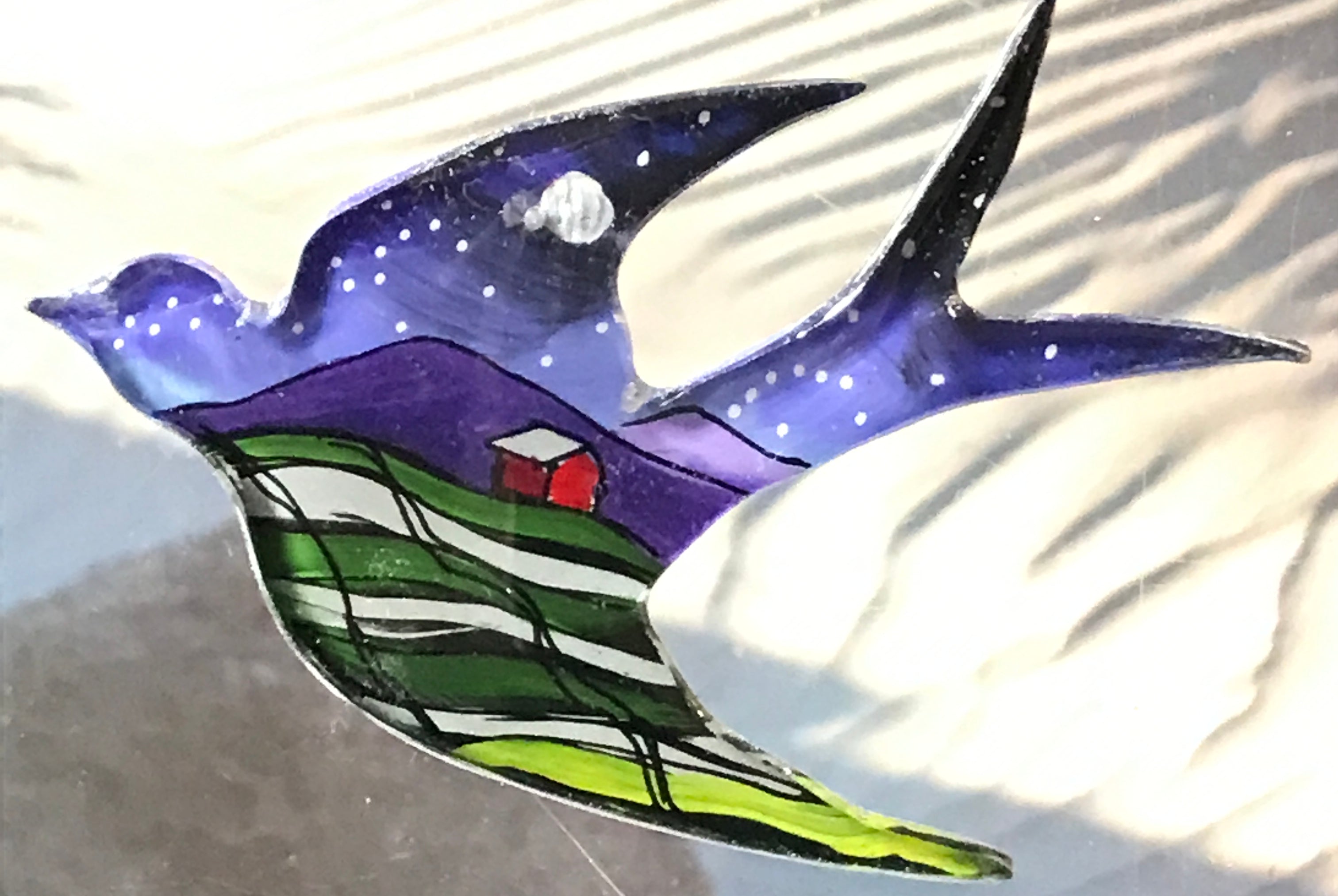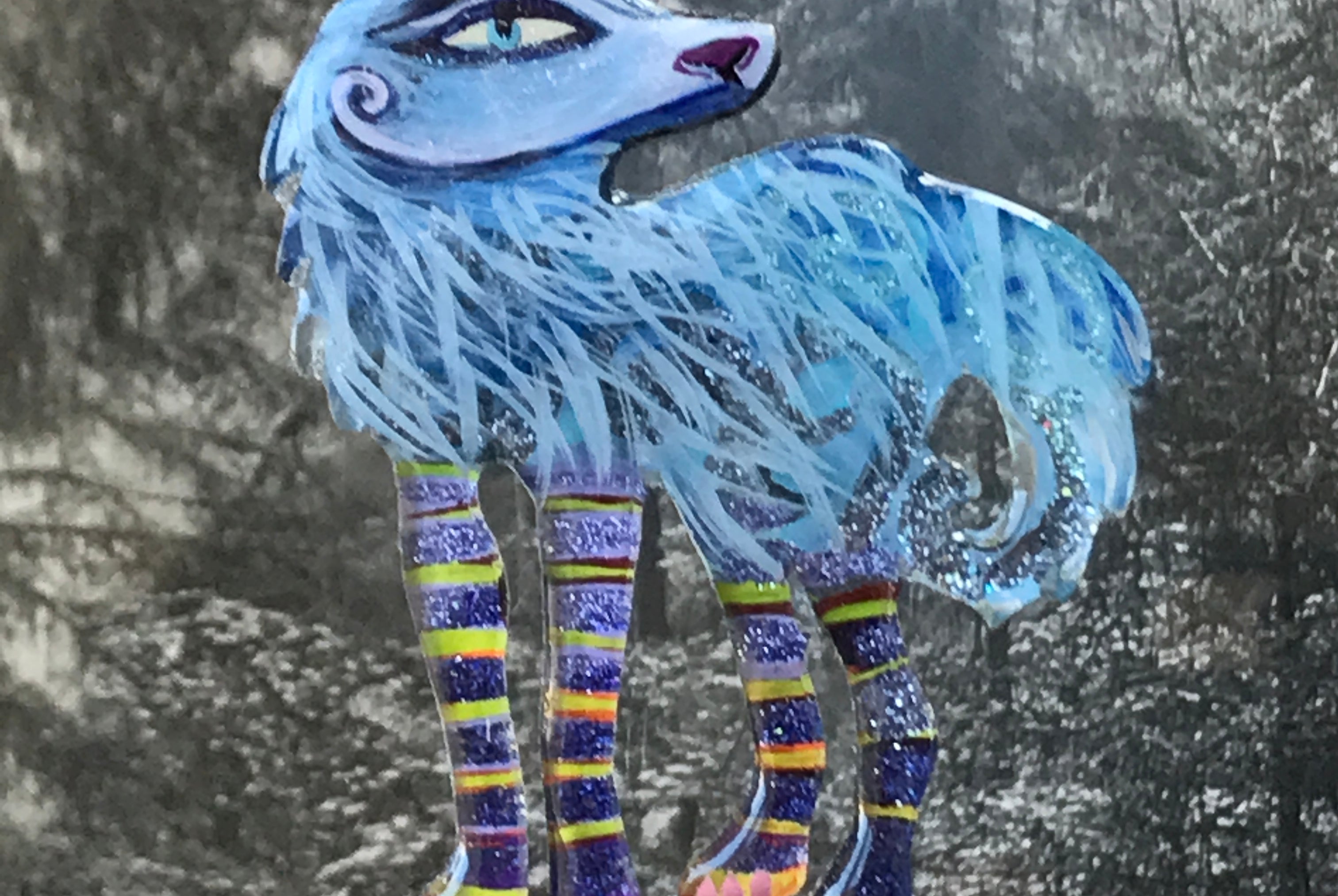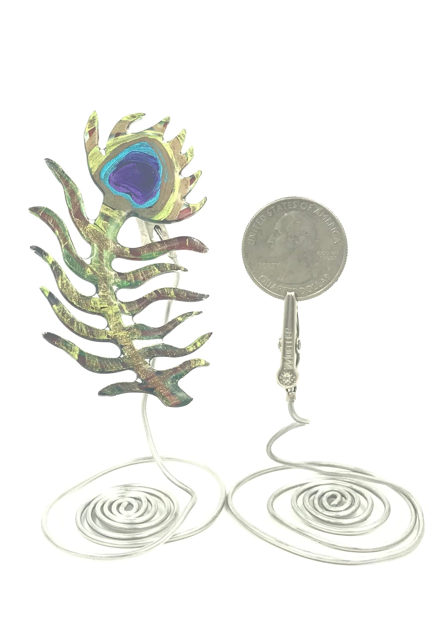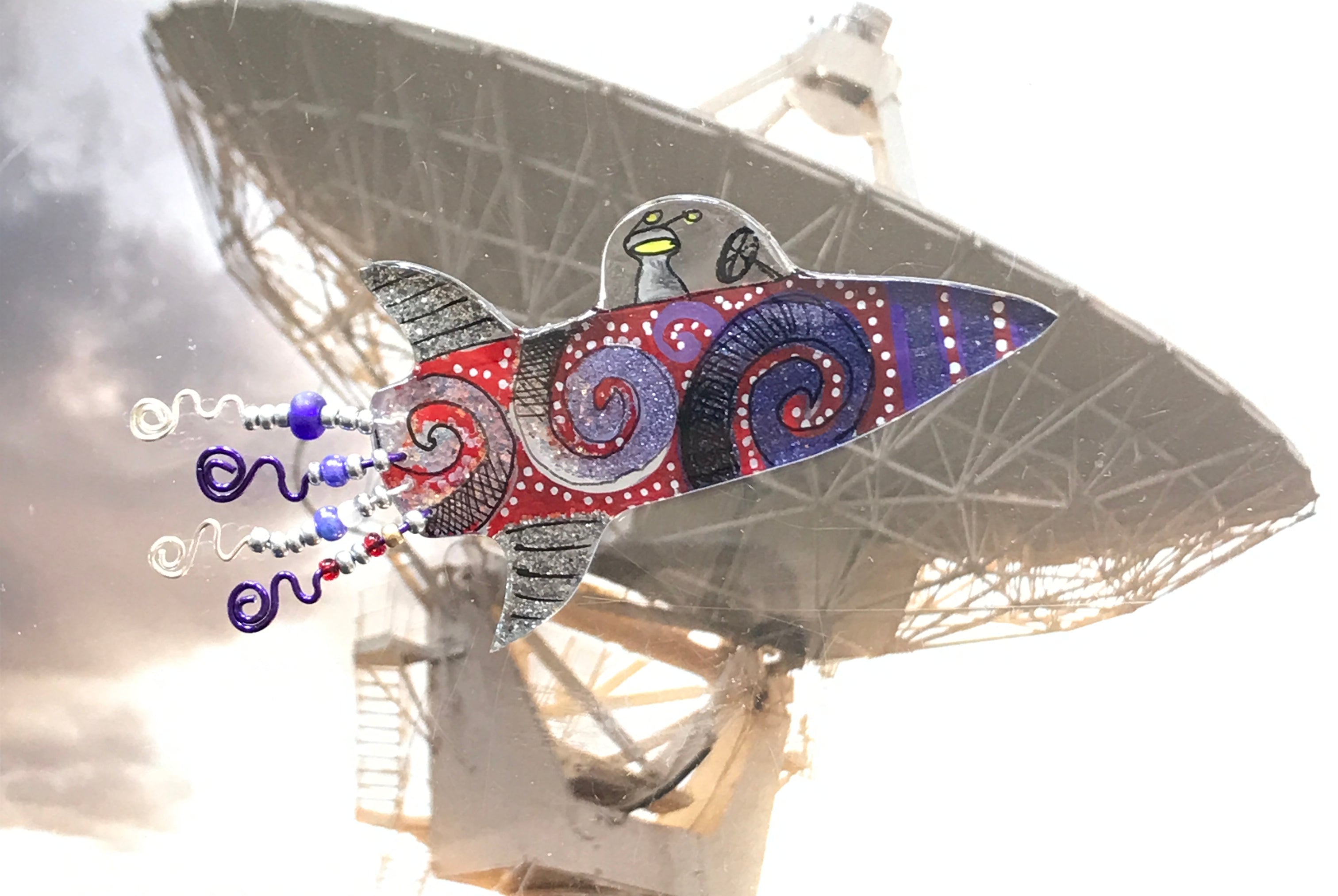 For me, these are little paintings that you can wear. If you are thinking of shrinky-dinks, I'm sure that was in my mind when I came up with lasercutting the shapes and then painting with the same paints I use on canvas. It's a multi layered process that takes a long time. The painting takes the longest, but it is the most rewarding. They are coated with a thick and sturdy glaze that brings out the depth and color.