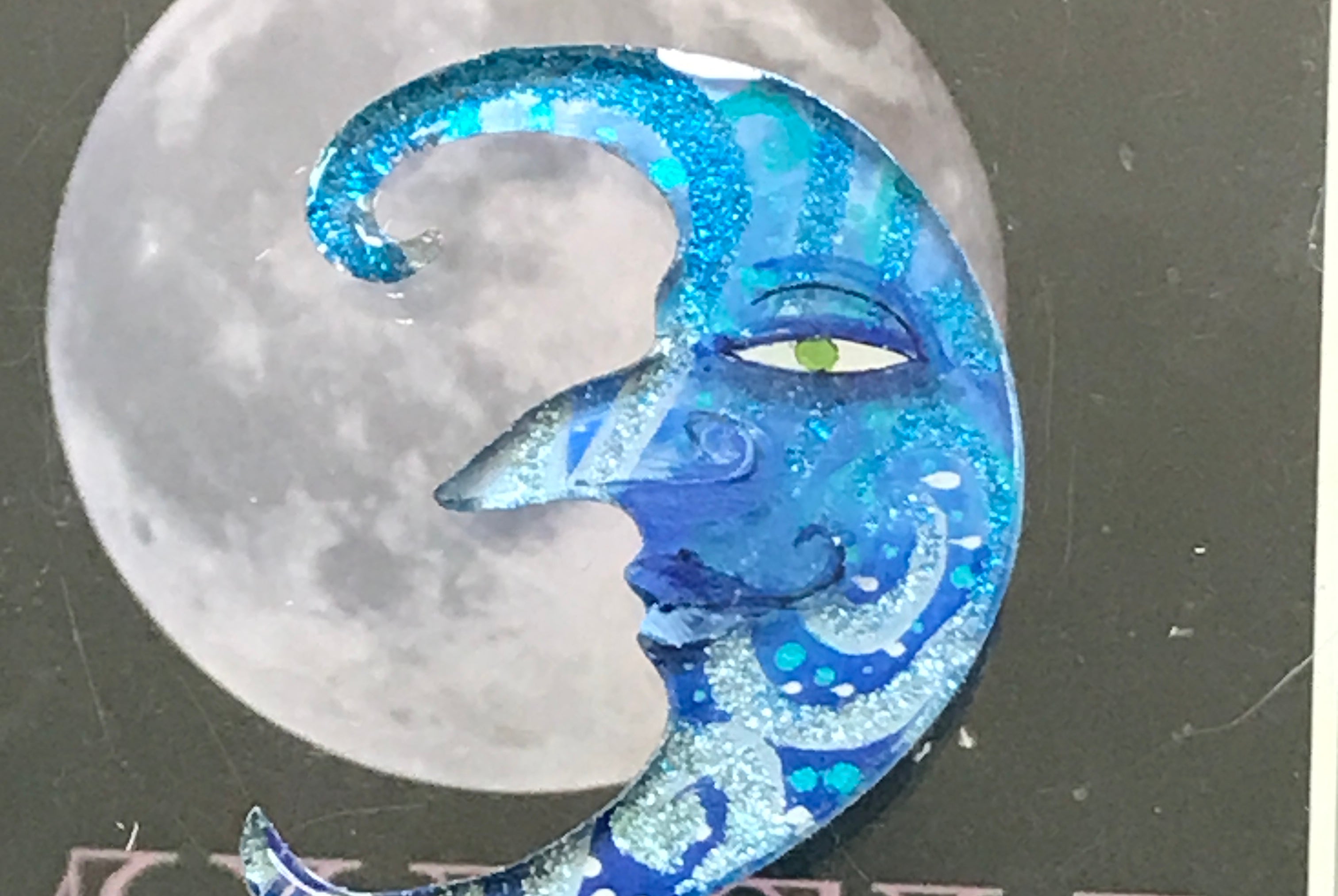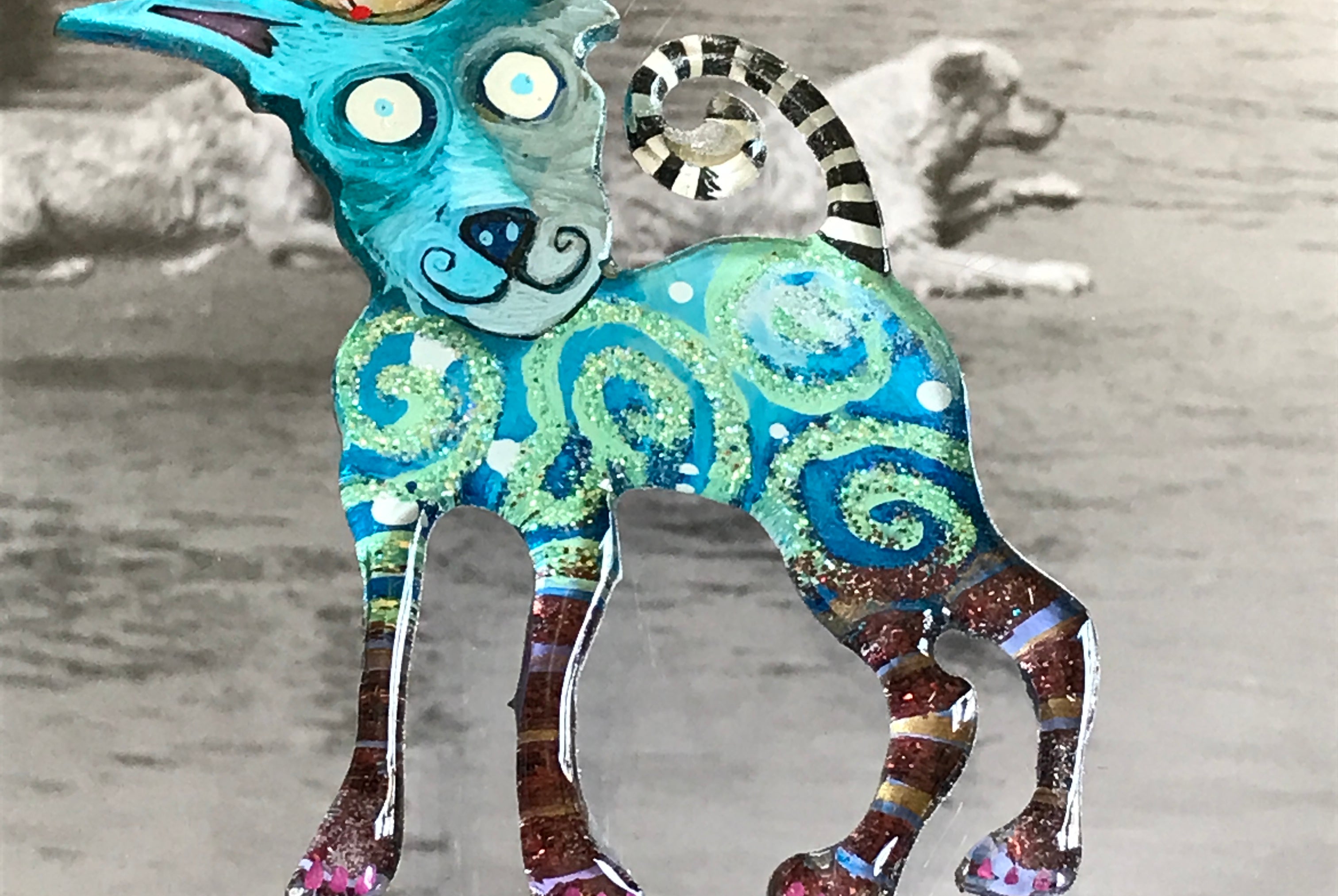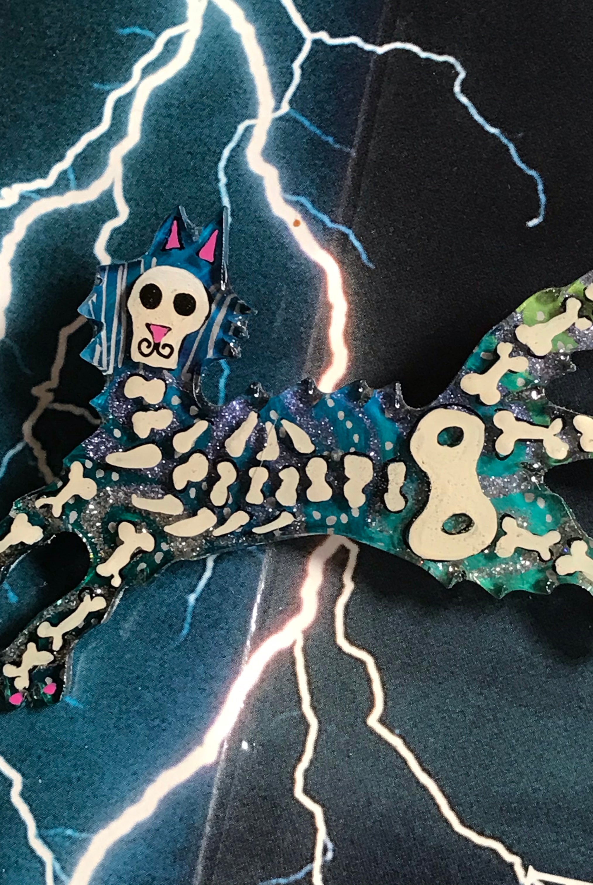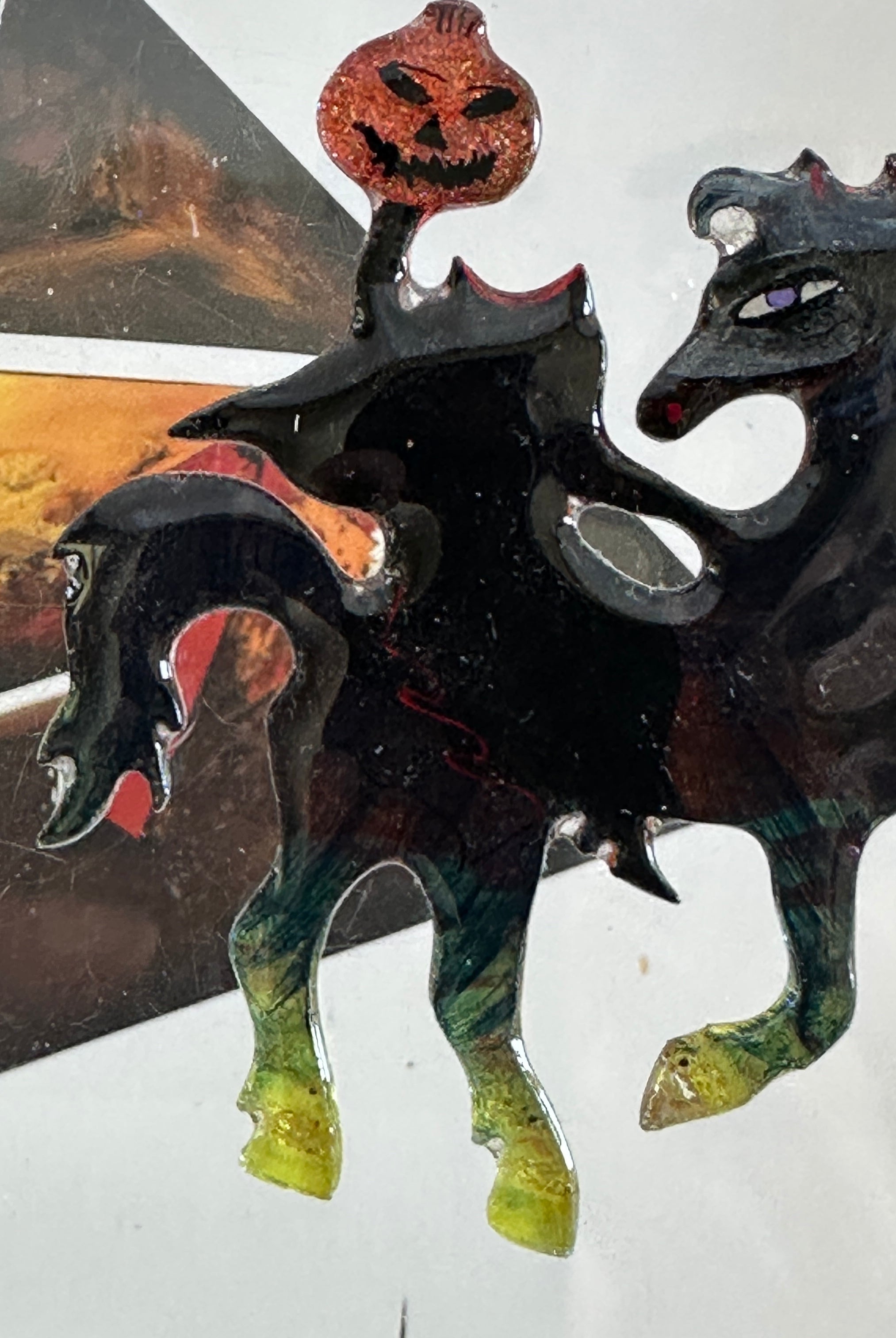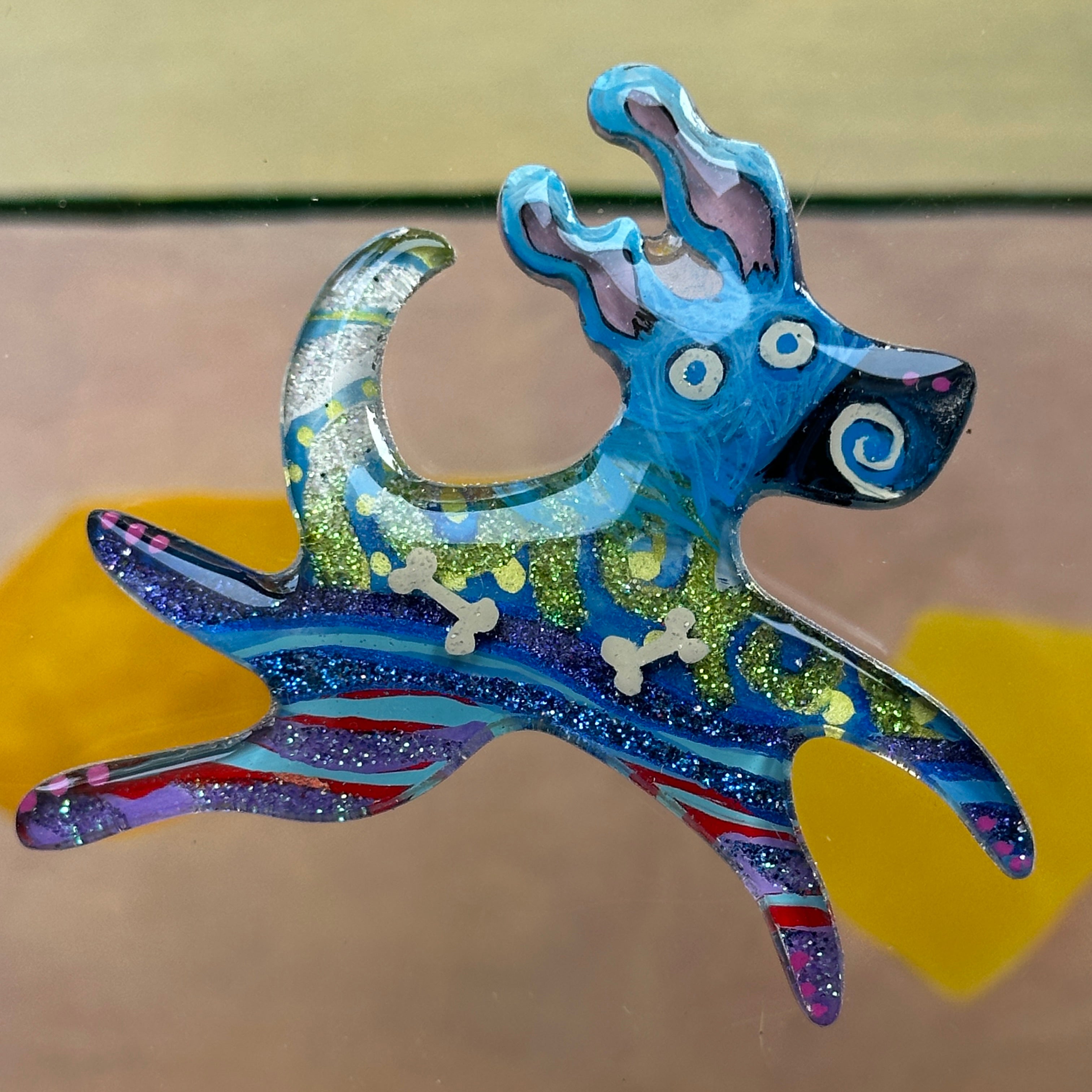 For me, these are little paintings that you can wear. If you are thinking of shrinky-dinks, I'm sure that was in my mind when I came up with lasercutting the shapes and then painting with the same paints I use on canvas. It's a multi layered process that takes a long time. The painting takes the longest, but it is the most rewarding. They are coated with a thick and sturdy glaze that brings out the depth and color.