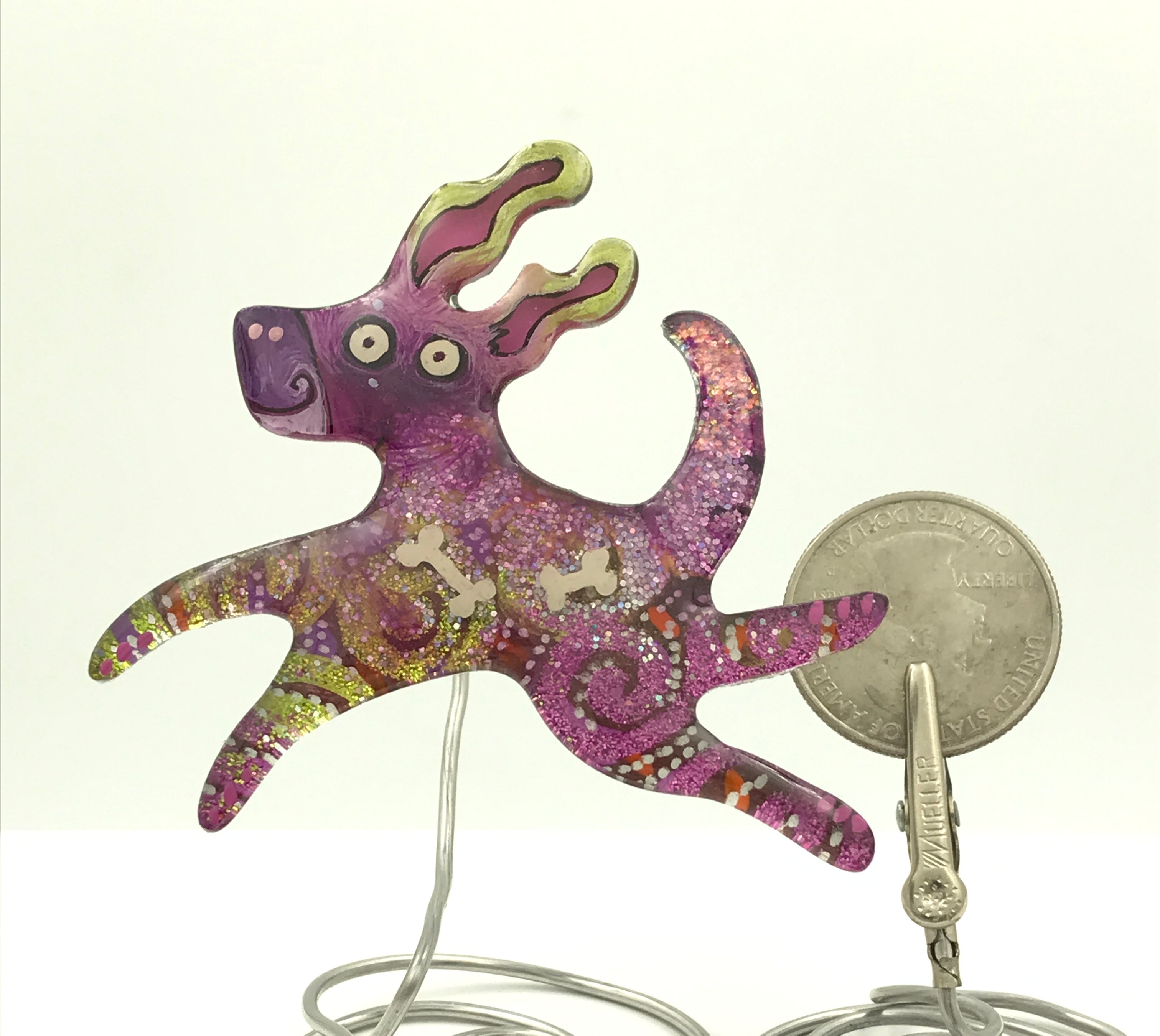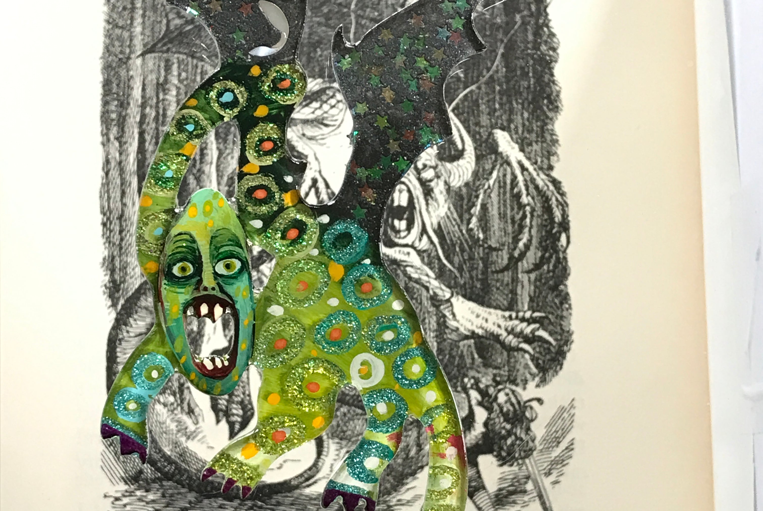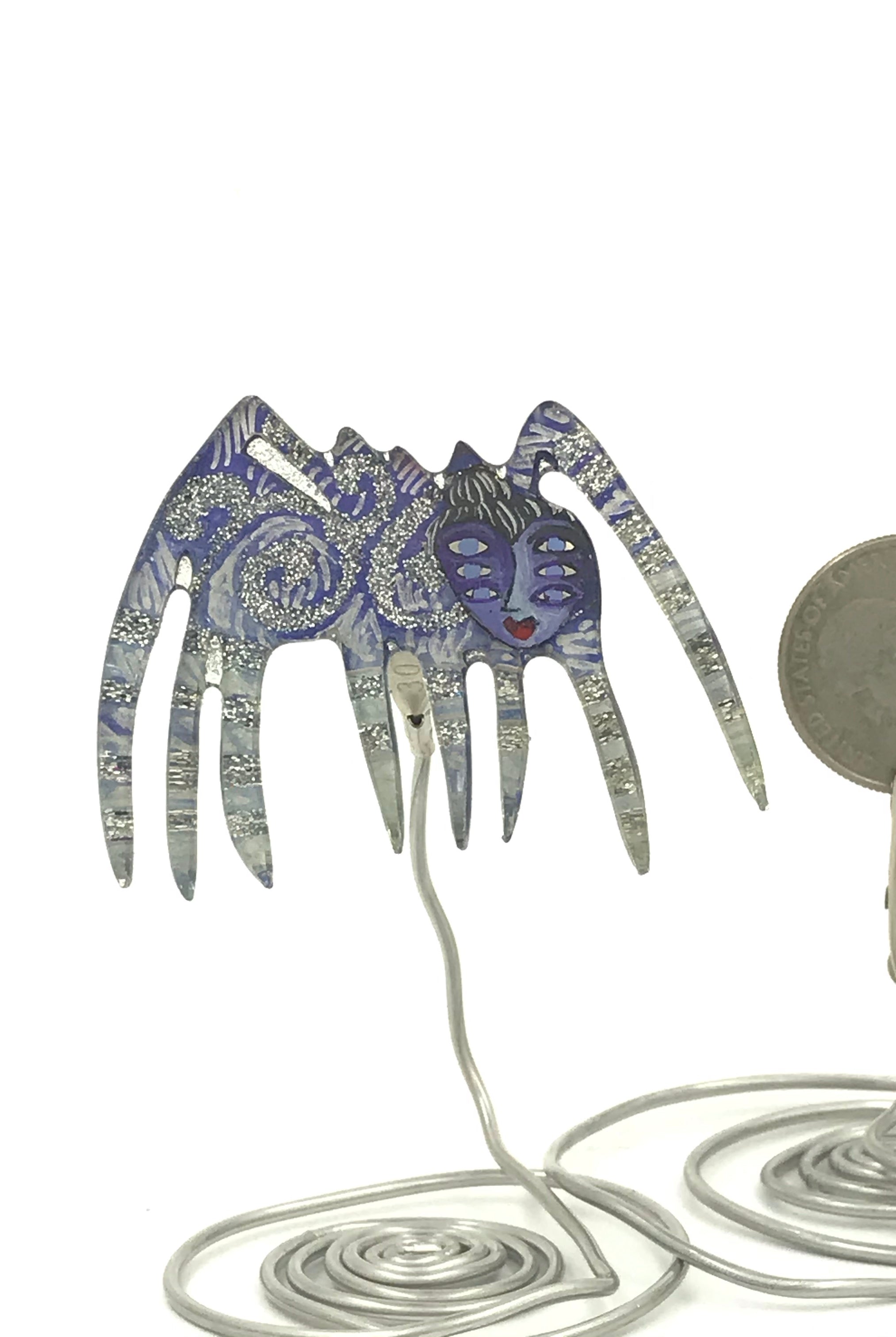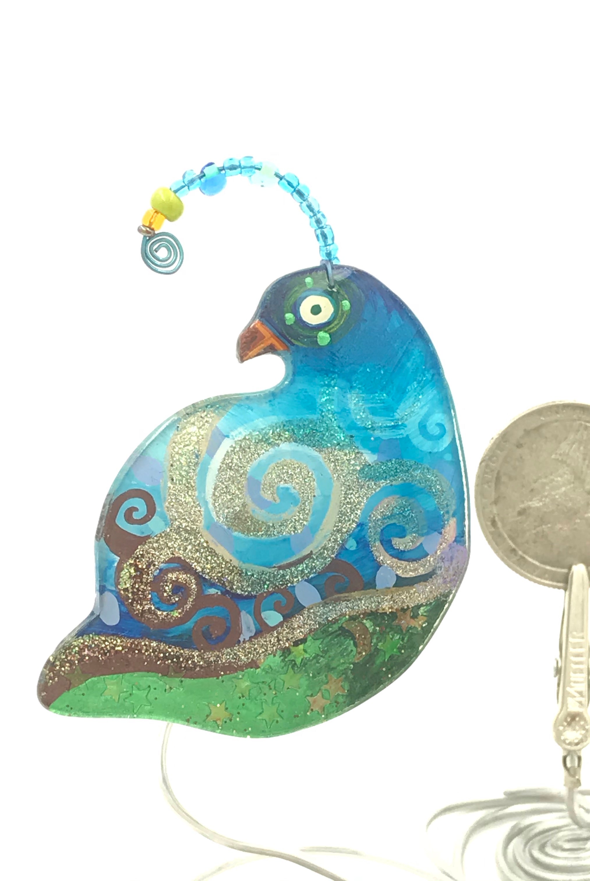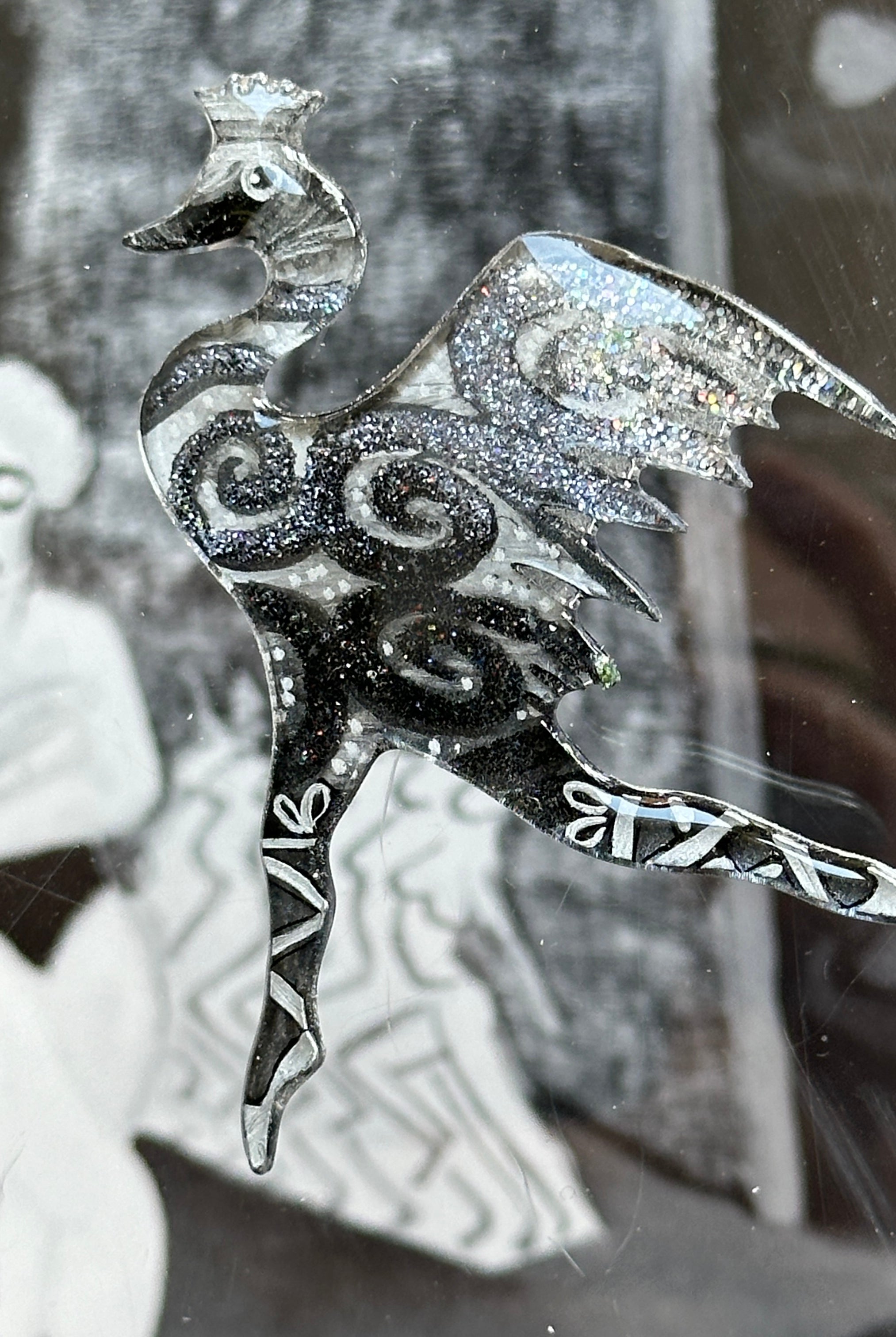 For me, these are little paintings that you can wear. If you are thinking of shrinky-dinks, I'm sure that was in my mind when I came up with lasercutting the shapes and then painting with the same paints I use on canvas. It's a multi layered process that takes a long time. The painting takes the longest, but it is the most rewarding. They are coated with a thick and sturdy glaze that brings out the depth and color.