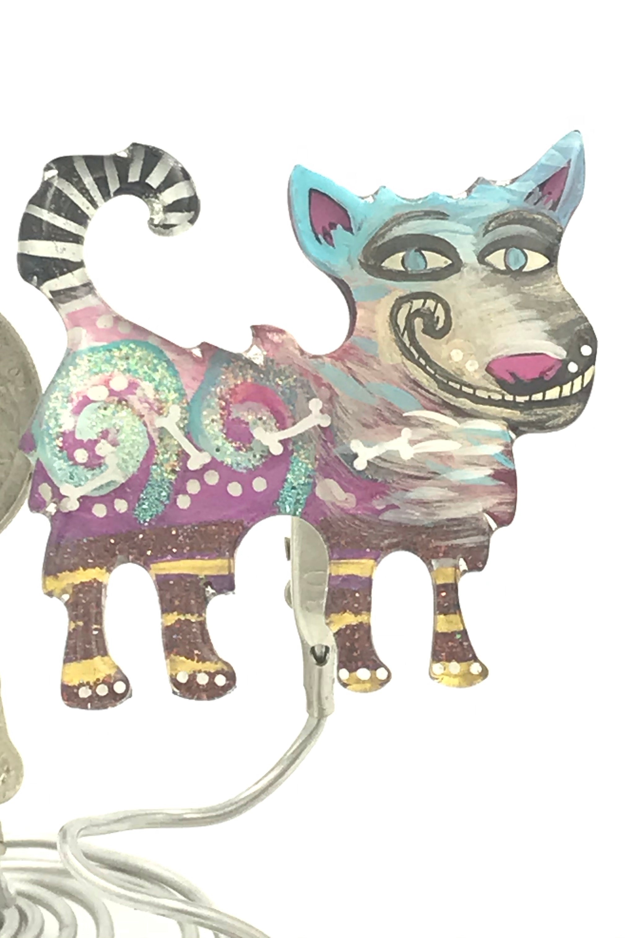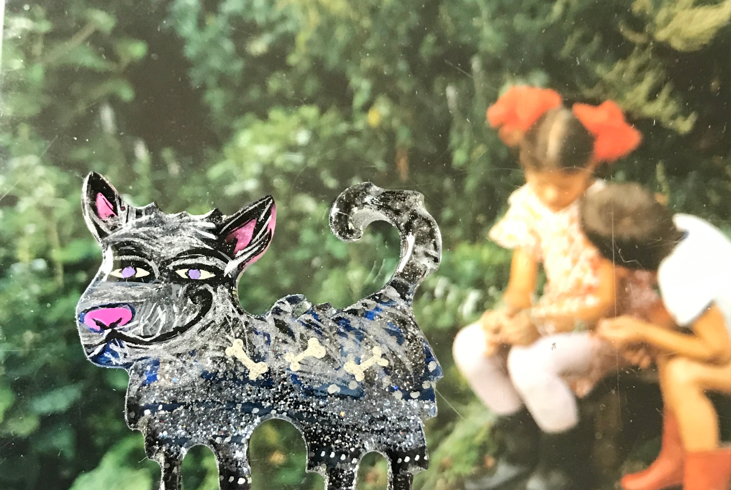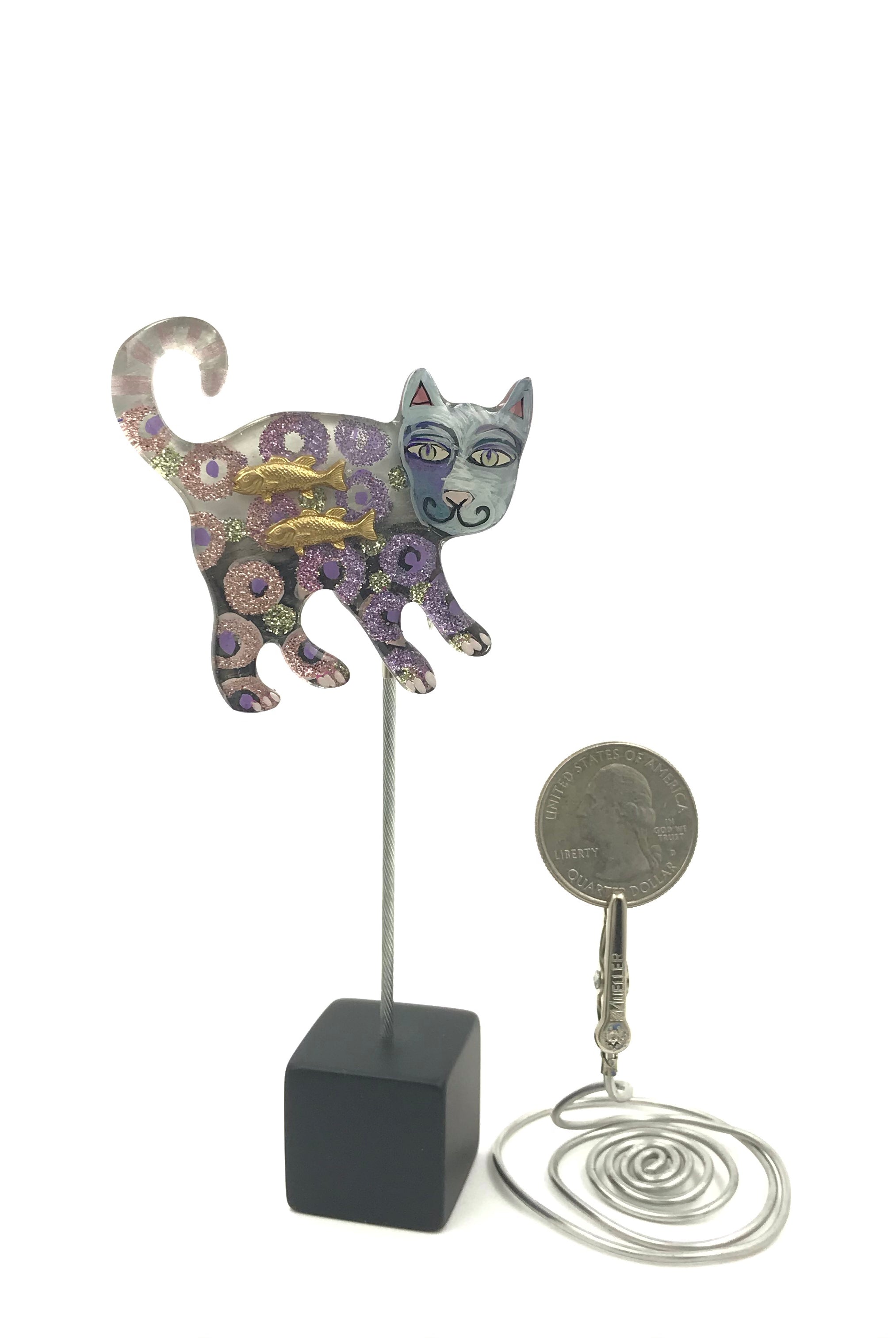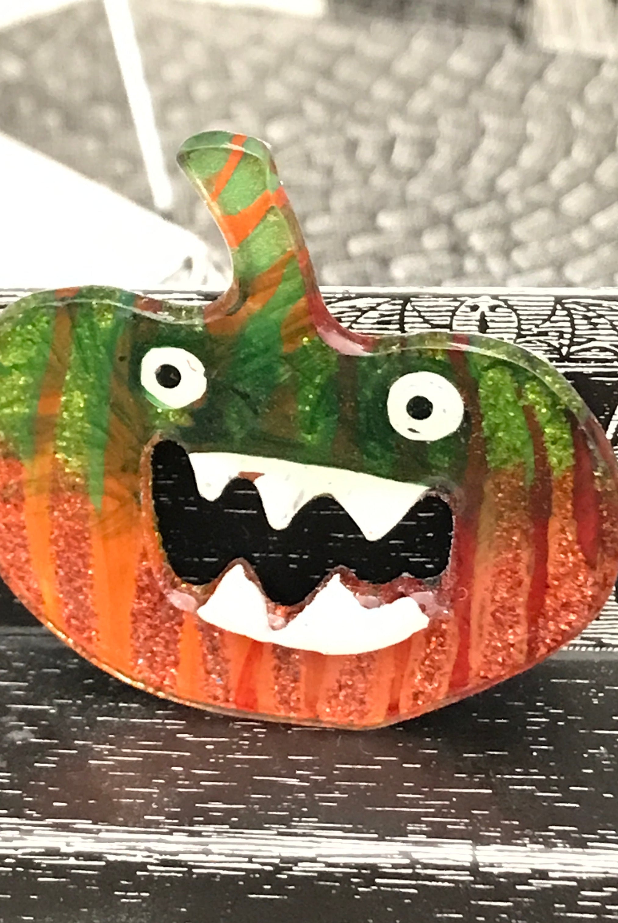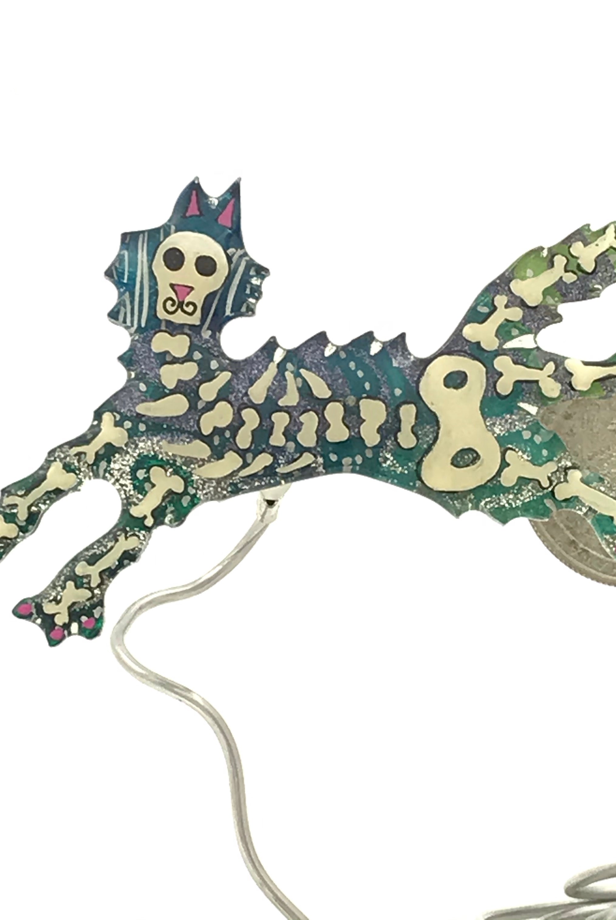 For me, these are little paintings that you can wear. If you are thinking of shrinky-dinks, I'm sure that was in my mind when I came up with lasercutting the shapes and then painting with the same paints I use on canvas. It's a multi layered process that takes a long time. The painting takes the longest, but it is the most rewarding. They are coated with a thick and sturdy glaze that brings out the depth and color.
