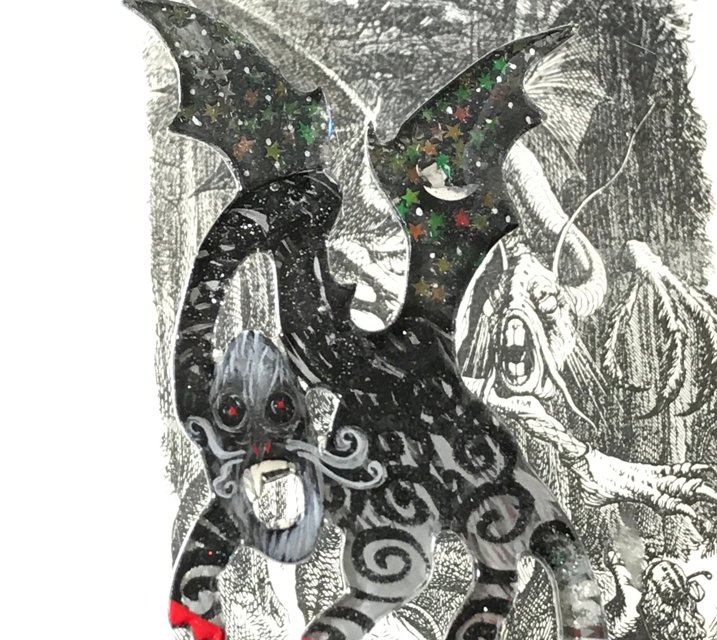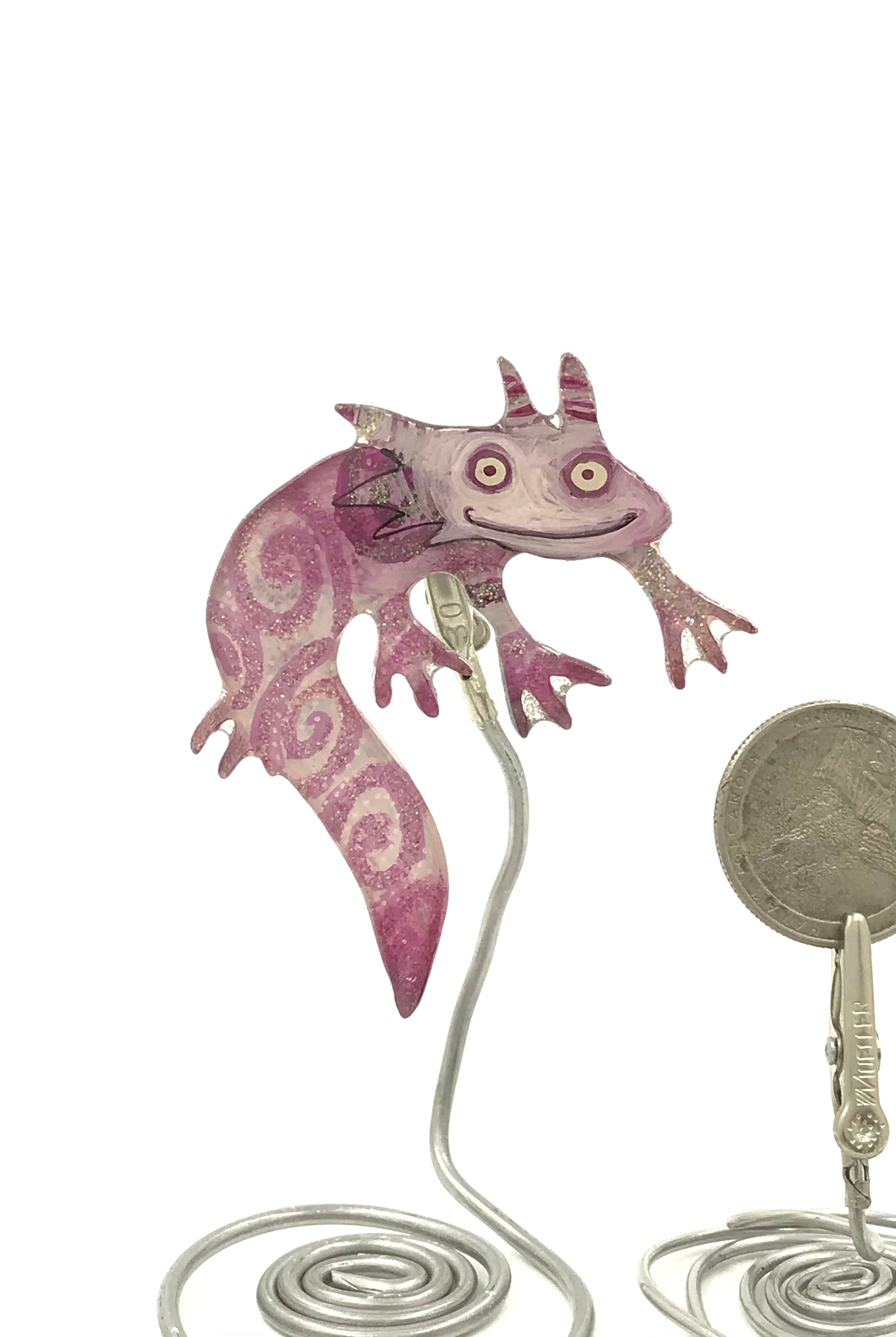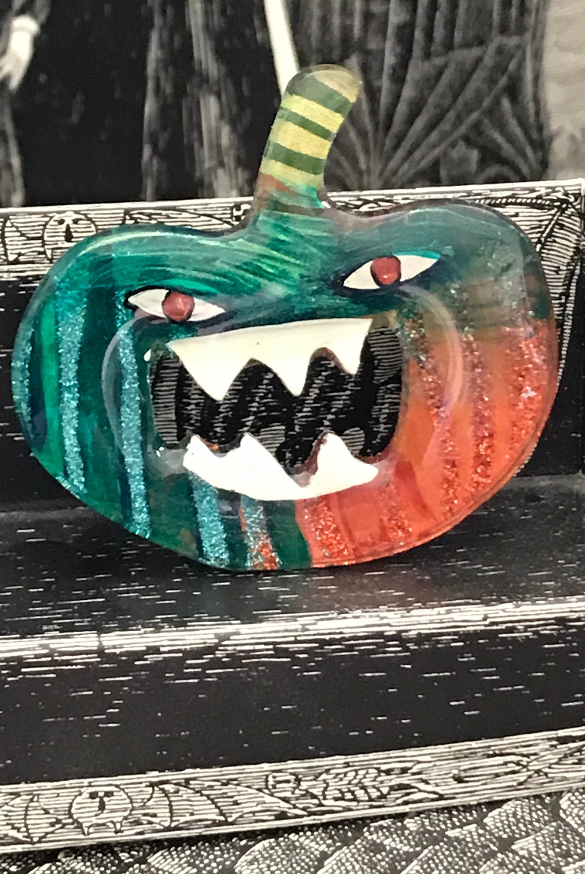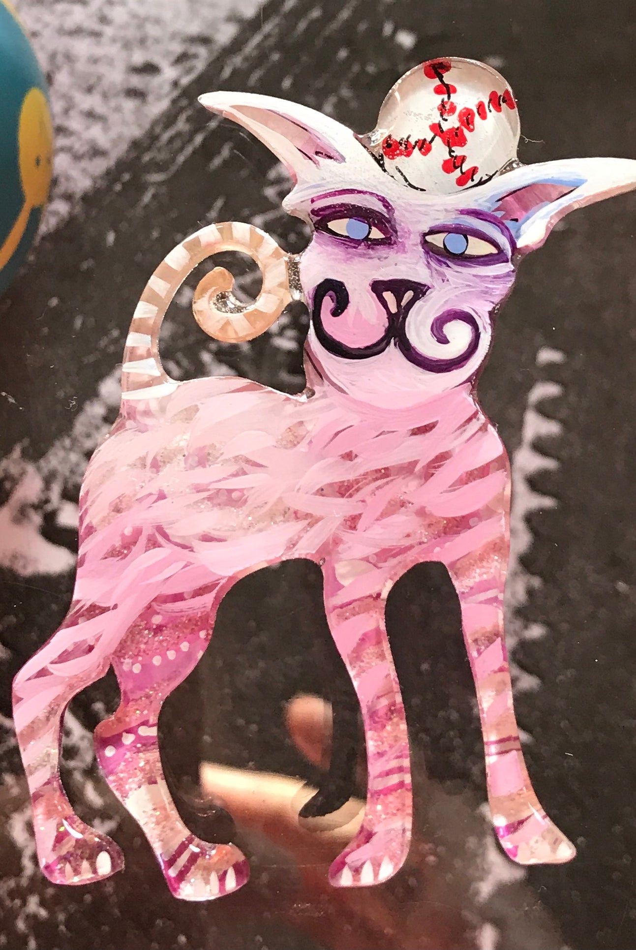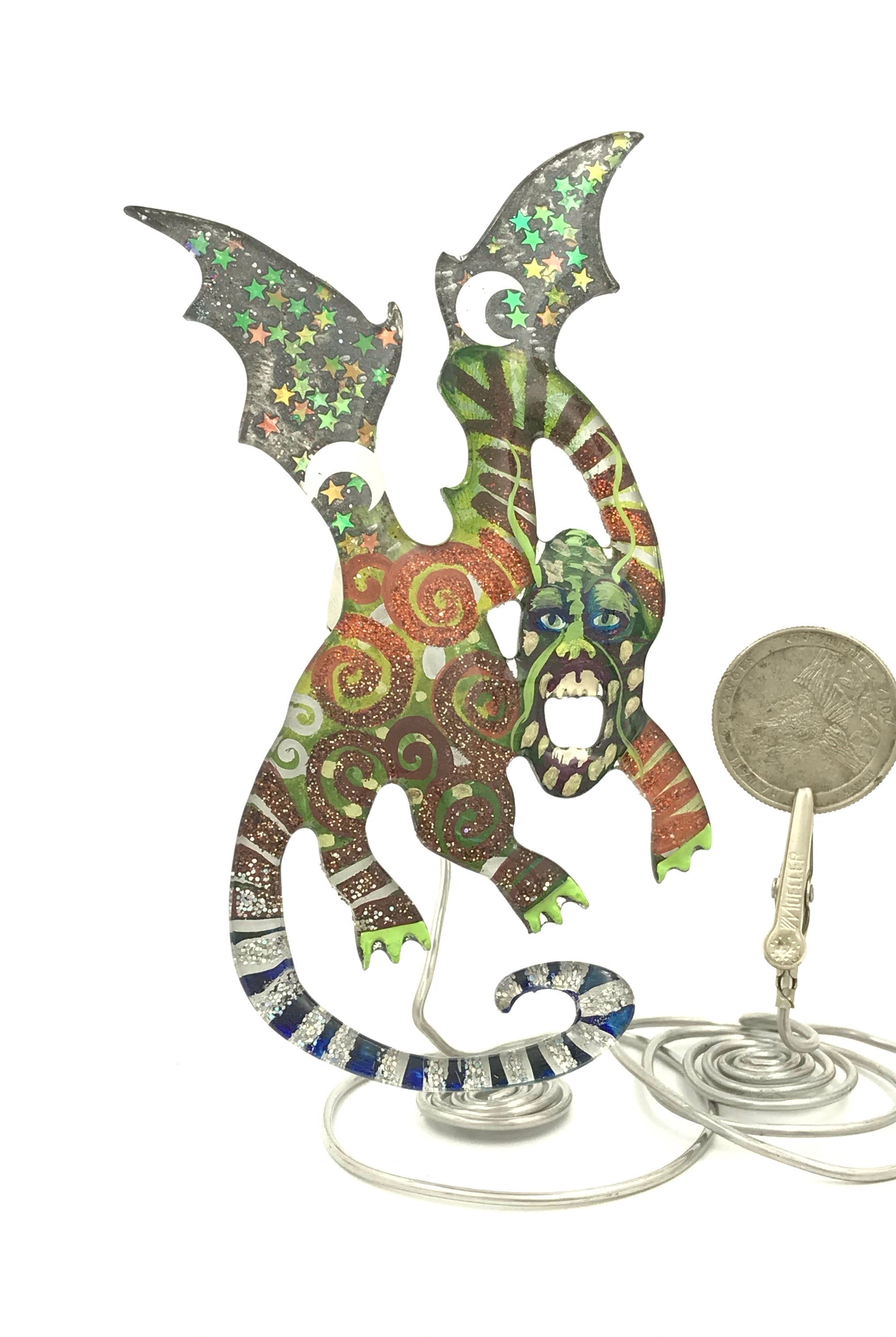 For me, these are little paintings that you can wear. If you are thinking of shrinky-dinks, I'm sure that was in my mind when I came up with lasercutting the shapes and then painting with the same paints I use on canvas. It's a multi layered process that takes a long time. The painting takes the longest, but it is the most rewarding. They are coated with a thick and sturdy glaze that brings out the depth and color.