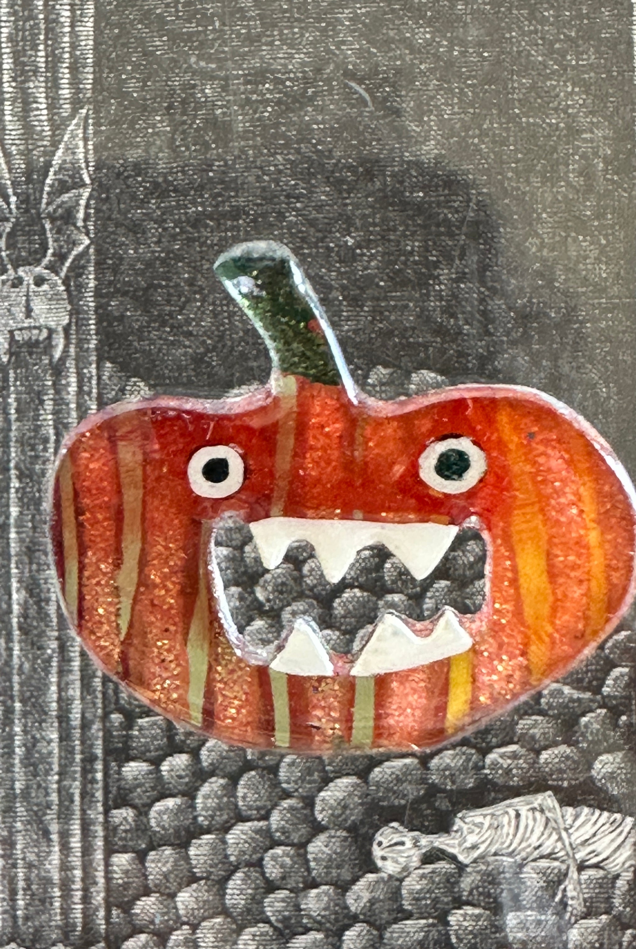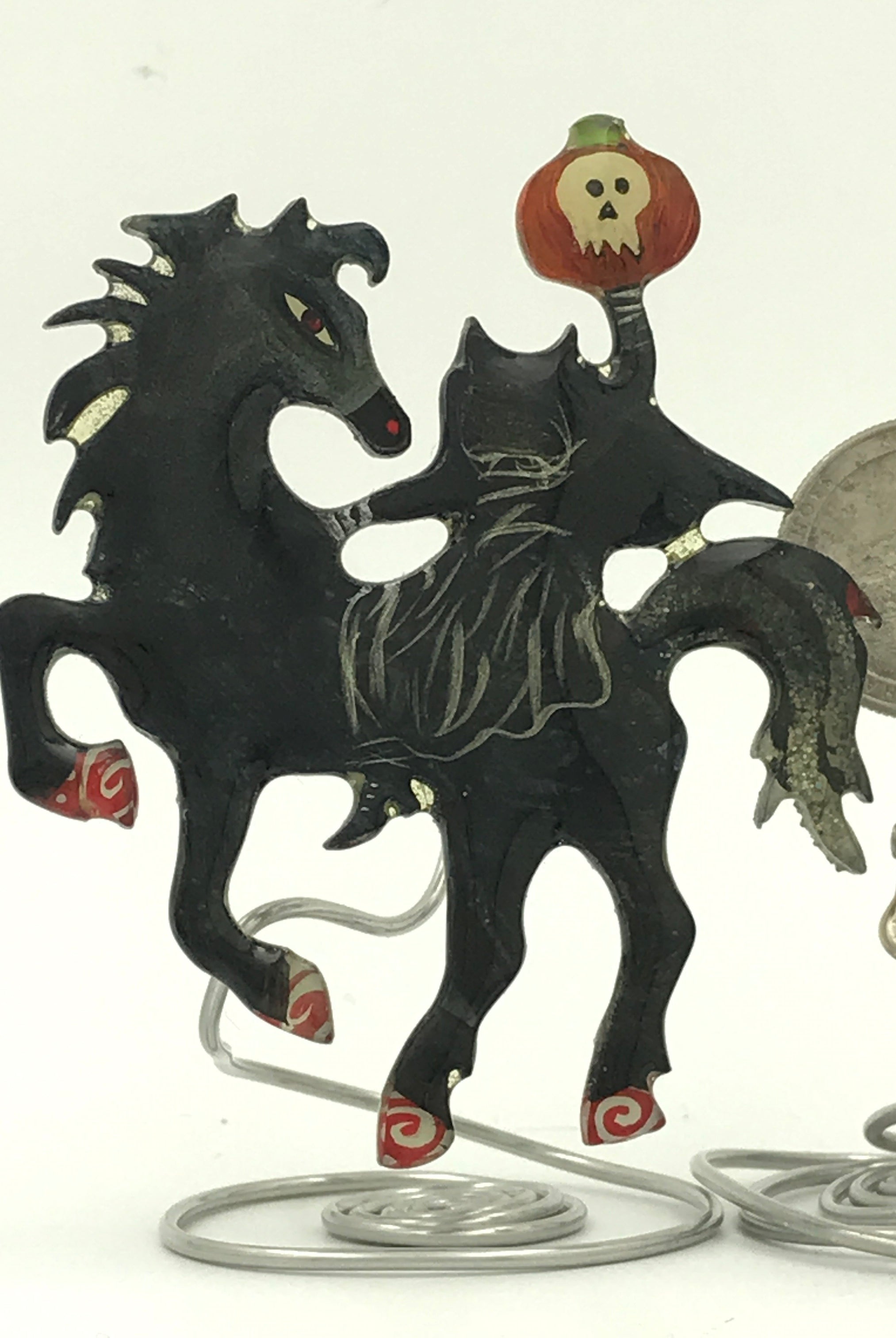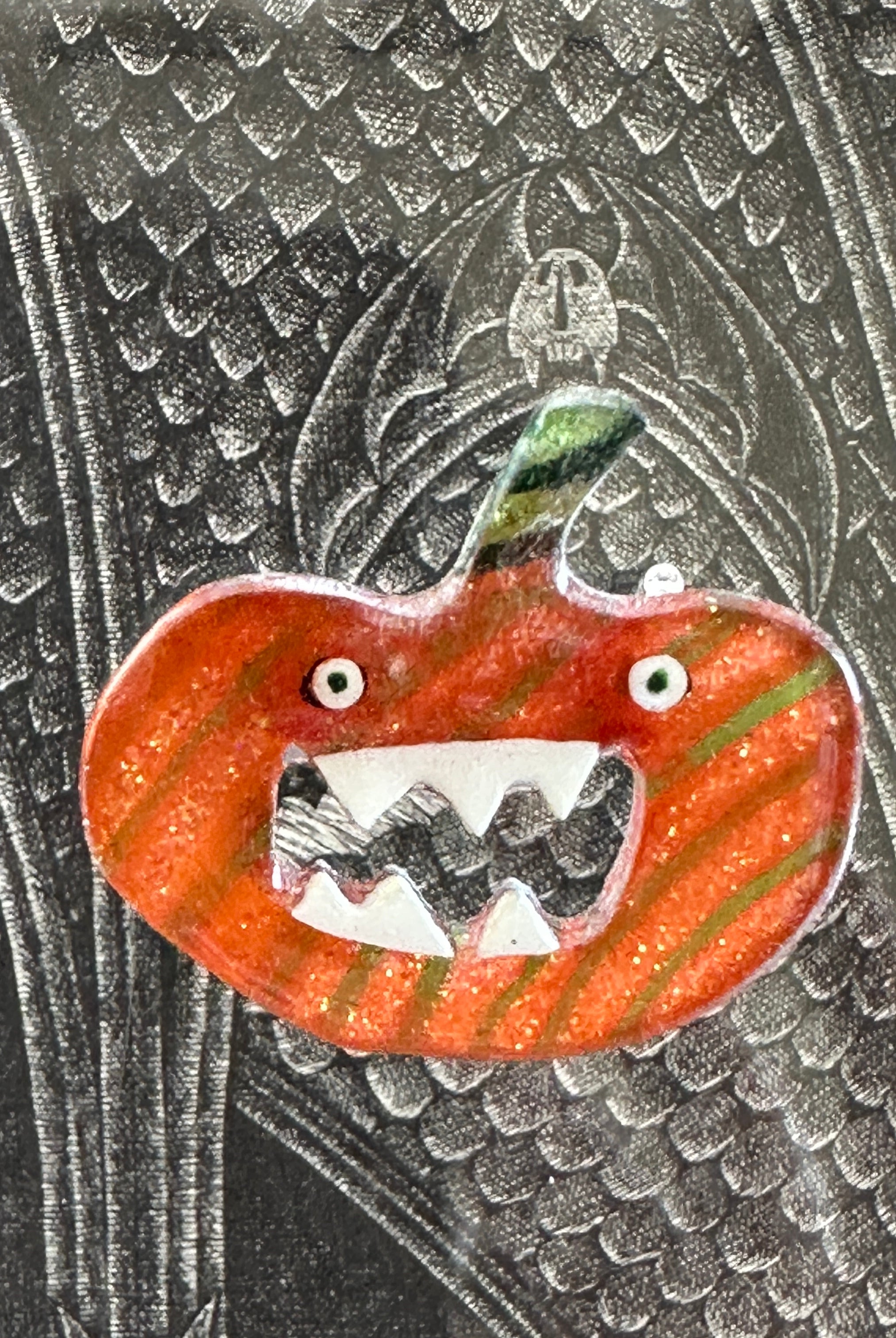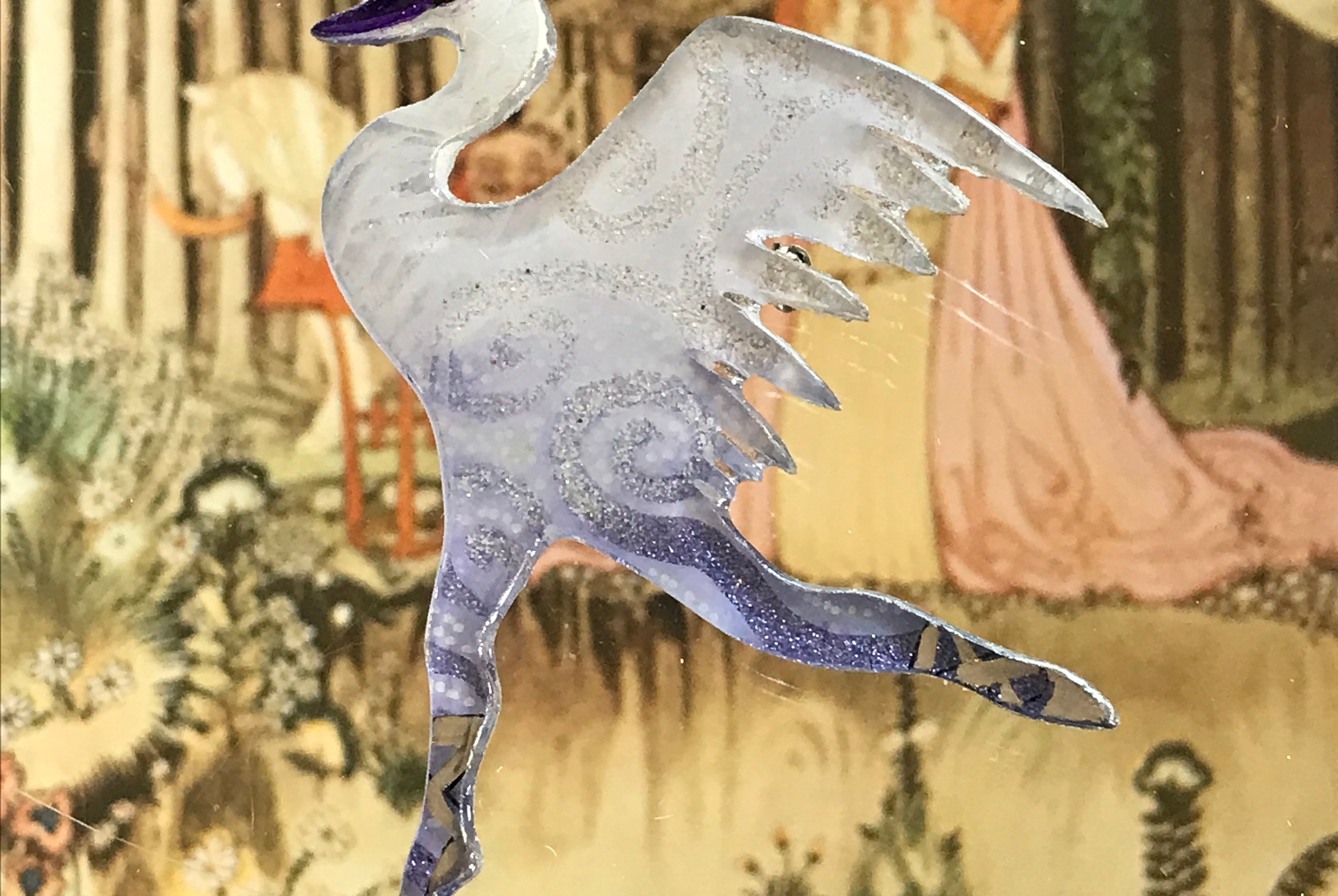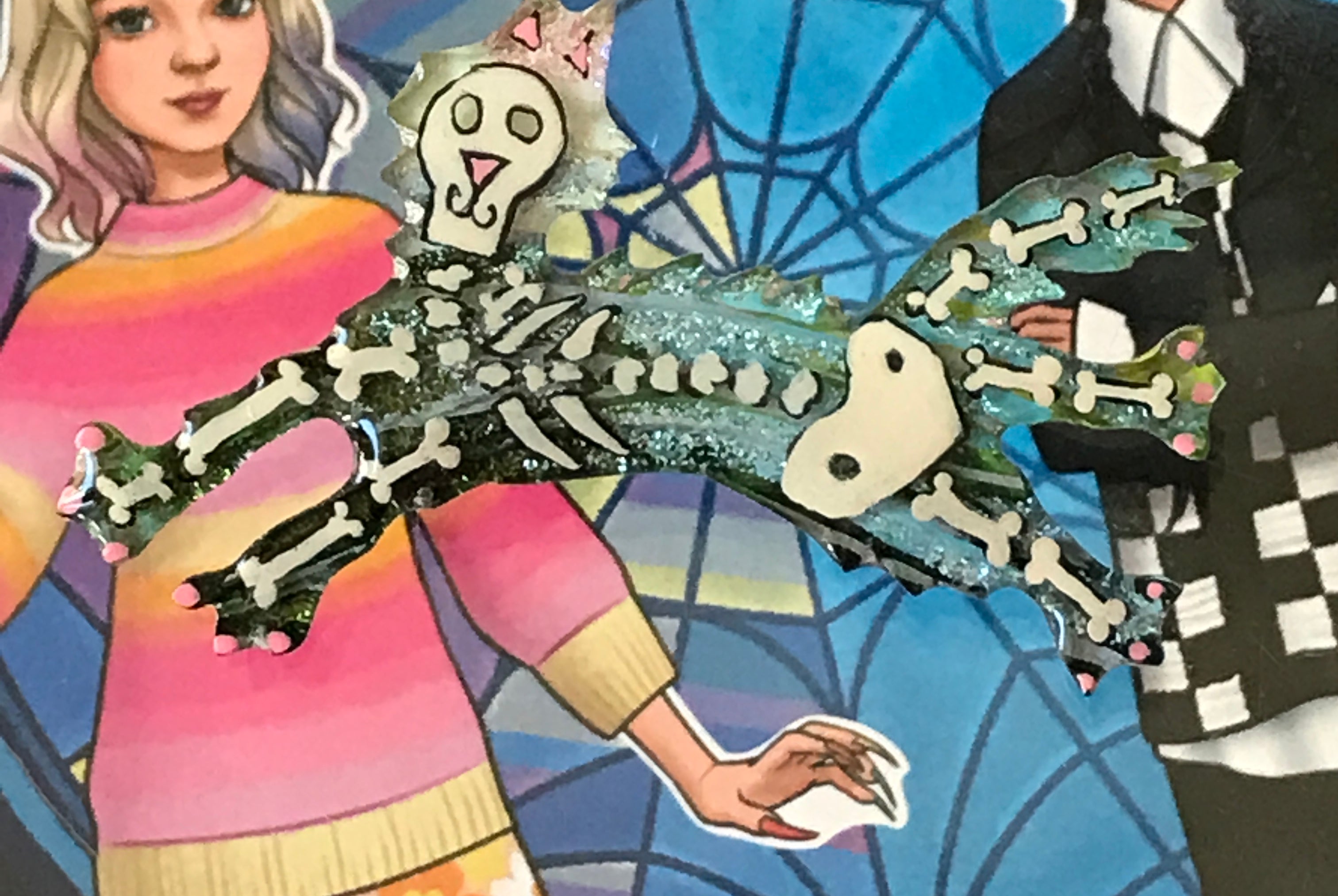 For me, these are little paintings that you can wear. If you are thinking of shrinky-dinks, I'm sure that was in my mind when I came up with lasercutting the shapes and then painting with the same paints I use on canvas. It's a multi layered process that takes a long time. The painting takes the longest, but it is the most rewarding. They are coated with a thick and sturdy glaze that brings out the depth and color.
