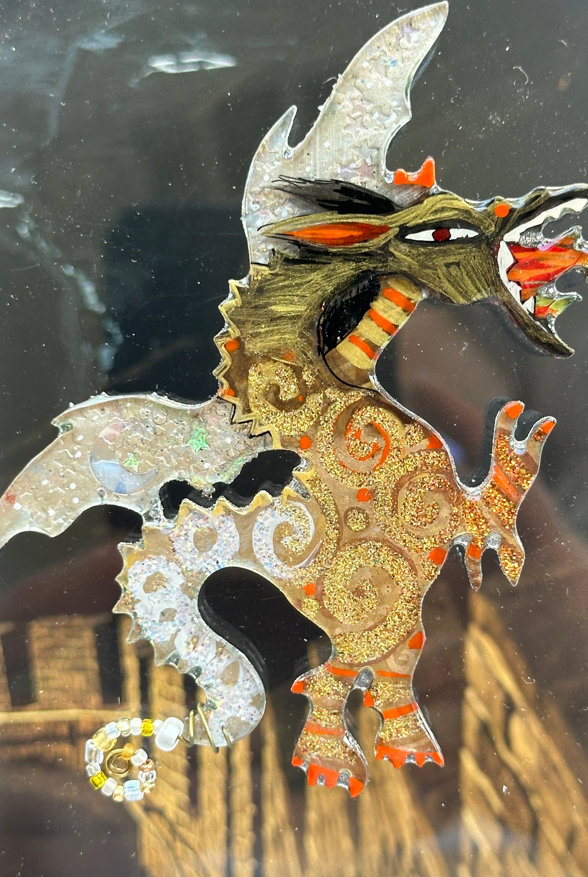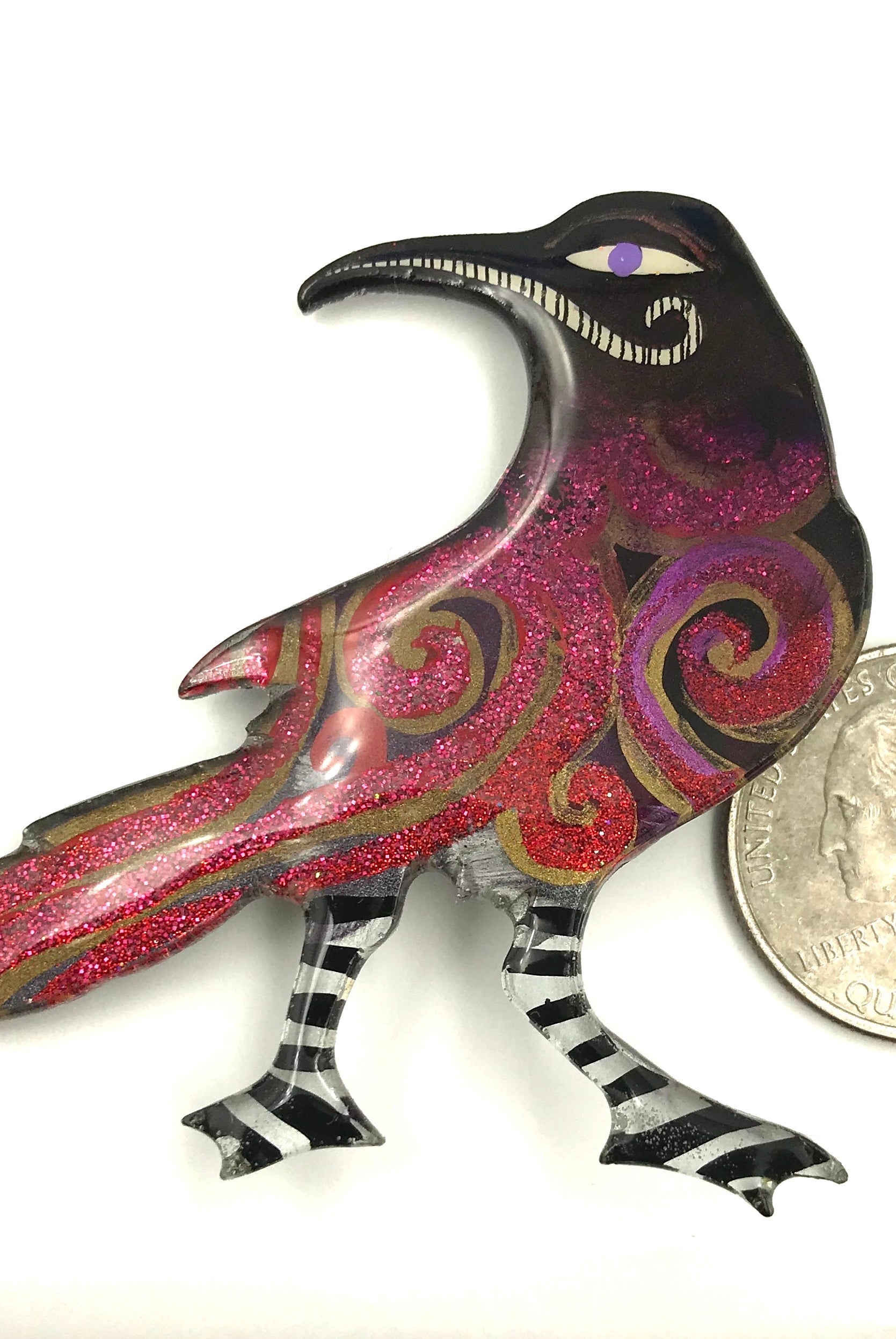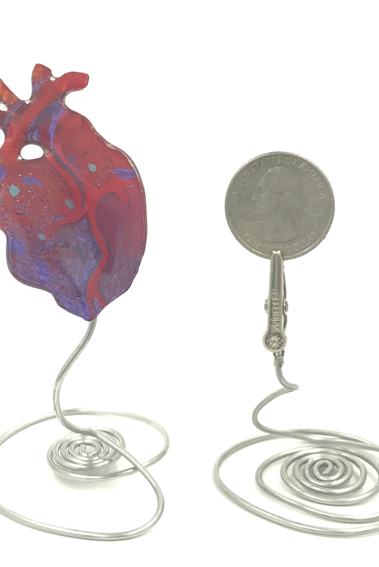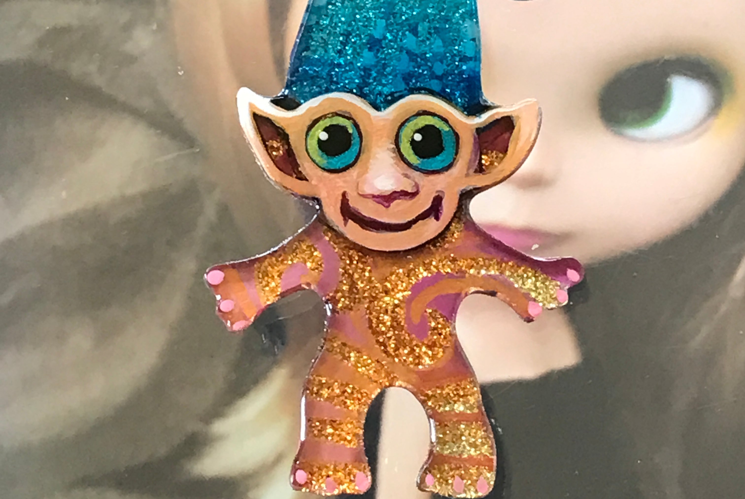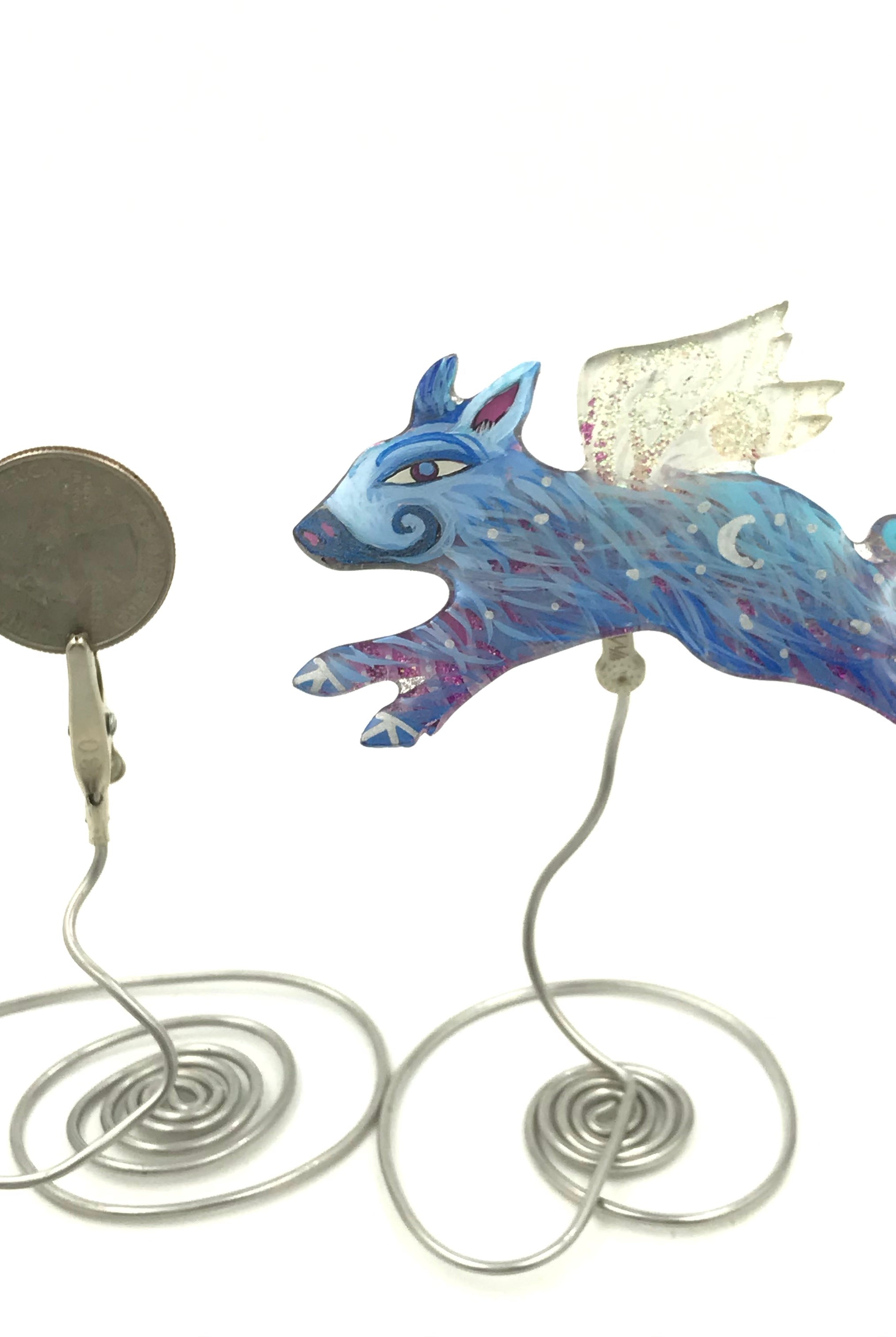 For me, these are little paintings that you can wear. If you are thinking of shrinky-dinks, I'm sure that was in my mind when I came up with lasercutting the shapes and then painting with the same paints I use on canvas. It's a multi layered process that takes a long time. The painting takes the longest, but it is the most rewarding. They are coated with a thick and sturdy glaze that brings out the depth and color.