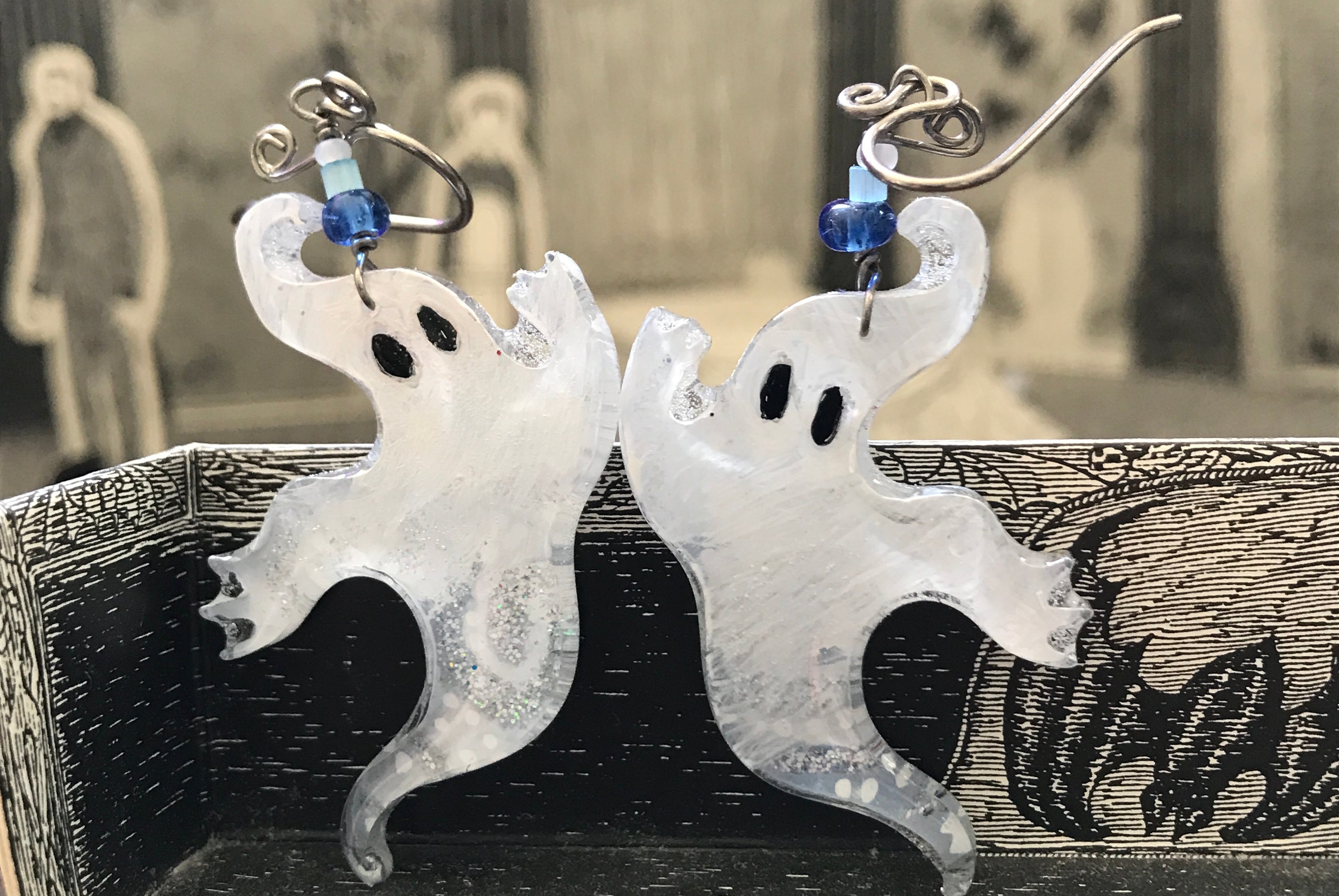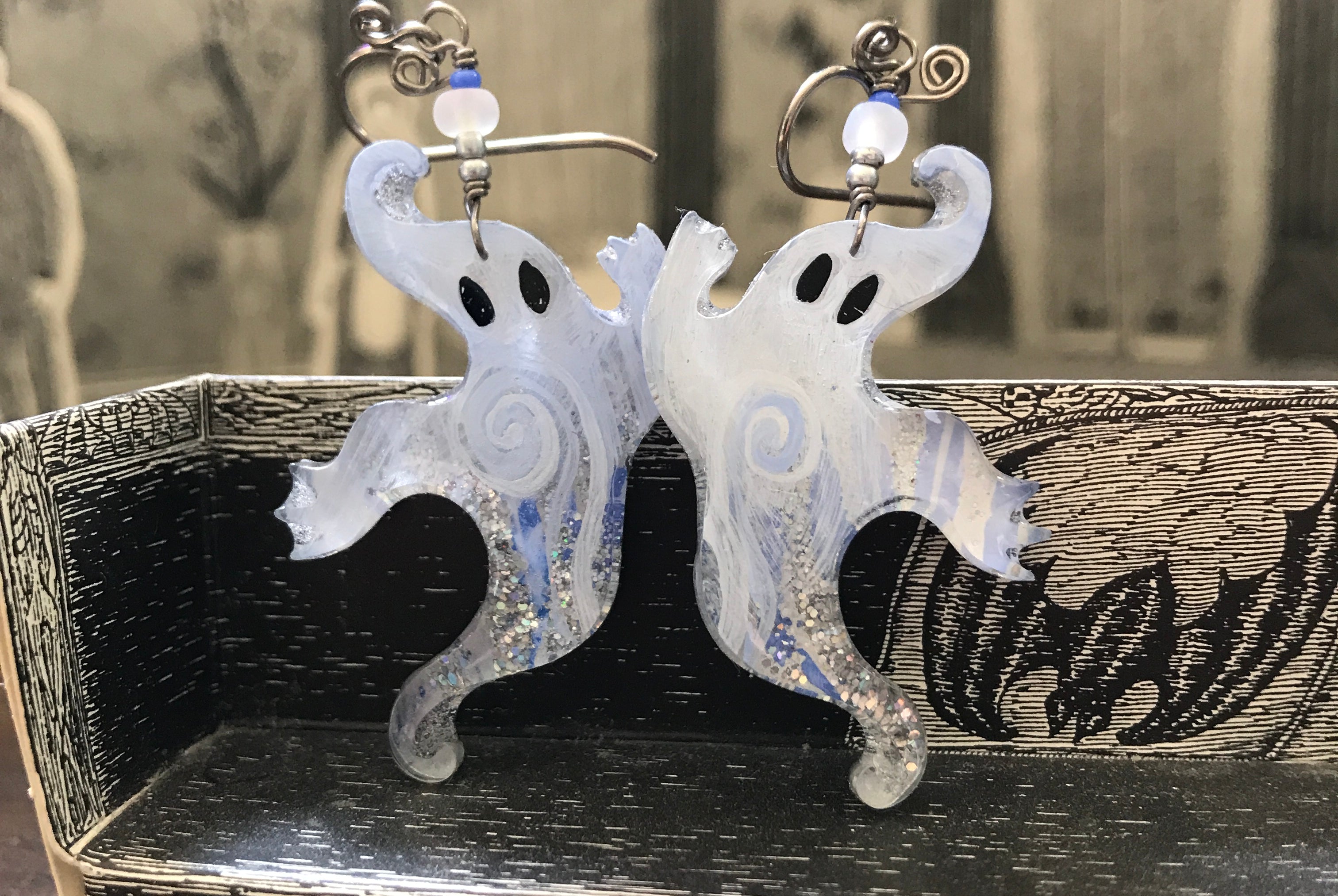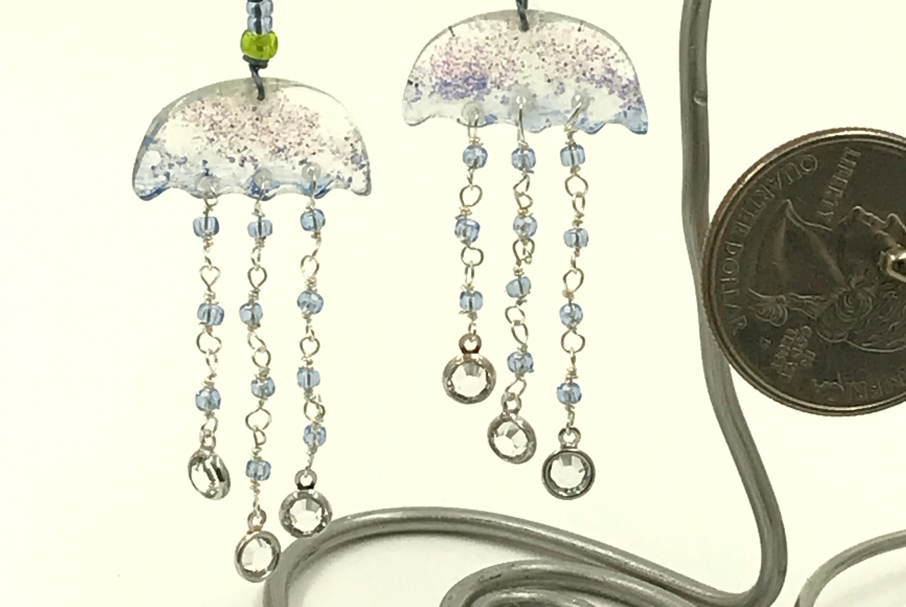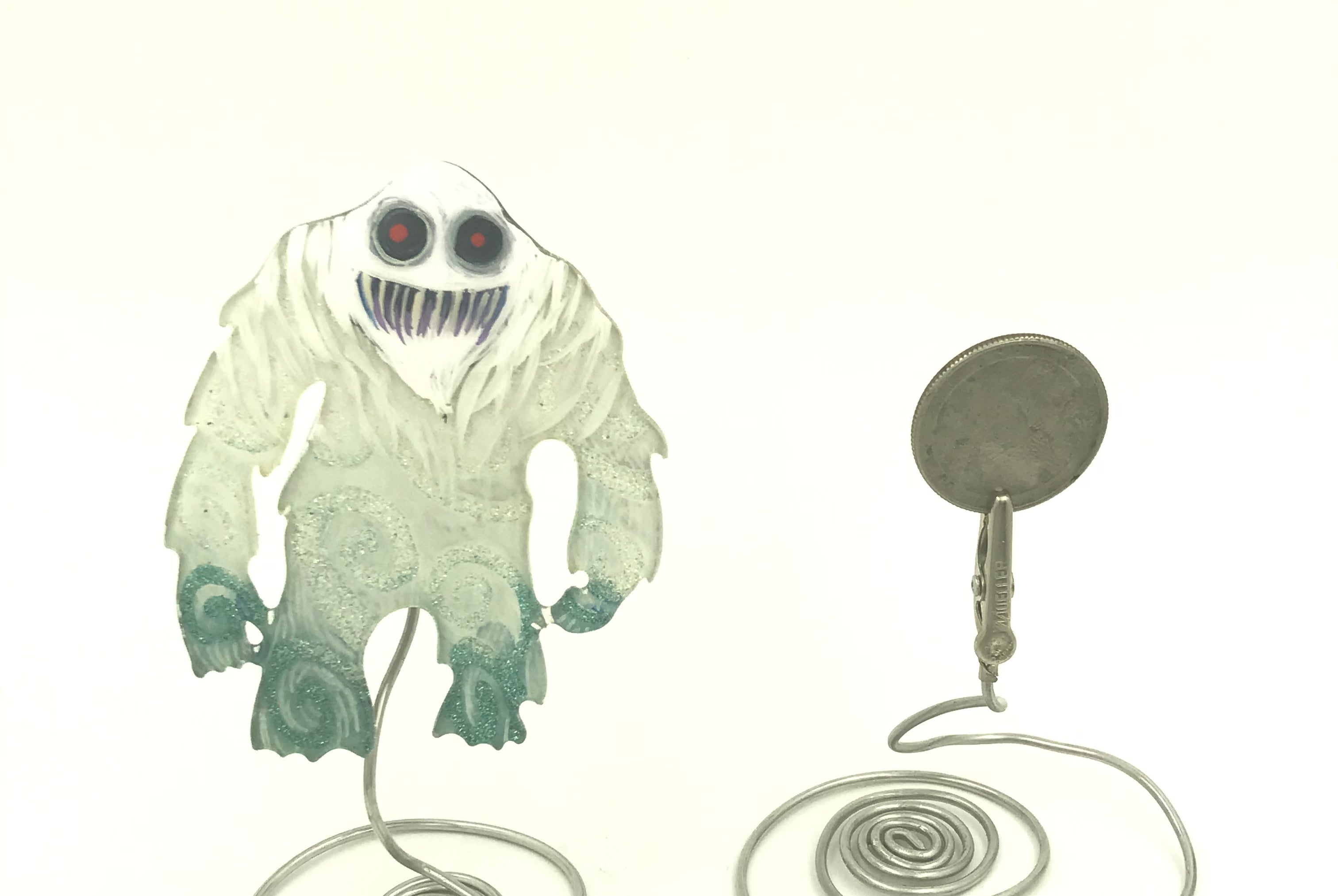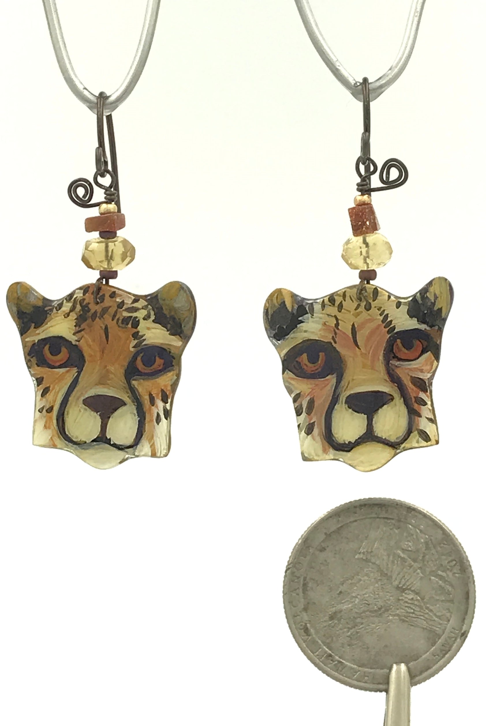 For me, these are little paintings that you can wear. If you are thinking of shrinky-dinks, I'm sure that was in my mind when I came up with lasercutting the shapes and then painting with the same paints I use on canvas. It's a multi layered process that takes a long time. The painting takes the longest, but it is the most rewarding. They are coated with a thick and sturdy glaze that brings out the depth and color.