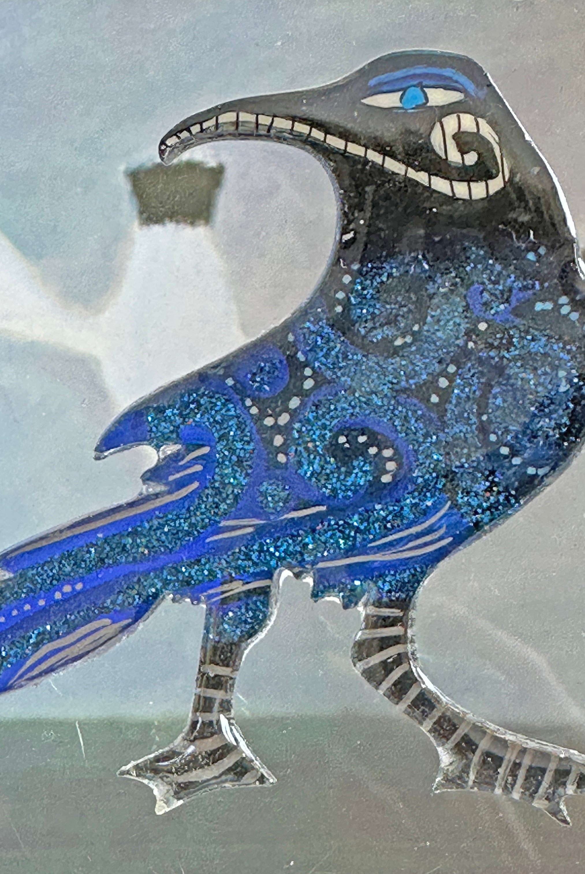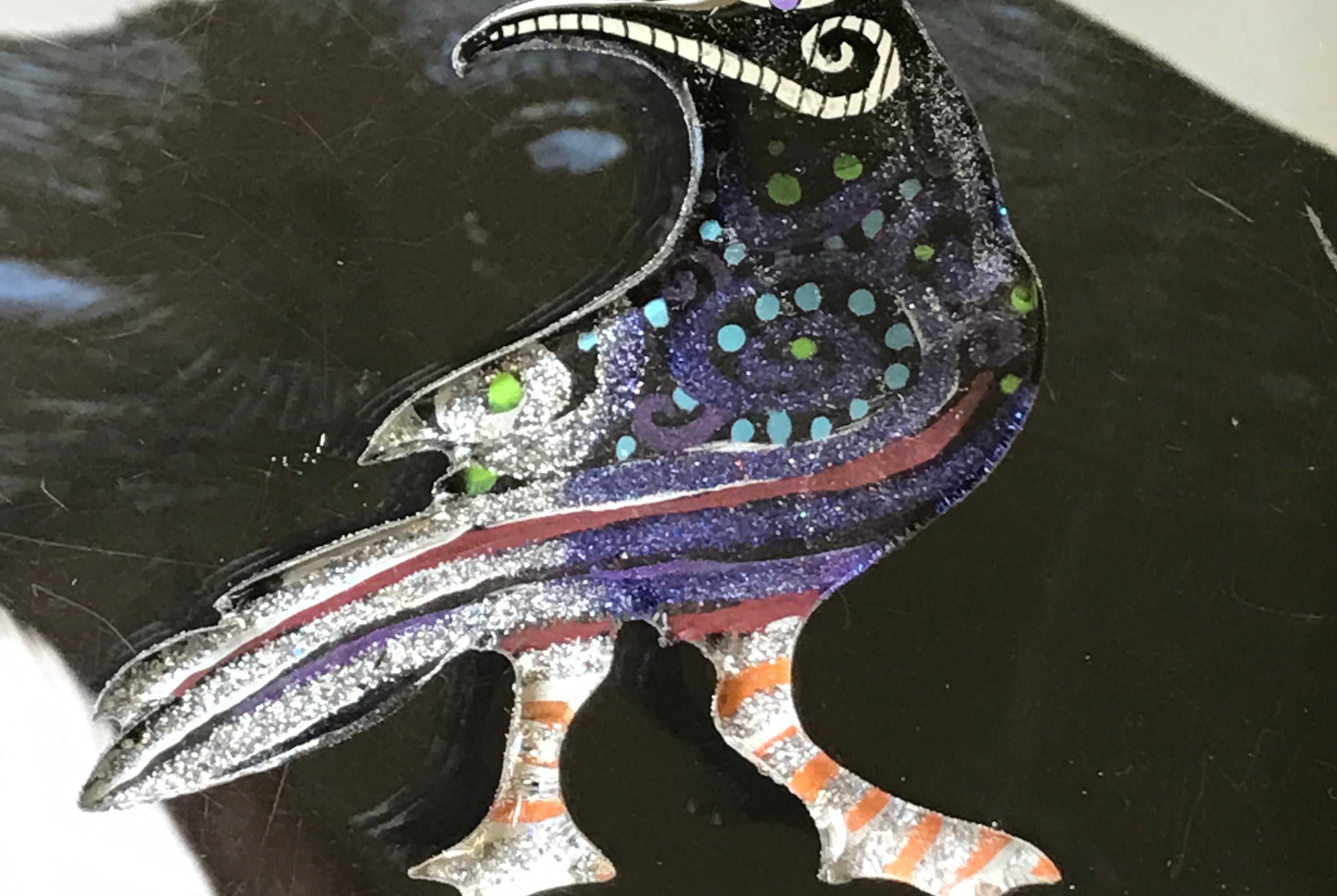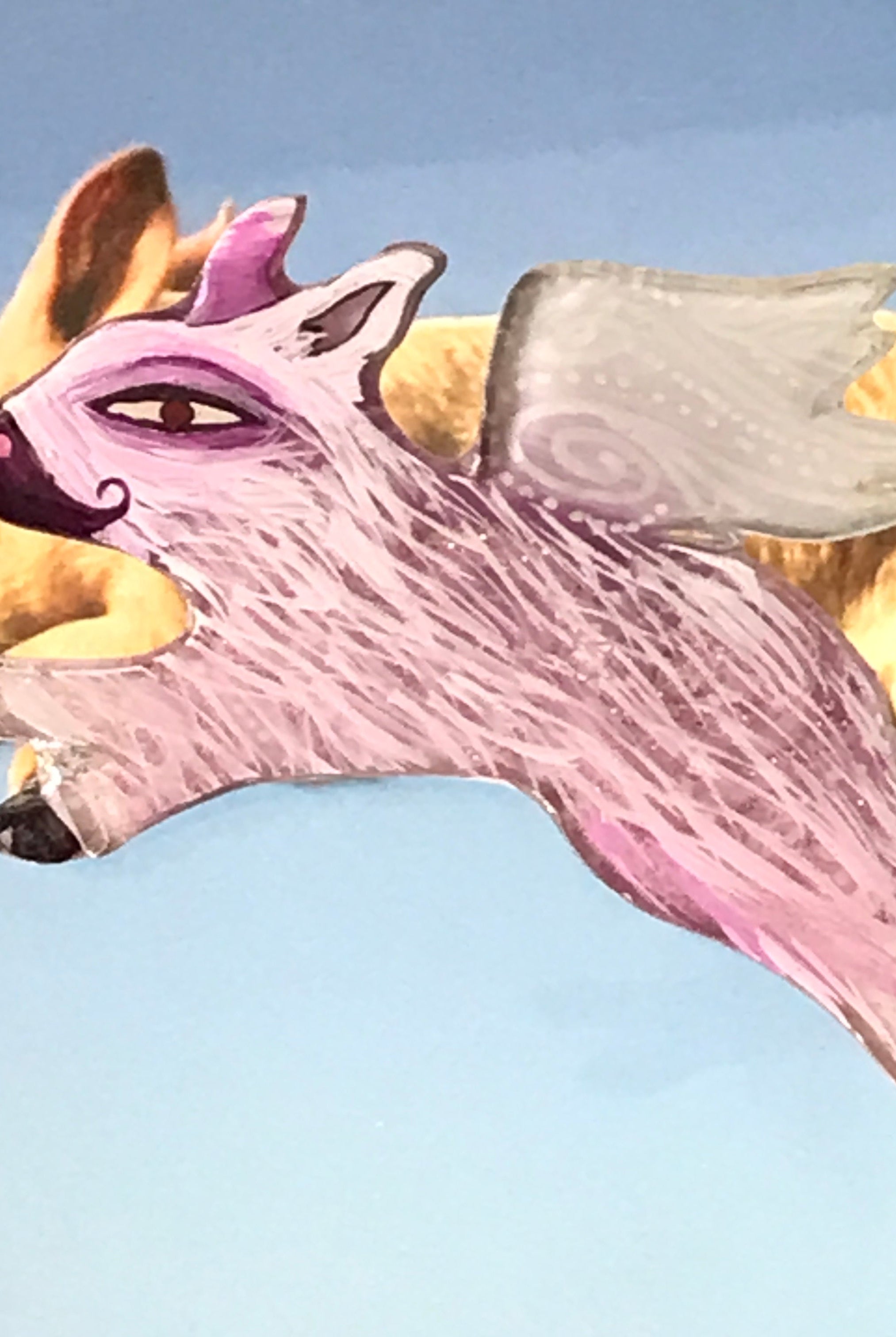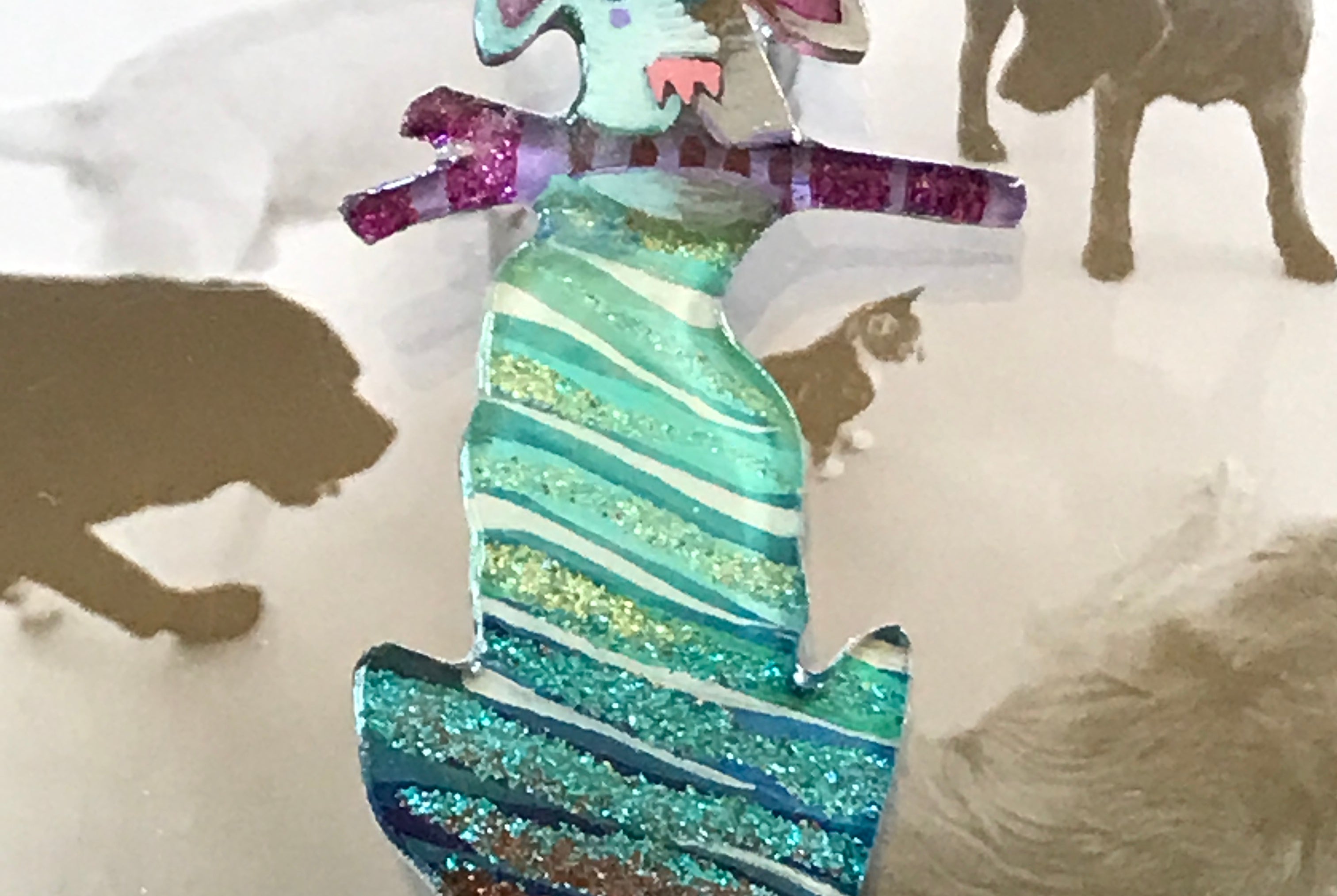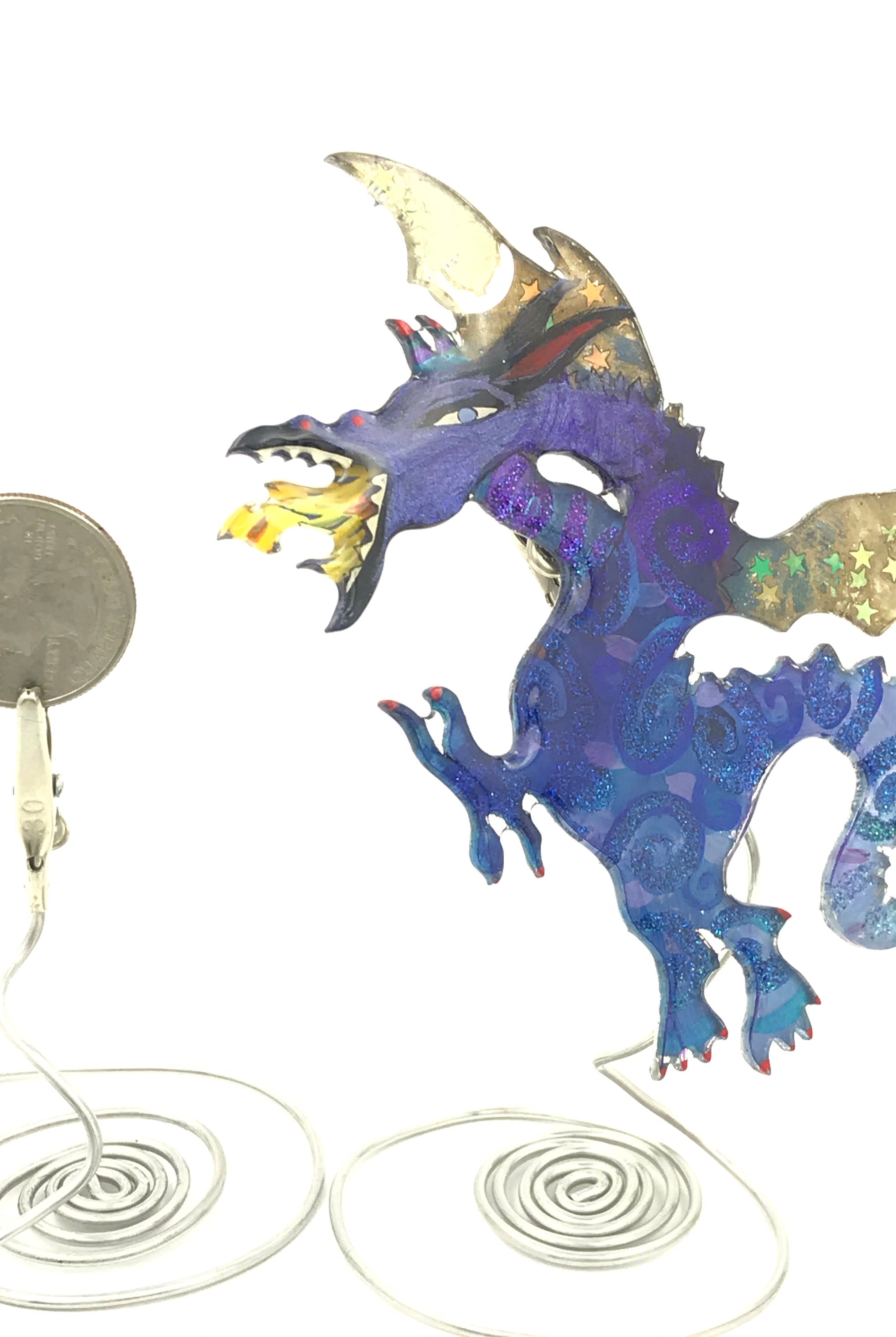 For me, these are little paintings that you can wear. If you are thinking of shrinky-dinks, I'm sure that was in my mind when I came up with lasercutting the shapes and then painting with the same paints I use on canvas. It's a multi layered process that takes a long time. The painting takes the longest, but it is the most rewarding. They are coated with a thick and sturdy glaze that brings out the depth and color.