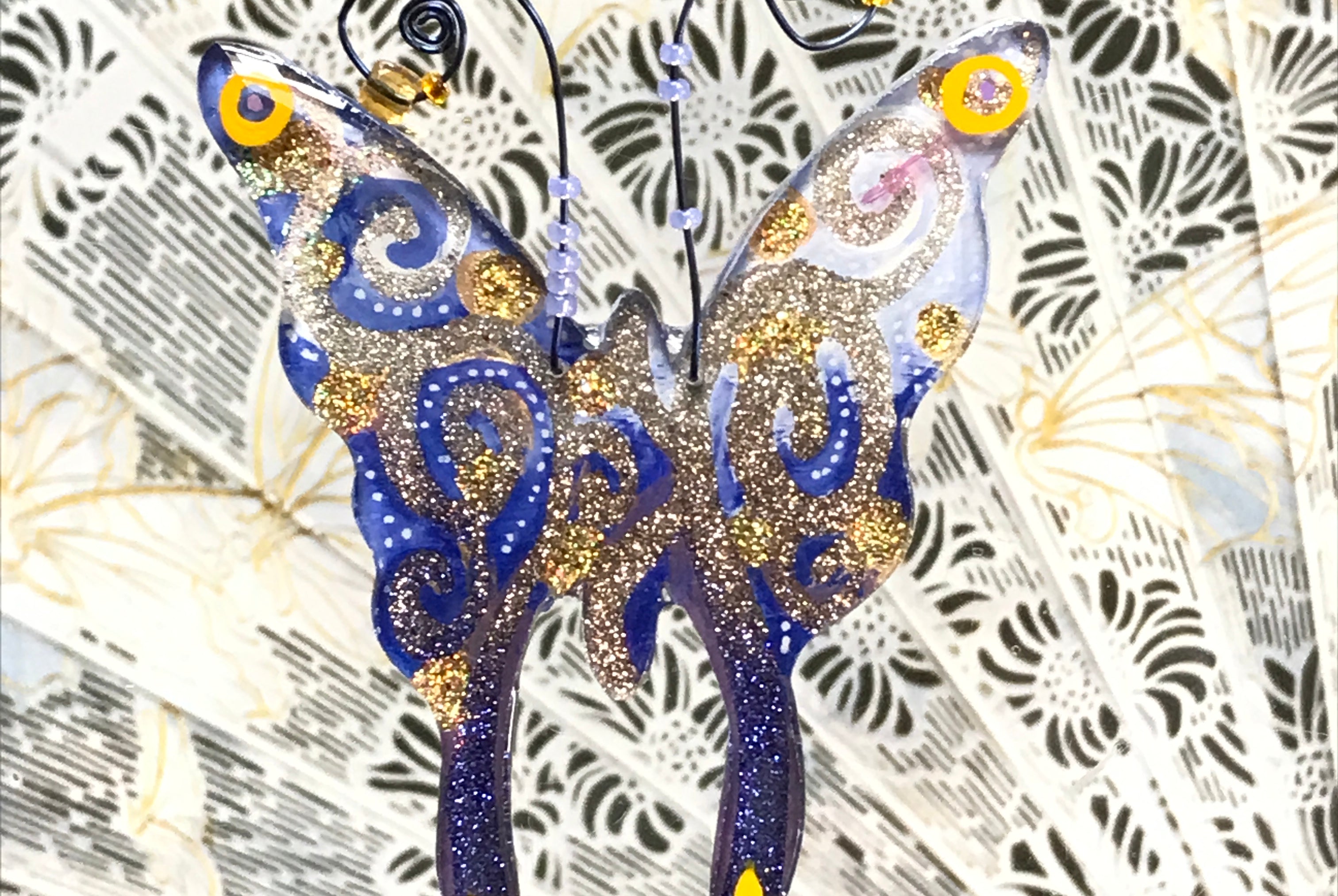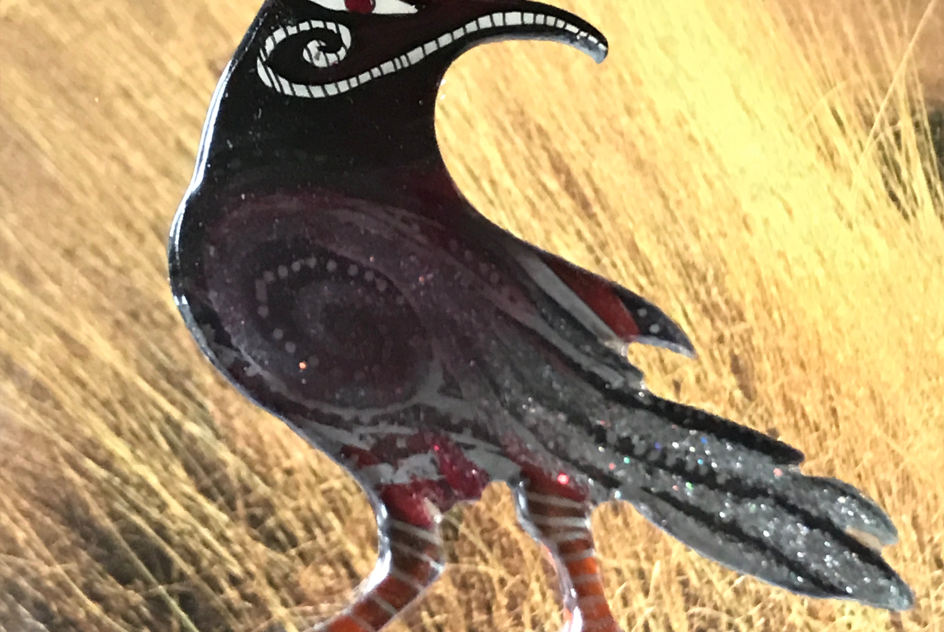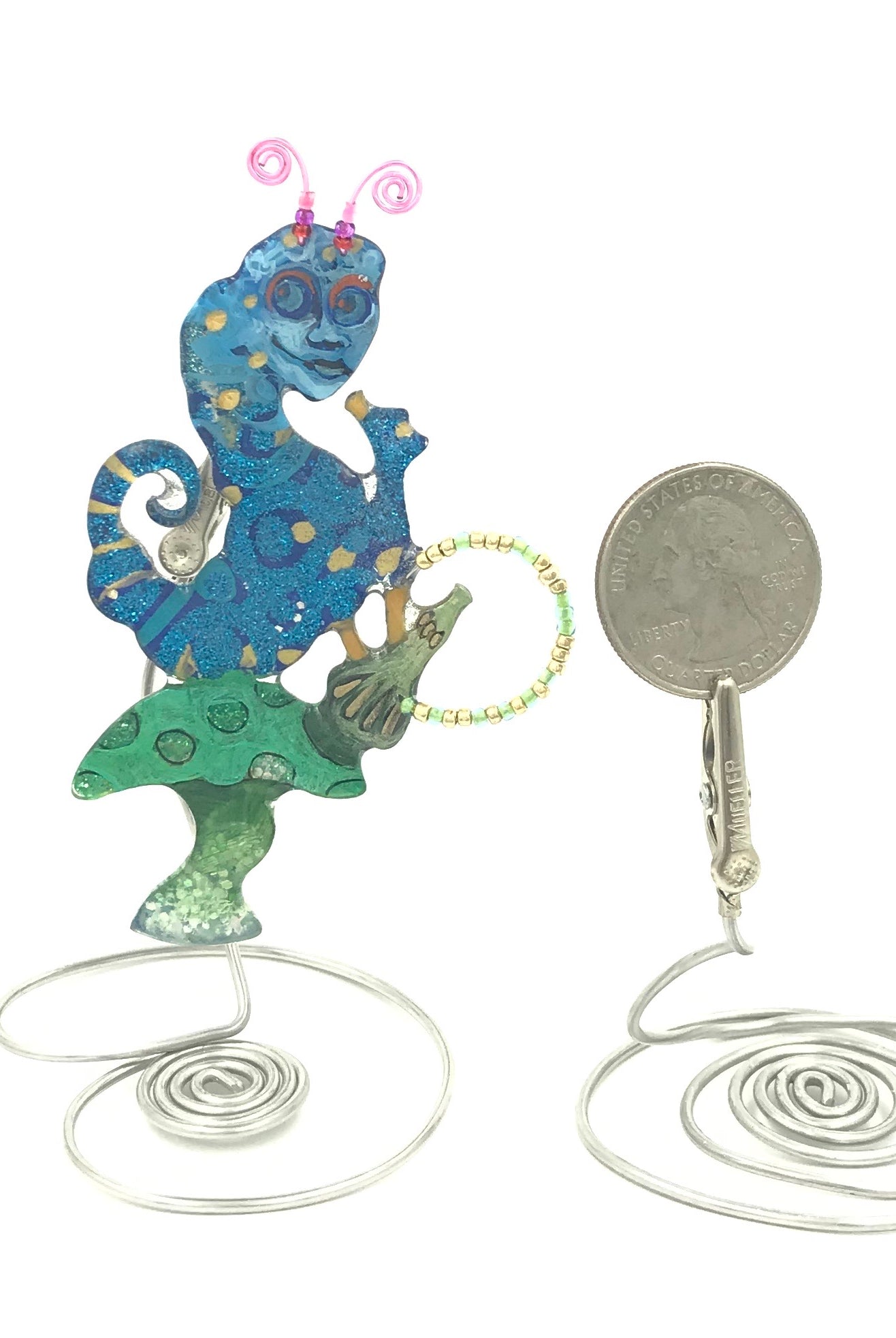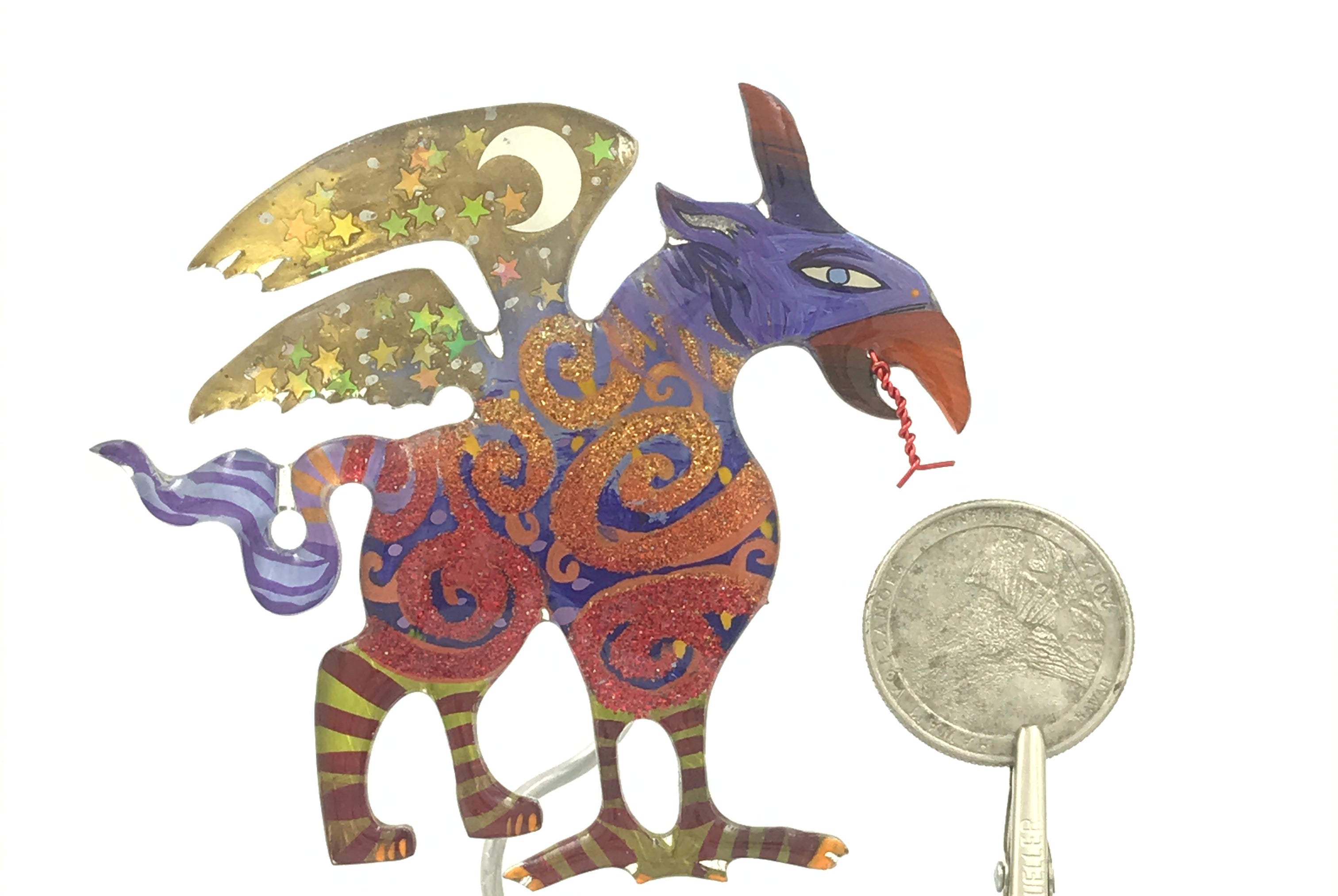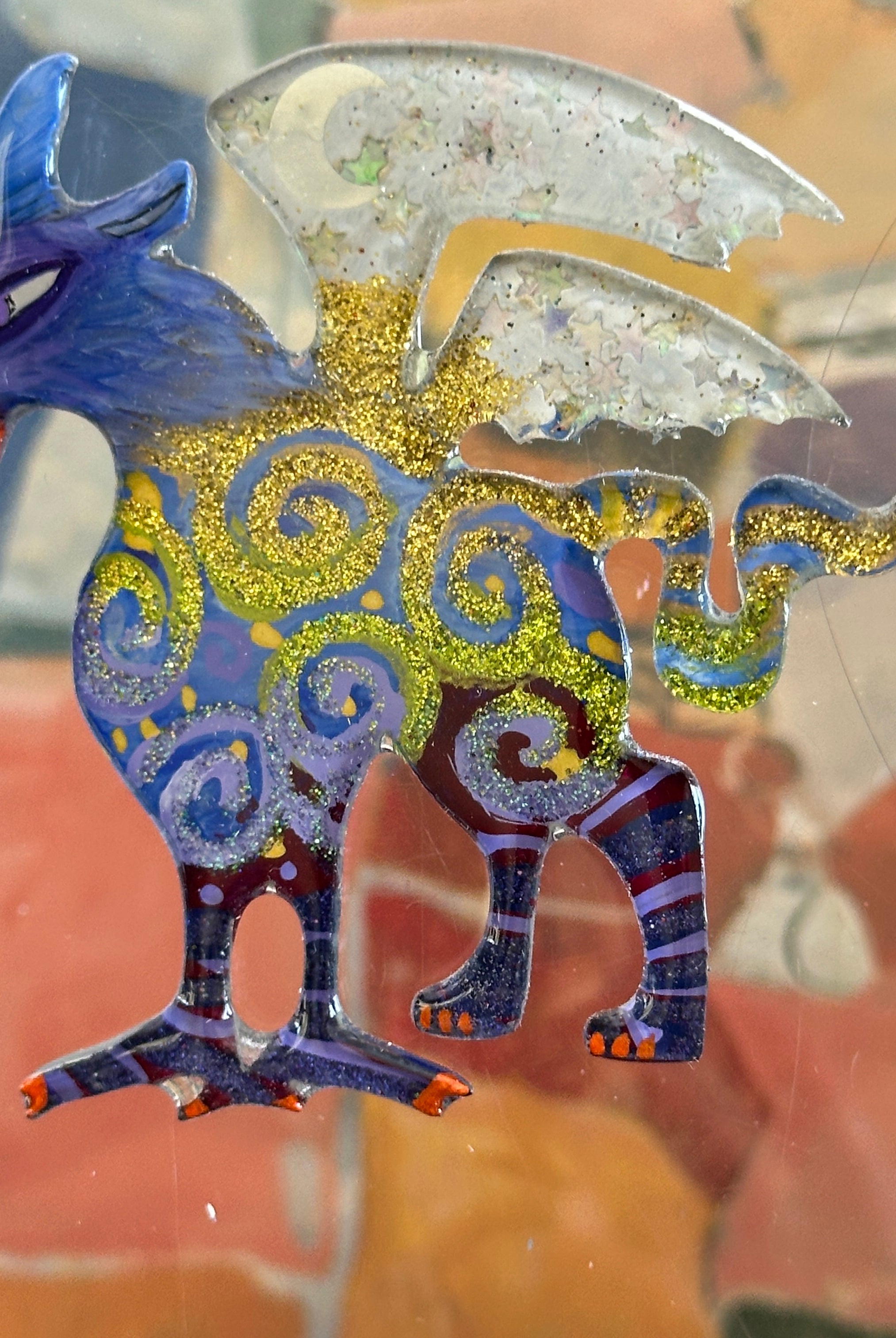 For me, these are little paintings that you can wear. If you are thinking of shrinky-dinks, I'm sure that was in my mind when I came up with lasercutting the shapes and then painting with the same paints I use on canvas. It's a multi layered process that takes a long time. The painting takes the longest, but it is the most rewarding. They are coated with a thick and sturdy glaze that brings out the depth and color.
