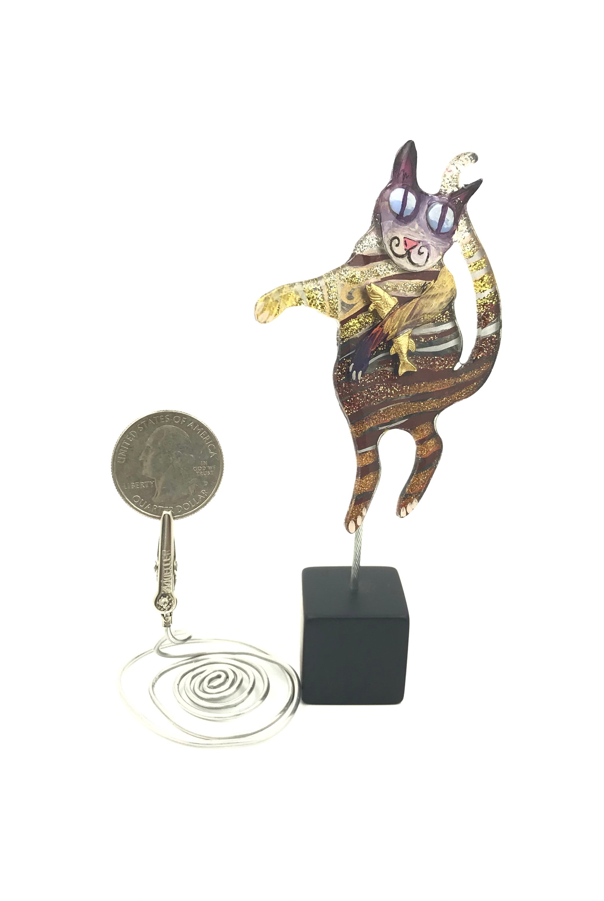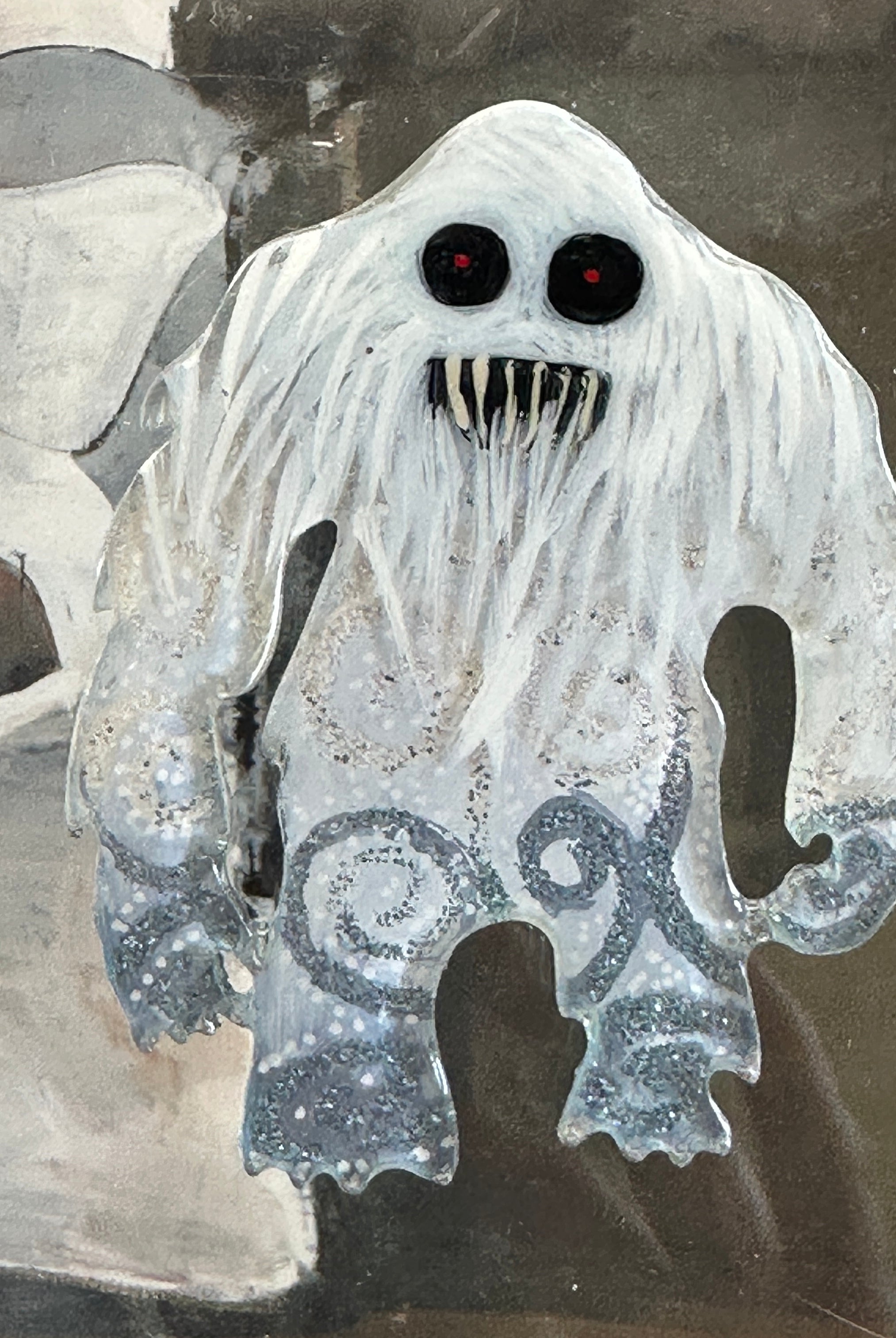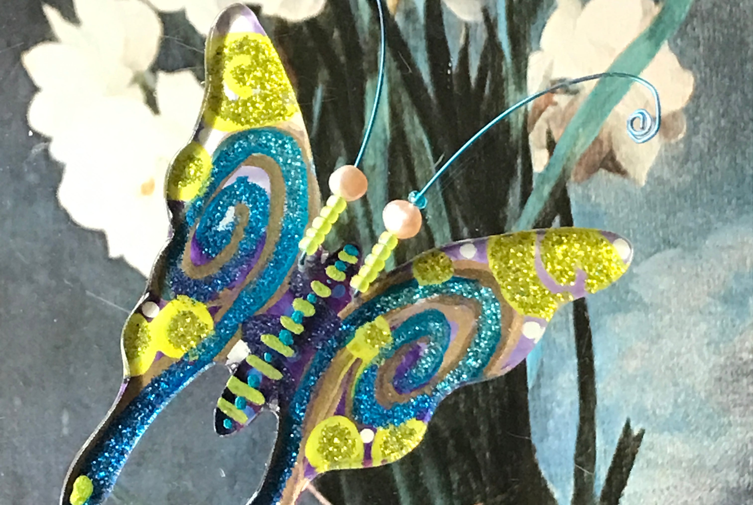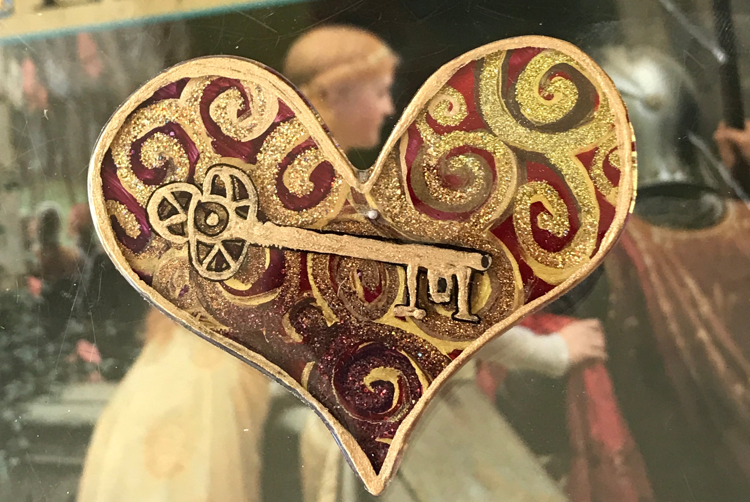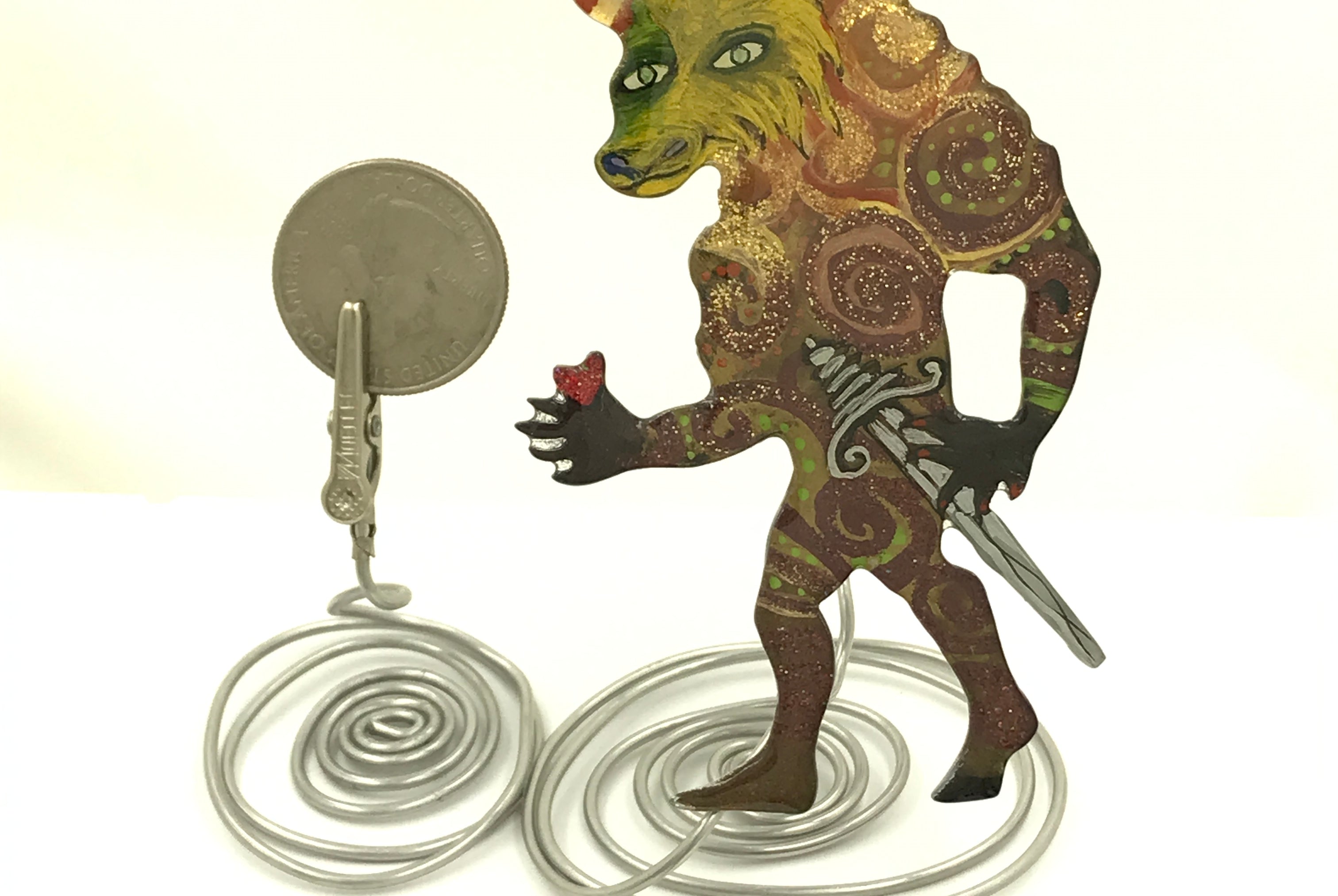 For me, these are little paintings that you can wear. If you are thinking of shrinky-dinks, I'm sure that was in my mind when I came up with lasercutting the shapes and then painting with the same paints I use on canvas. It's a multi layered process that takes a long time. The painting takes the longest, but it is the most rewarding. They are coated with a thick and sturdy glaze that brings out the depth and color.