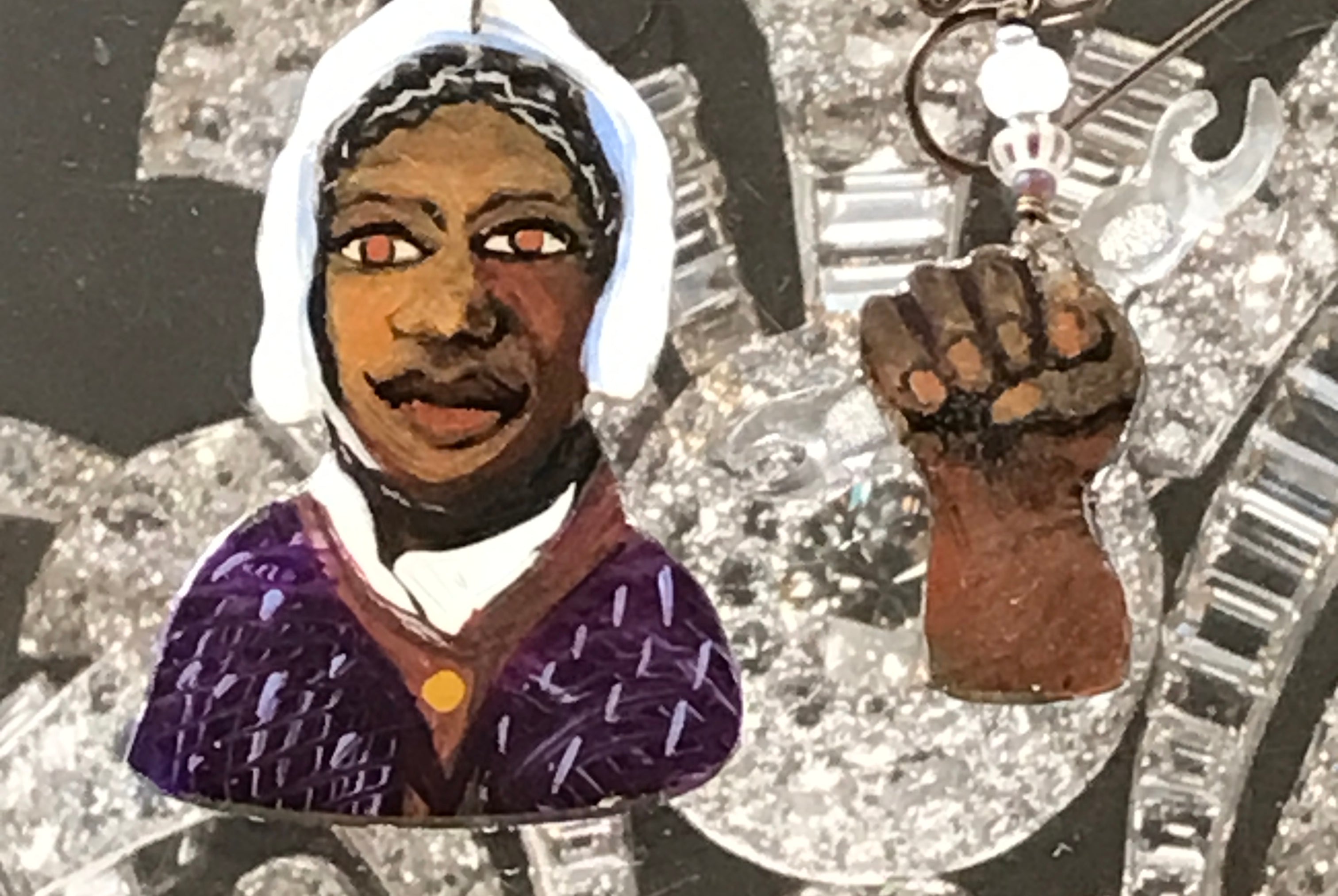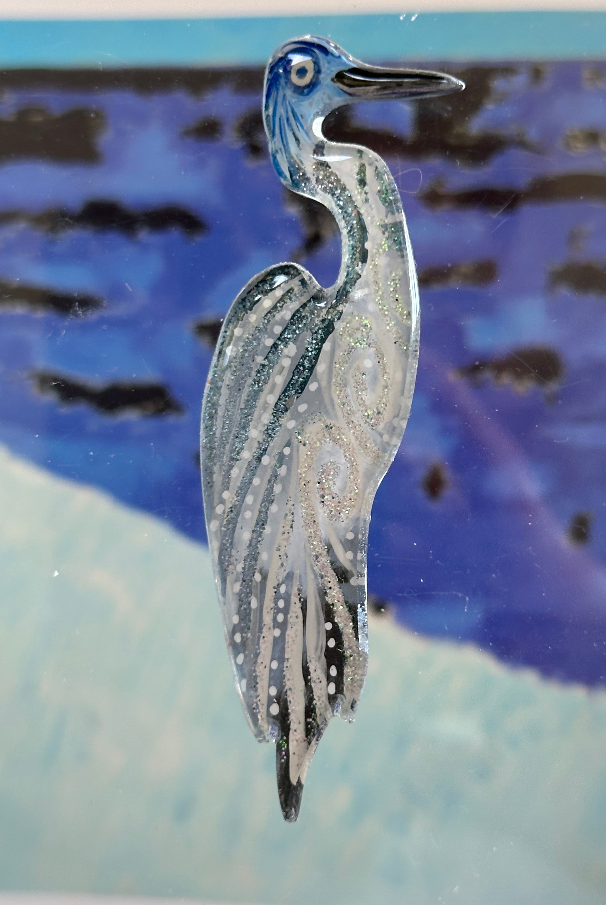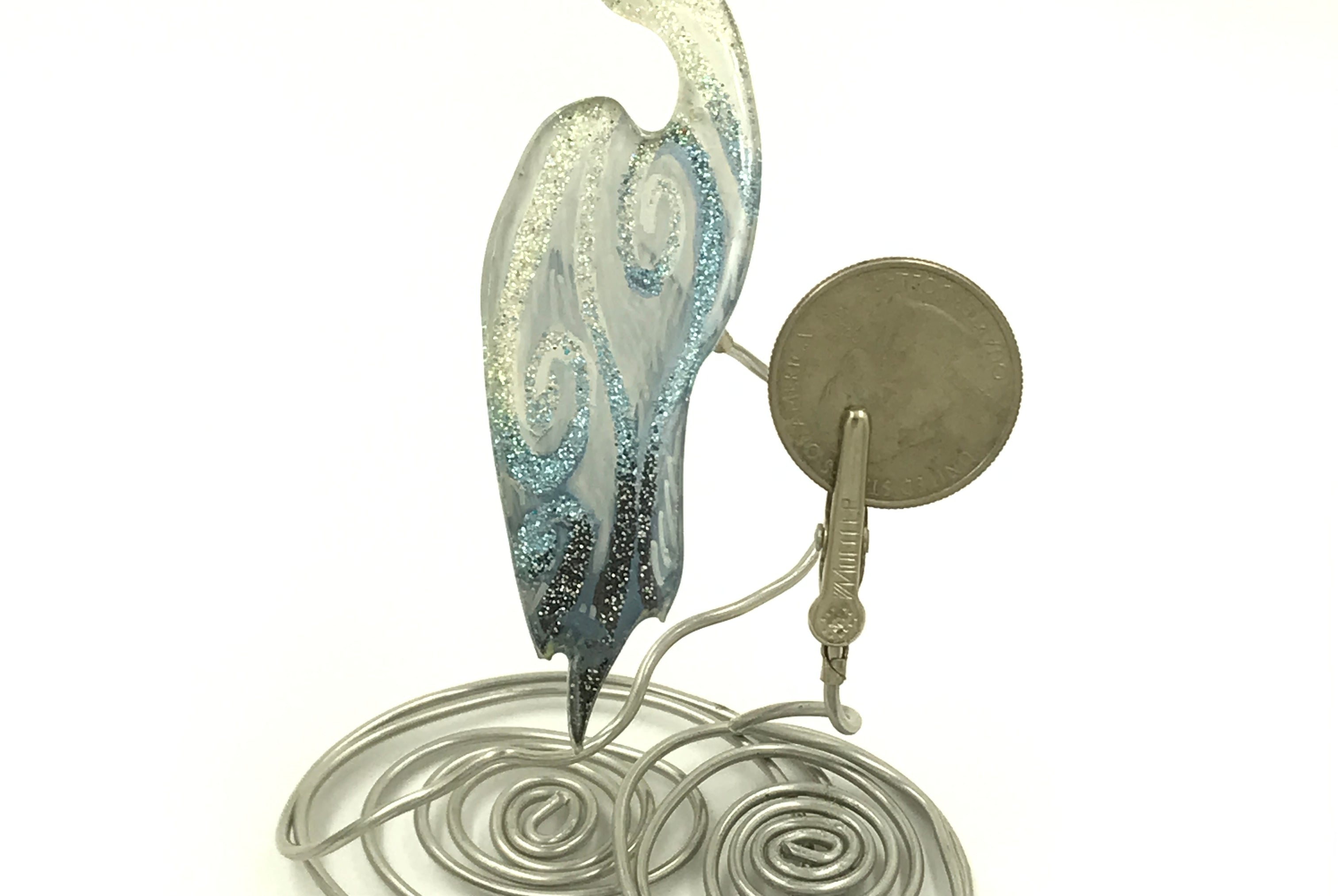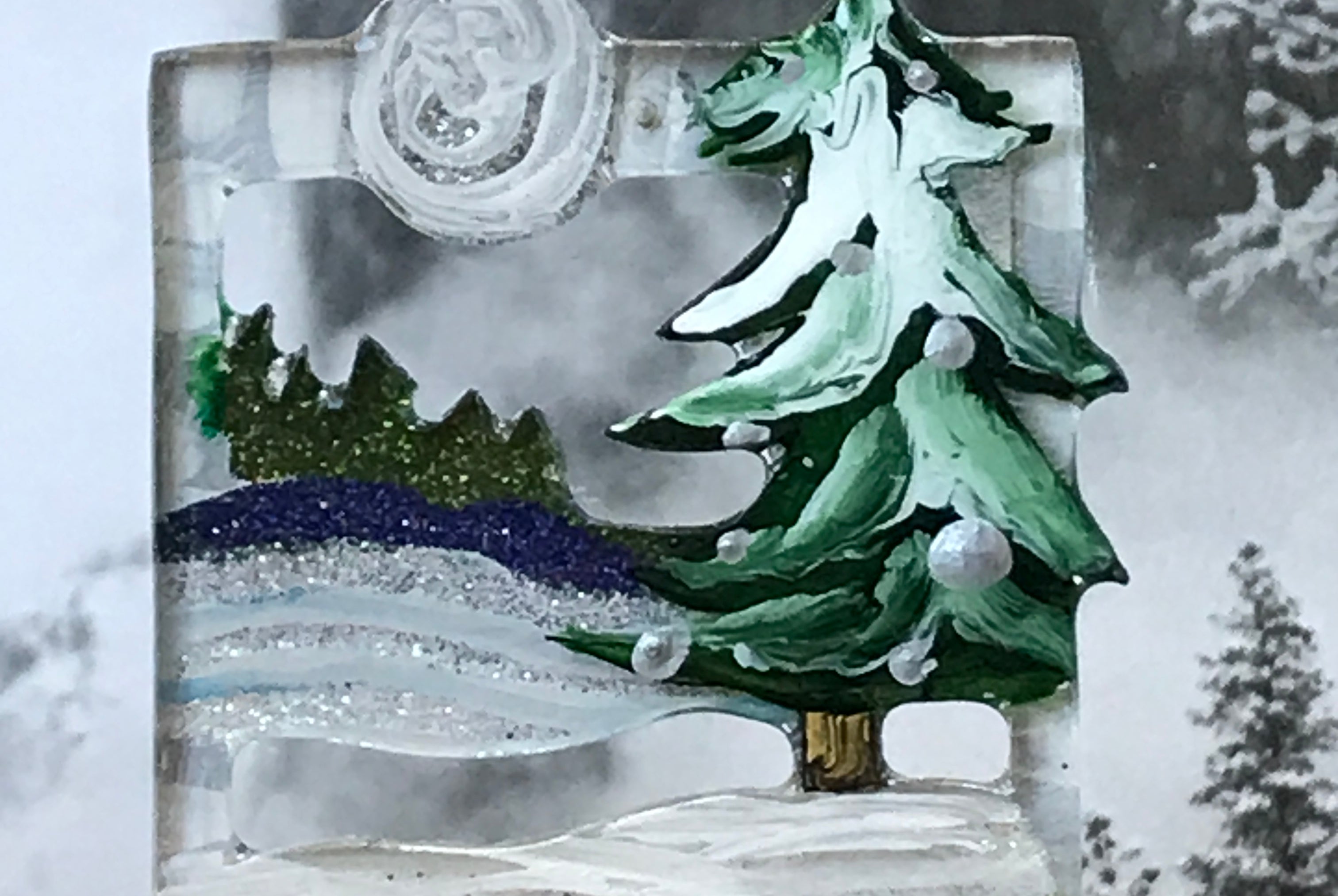 For me, these are little paintings that you can wear. If you are thinking of shrinky-dinks, I'm sure that was in my mind when I came up with lasercutting the shapes and then painting with the same paints I use on canvas. It's a multi layered process that takes a long time. The painting takes the longest, but it is the most rewarding. They are coated with a thick and sturdy glaze that brings out the depth and color.